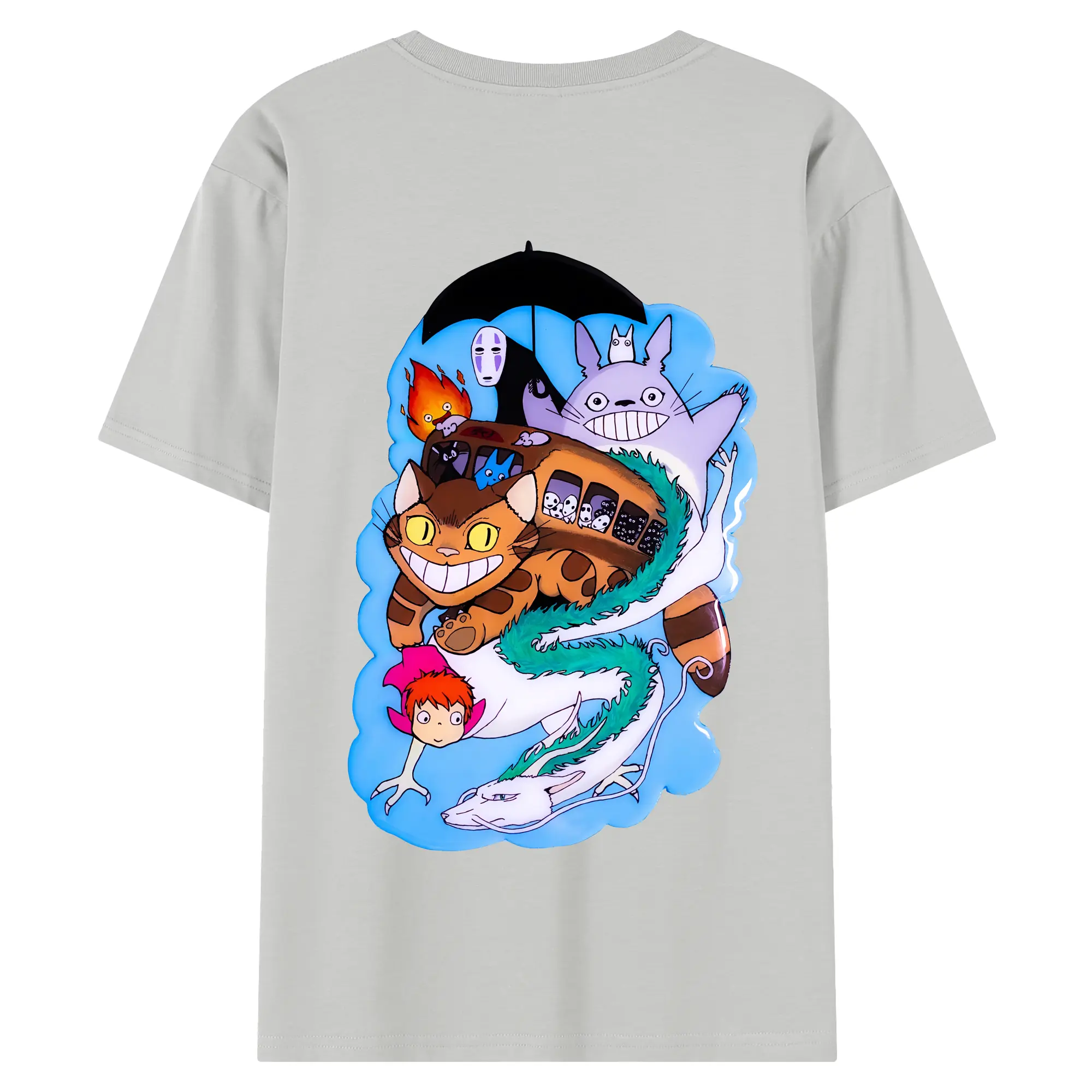 となりのトトロ グッズ トトロ - 綿100% ヴィンテージ風 半袖Tシャツ ・ 背面プリント ・ 柔らか肌触り ・ 通気性 快適 ・ スポーツ カジュアル 外出用
