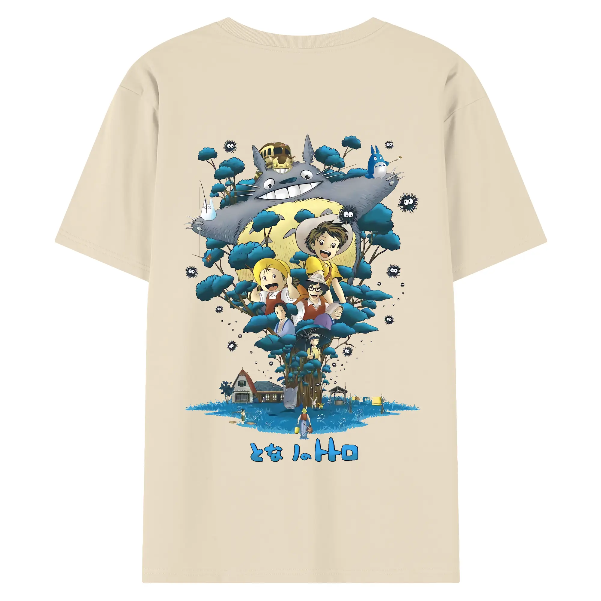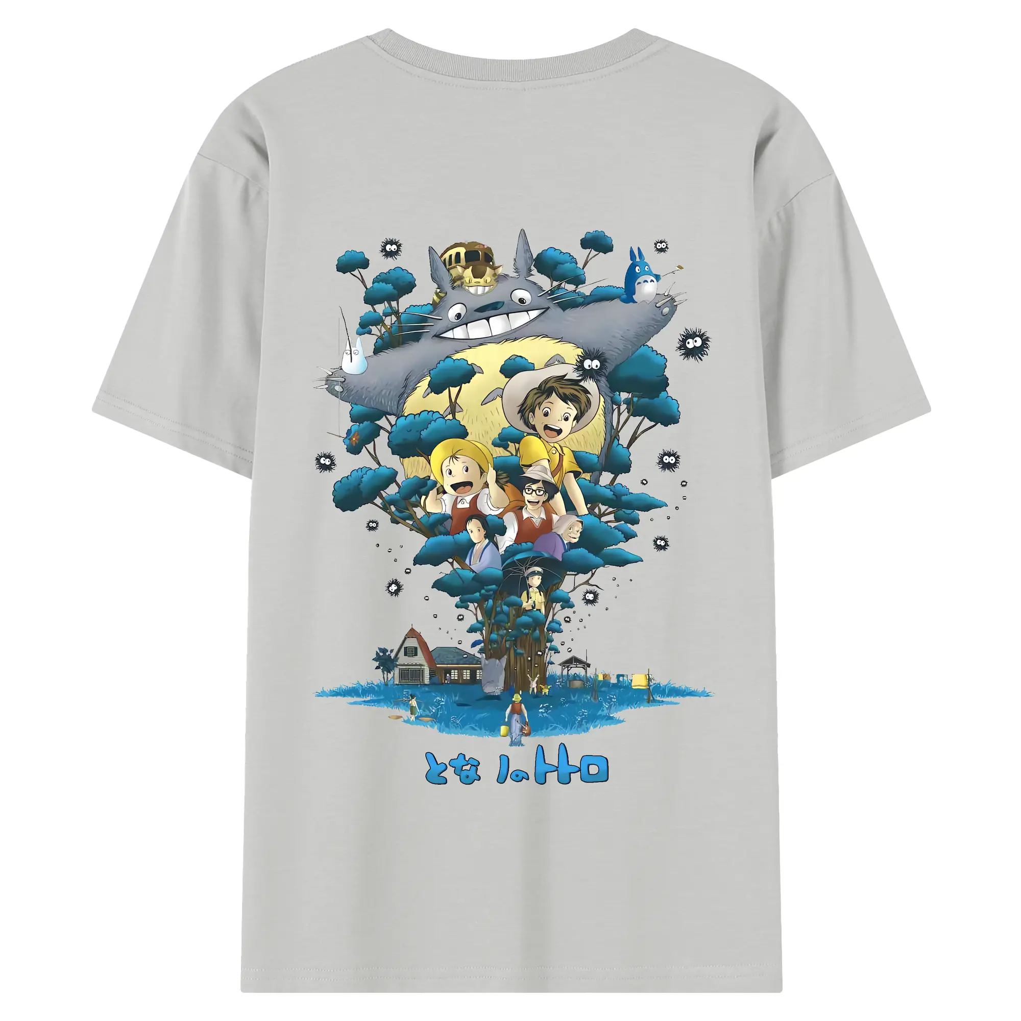 となりのトトロ グッズ トトロ - 綿100% ヴィンテージ風 半袖Tシャツ ・ 背面プリント ・ 柔らか肌触り ・ 通気性 快適 ・ スポーツ カジュアル 外出用