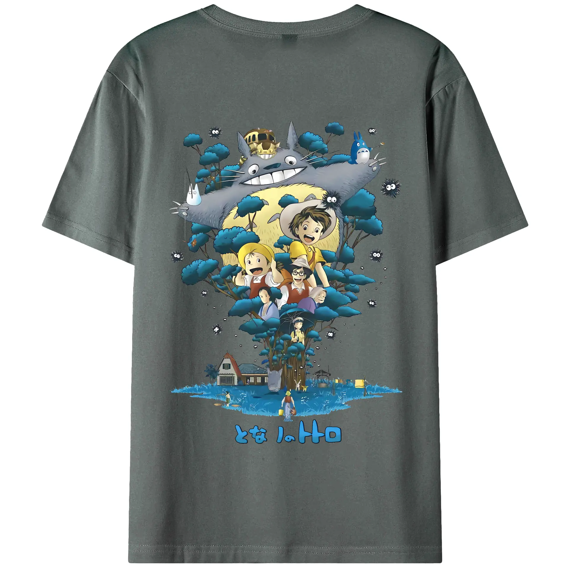 となりのトトロ グッズ トトロ - 綿100% 半袖Tシャツ ・ フロントプリント ・ 快適 通気性 ・ 日常使い 散歩 スポーツ用