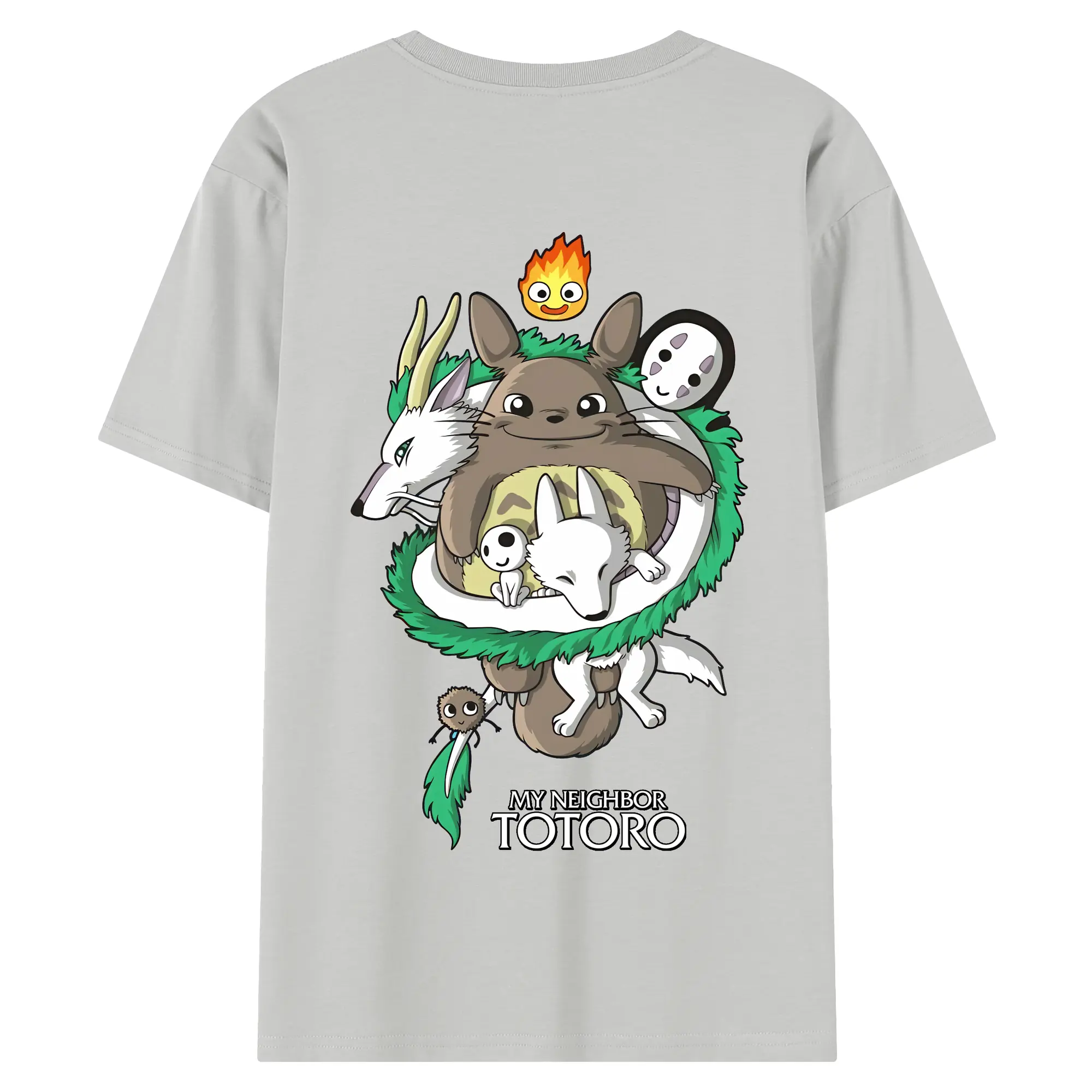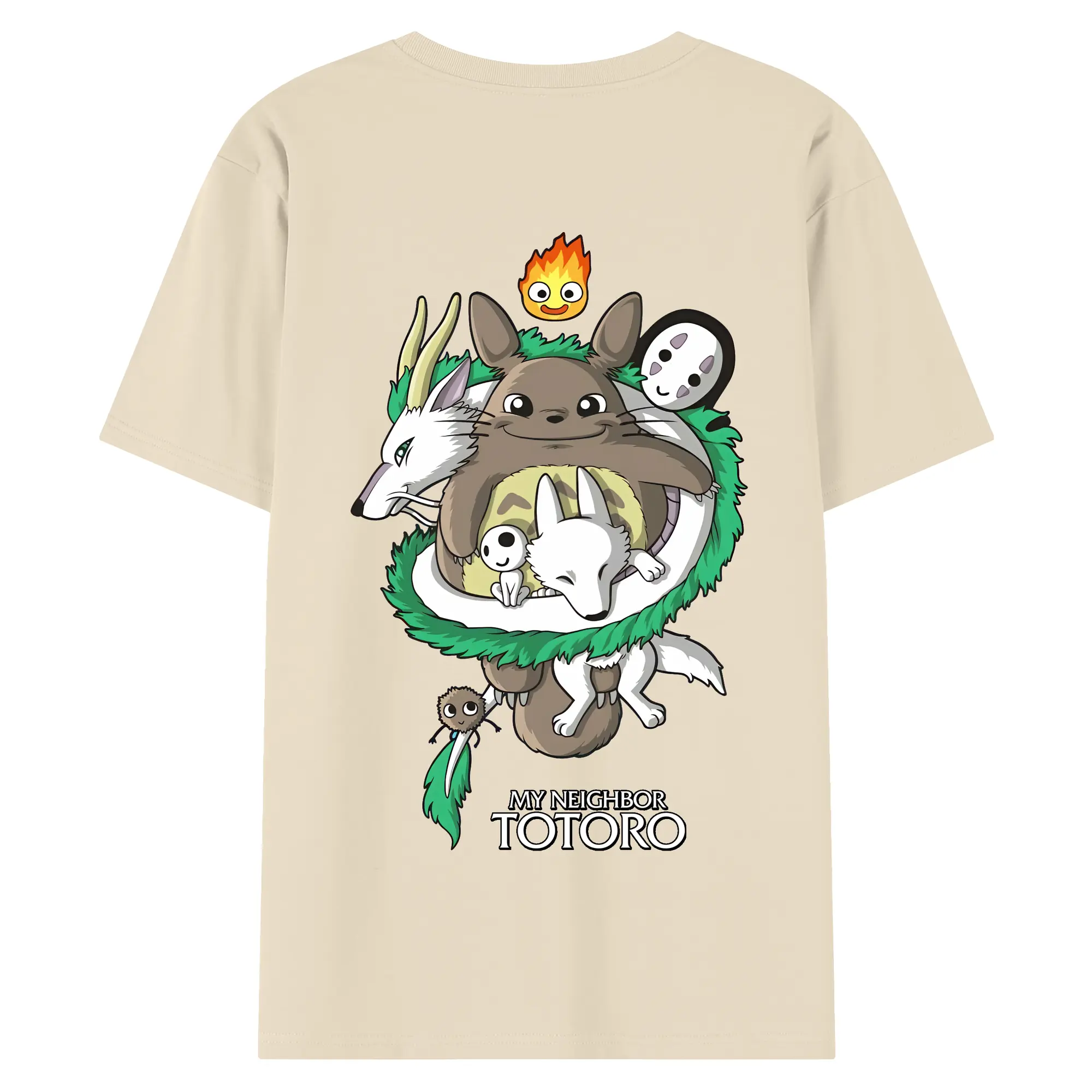 となりのトトロ グッズ トトロ - 綿100% ヴィンテージ風 半袖Tシャツ ・ 背面プリント ・ 柔らか肌触り ・ 通気性 快適 ・ スポーツ カジュアル 外出用