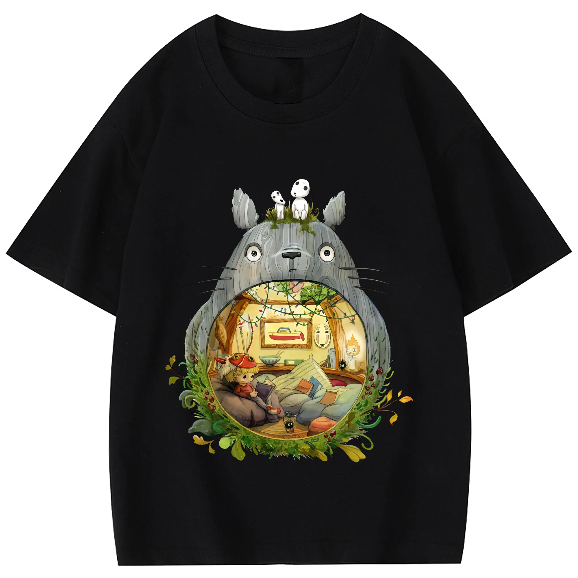 となりのトトロ グッズ トトロ - 綿100% 半袖Tシャツ ・ フロントプリント ・ 快適 通気性 ・ 日常使い 散歩 スポーツ用