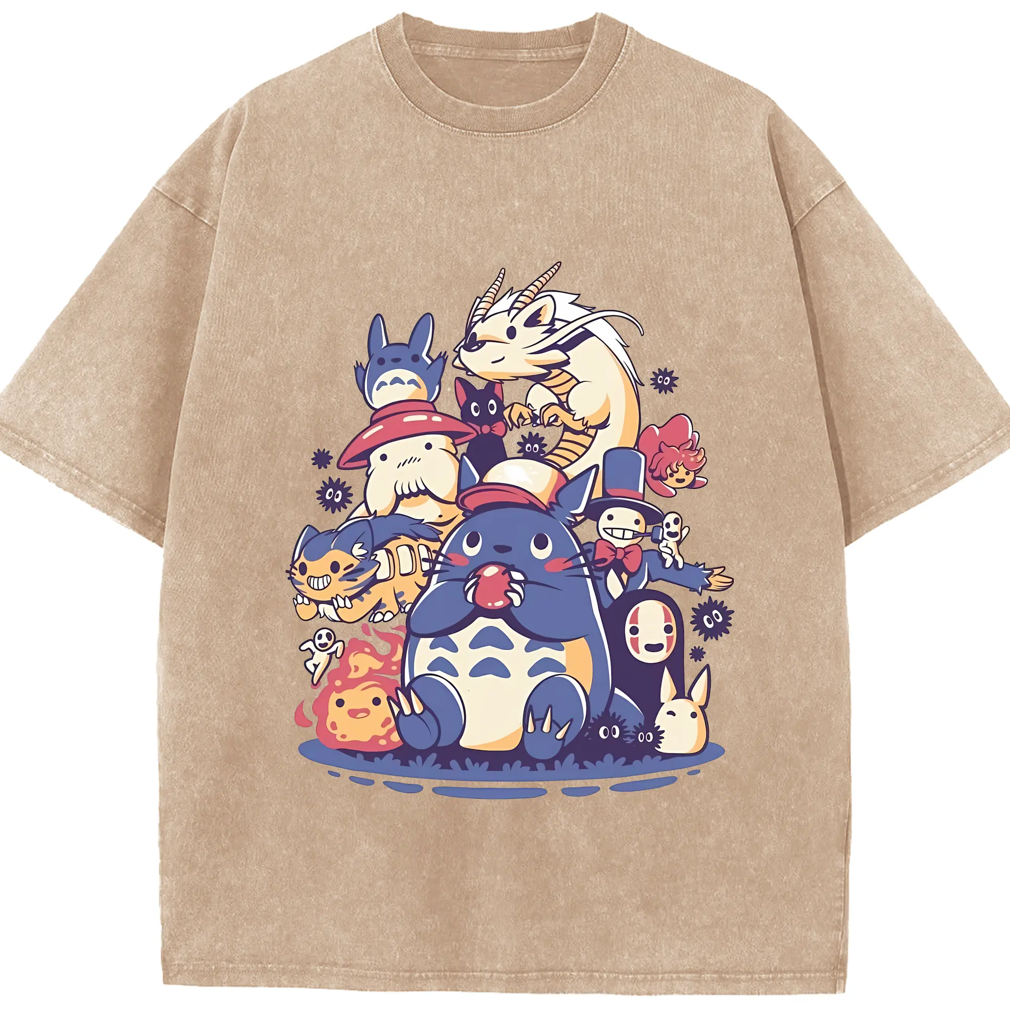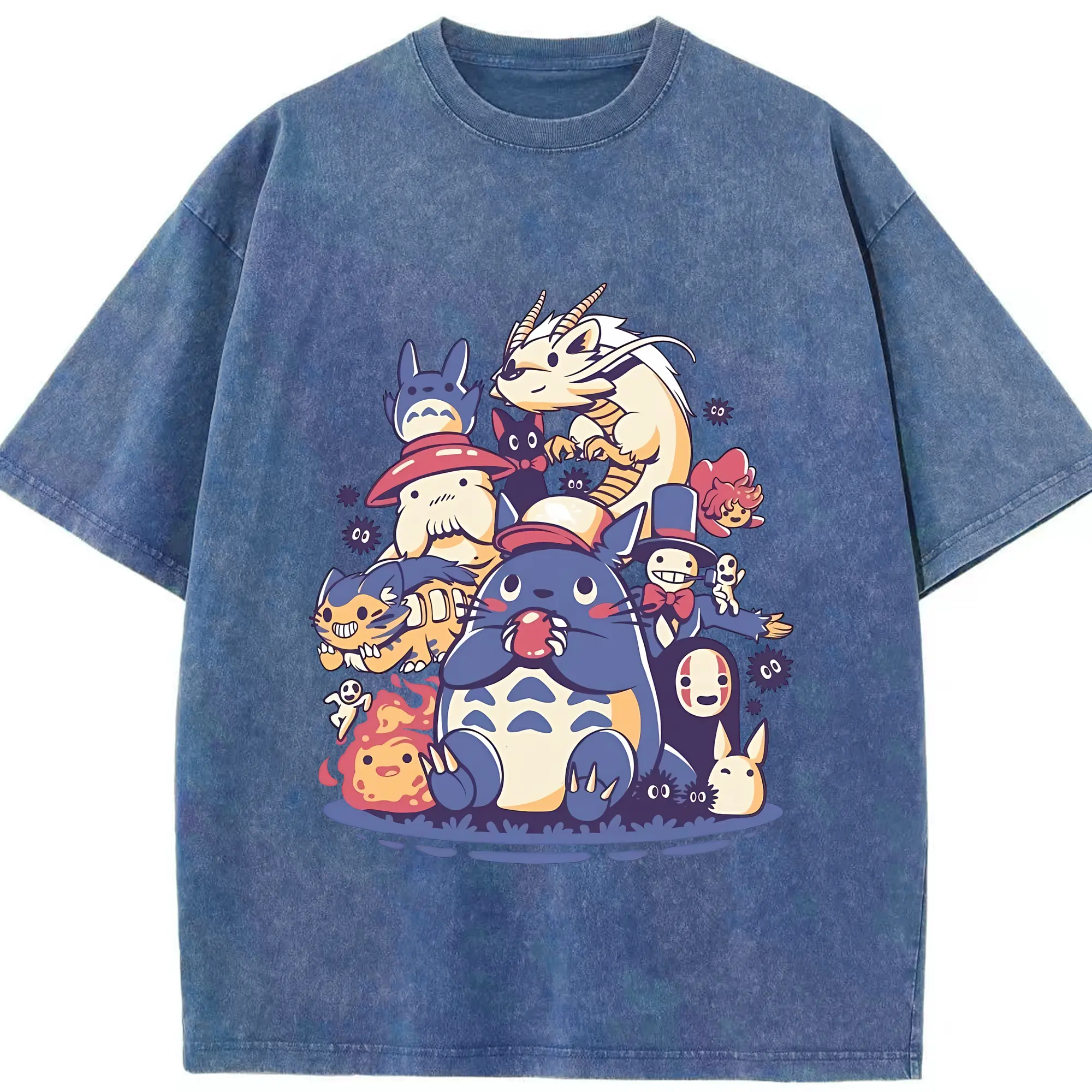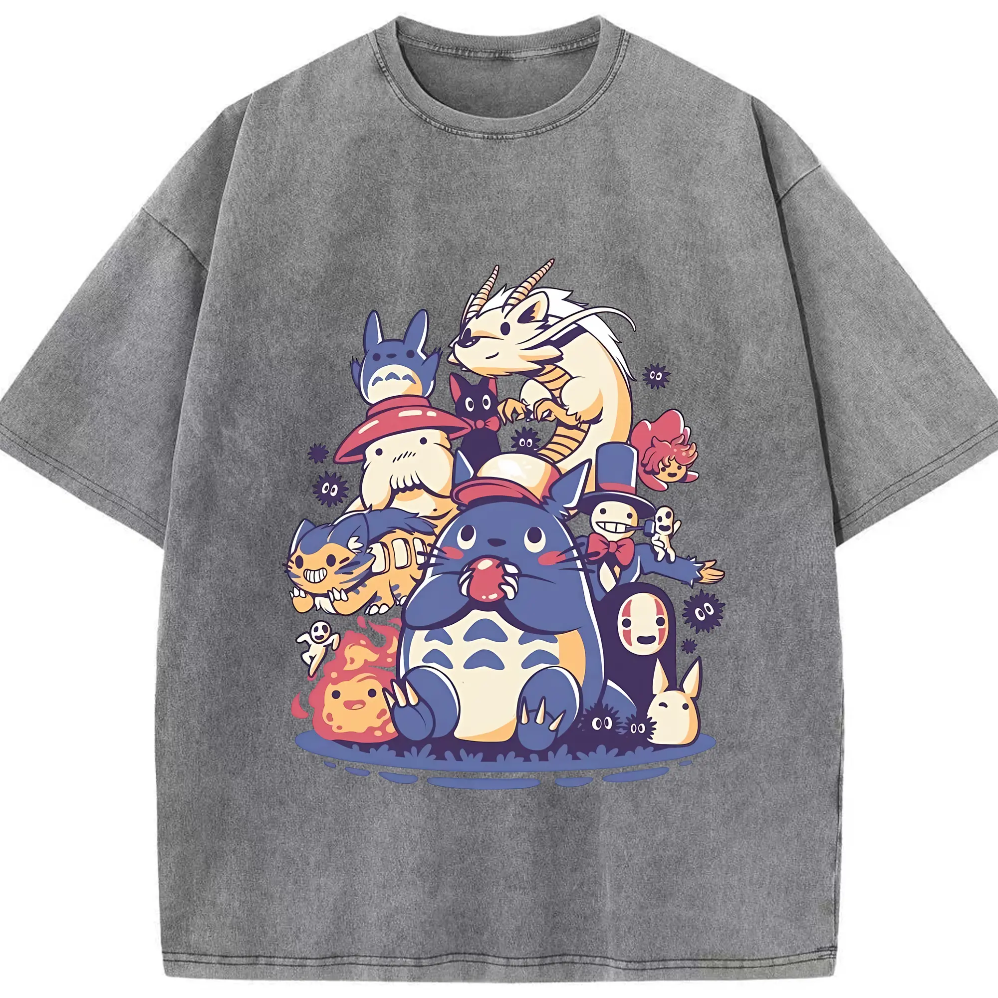 となりのトトロ グッズ トトロ - 綿100% ヴィンテージ風 半袖Tシャツ ・ 背面プリント ・ 柔らか肌触り ・ 通気性 快適 ・ スポーツ カジュアル 外出用