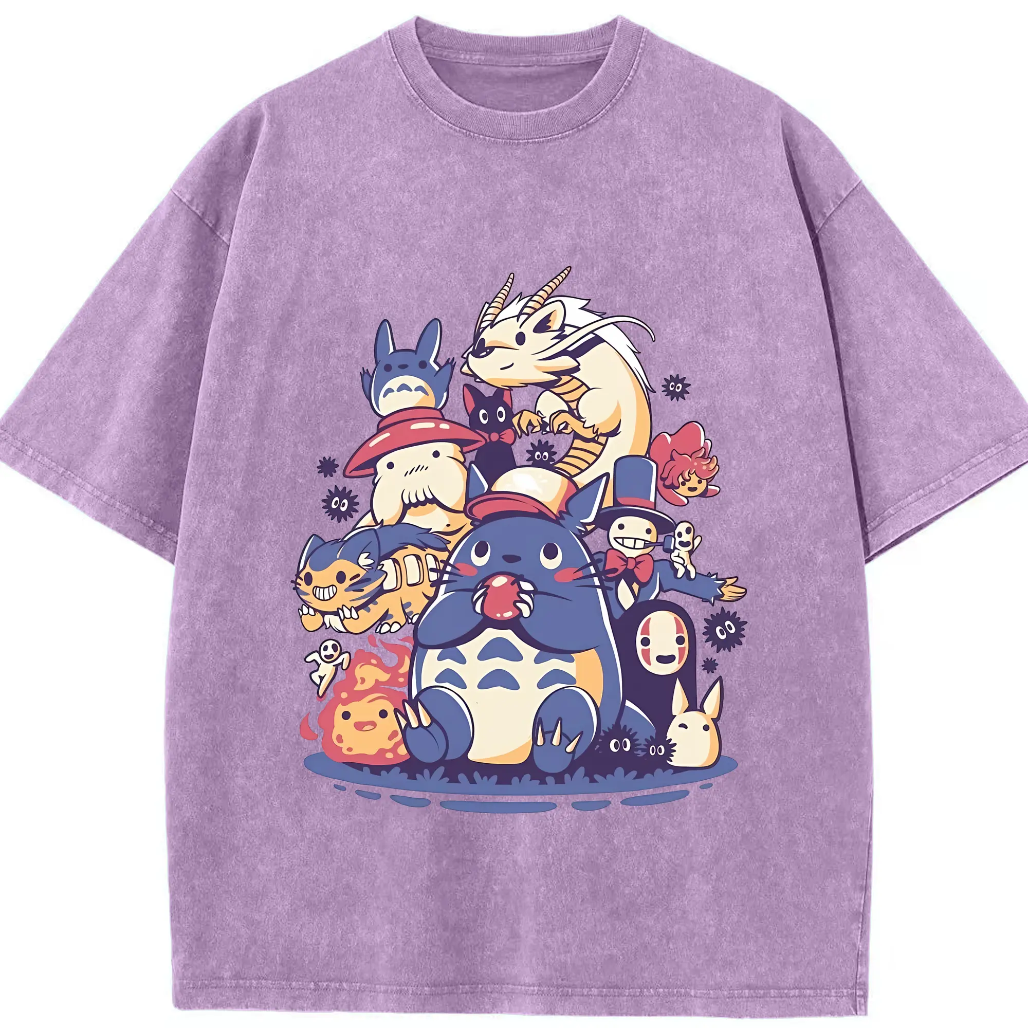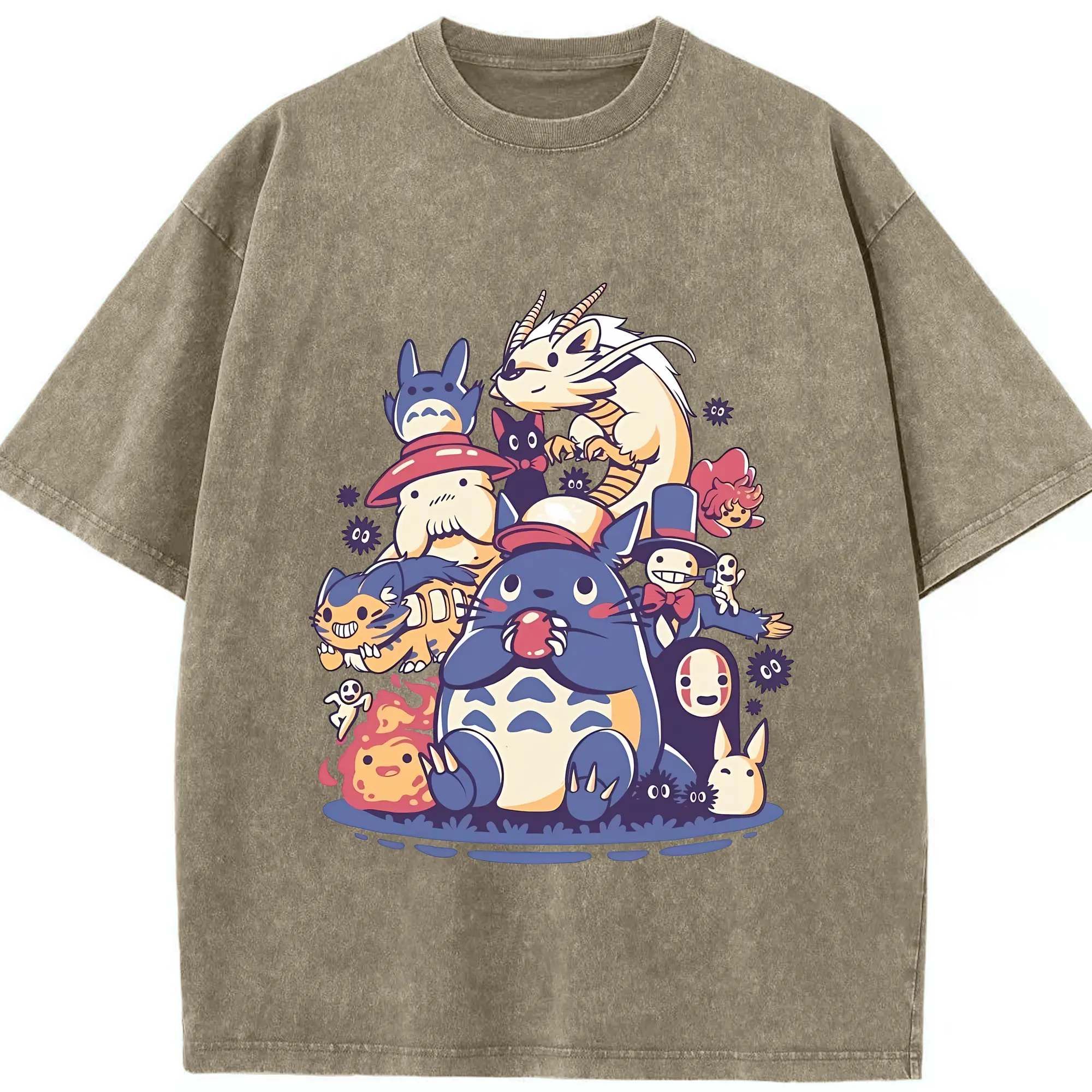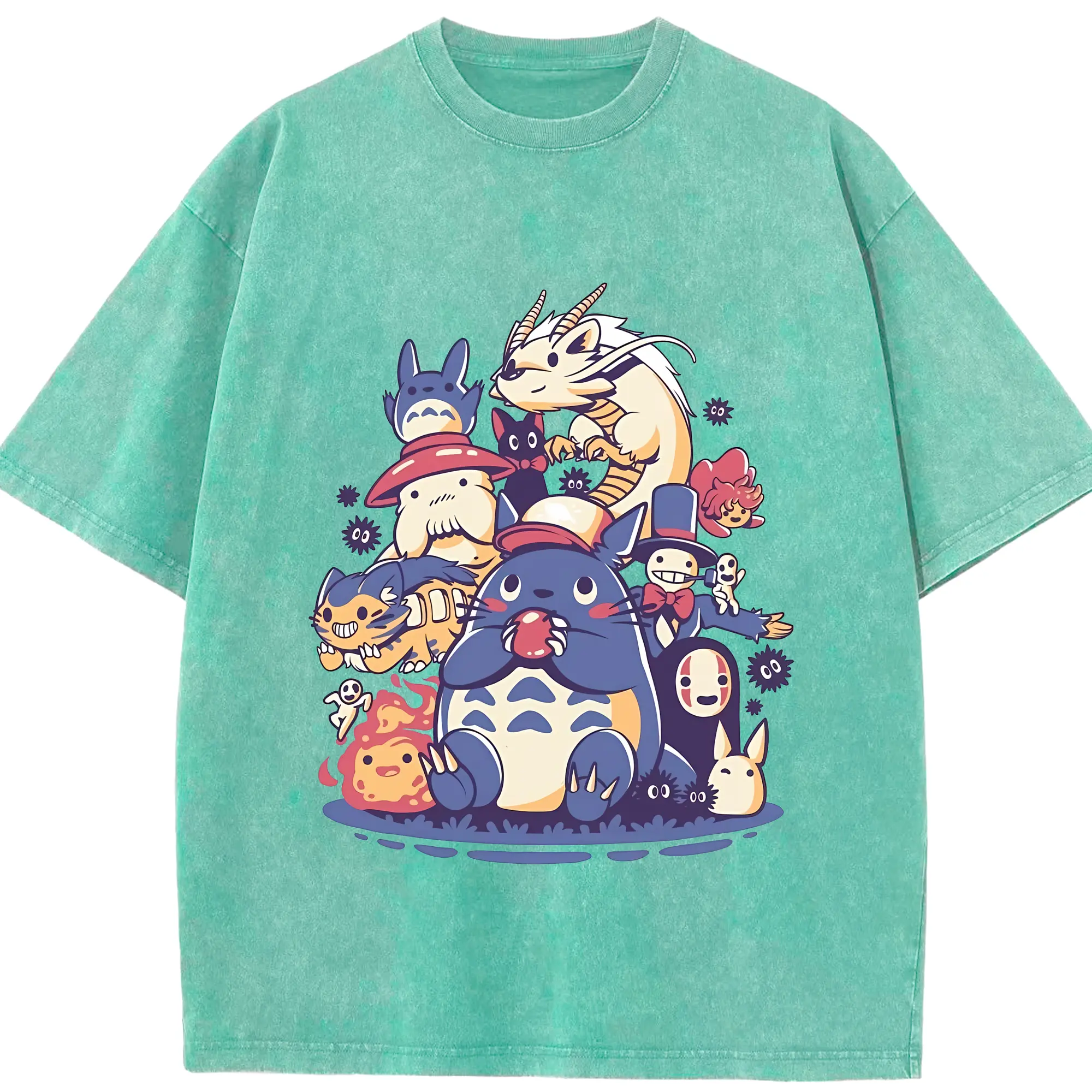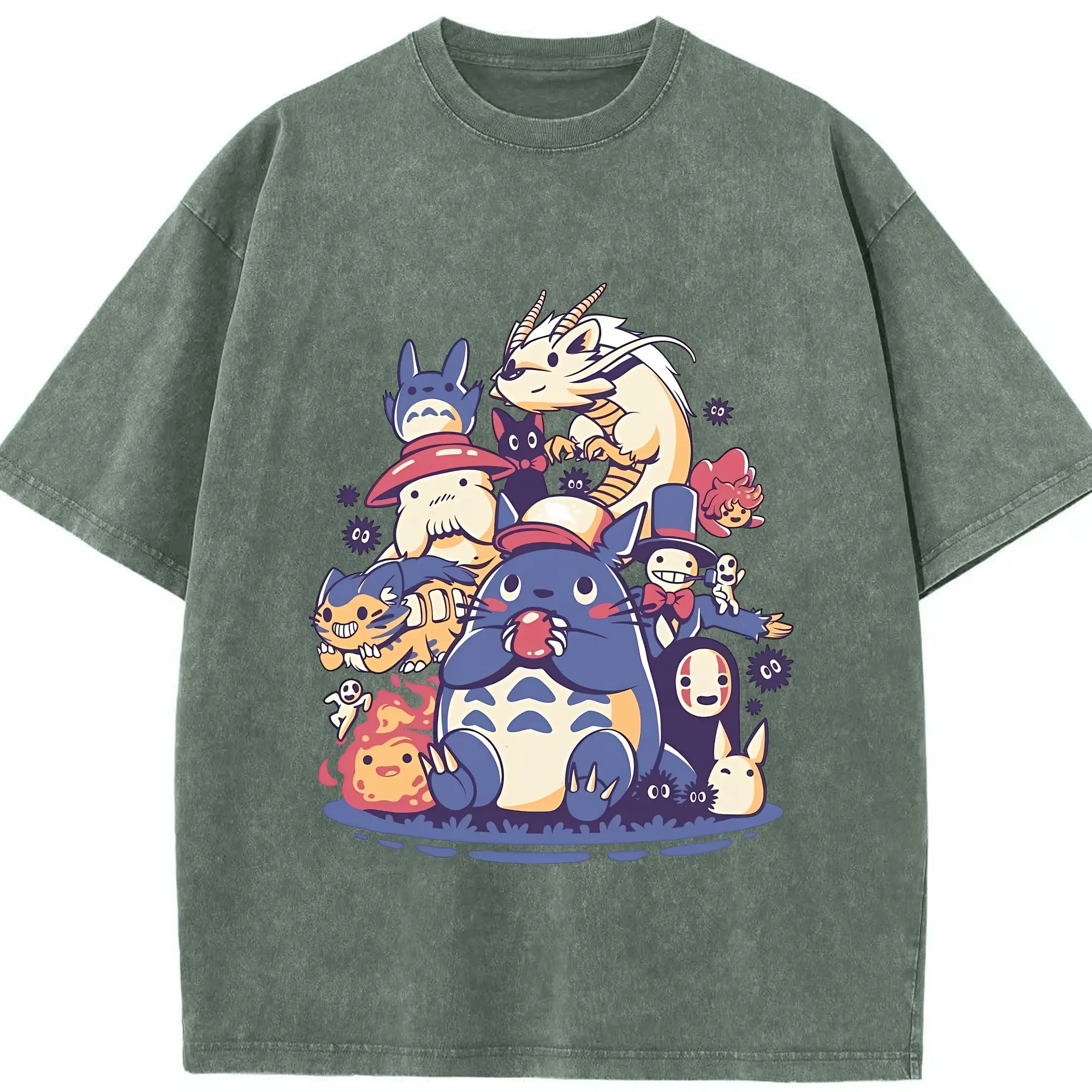 となりのトトロ グッズ トトロ - 綿100% ヴィンテージ風 半袖Tシャツ ・ 背面プリント ・ 柔らか肌触り ・ 通気性 快適 ・ スポーツ カジュアル 外出用