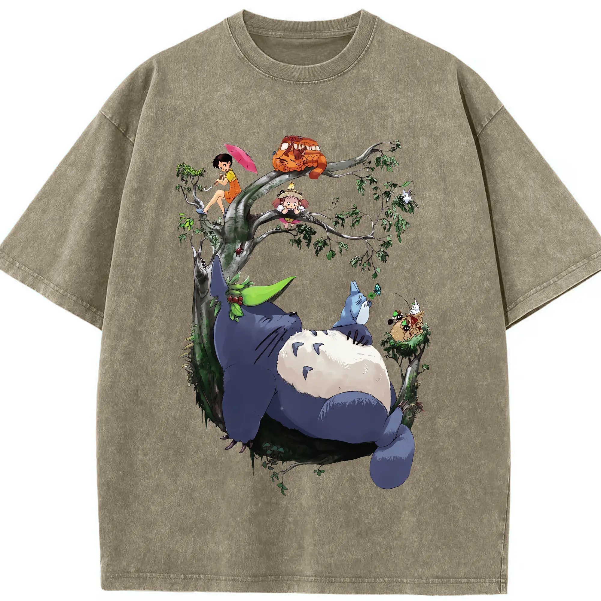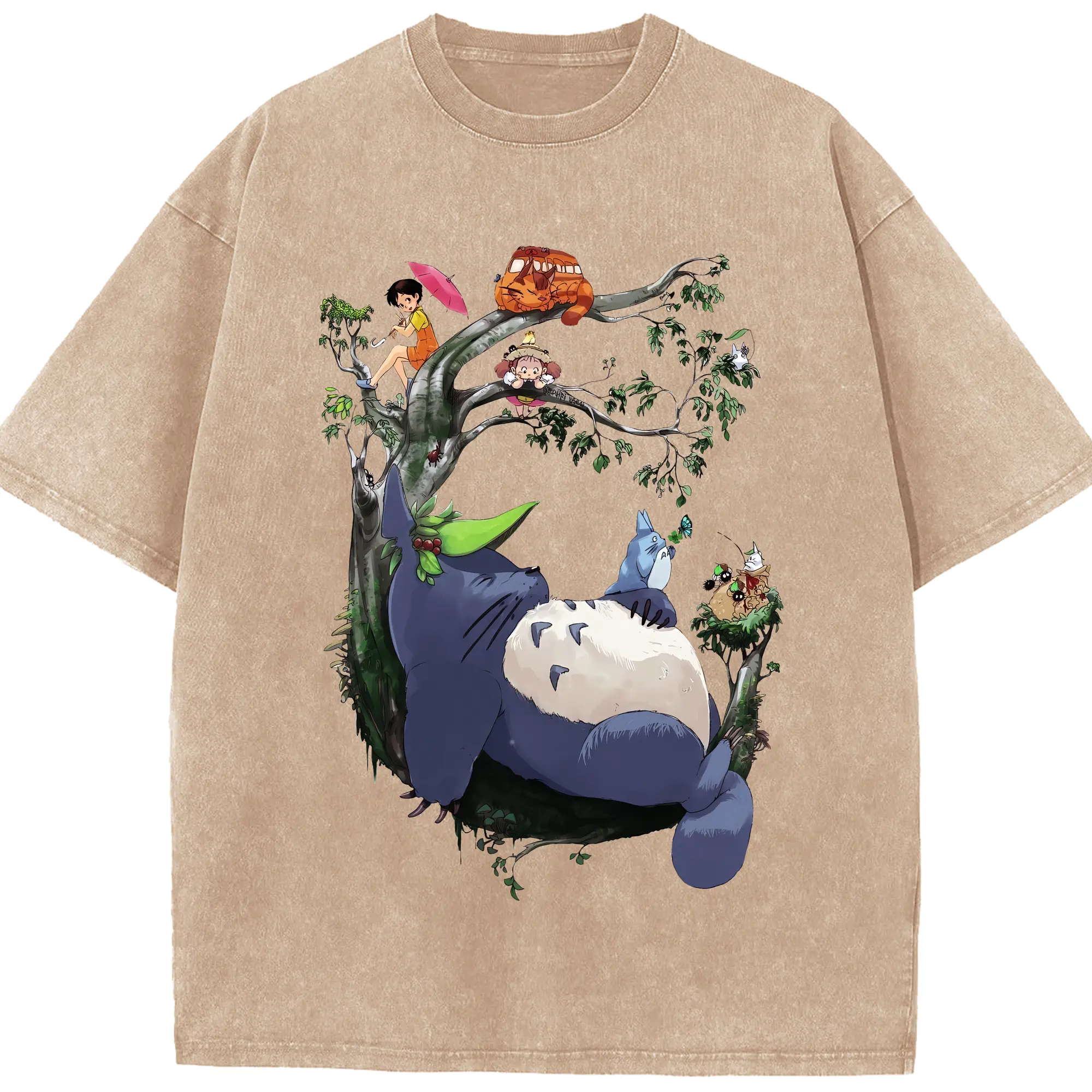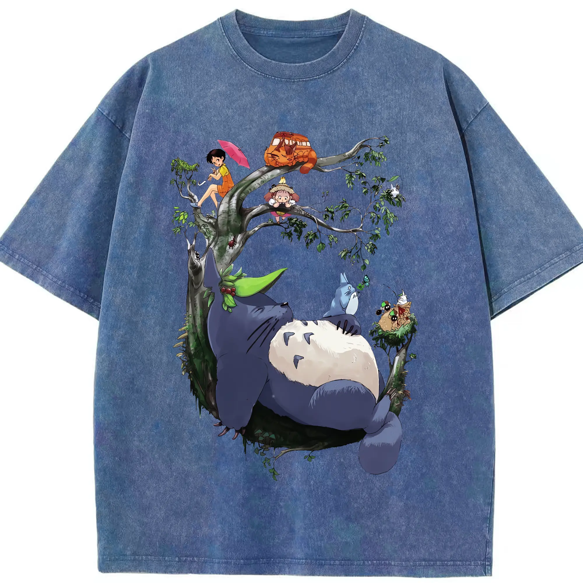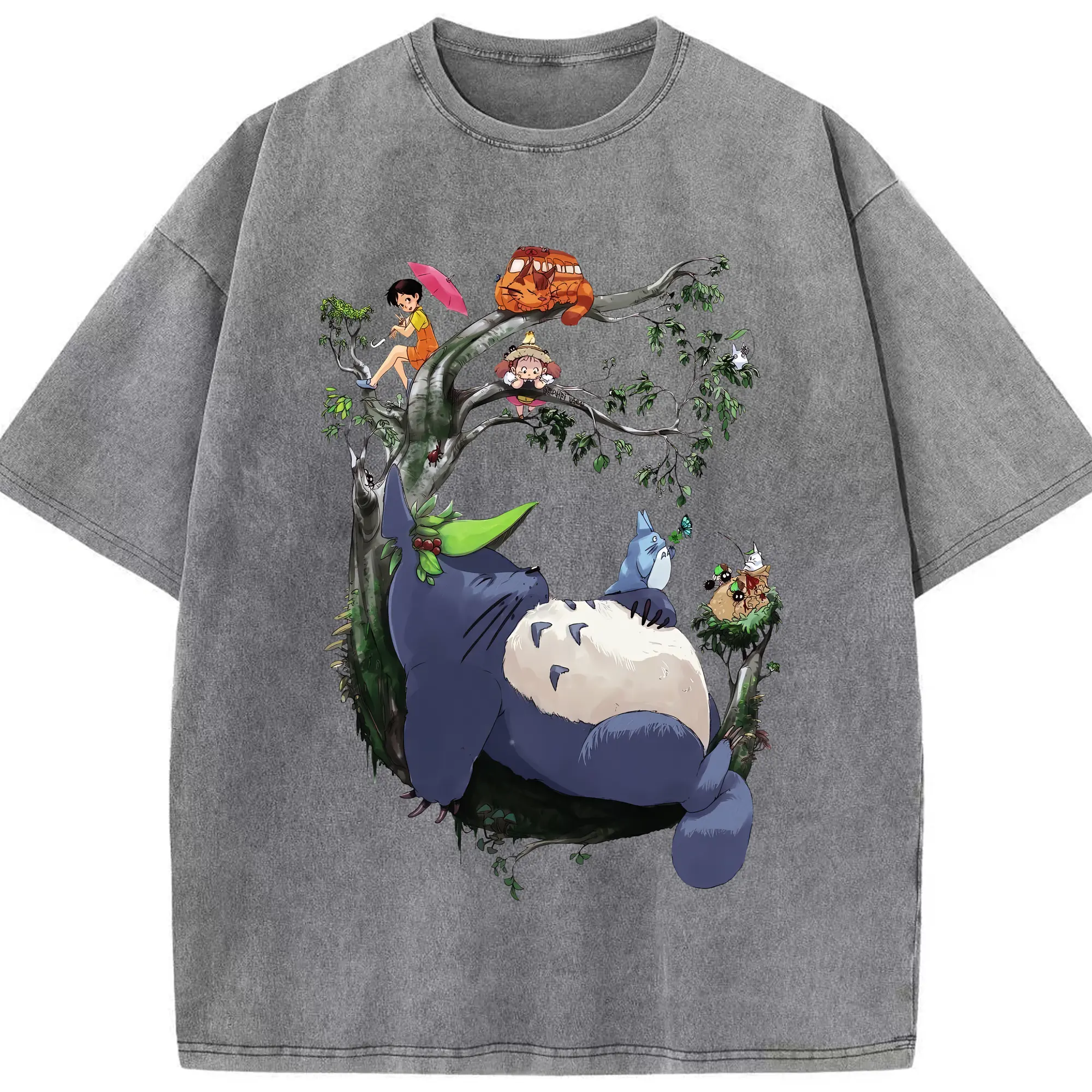となりのトトロ グッズ トトロ - 綿100% ヴィンテージ風 半袖Tシャツ ・ 背面プリント ・ 柔らか肌触り ・ 通気性 快適 ・ スポーツ カジュアル 外出用