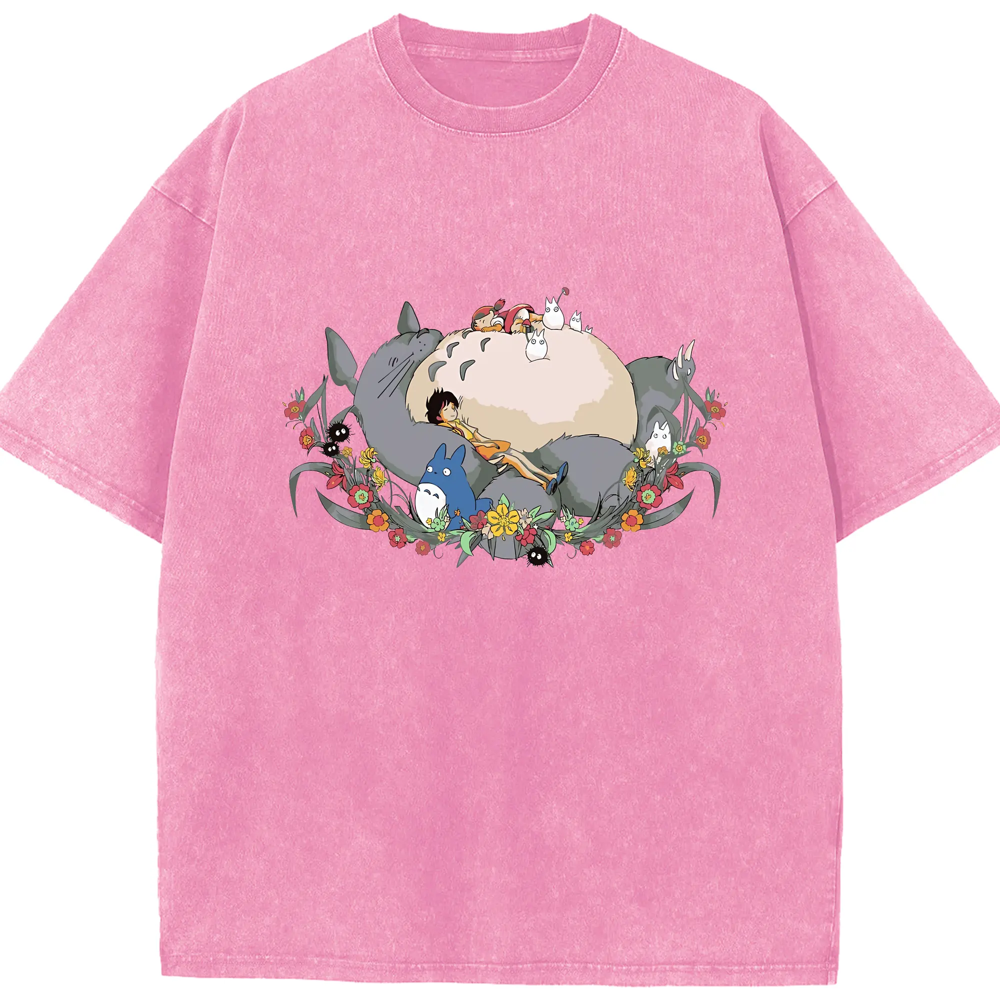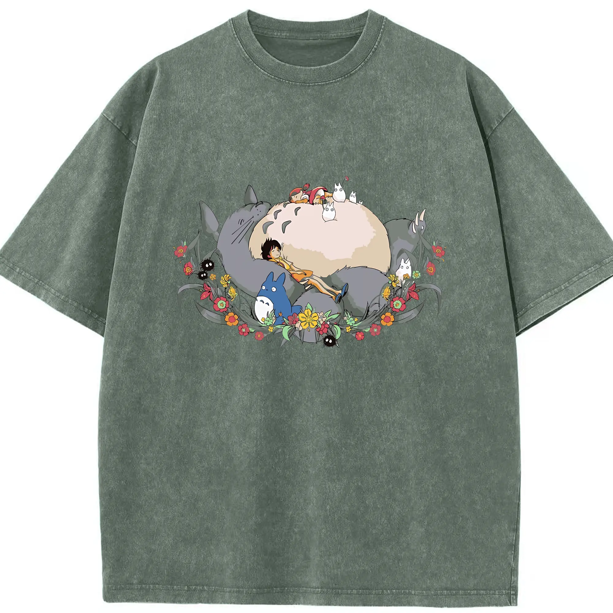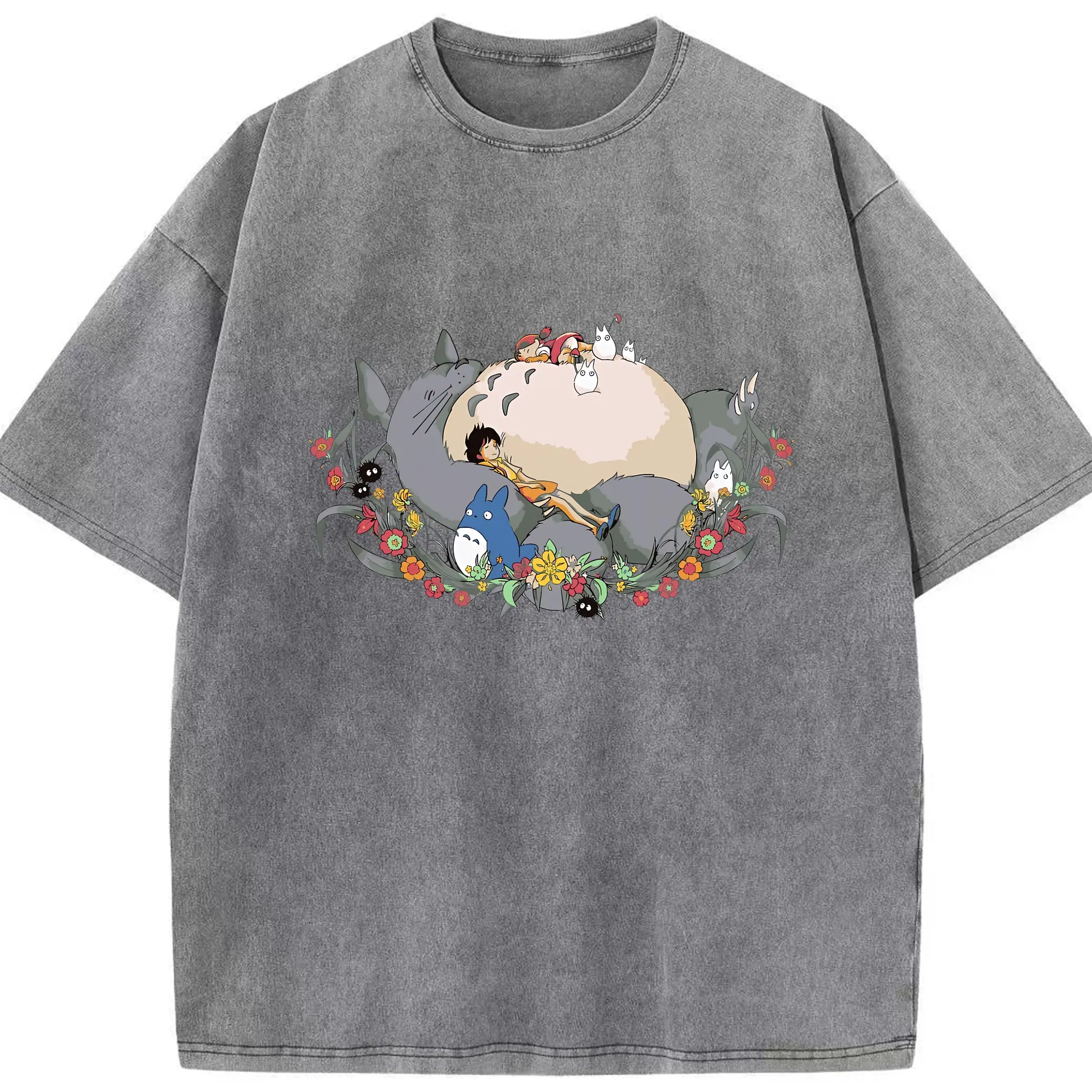 となりのトトロ グッズ トトロ - 綿100% ヴィンテージ風 半袖Tシャツ ・ 背面プリント ・ 柔らか肌触り ・ 通気性 快適 ・ スポーツ カジュアル 外出用