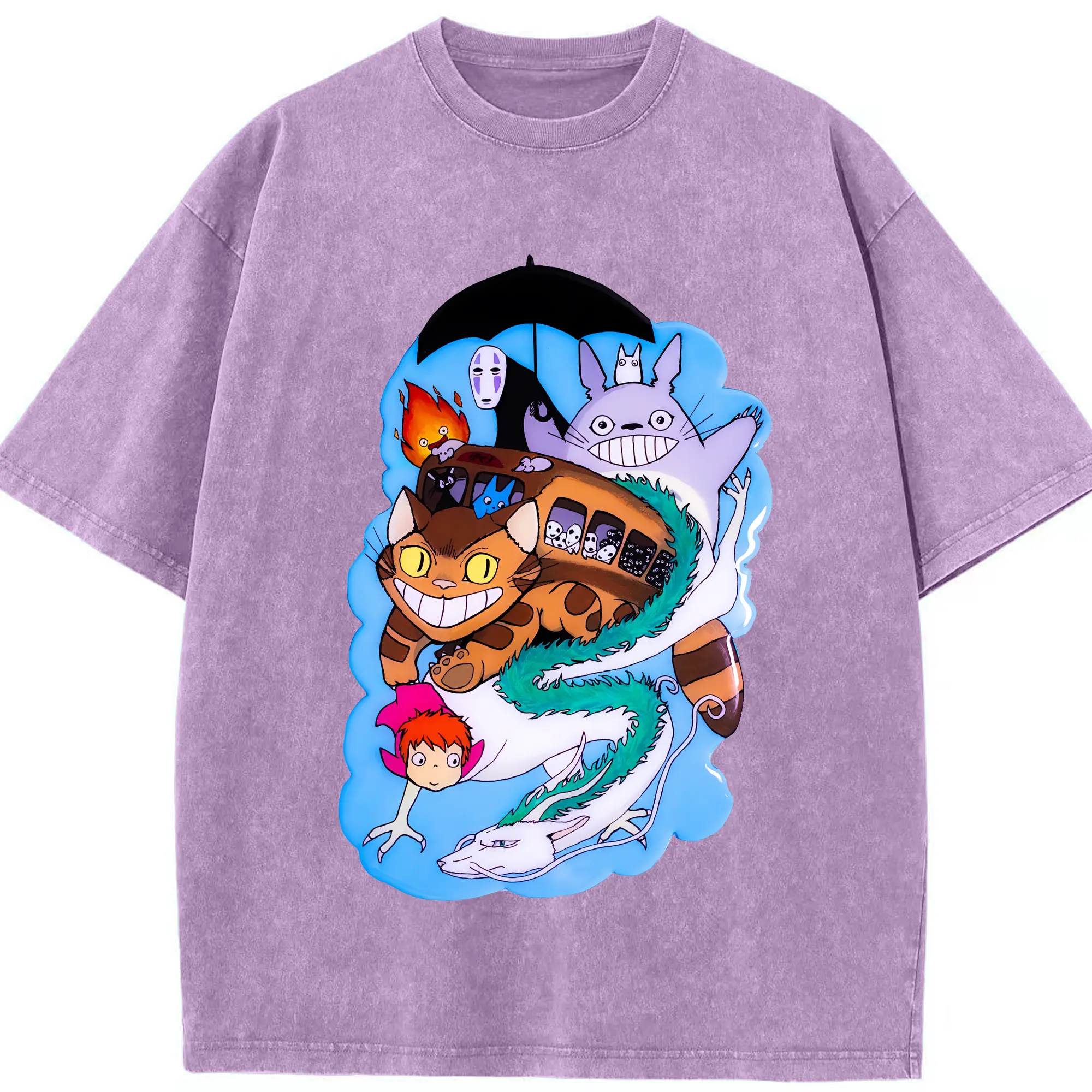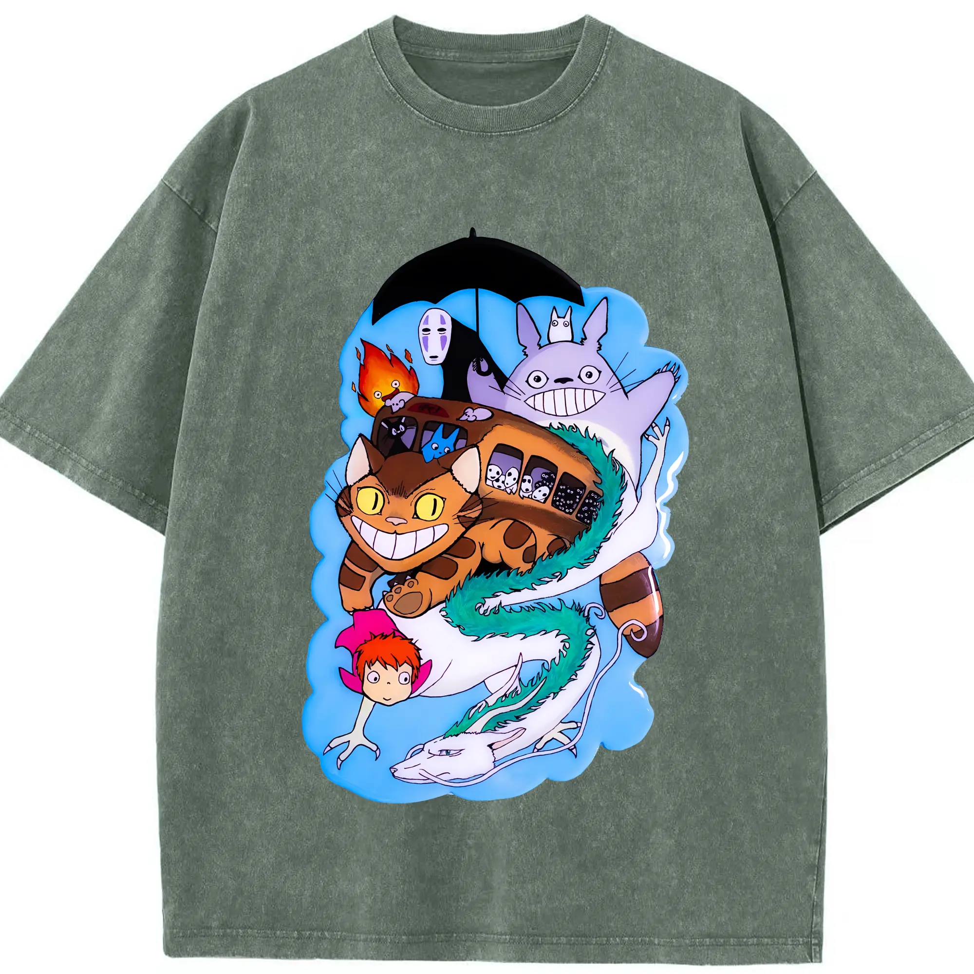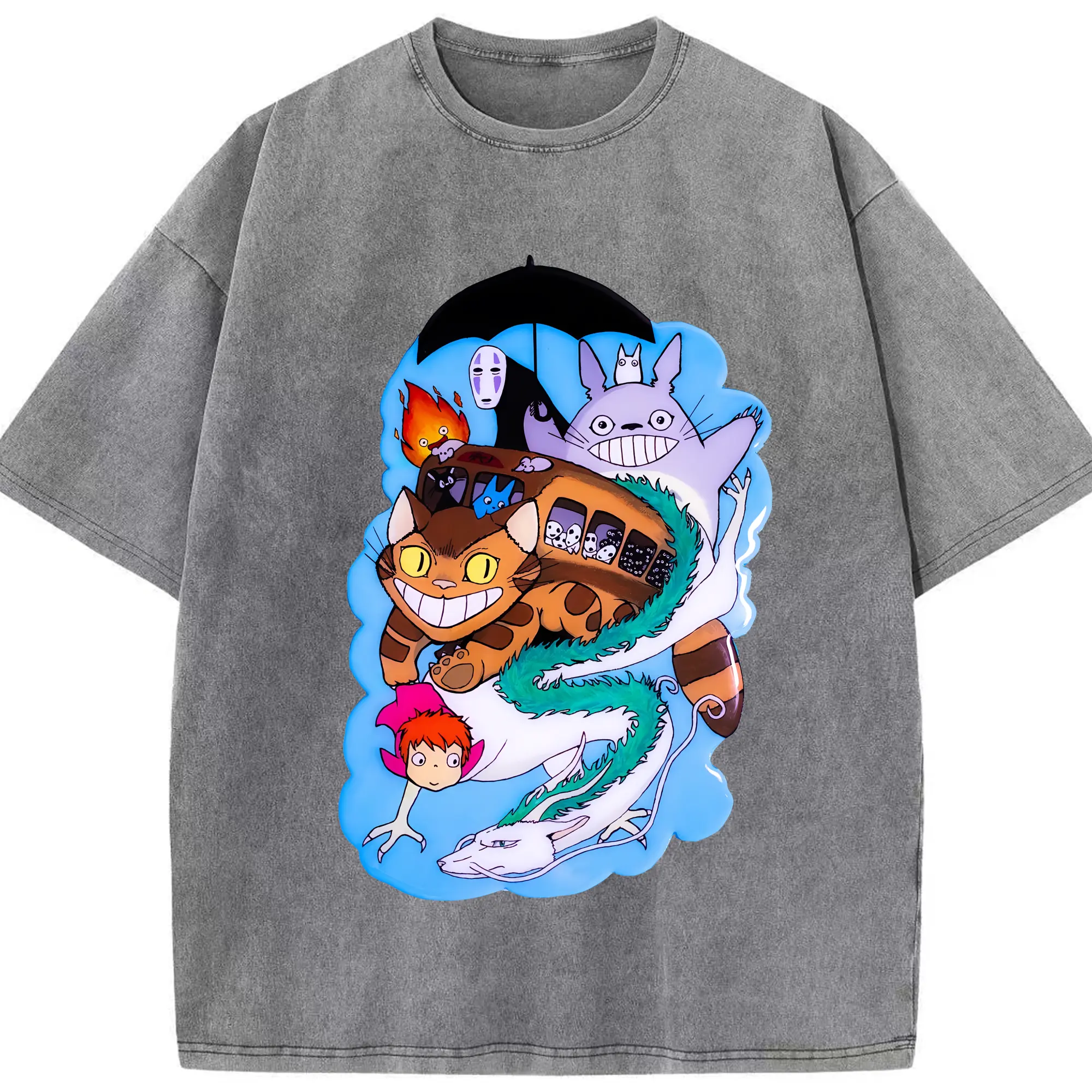 となりのトトロ グッズ トトロ - 綿100% ヴィンテージ風 半袖Tシャツ ・ 背面プリント ・ 柔らか肌触り ・ 通気性 快適 ・ スポーツ カジュアル 外出用