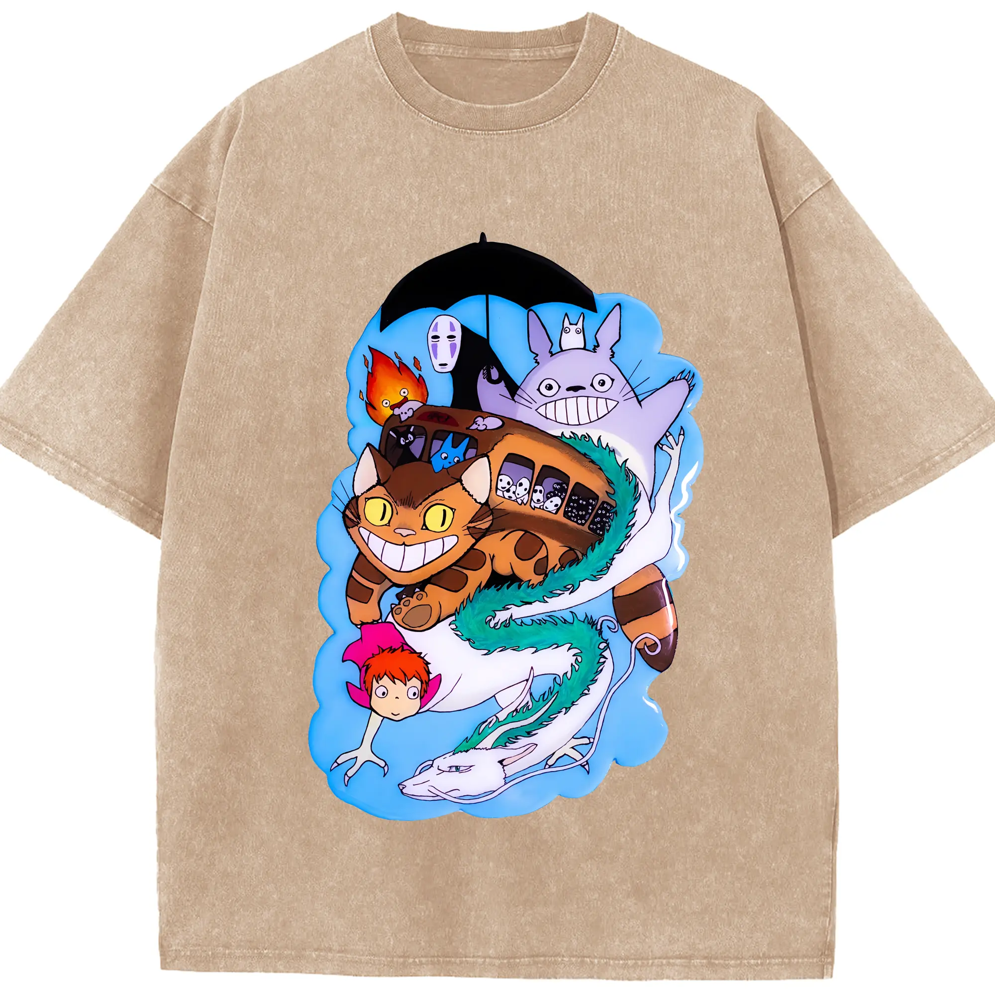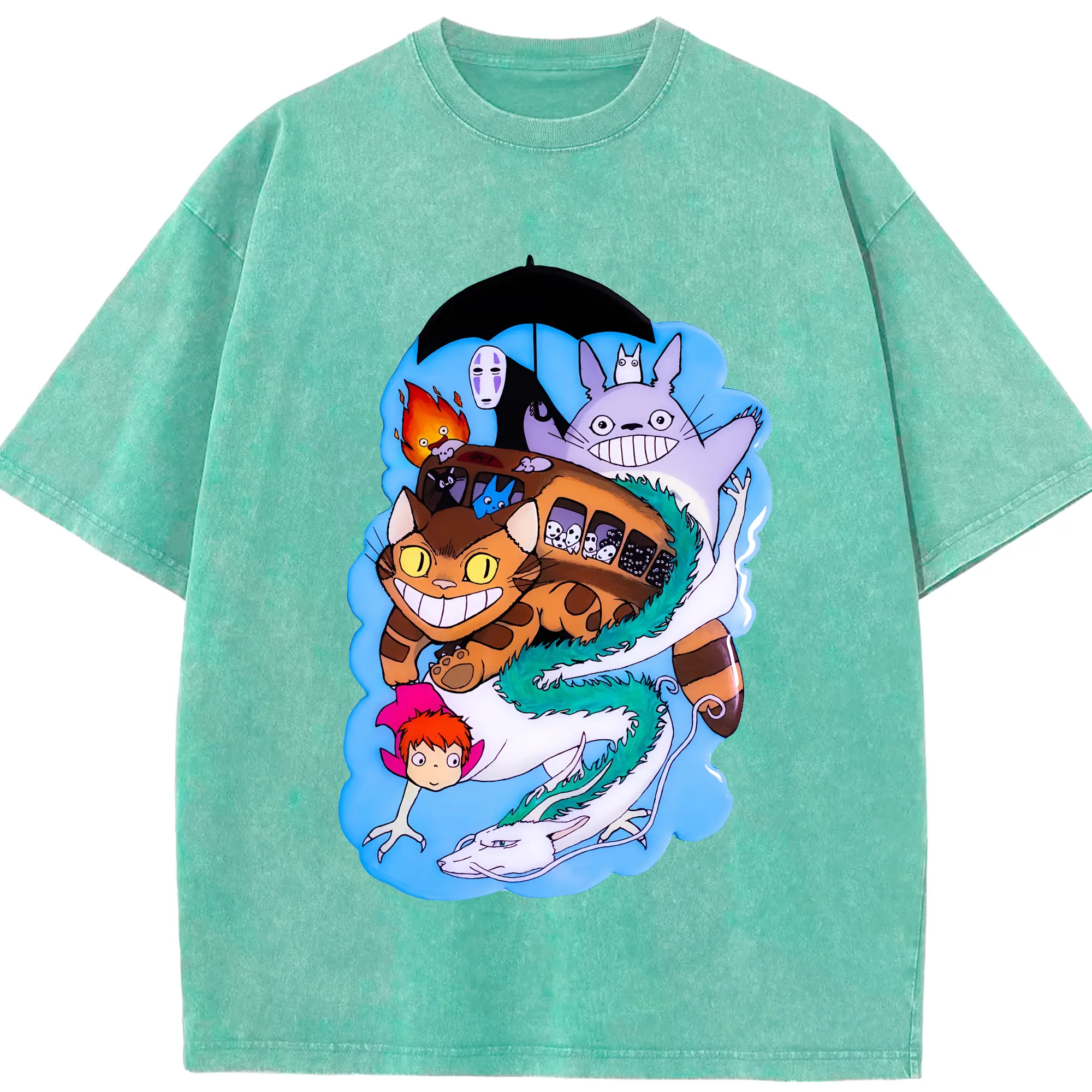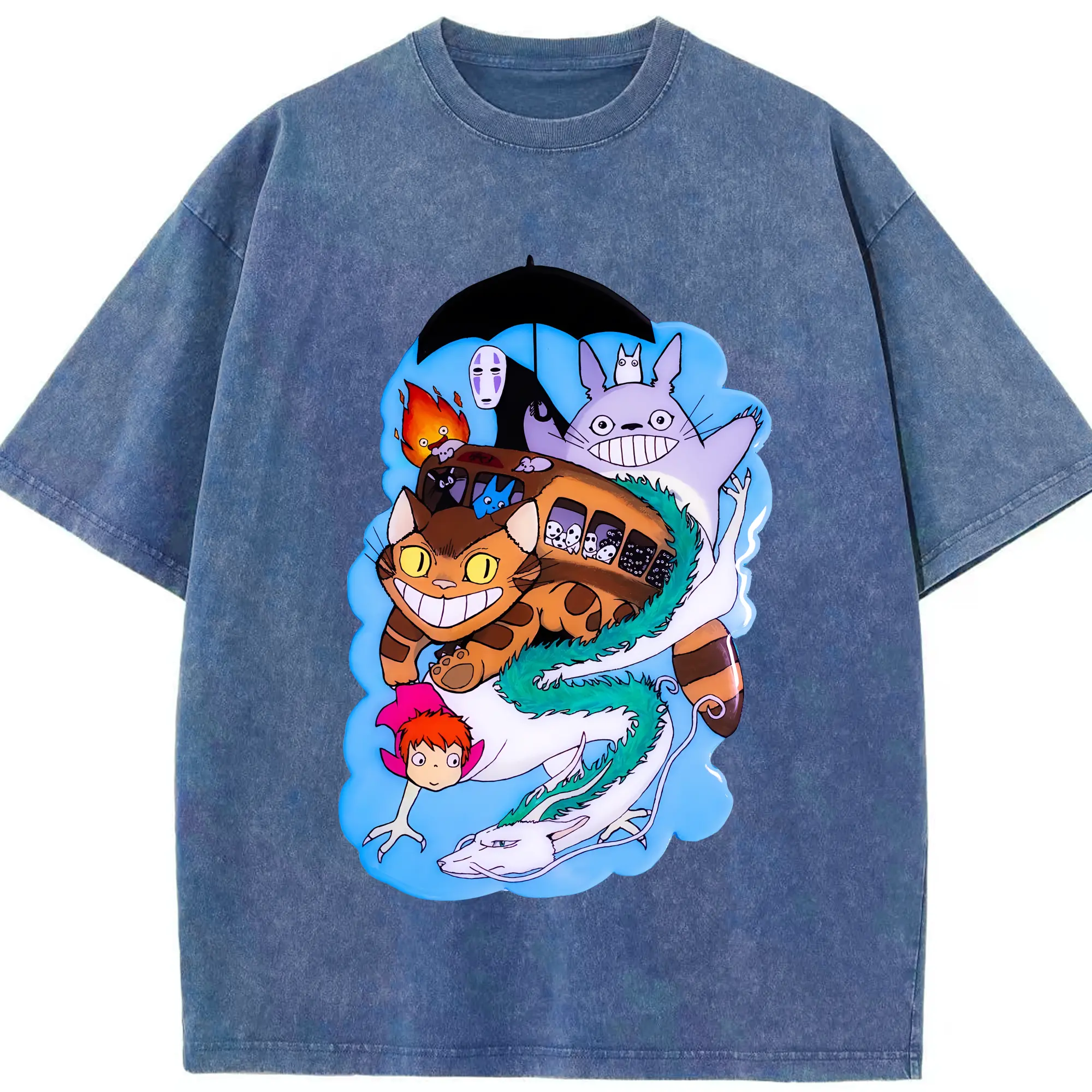 となりのトトロ グッズ トトロ - 綿100% ヴィンテージ風 半袖Tシャツ ・ 背面プリント ・ 柔らか肌触り ・ 通気性 快適 ・ スポーツ カジュアル 外出用