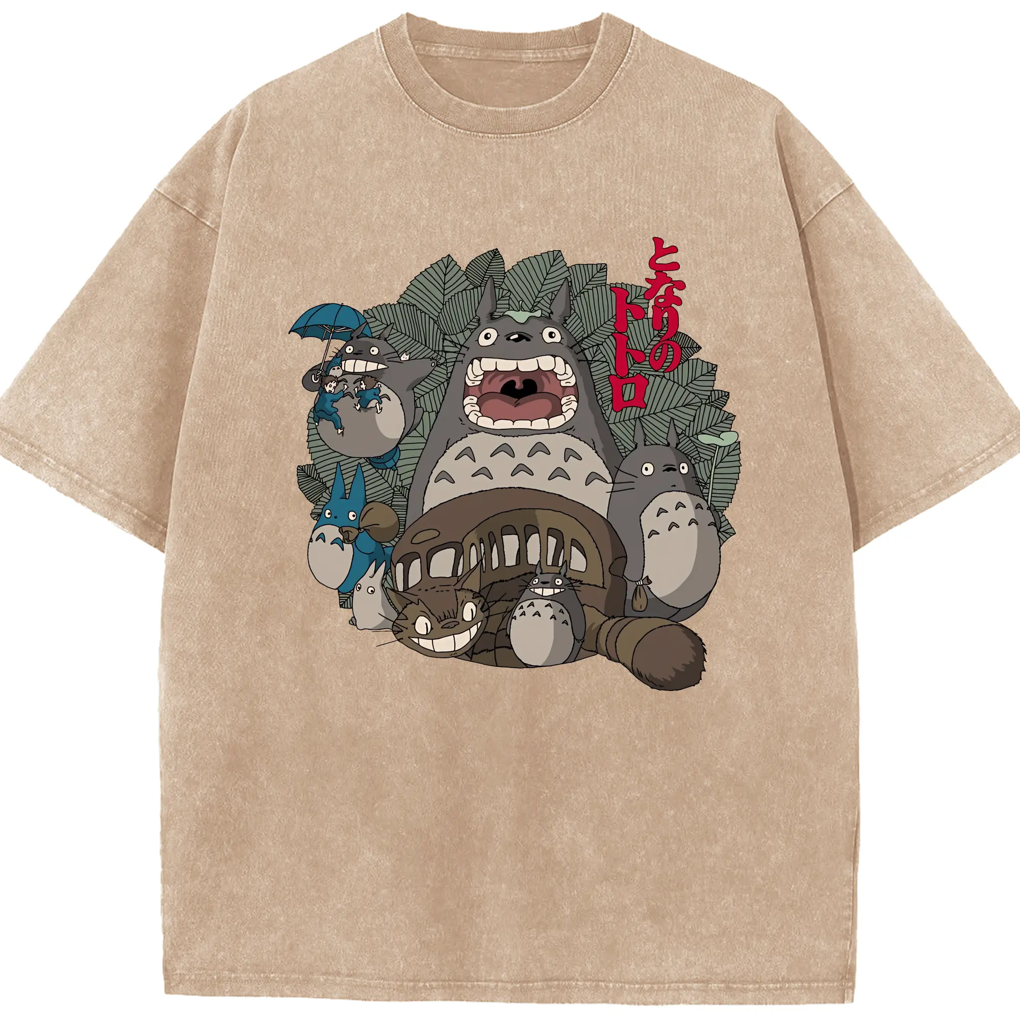 となりのトトロ グッズ トトロ - 綿100% ヴィンテージ風 半袖Tシャツ ・ 背面プリント ・ 柔らか肌触り ・ 通気性 快適 ・ スポーツ カジュアル 外出用
