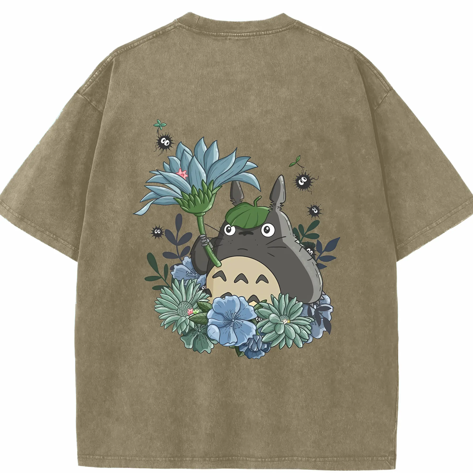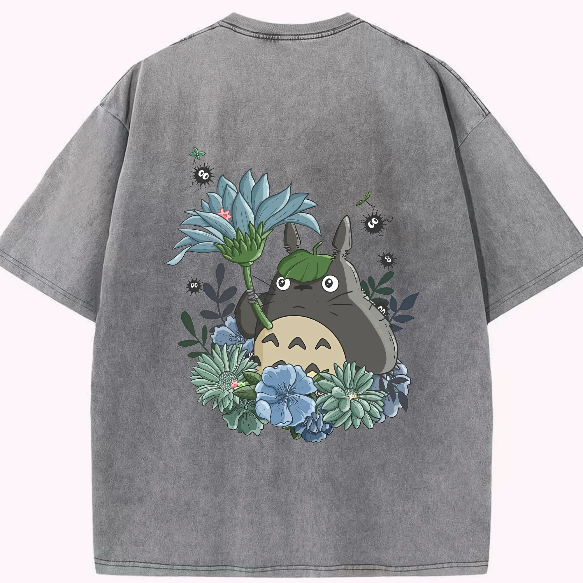 となりのトトロ グッズ トトロ - 綿100% ヴィンテージ風 半袖Tシャツ ・ フロントプリント ・ 柔らか肌触り ・ 通気性 快適 ・ スポーツ カジュアル 外出用