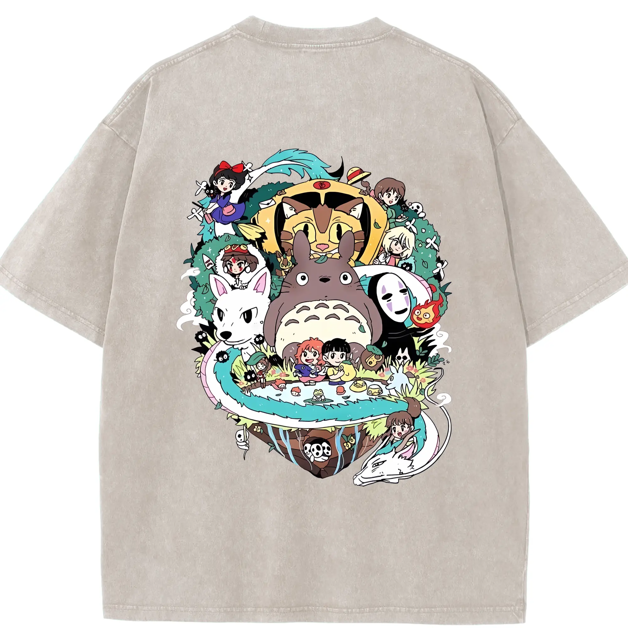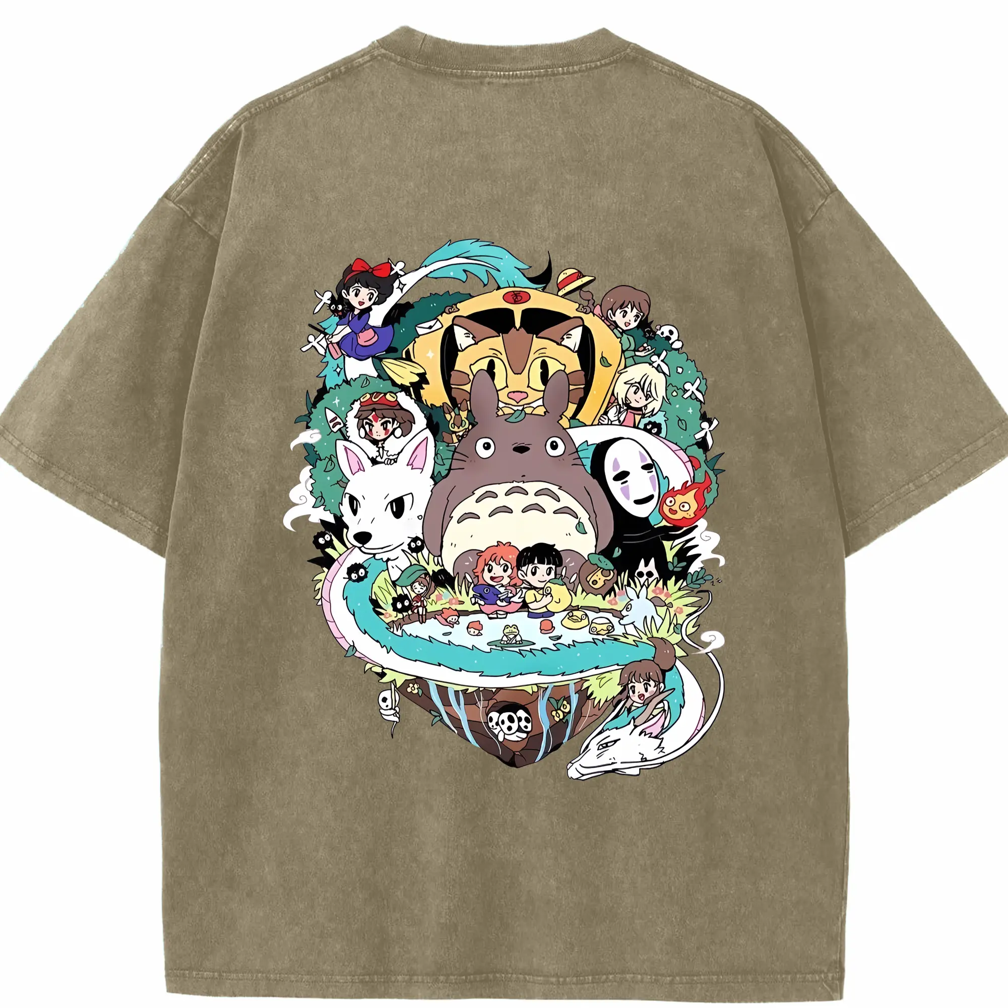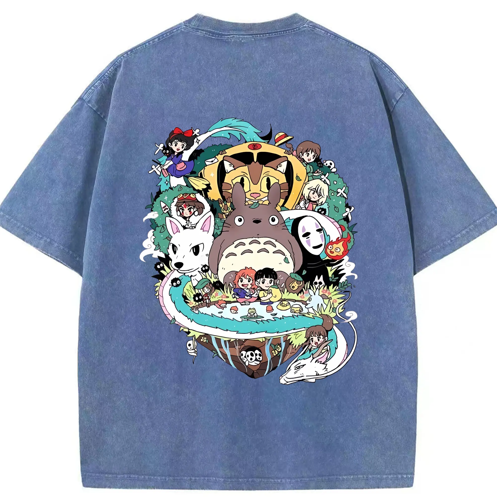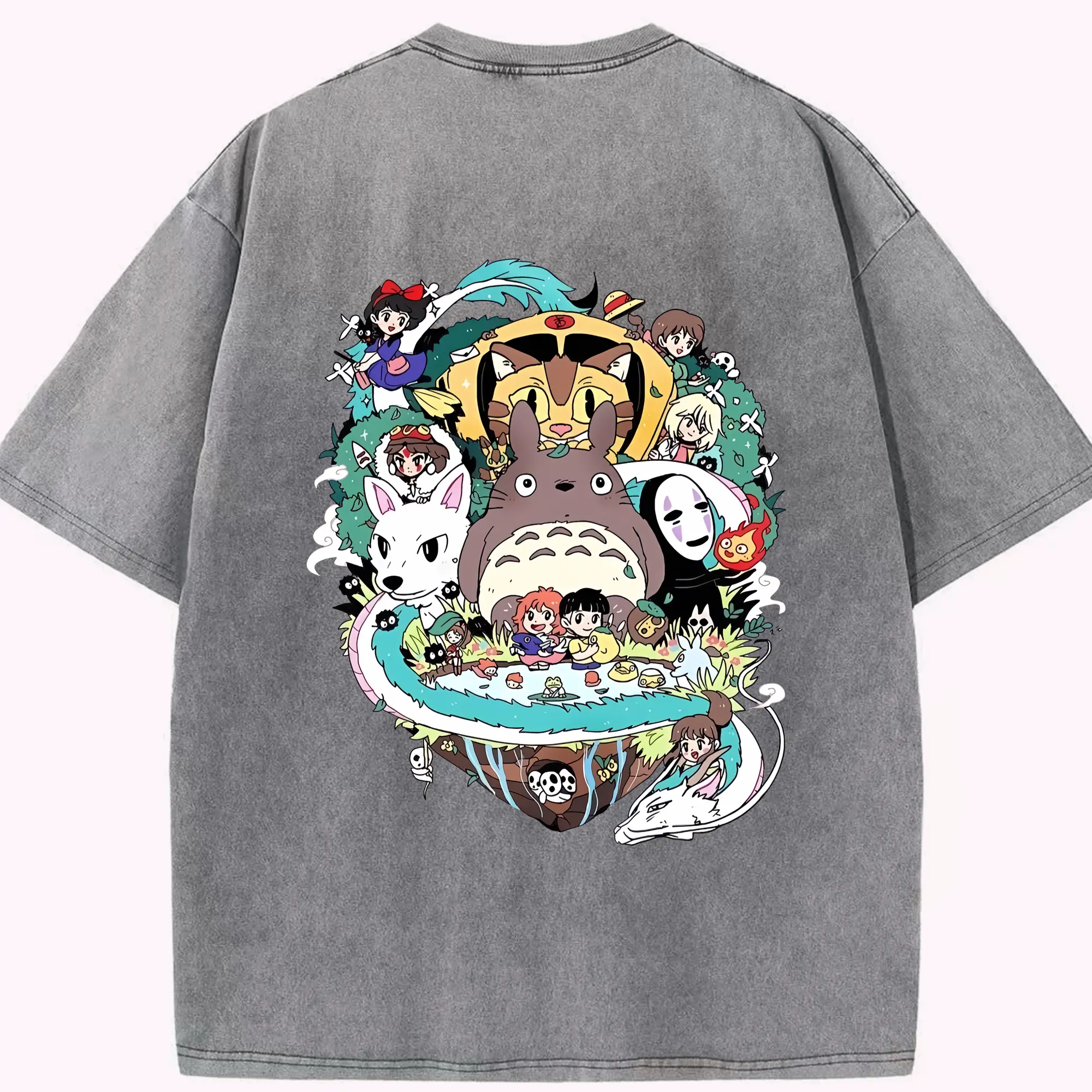 となりのトトロ グッズ トトロ - 綿100% ヴィンテージ風 半袖Tシャツ ・ フロントプリント ・ 柔らか肌触り ・ 通気性 快適 ・ スポーツ カジュアル 外出用
