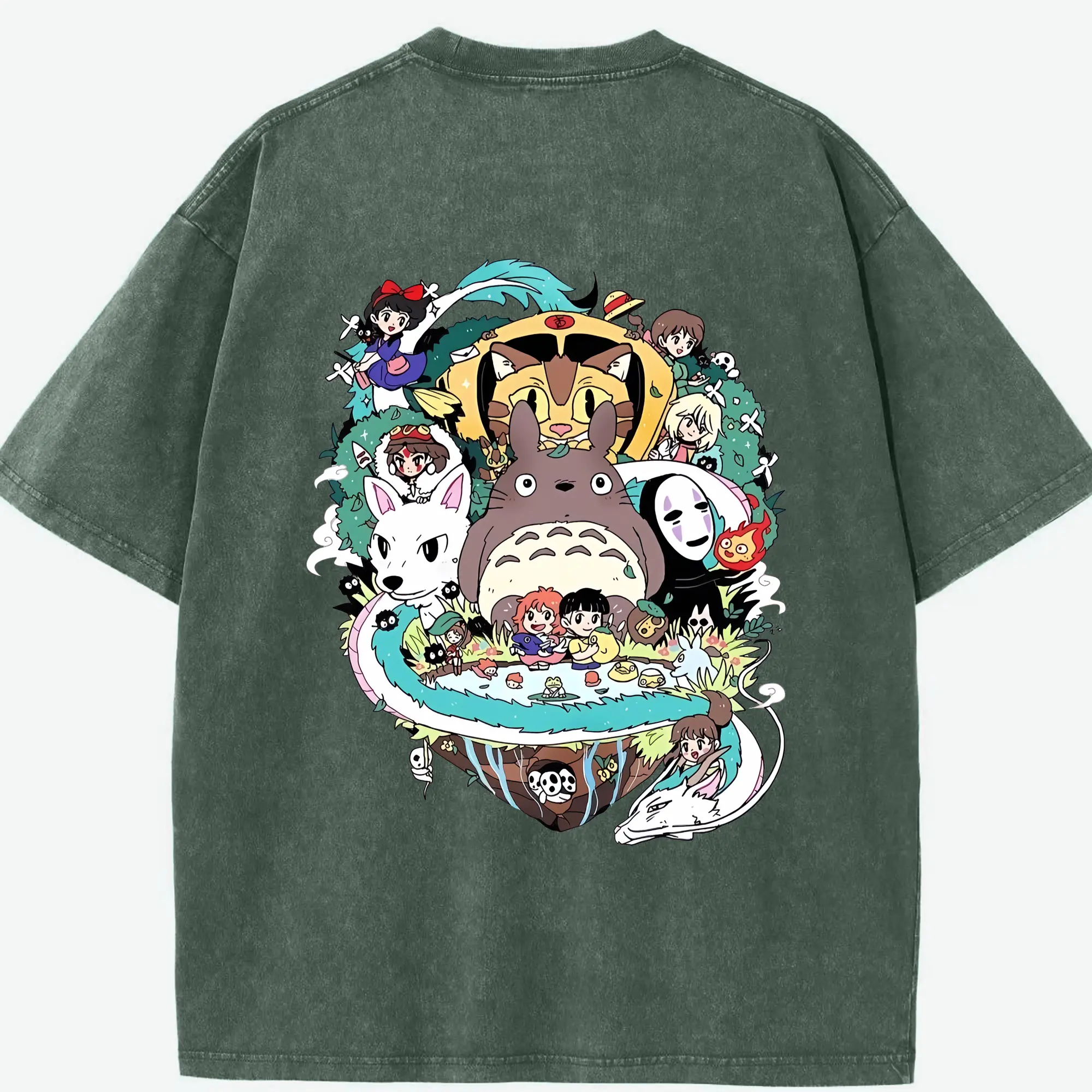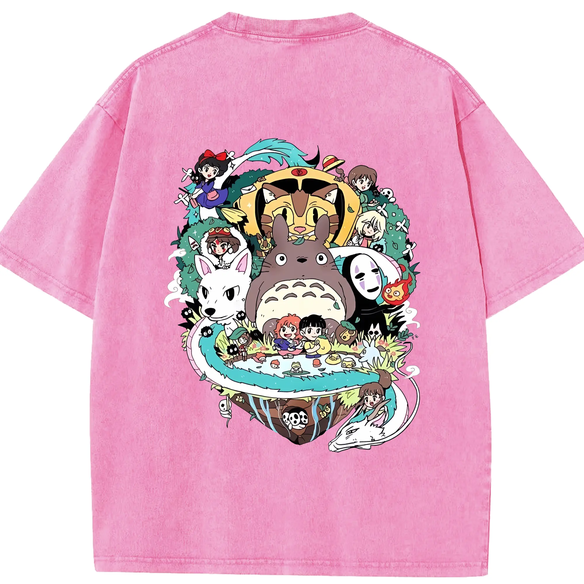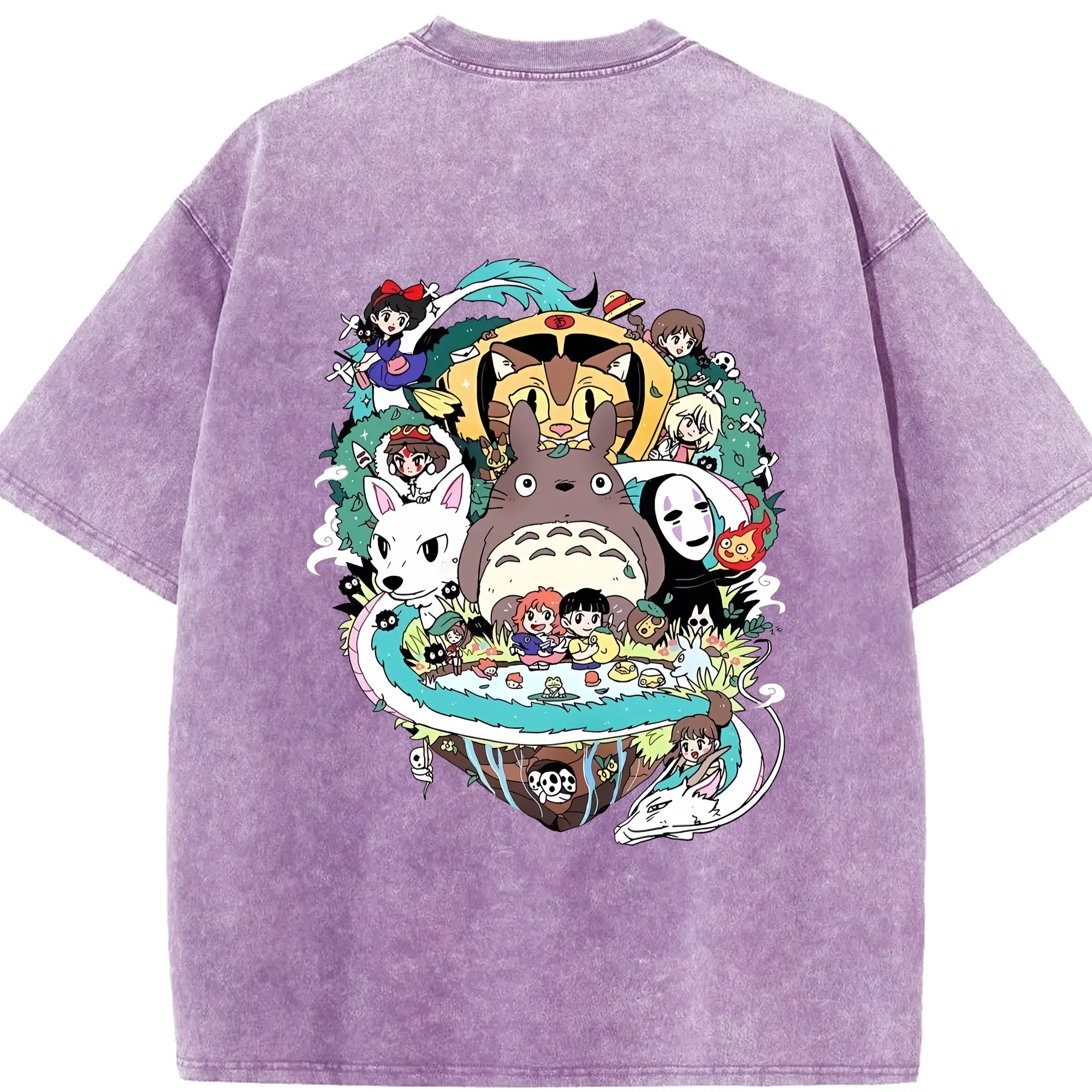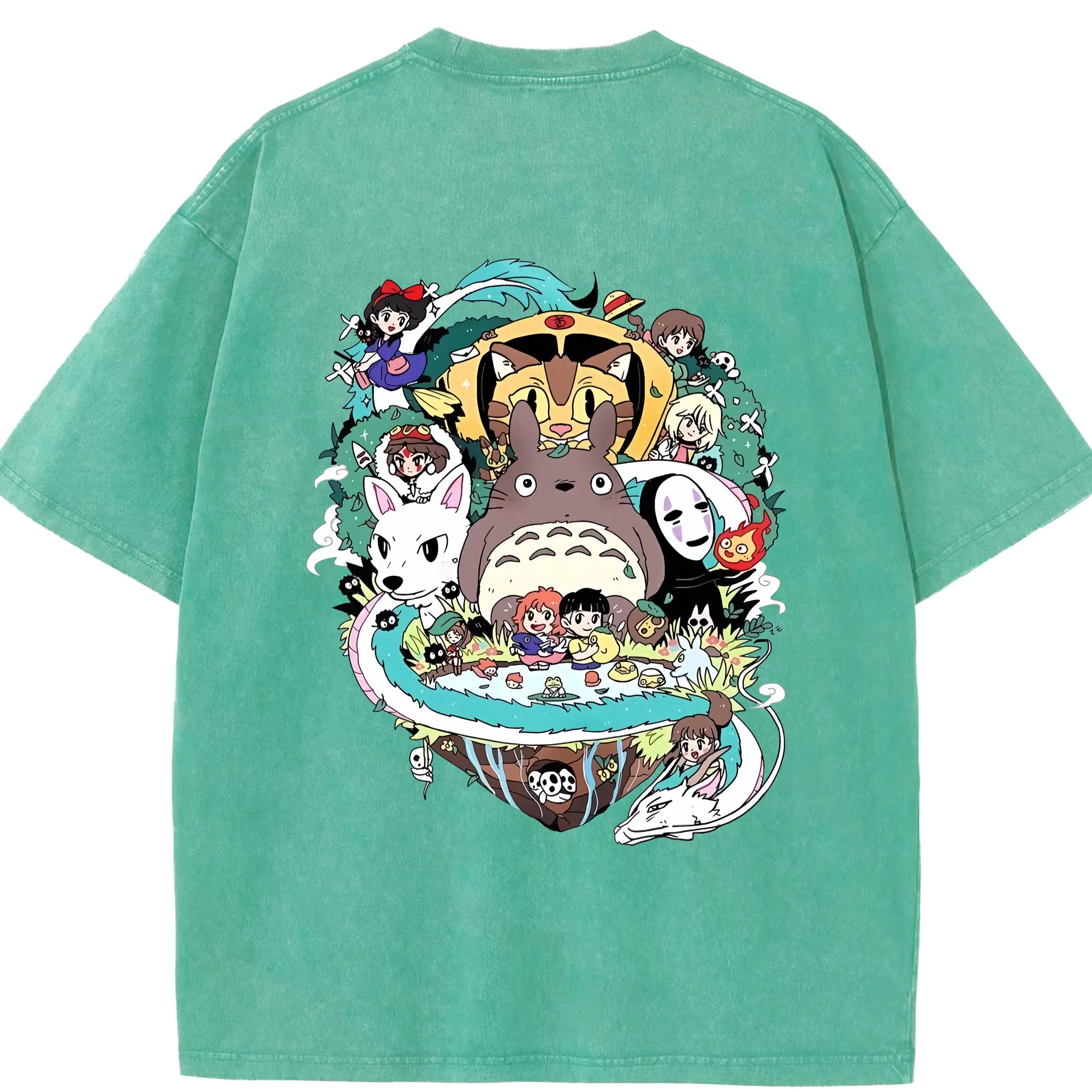 となりのトトロ グッズ トトロ - 綿100% ヴィンテージ風 半袖Tシャツ ・ フロントプリント ・ 柔らか肌触り ・ 通気性 快適 ・ スポーツ カジュアル 外出用