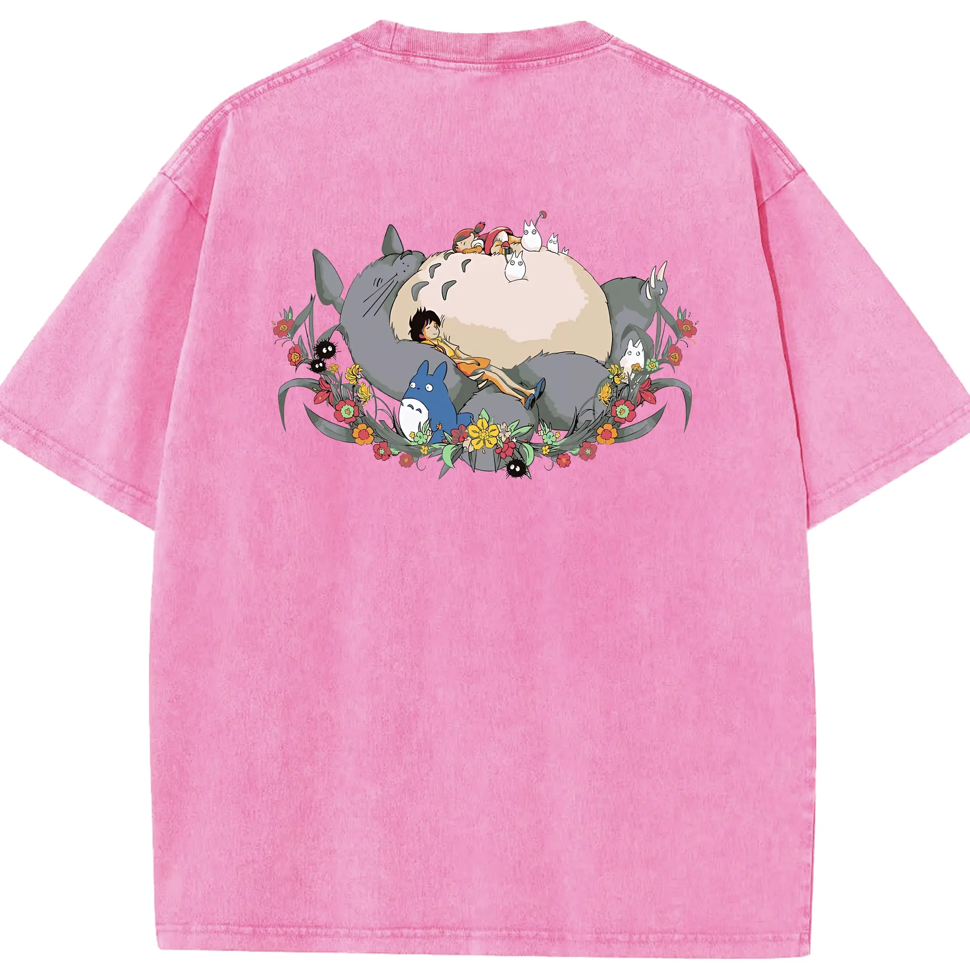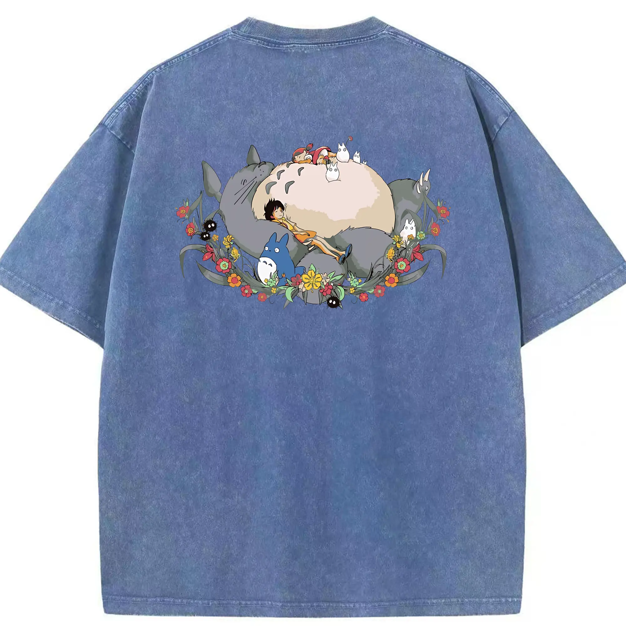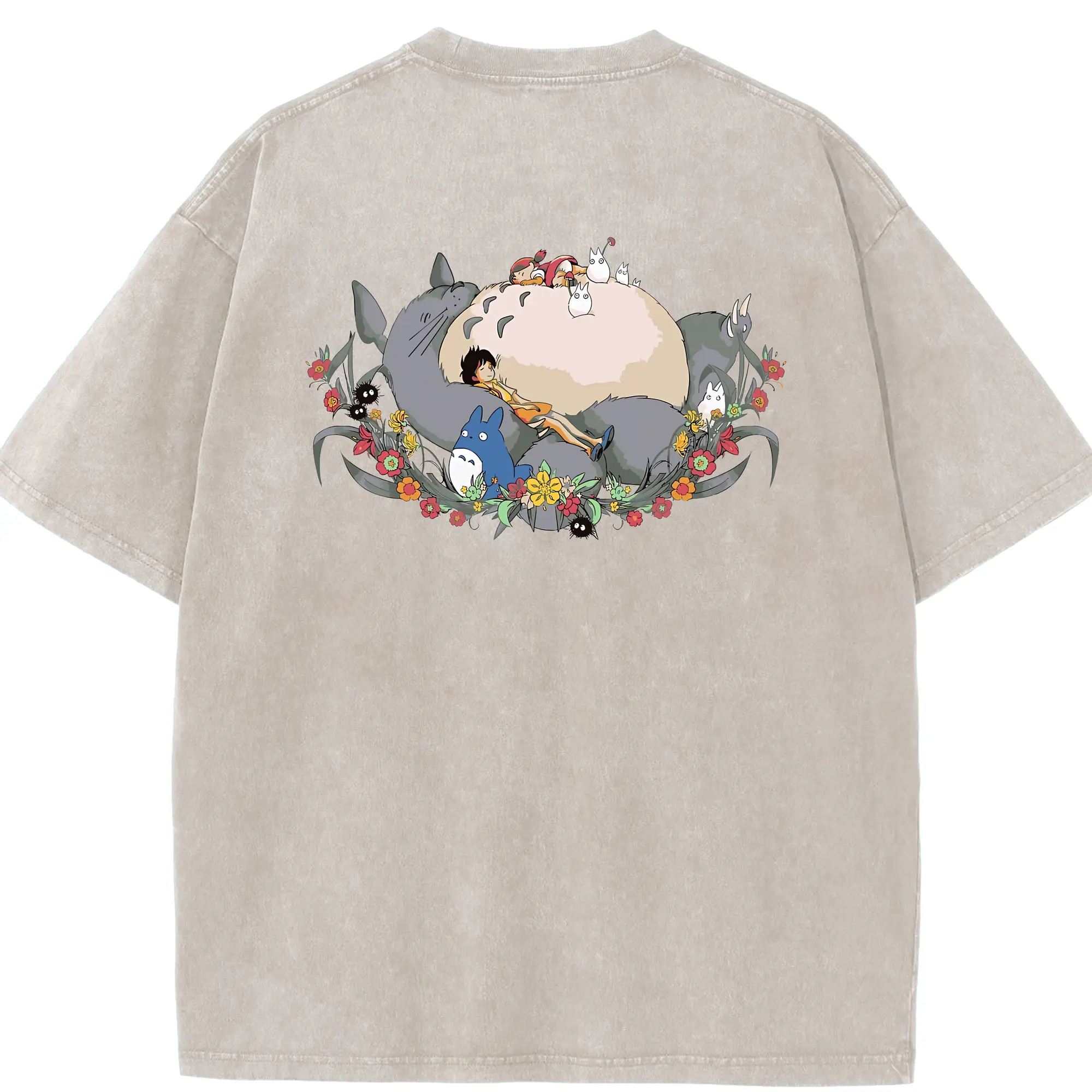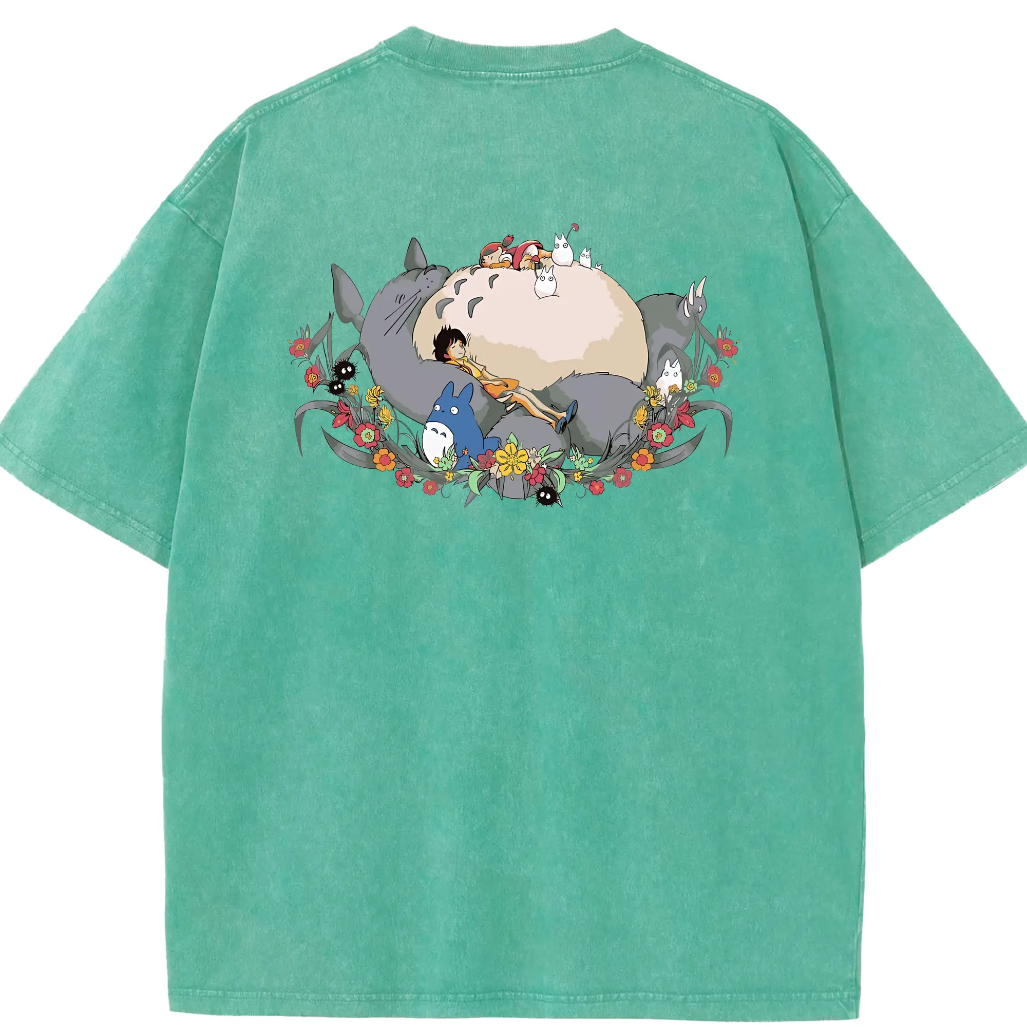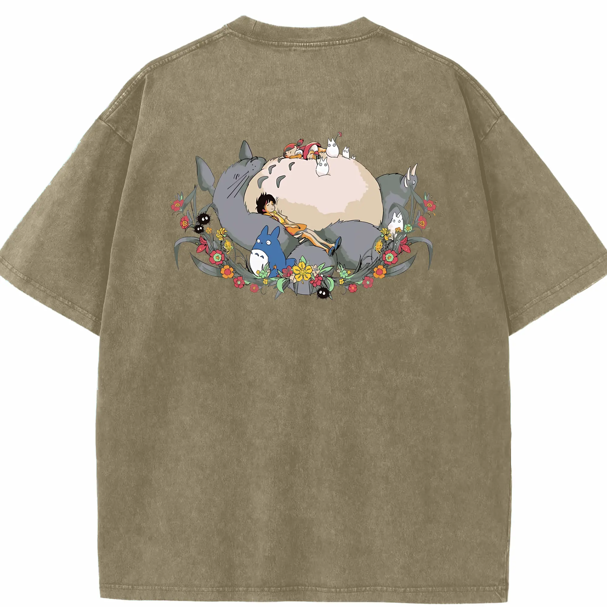 となりのトトロ グッズ トトロ - 綿100% ヴィンテージ風 半袖Tシャツ ・ フロントプリント ・ 柔らか肌触り ・ 通気性 快適 ・ スポーツ カジュアル 外出用