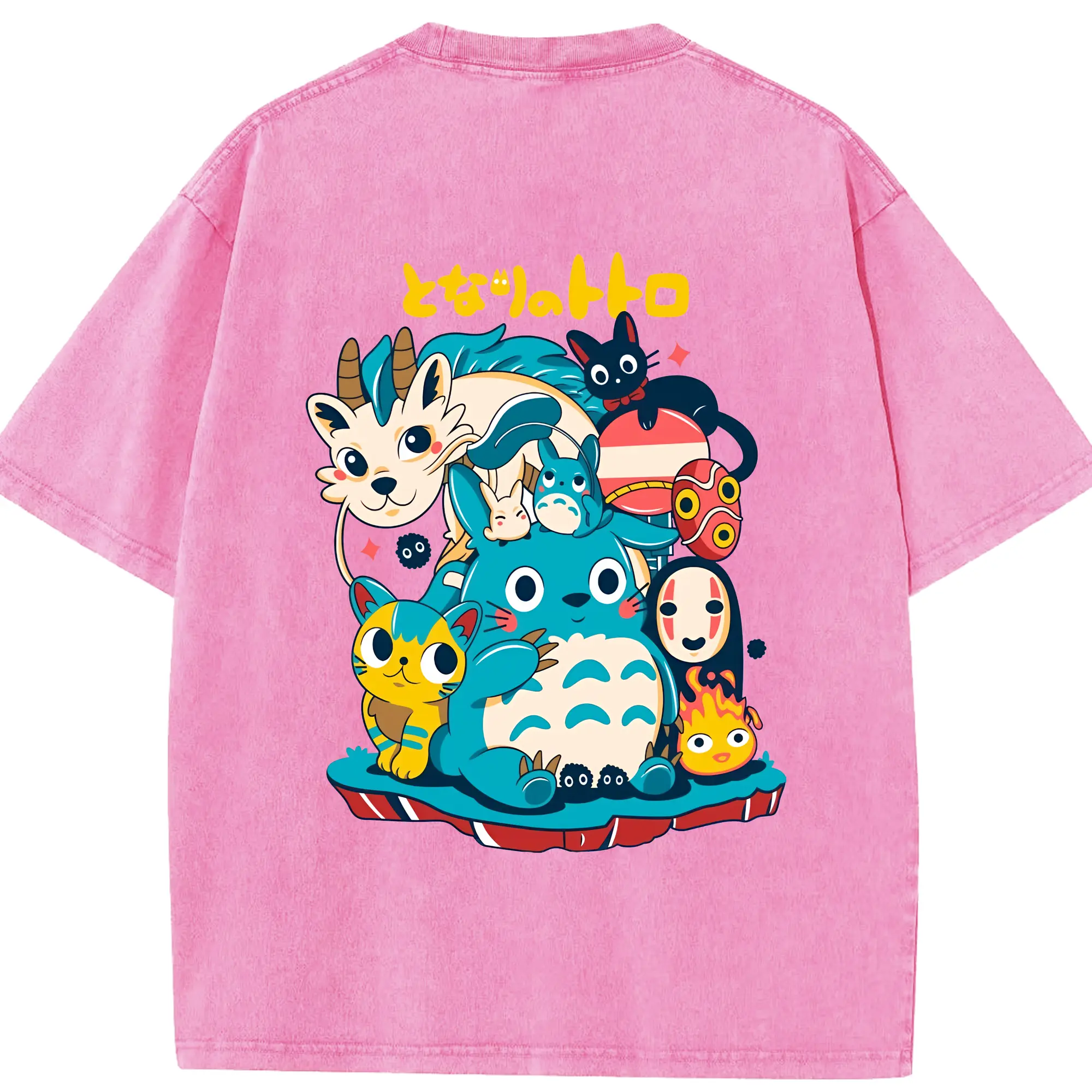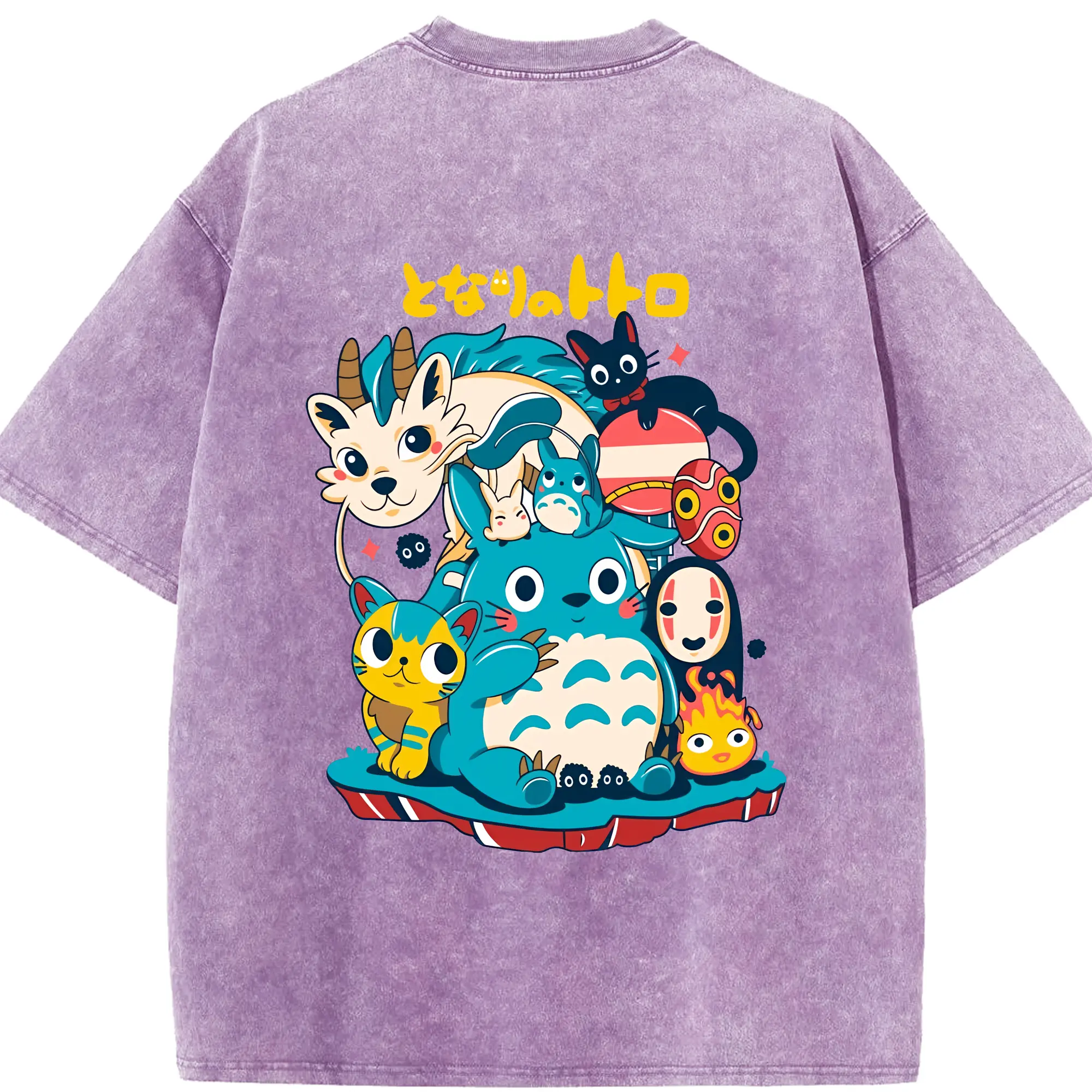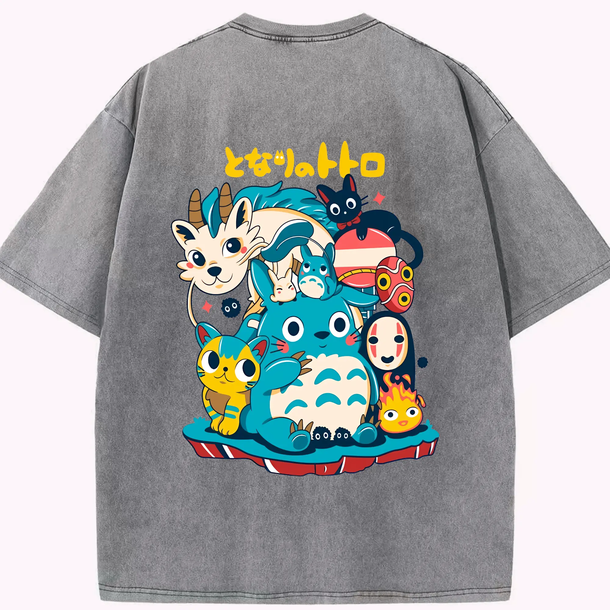 となりのトトロ グッズ トトロ - 綿100% ヴィンテージ風 半袖Tシャツ ・ フロントプリント ・ 柔らか肌触り ・ 通気性 快適 ・ スポーツ カジュアル 外出用