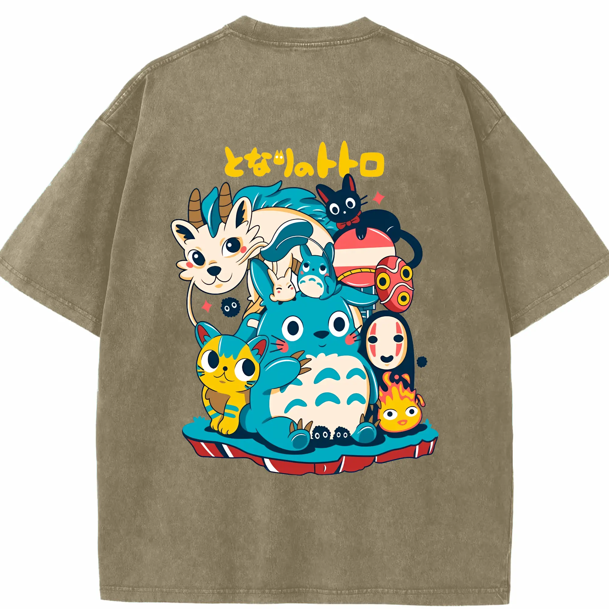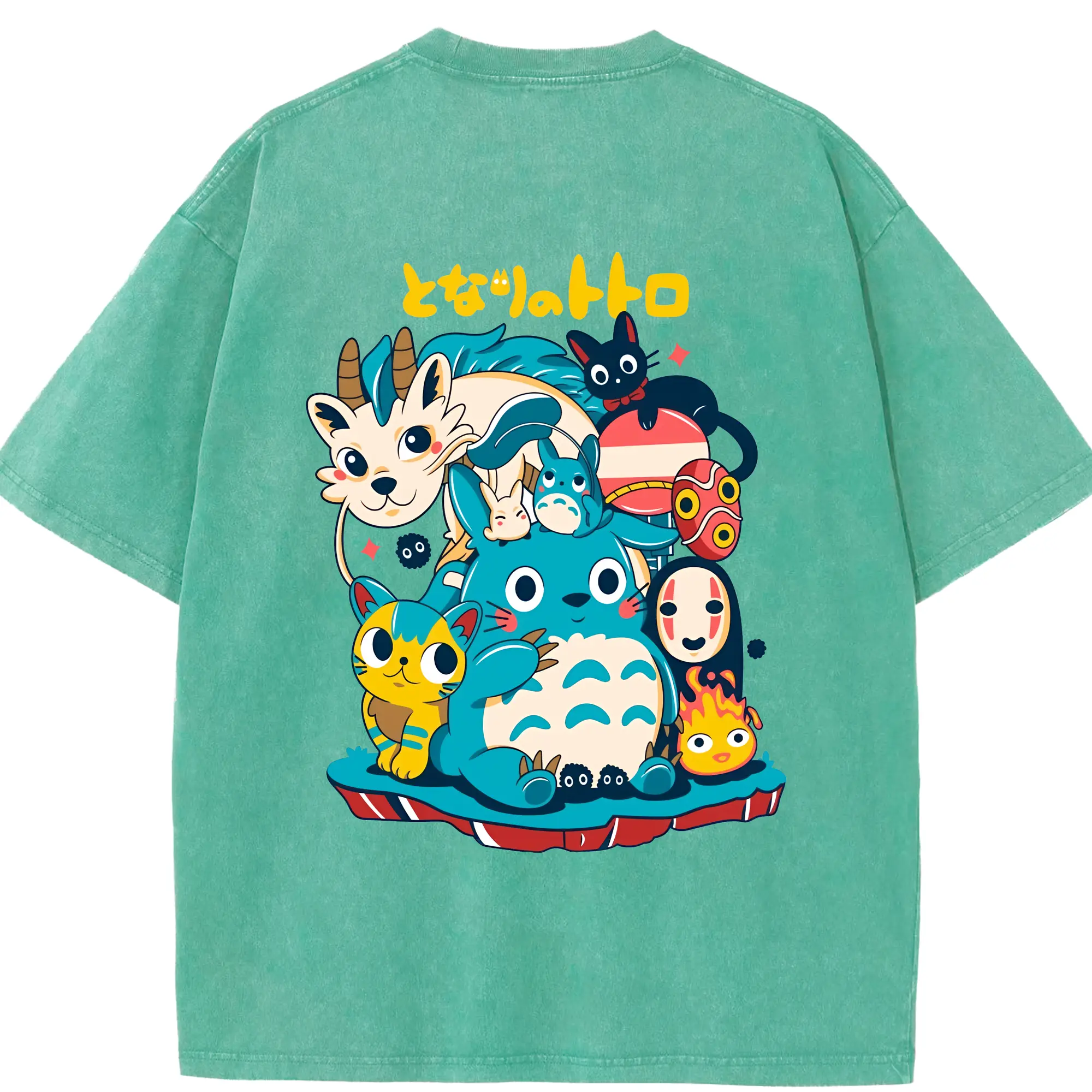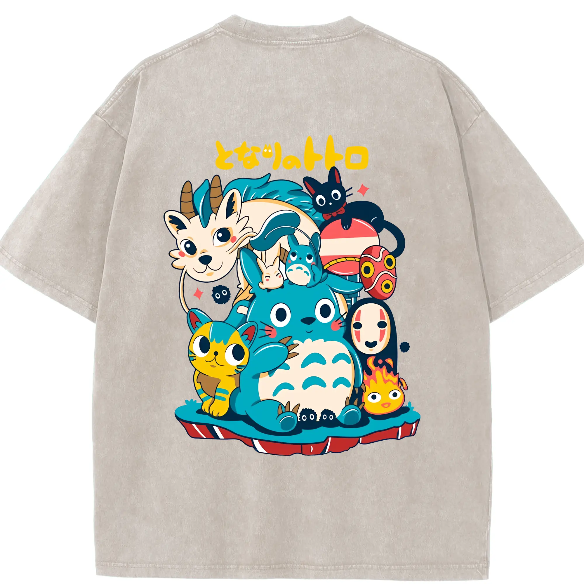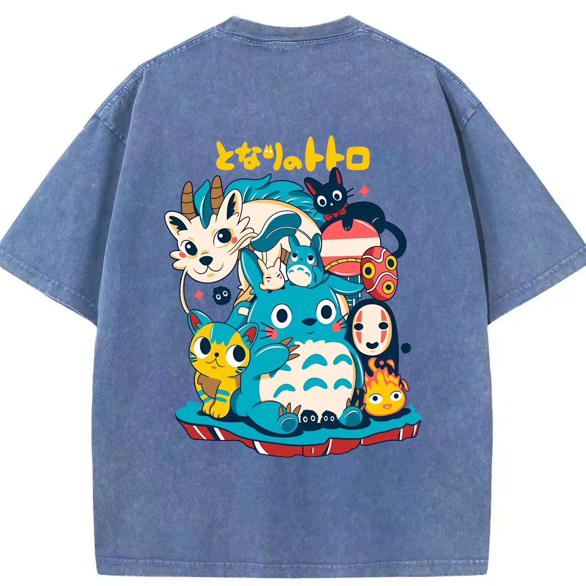 となりのトトロ グッズ トトロ - 綿100% ヴィンテージ風 半袖Tシャツ ・ フロントプリント ・ 柔らか肌触り ・ 通気性 快適 ・ スポーツ カジュアル 外出用