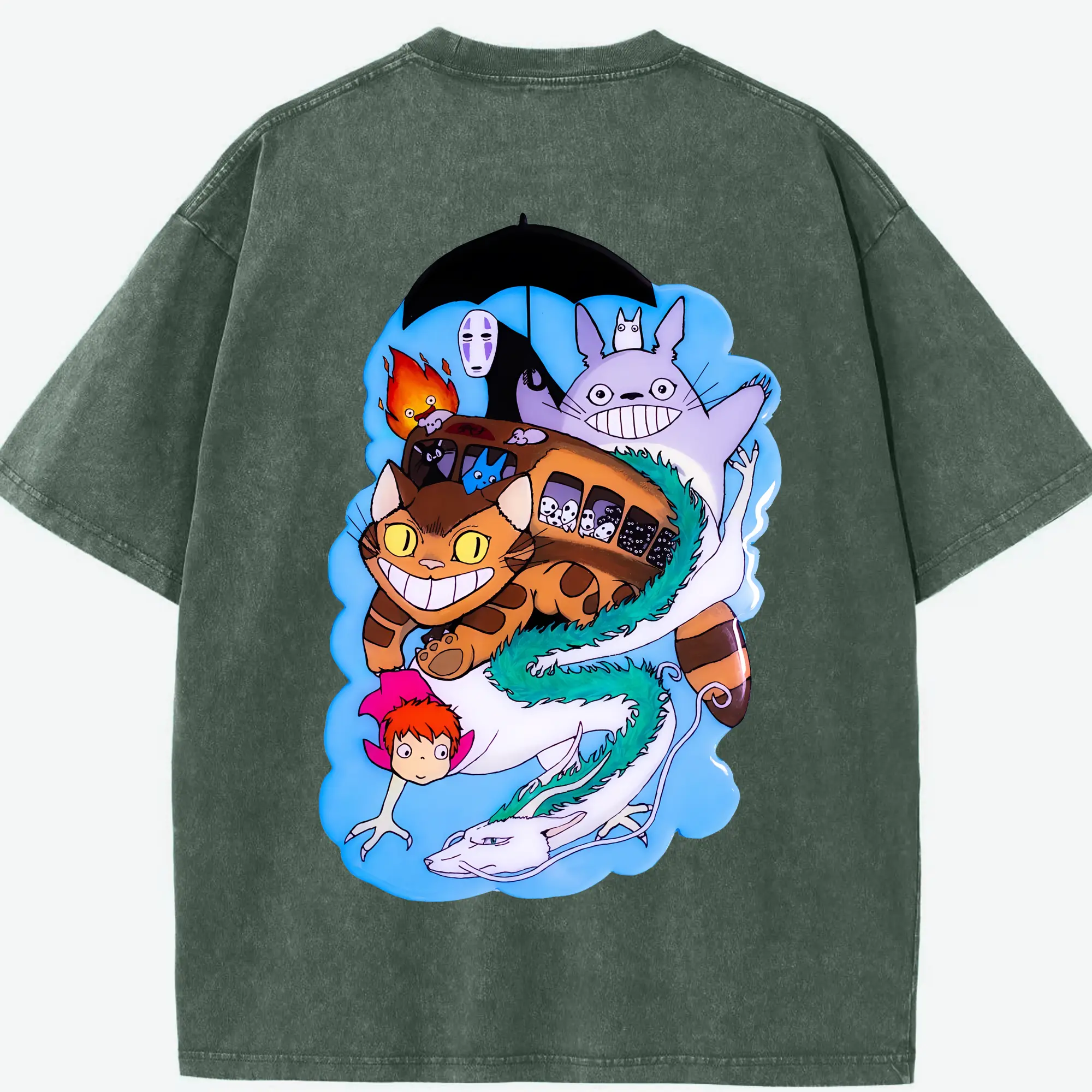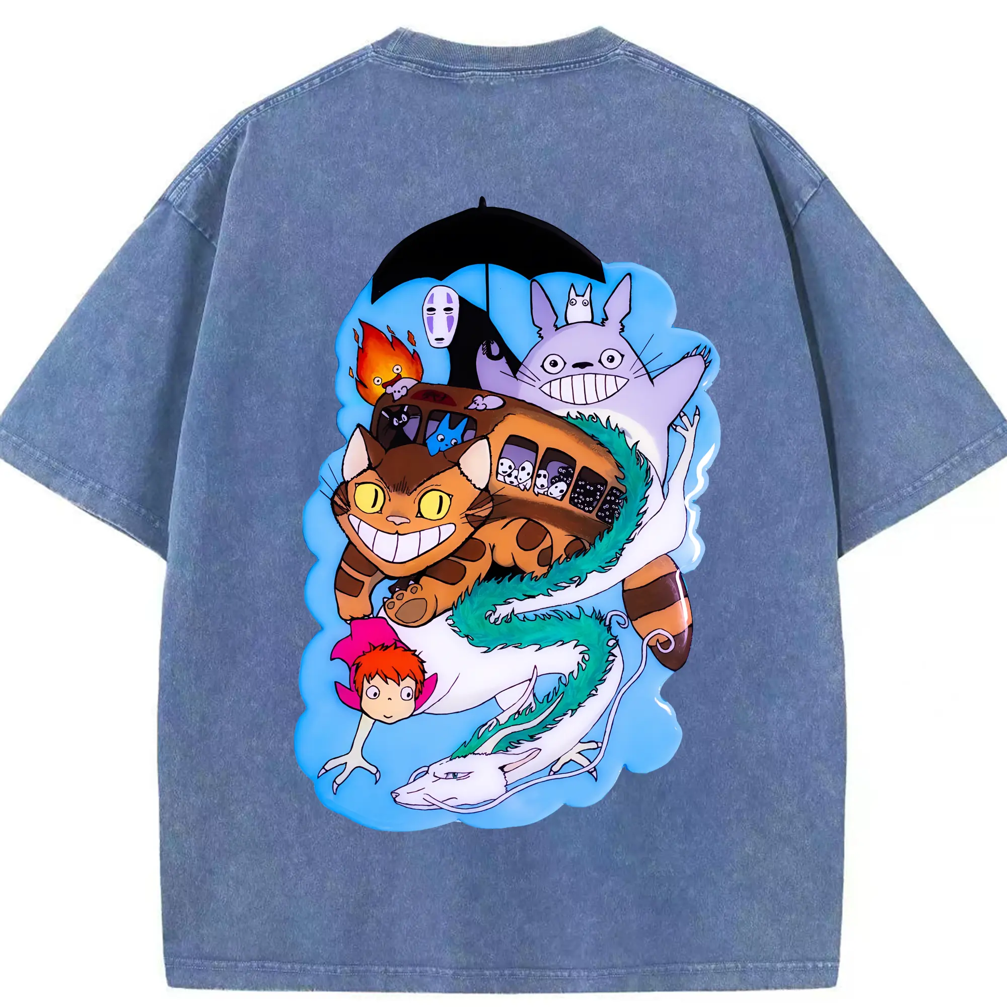 となりのトトロ グッズ トトロ - 綿100% ヴィンテージ風 半袖Tシャツ ・ フロントプリント ・ 柔らか肌触り ・ 通気性 快適 ・ スポーツ カジュアル 外出用