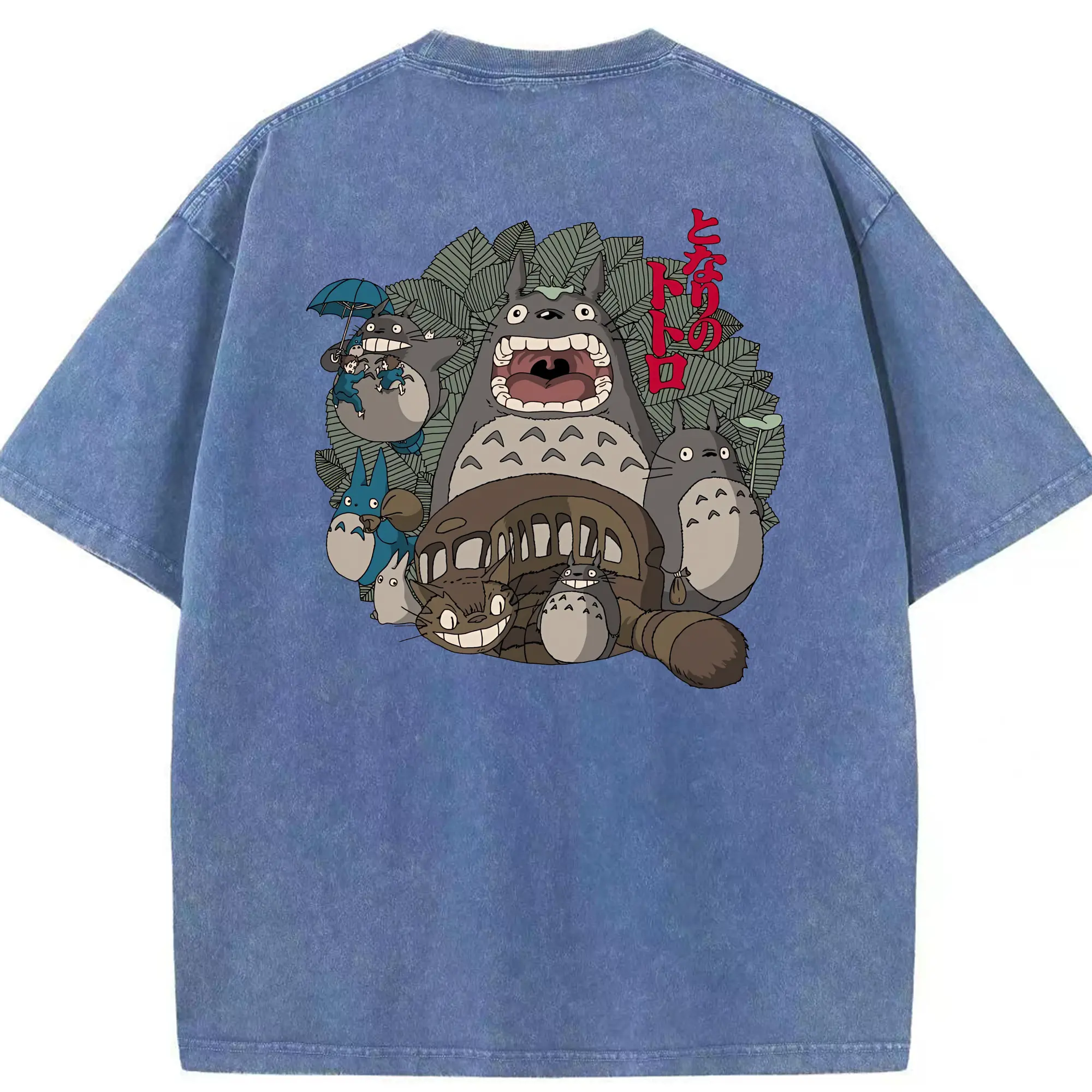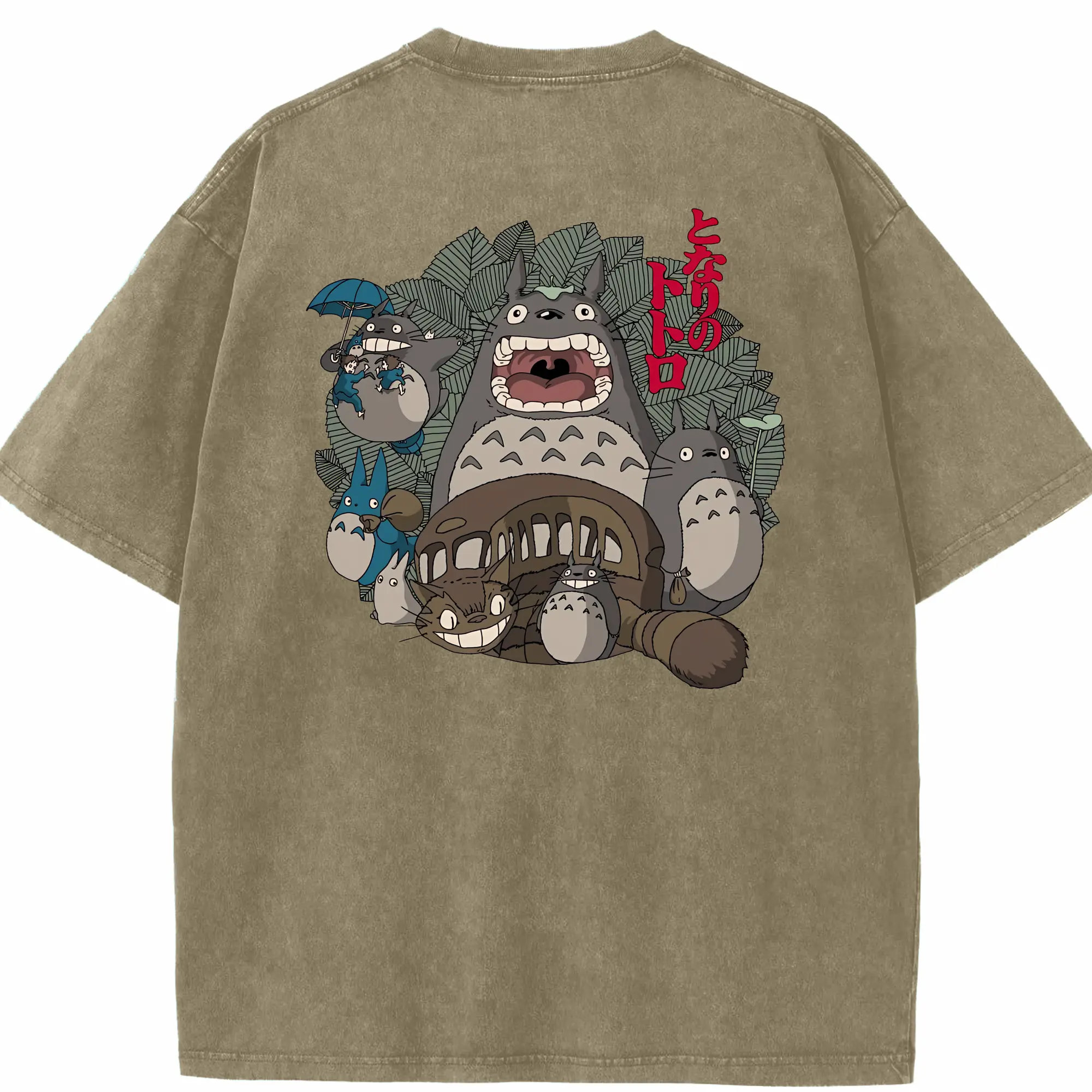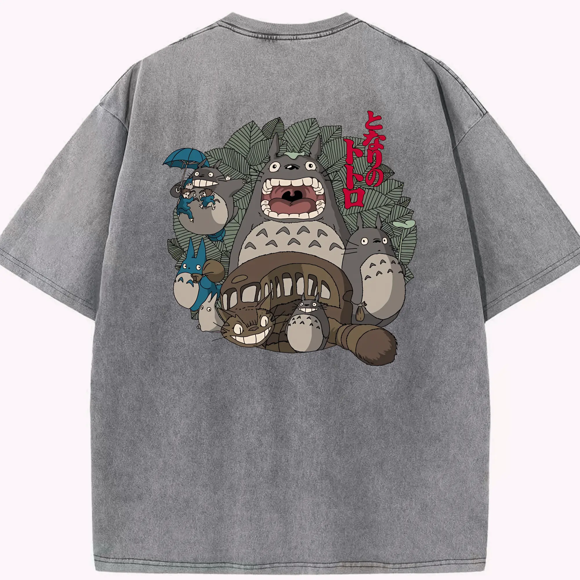 となりのトトロ グッズ トトロ - 綿100% ヴィンテージ風 半袖Tシャツ ・ フロントプリント ・ 柔らか肌触り ・ 通気性 快適 ・ スポーツ カジュアル 外出用