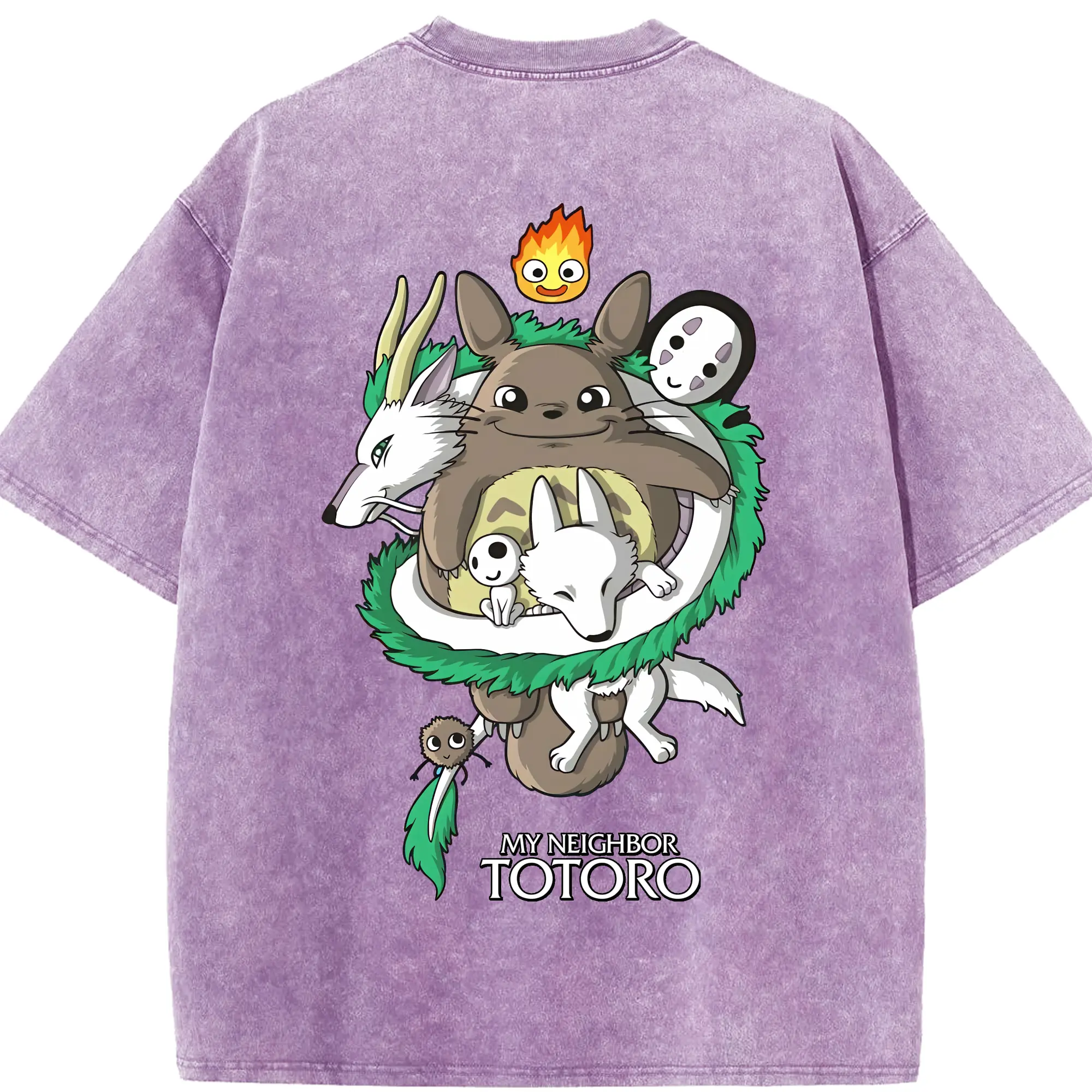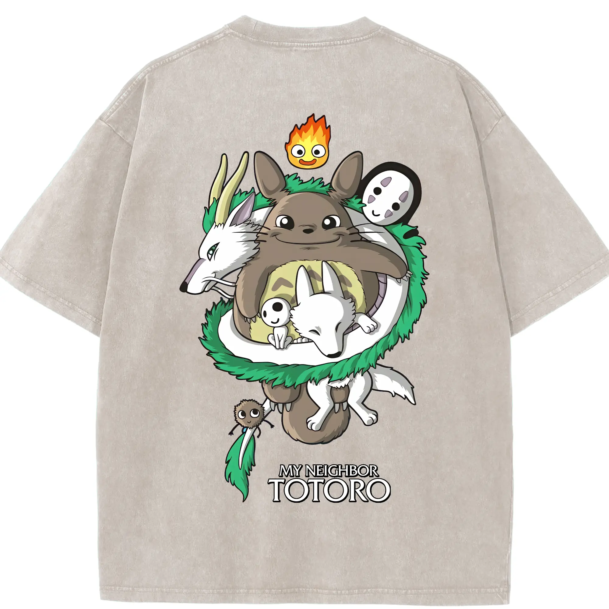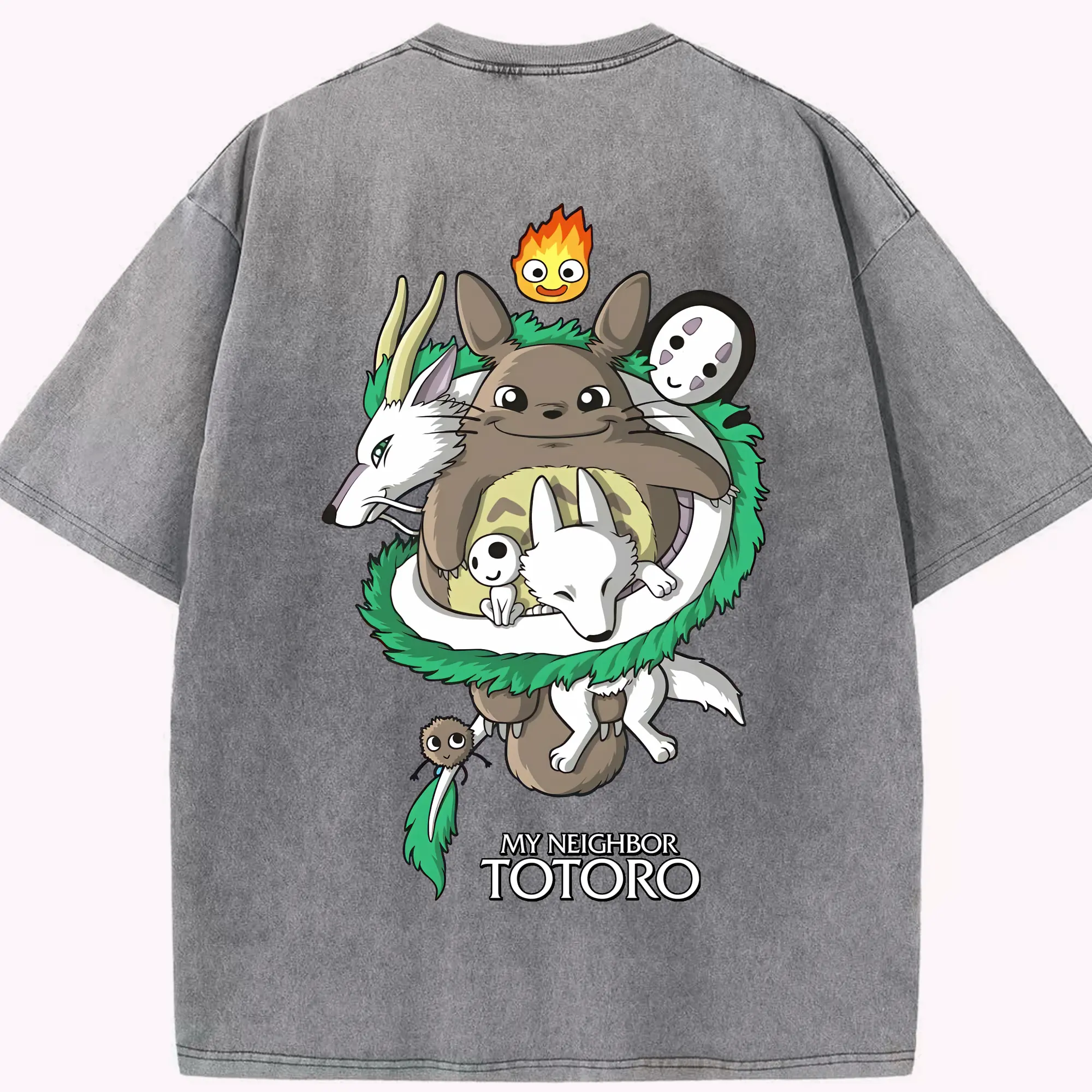 となりのトトロ グッズ トトロ - 綿100% ヴィンテージ風 半袖Tシャツ ・ フロントプリント ・ 柔らか肌触り ・ 通気性 快適 ・ スポーツ カジュアル 外出用