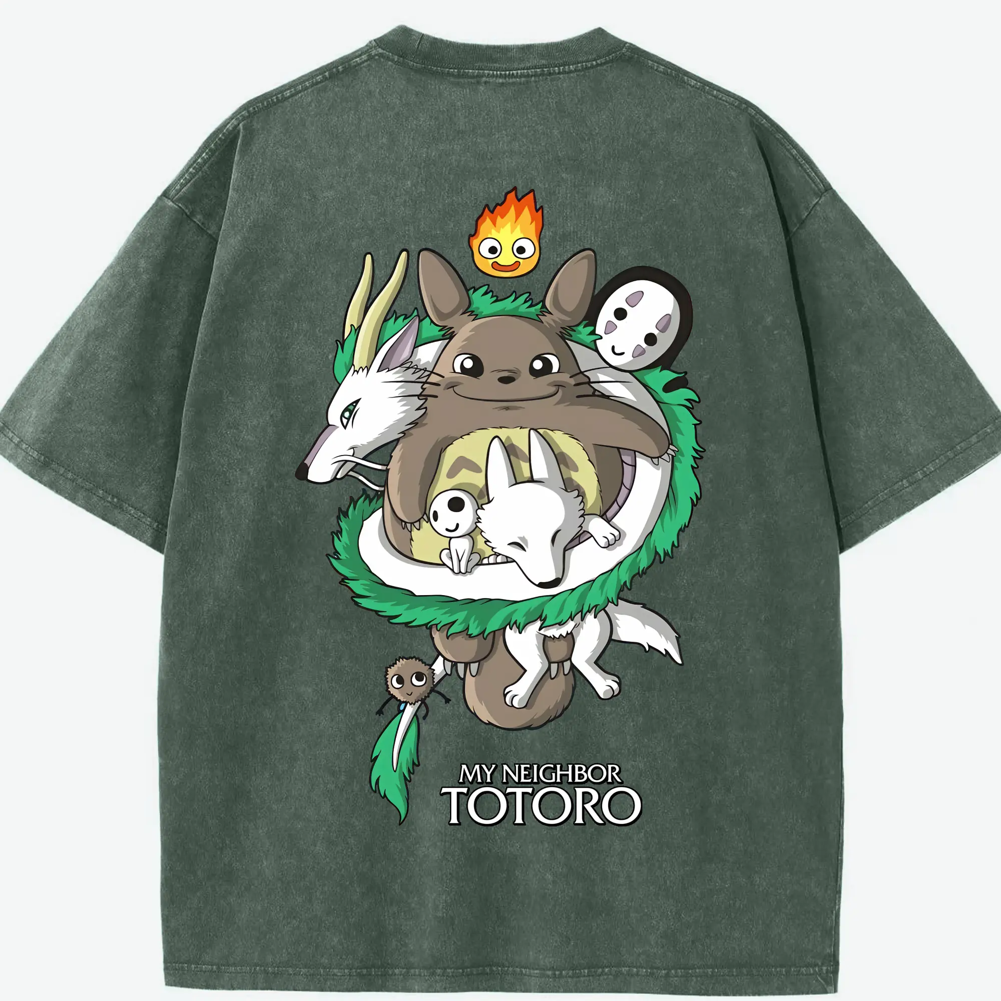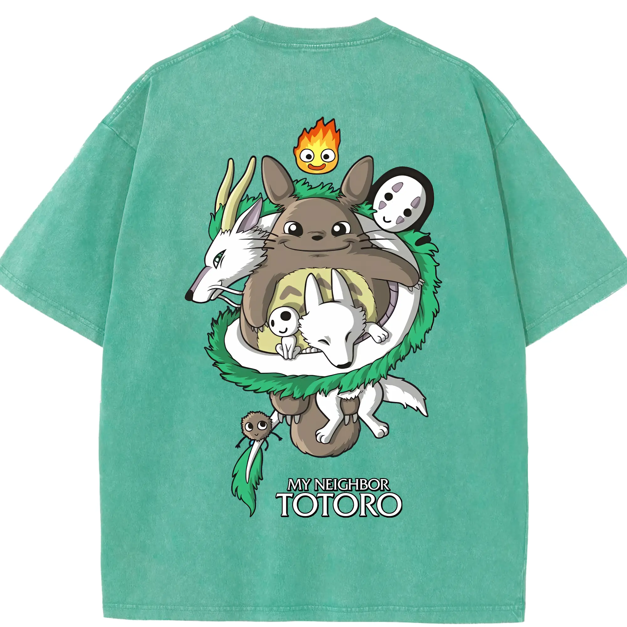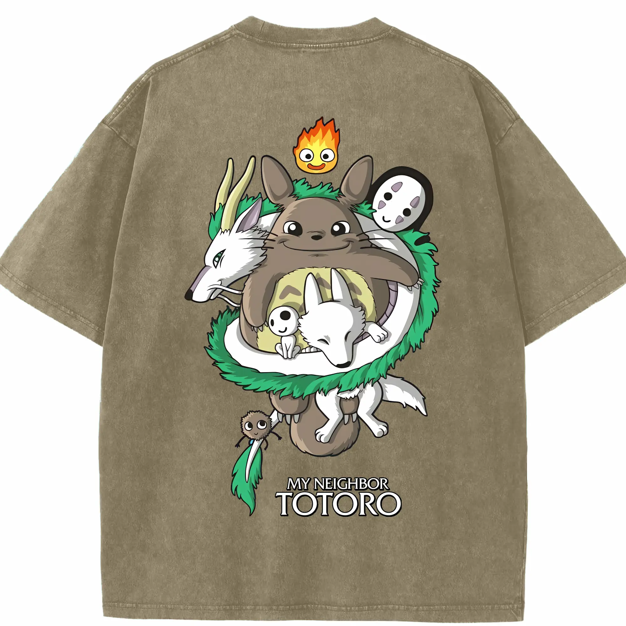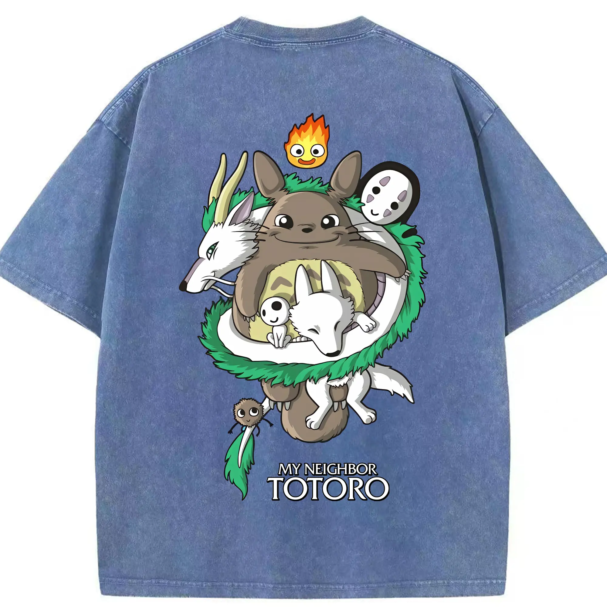 となりのトトロ グッズ トトロ - 綿100% ヴィンテージ風 半袖Tシャツ ・ フロントプリント ・ 柔らか肌触り ・ 通気性 快適 ・ スポーツ カジュアル 外出用