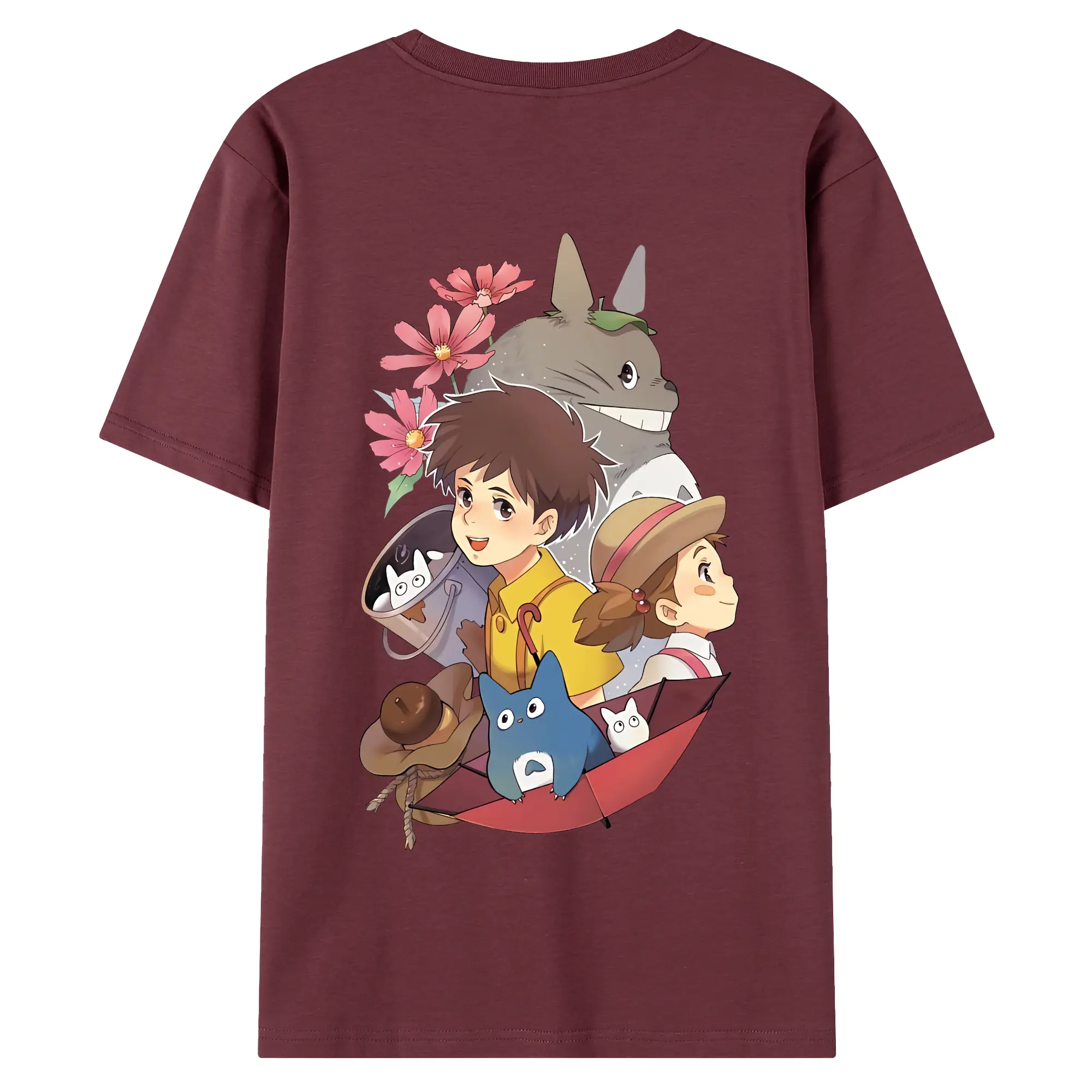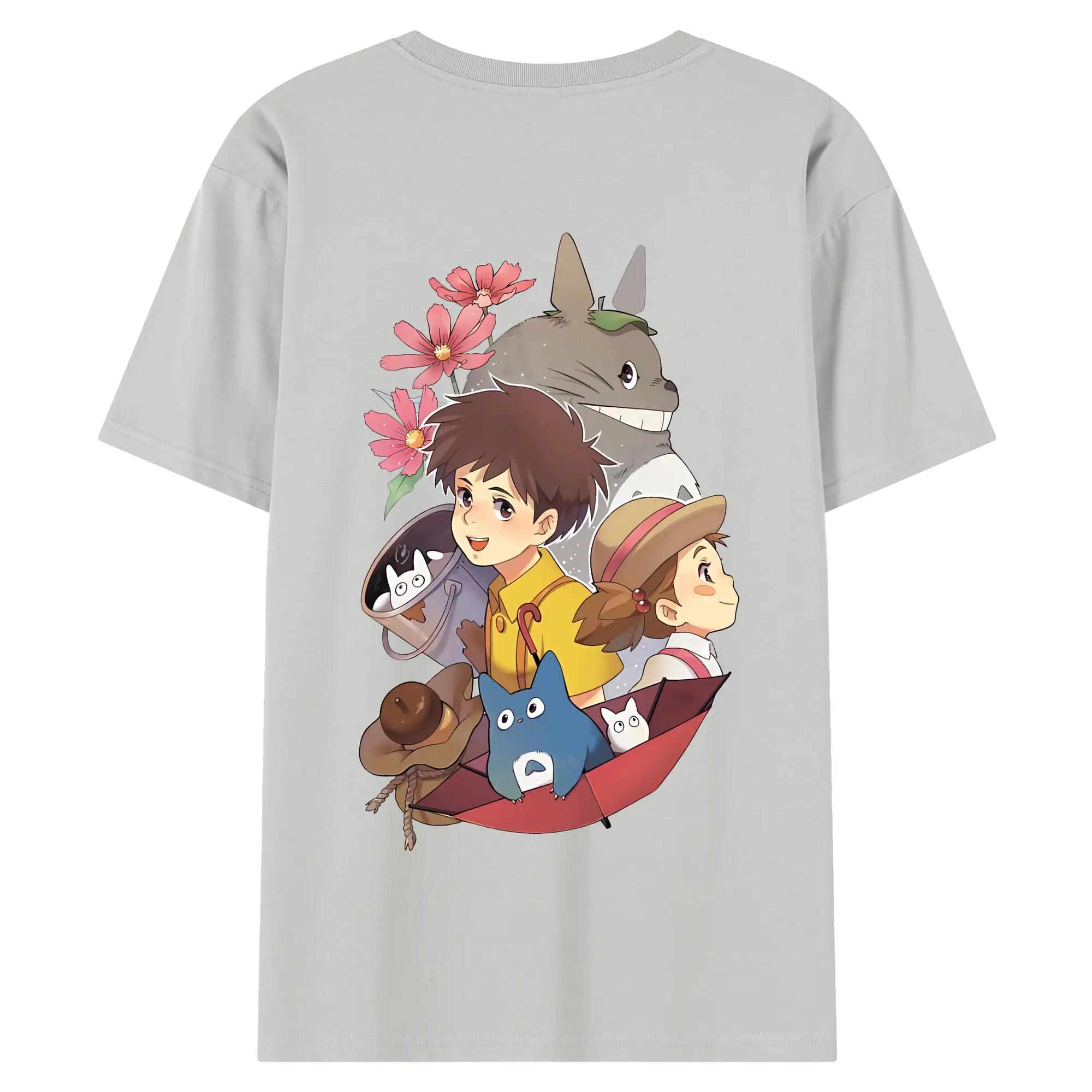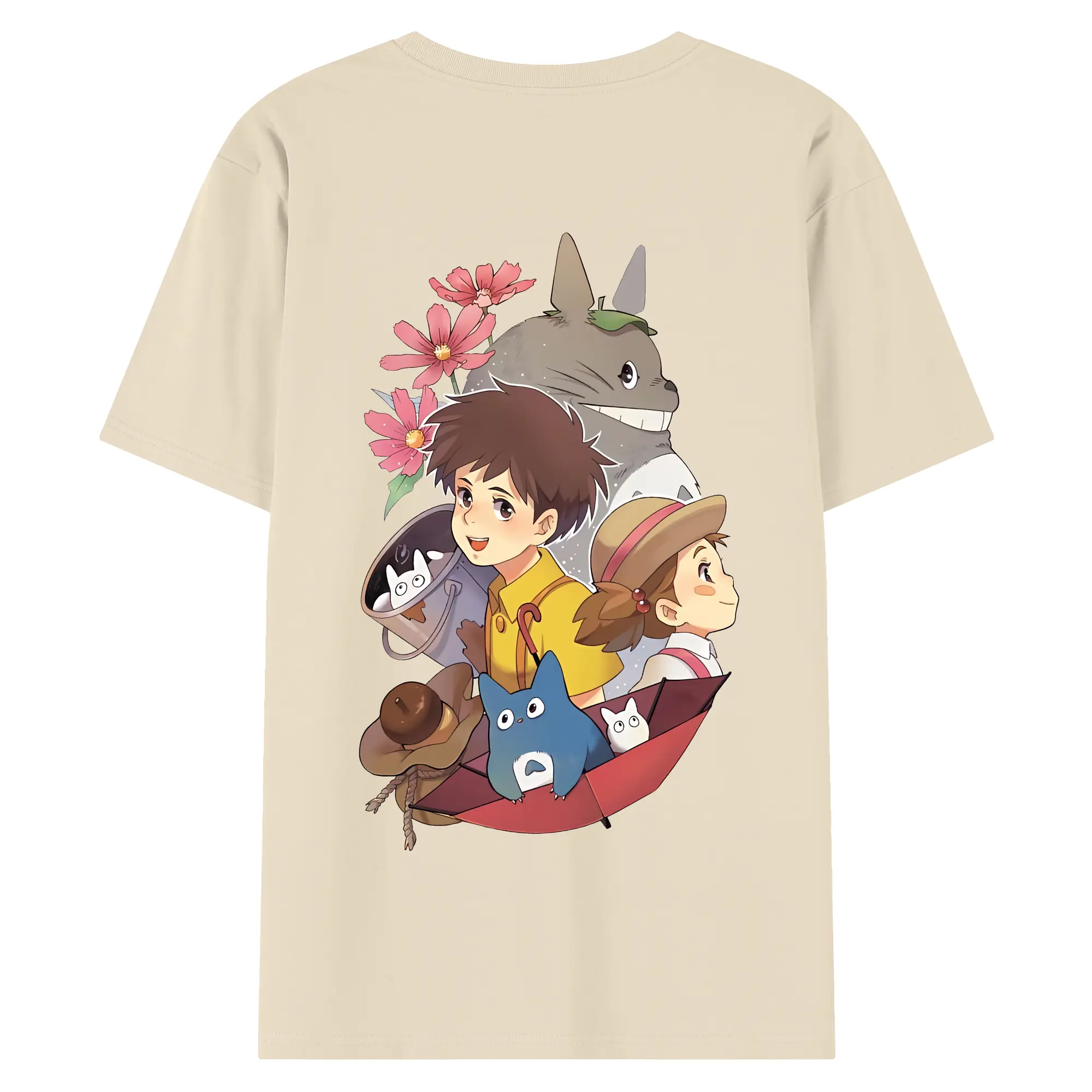 となりのトトロ グッズ 草壁 メイ - 綿100% ヴィンテージ風 半袖Tシャツ ・ 背面プリント ・ 柔らか肌触り ・ 通気性 快適 ・ スポーツ カジュアル 外出用