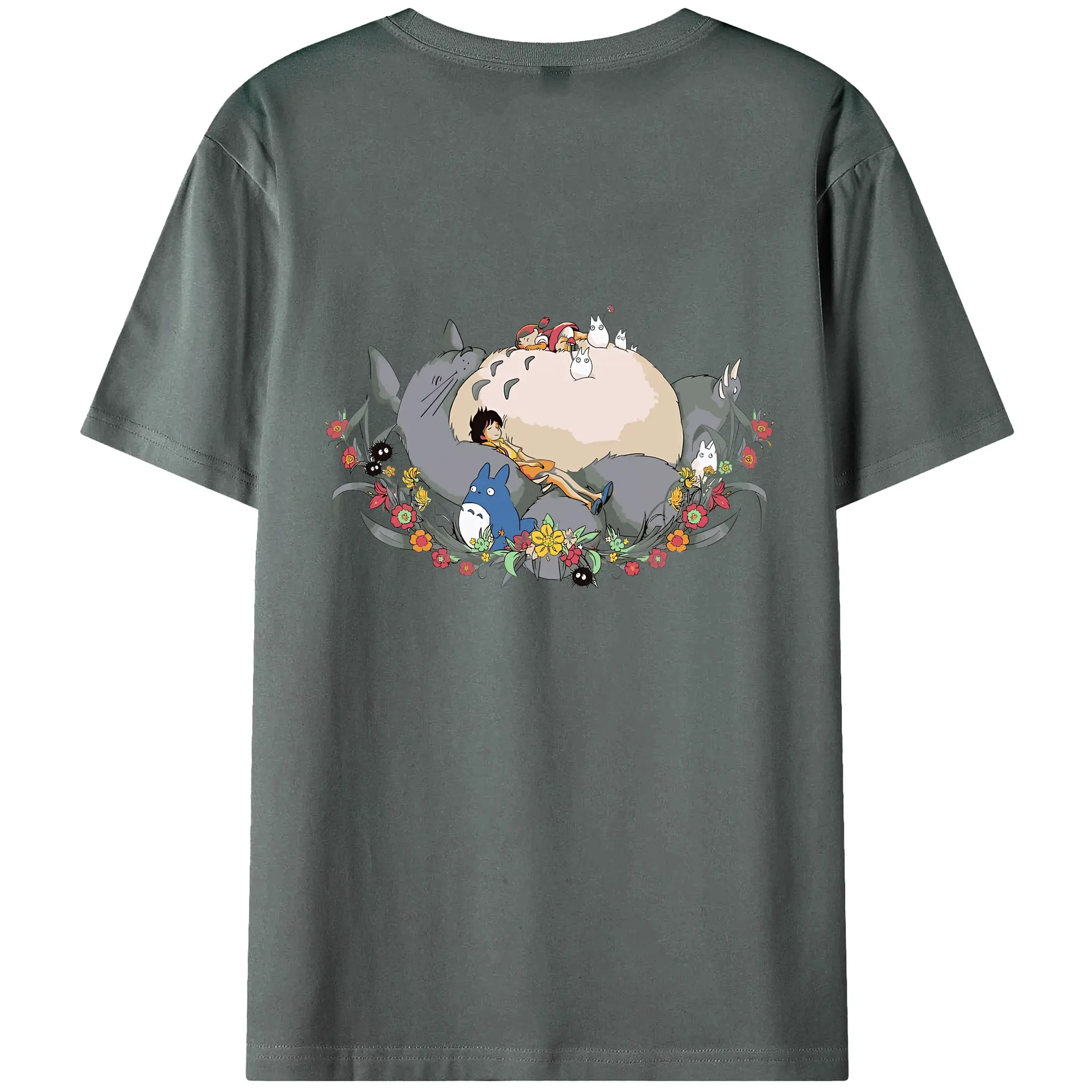 となりのトトロ グッズ 草壁 メイ - 綿100% ヴィンテージ風 半袖Tシャツ ・ 背面プリント ・ 柔らか肌触り ・ 通気性 快適 ・ スポーツ カジュアル 外出用