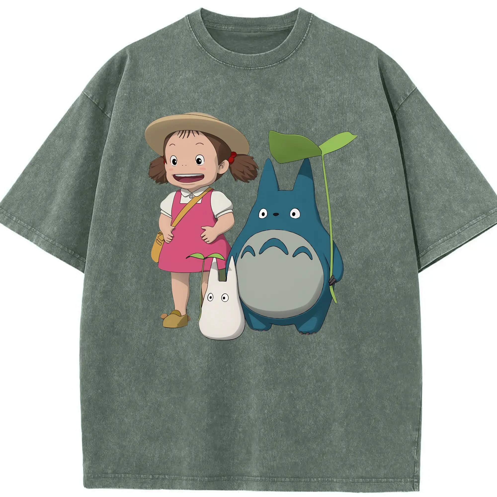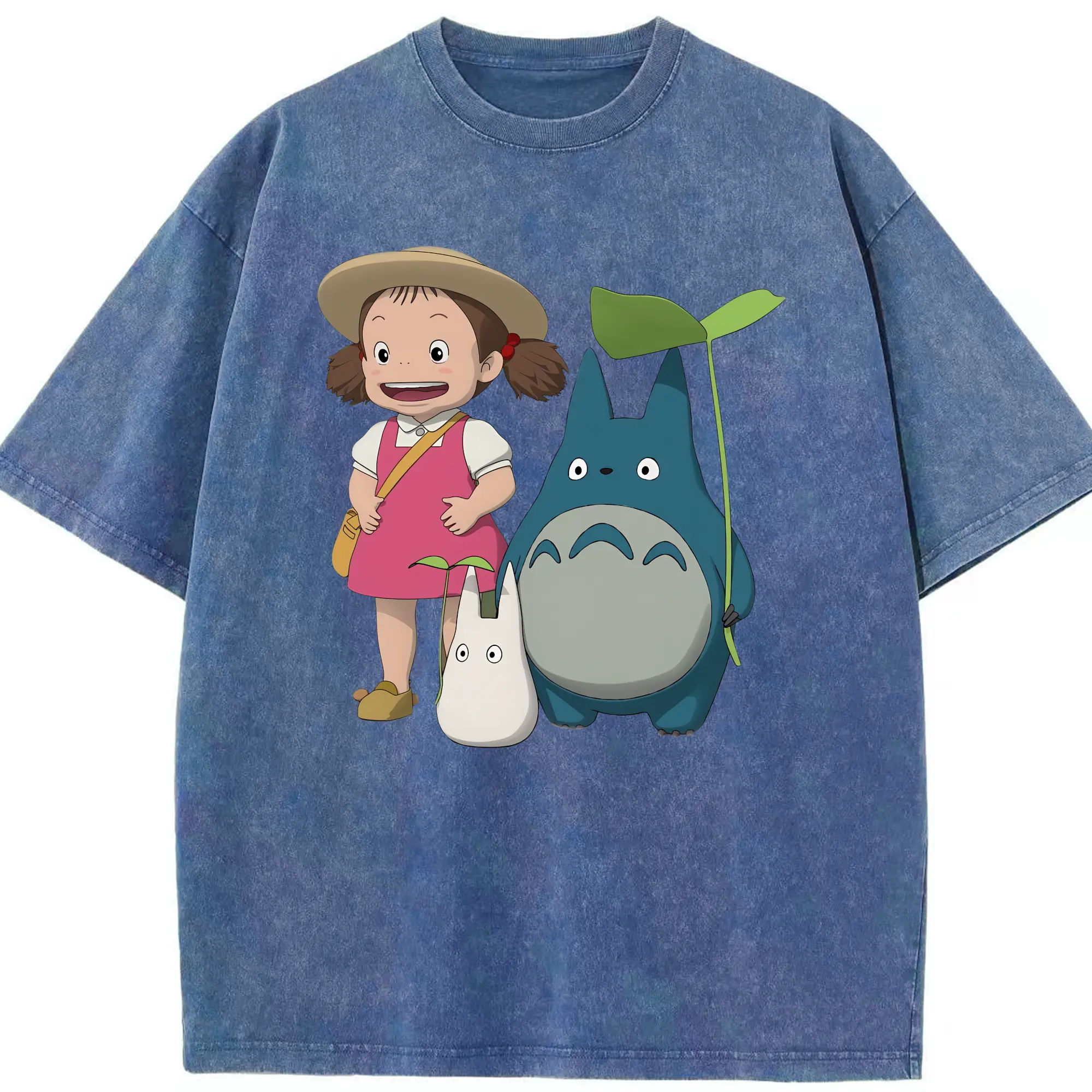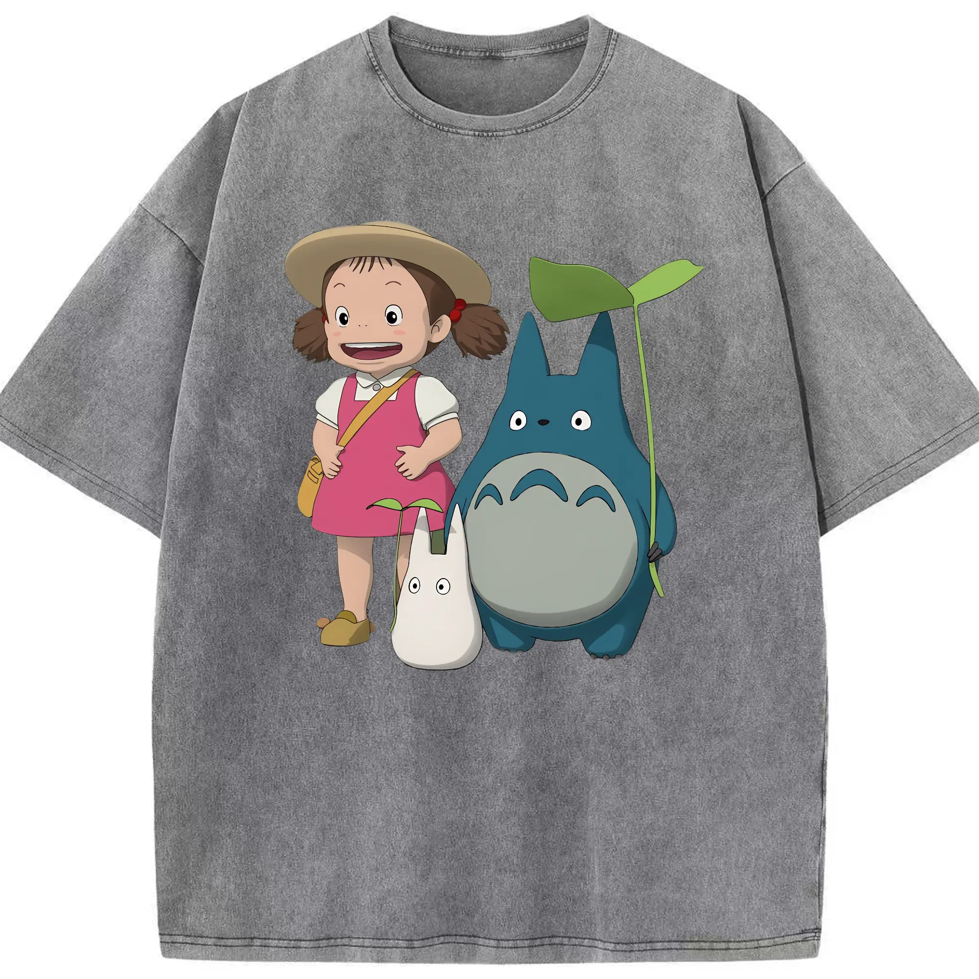 となりのトトロ グッズ 草壁 メイ - 綿100% ヴィンテージ風 半袖Tシャツ ・ 背面プリント ・ 柔らか肌触り ・ 通気性 快適 ・ スポーツ カジュアル 外出用