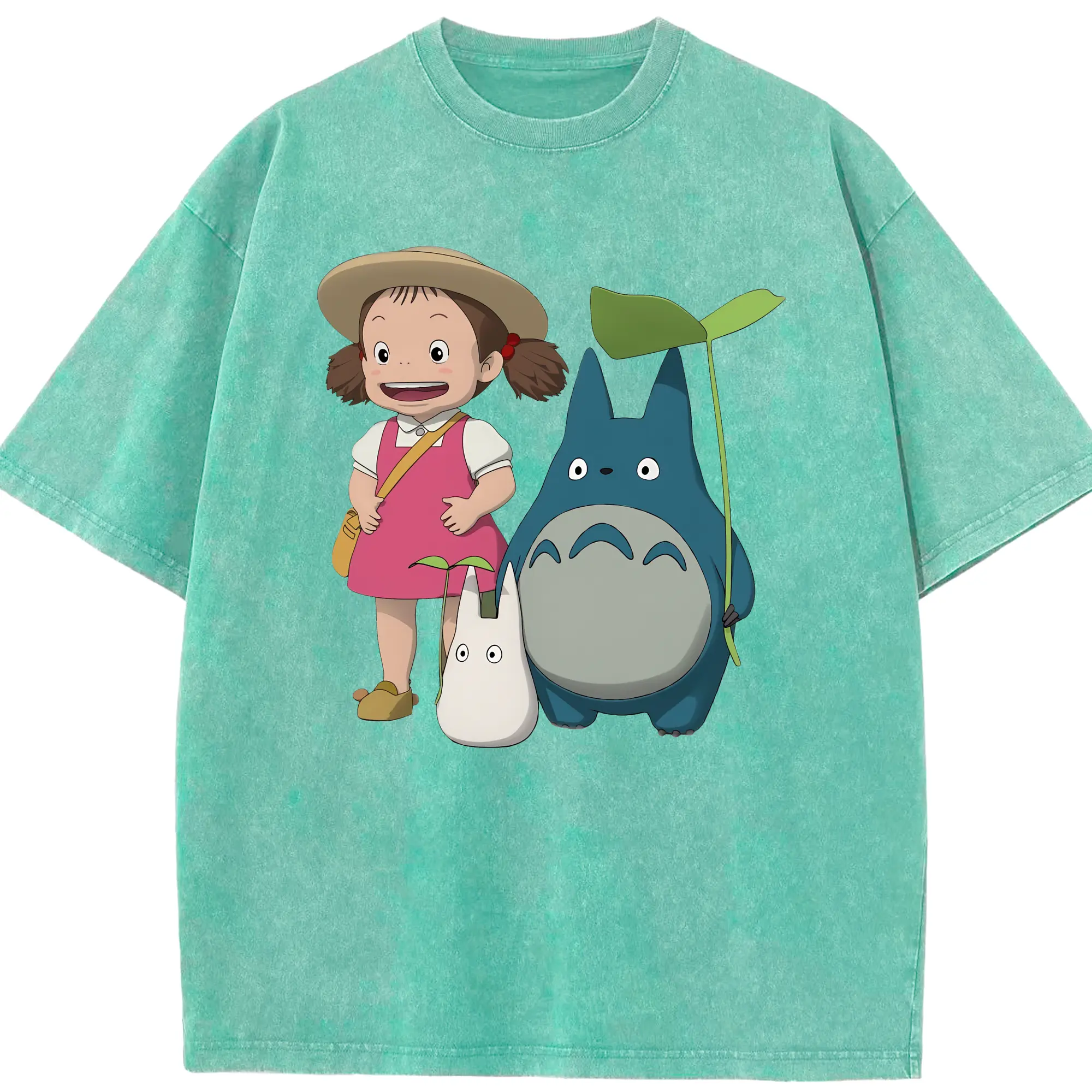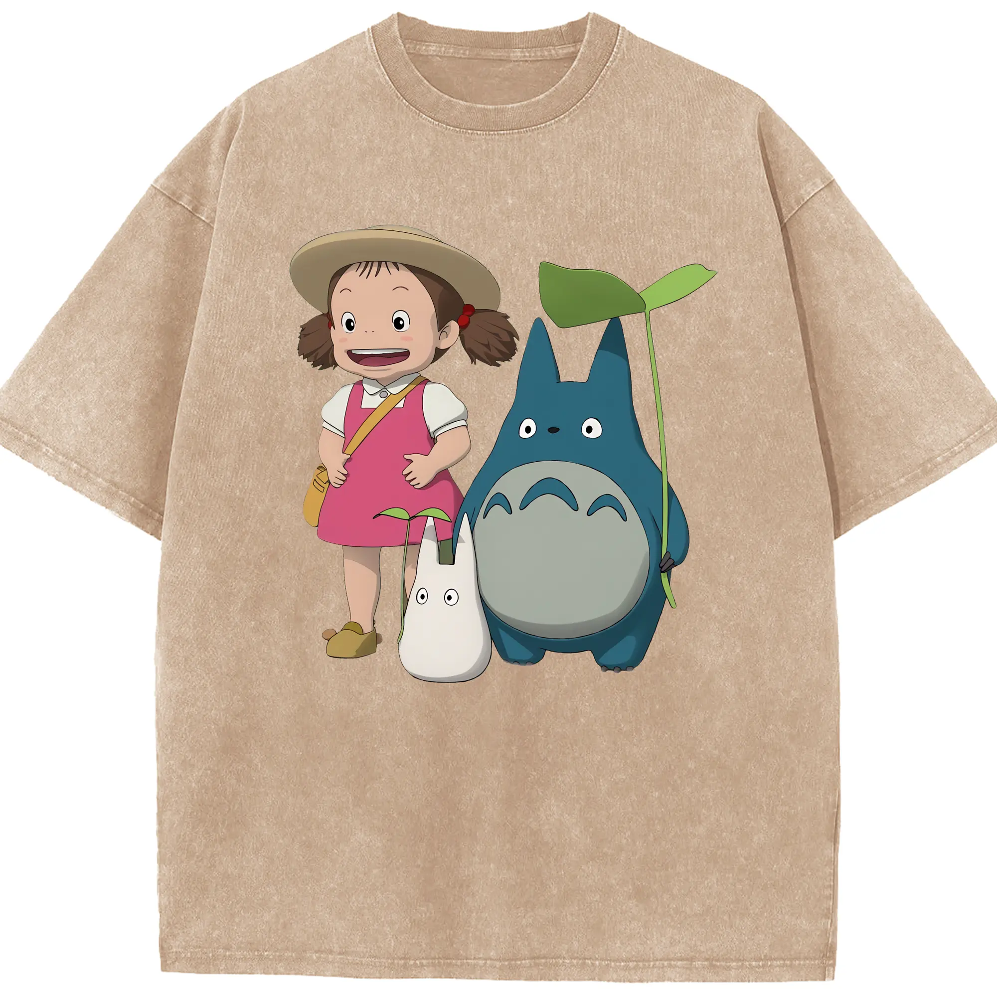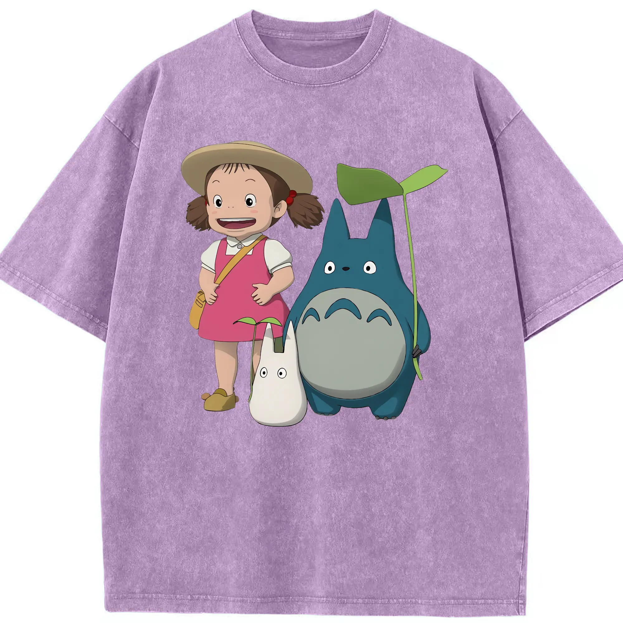 となりのトトロ グッズ 草壁 メイ - 綿100% ヴィンテージ風 半袖Tシャツ ・ 背面プリント ・ 柔らか肌触り ・ 通気性 快適 ・ スポーツ カジュアル 外出用