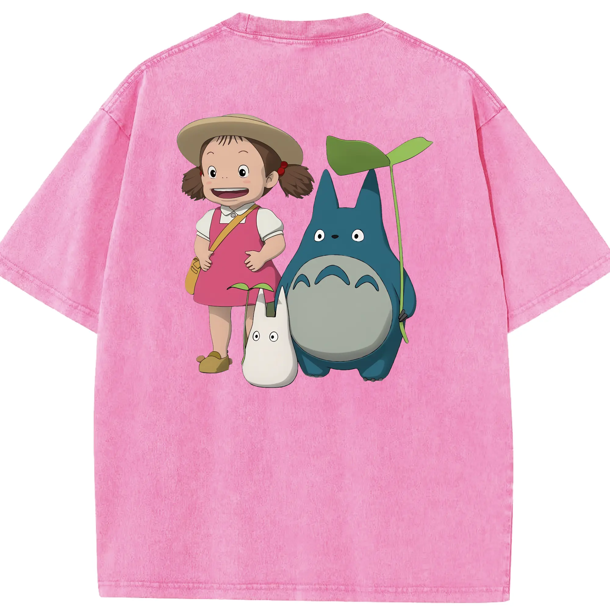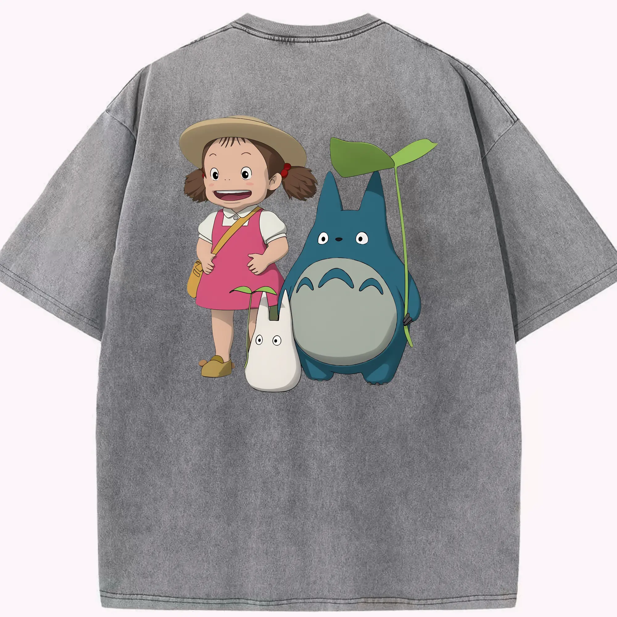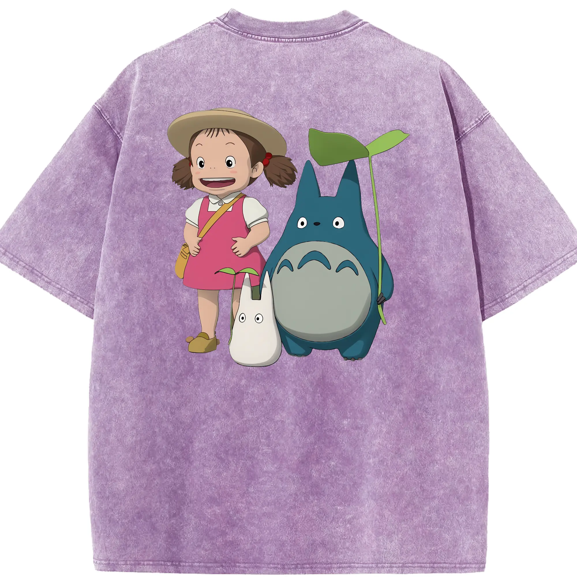 となりのトトロ グッズ 草壁 メイ - 綿100% ヴィンテージ風 半袖Tシャツ ・ フロントプリント ・ 柔らか肌触り ・ 通気性 快適 ・ スポーツ カジュアル 外出用