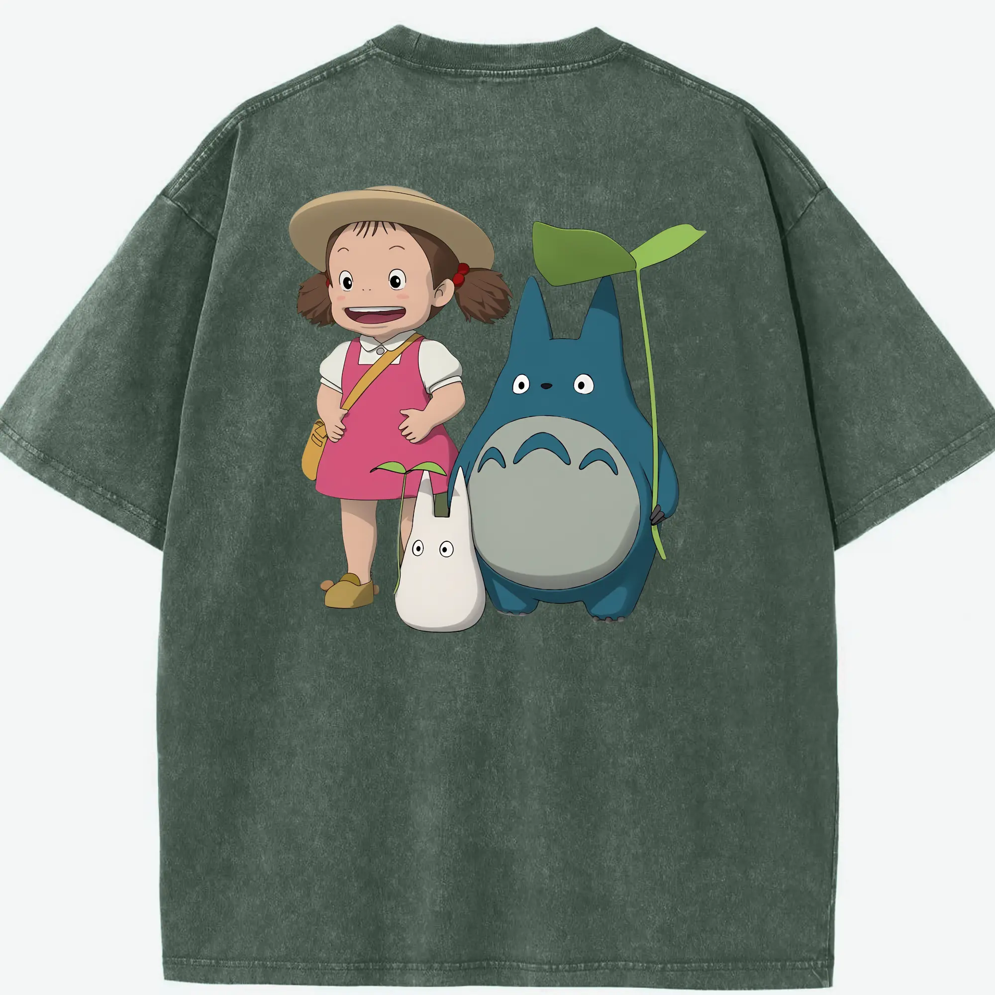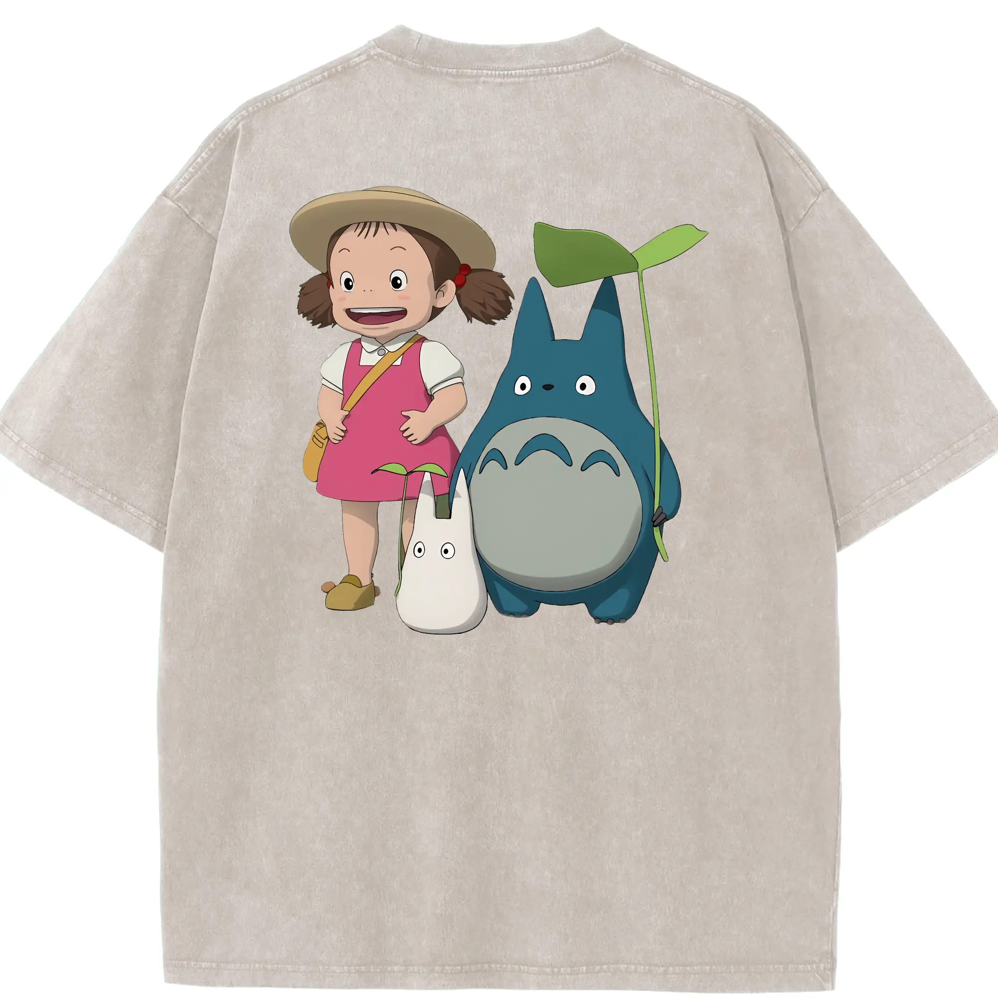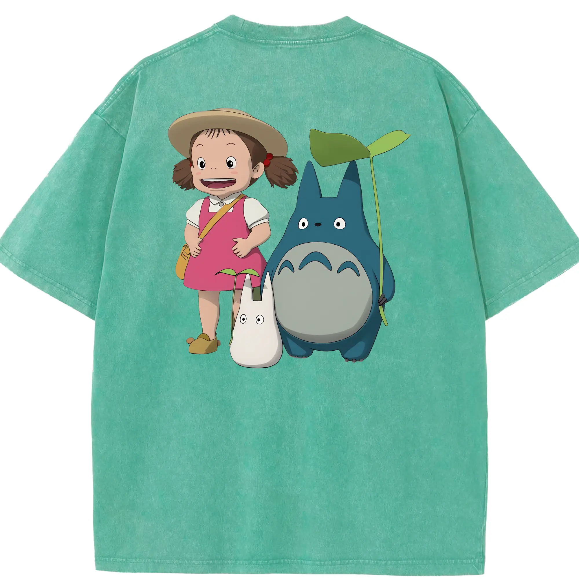 となりのトトロ グッズ 草壁 メイ - 綿100% ヴィンテージ風 半袖Tシャツ ・ フロントプリント ・ 柔らか肌触り ・ 通気性 快適 ・ スポーツ カジュアル 外出用