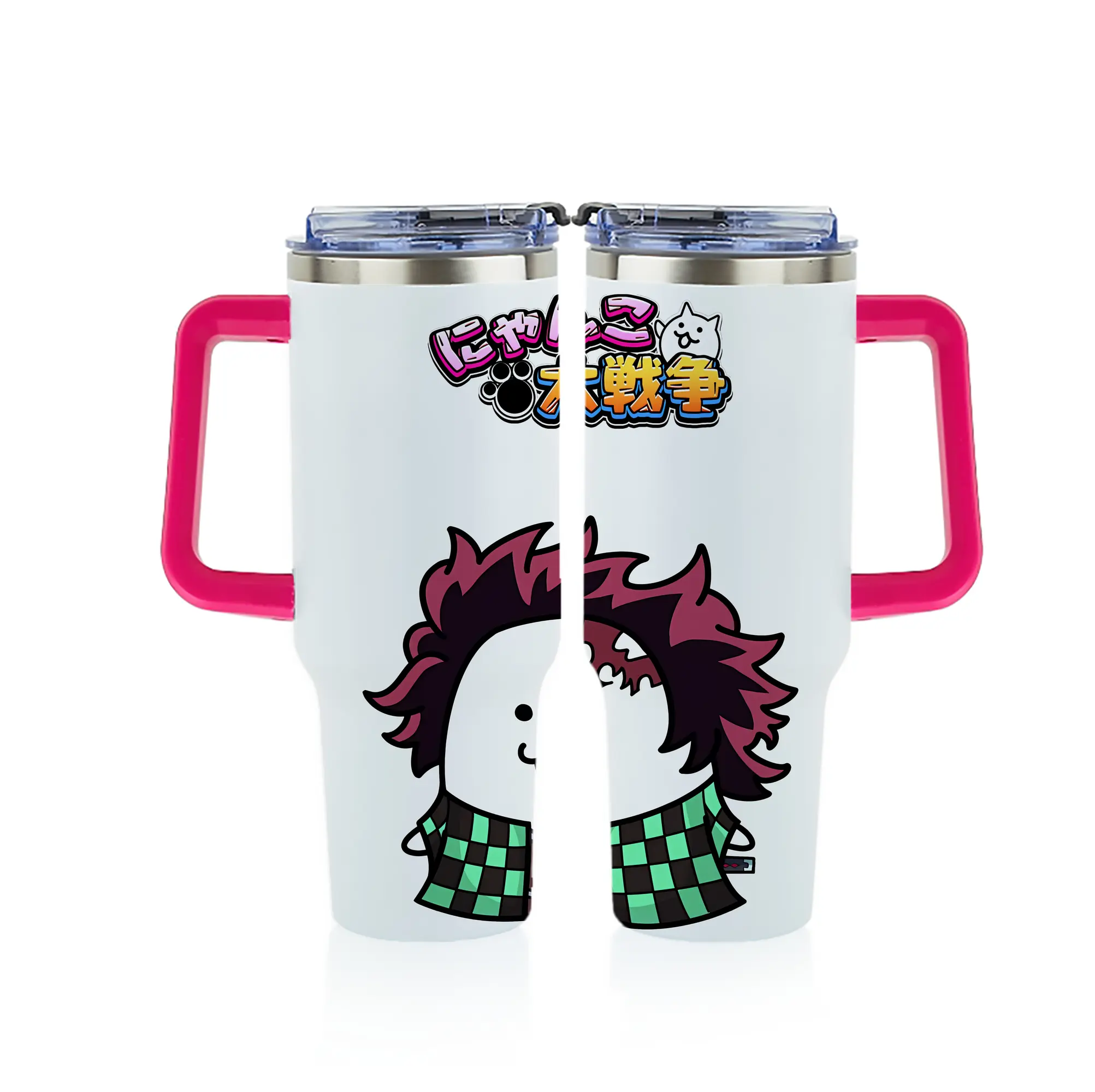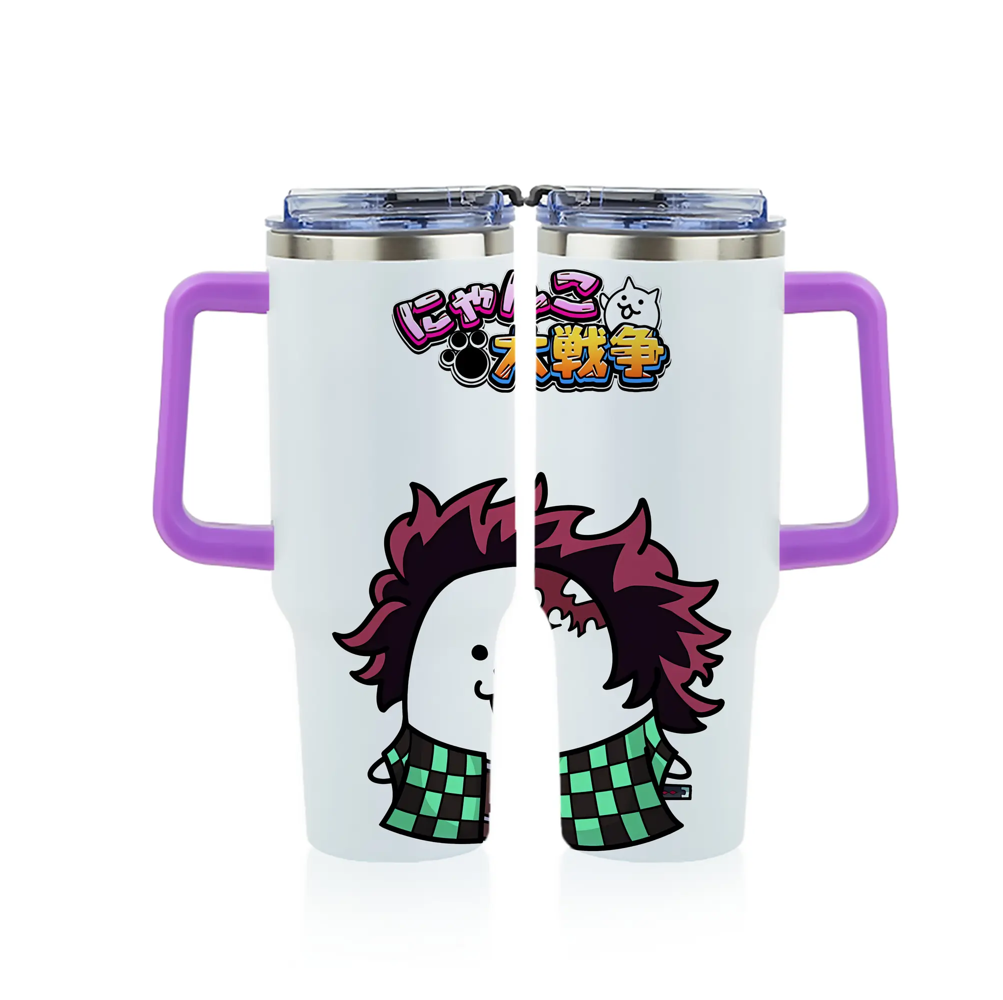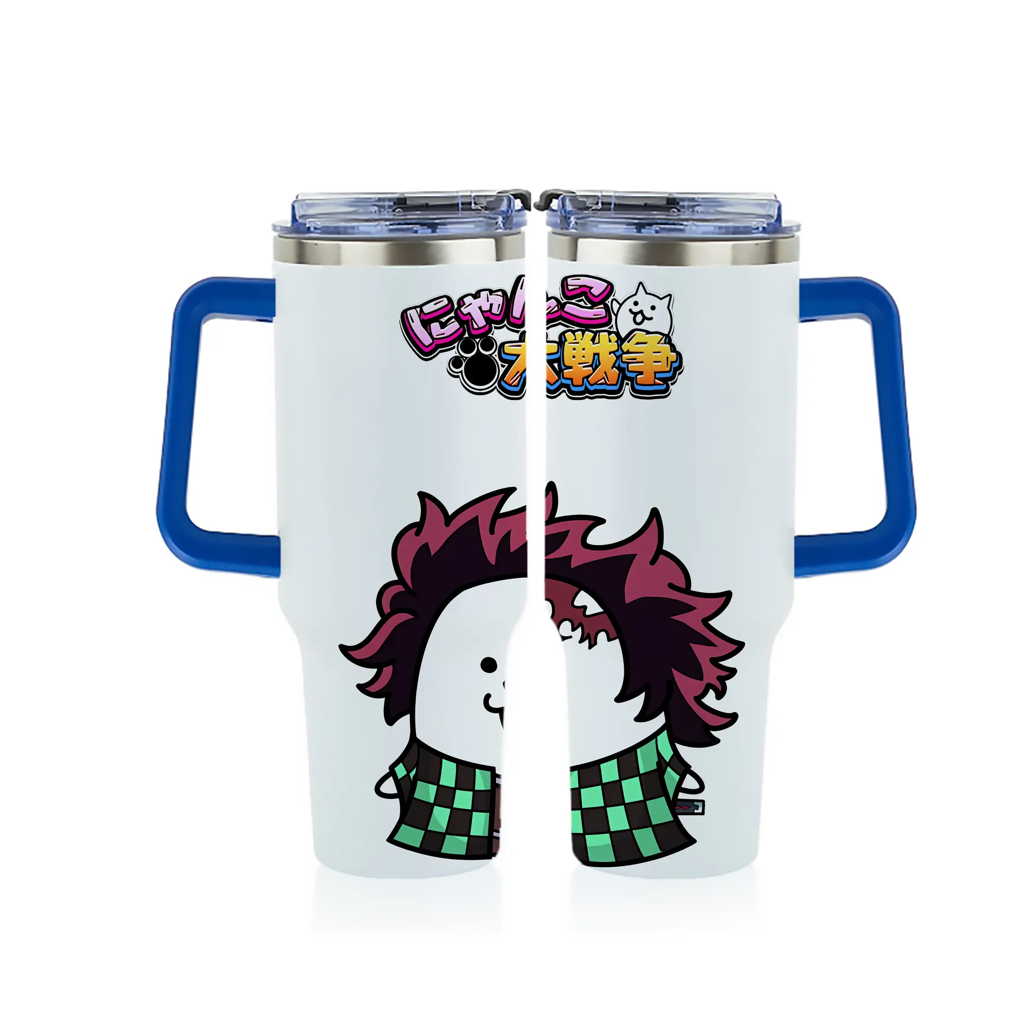 にゃんこ大戦争 グッズ - 1200mL フルプリント車用タンブラー ・ 304ステンレス 内側 ・ 201ステンレス 外側 ・ 保温 保冷 ・ 通勤 ドライブ アウトドア用