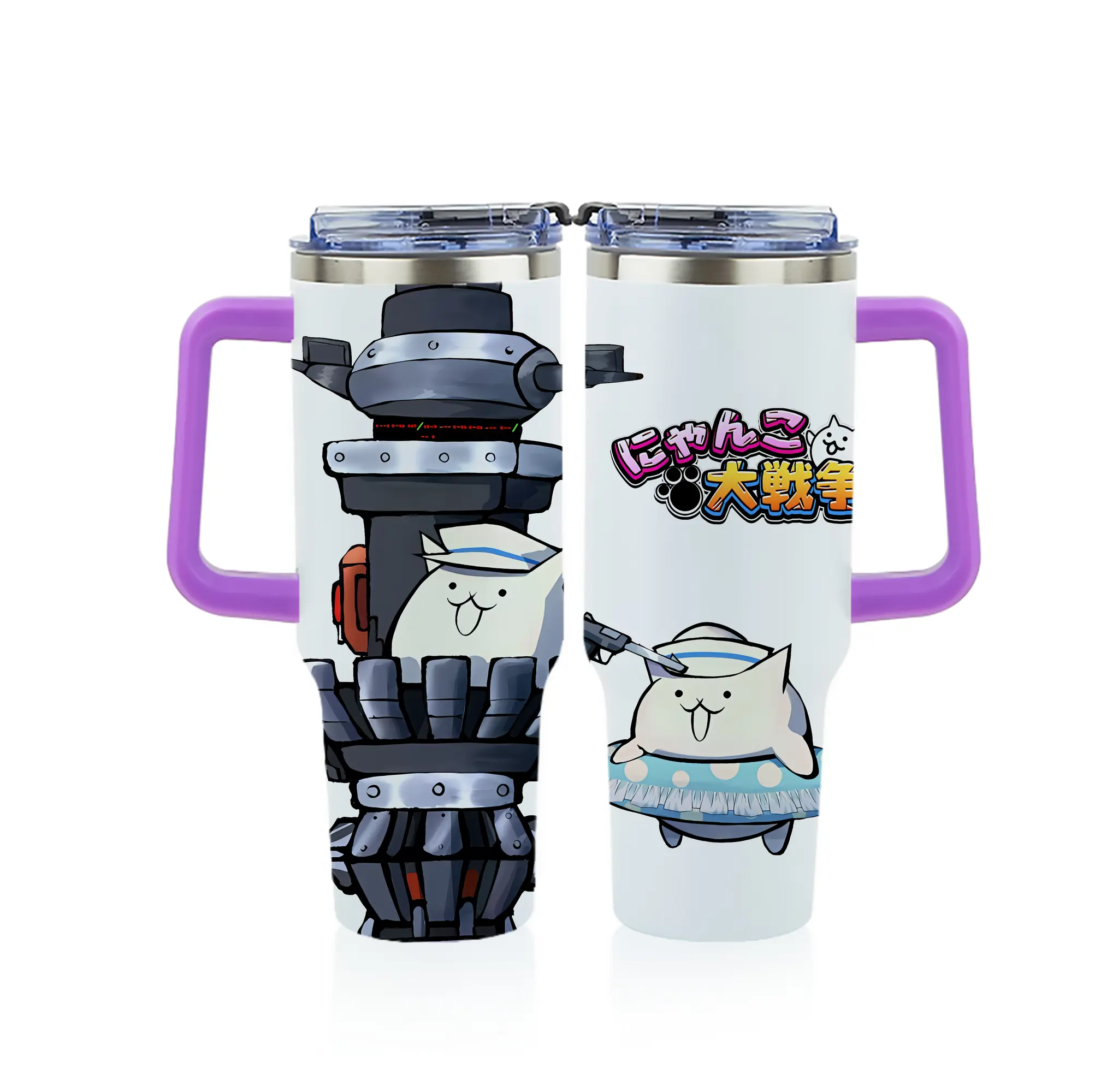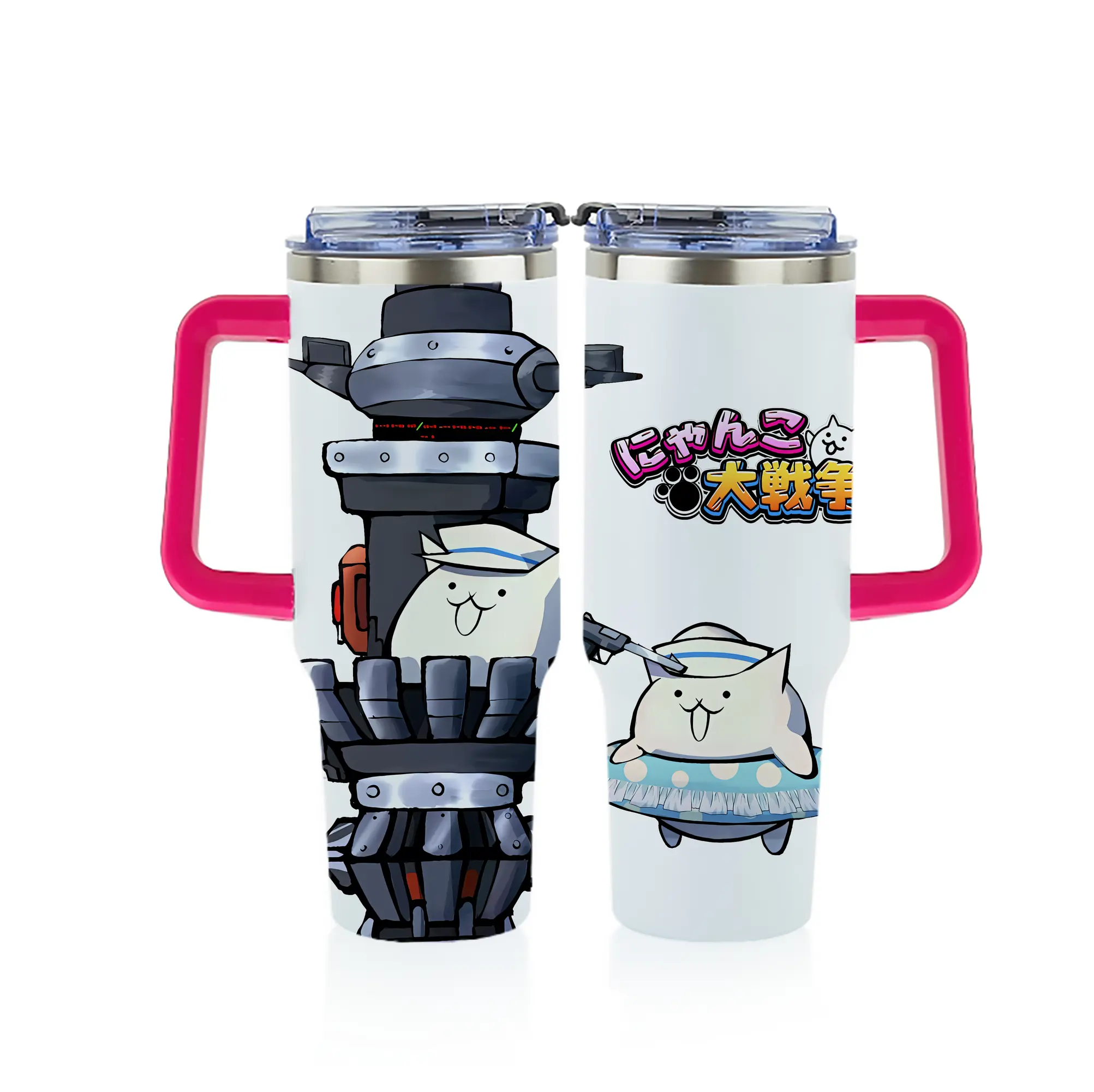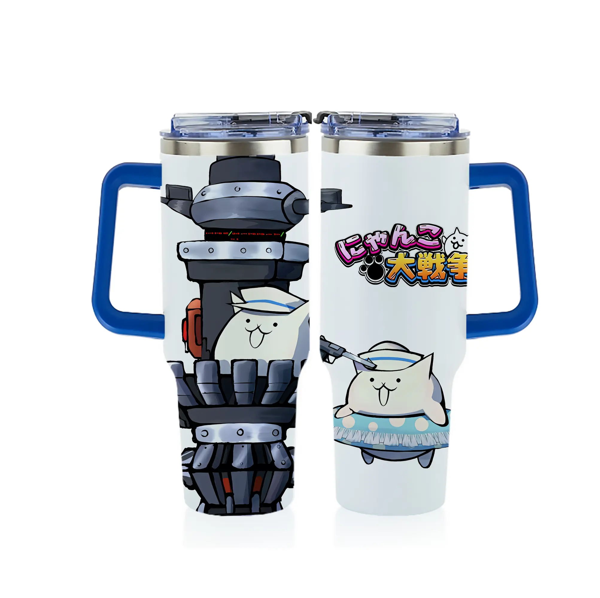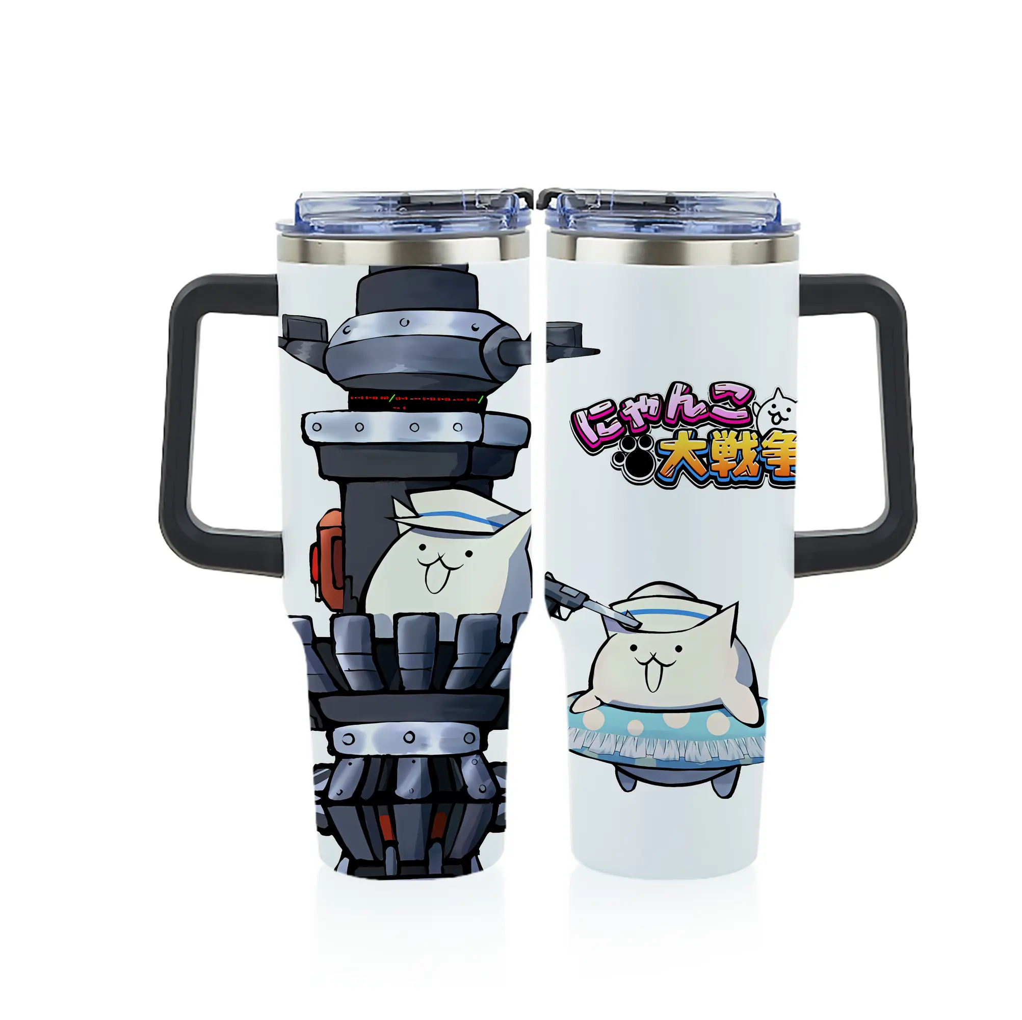 にゃんこ大戦争 グッズ - 1200mL フルプリント車用タンブラー ・ 304ステンレス 内側 ・ 201ステンレス 外側 ・ 保温 保冷 ・ 通勤 ドライブ アウトドア用