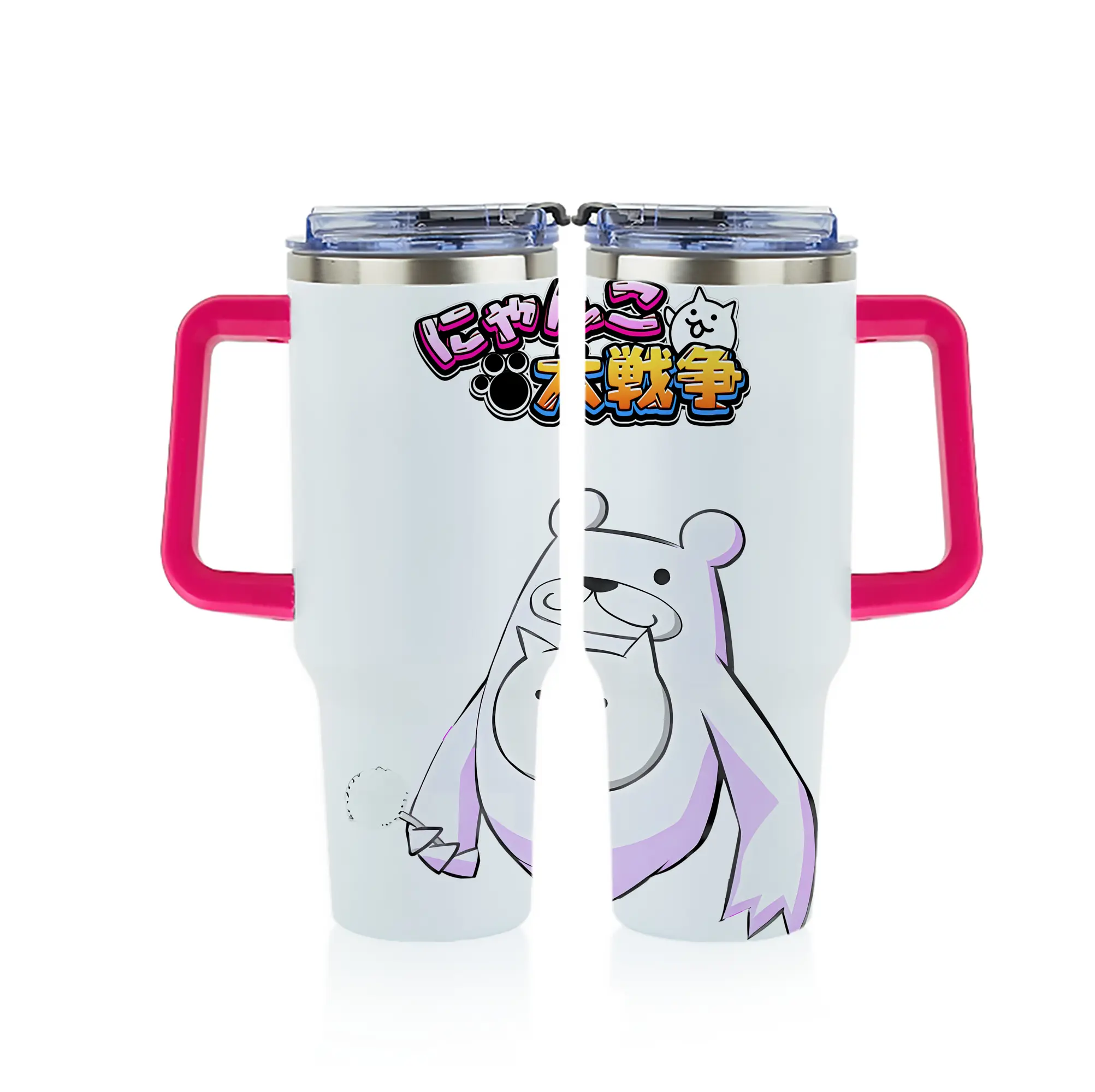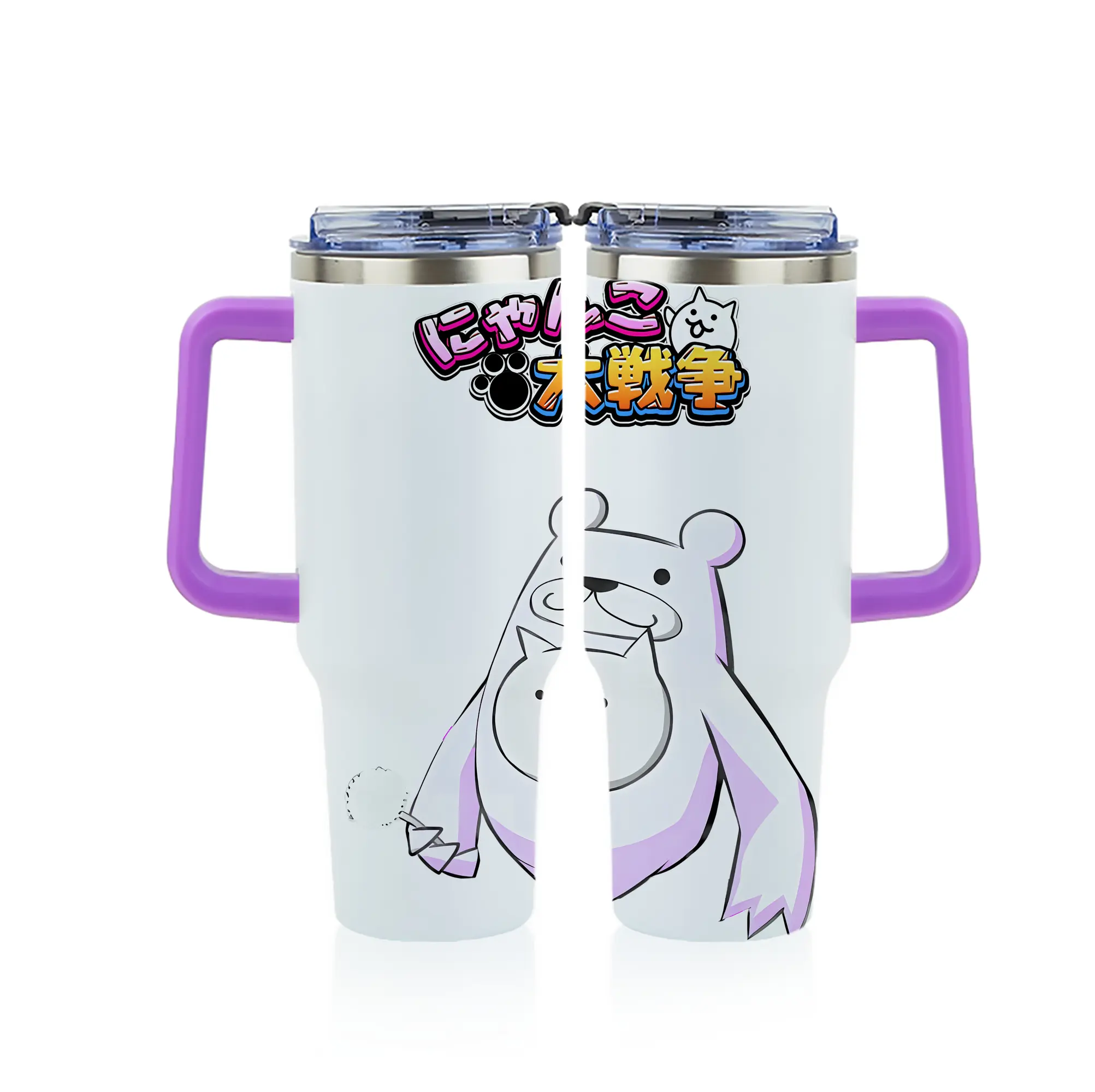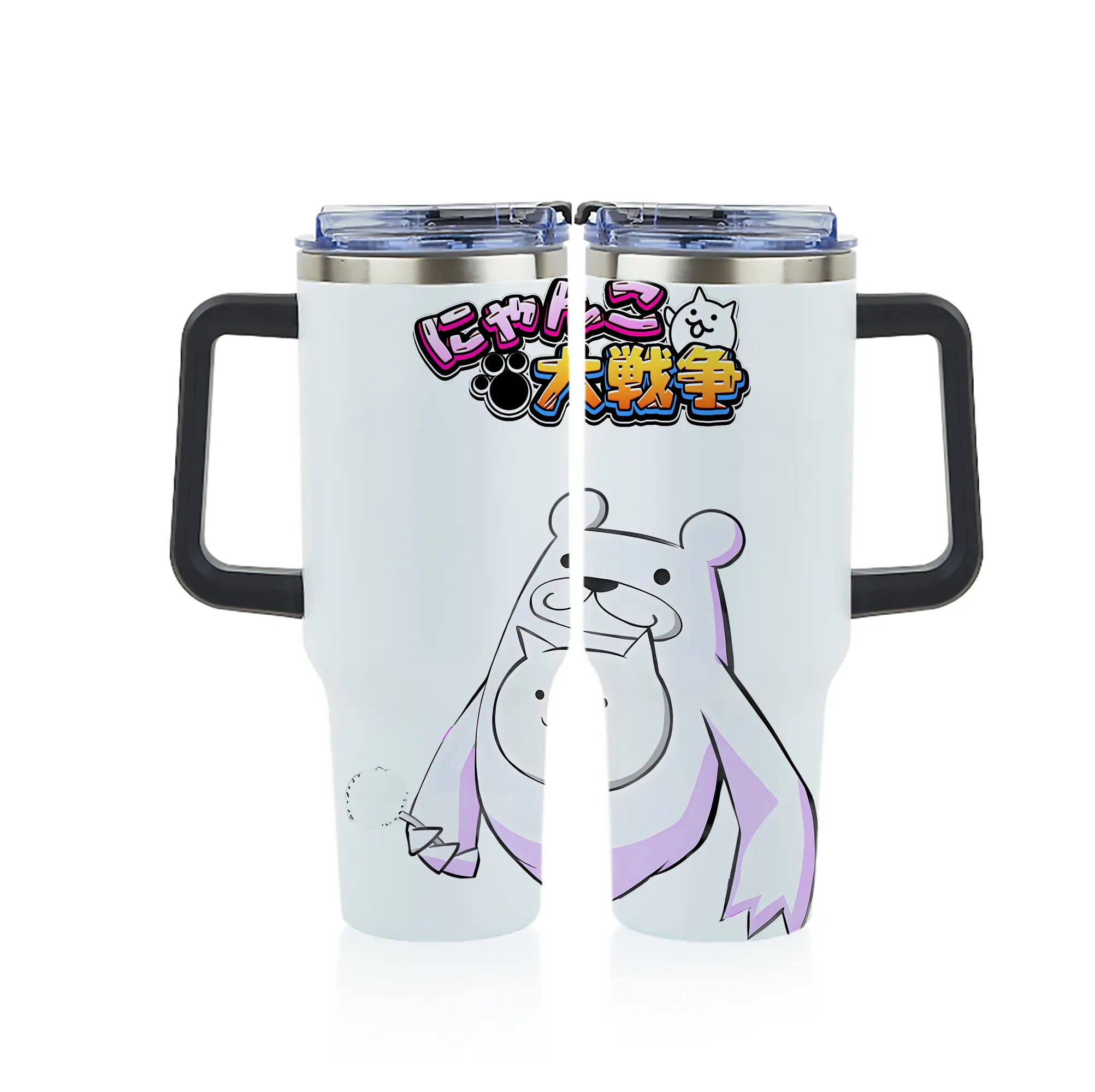 にゃんこ大戦争 グッズ - 1200mL フルプリント車用タンブラー ・ 304ステンレス 内側 ・ 201ステンレス 外側 ・ 保温 保冷 ・ 通勤 ドライブ アウトドア用