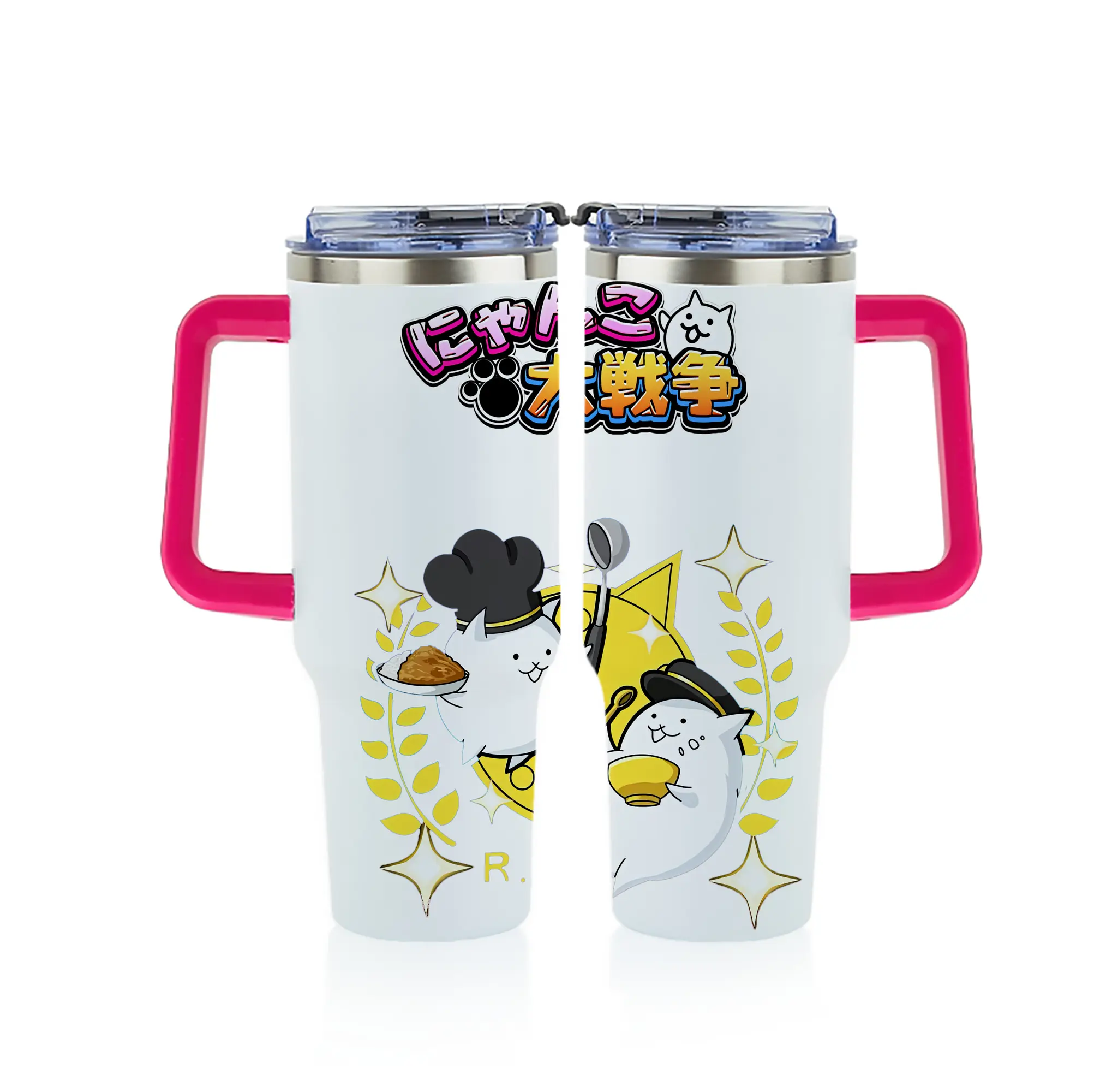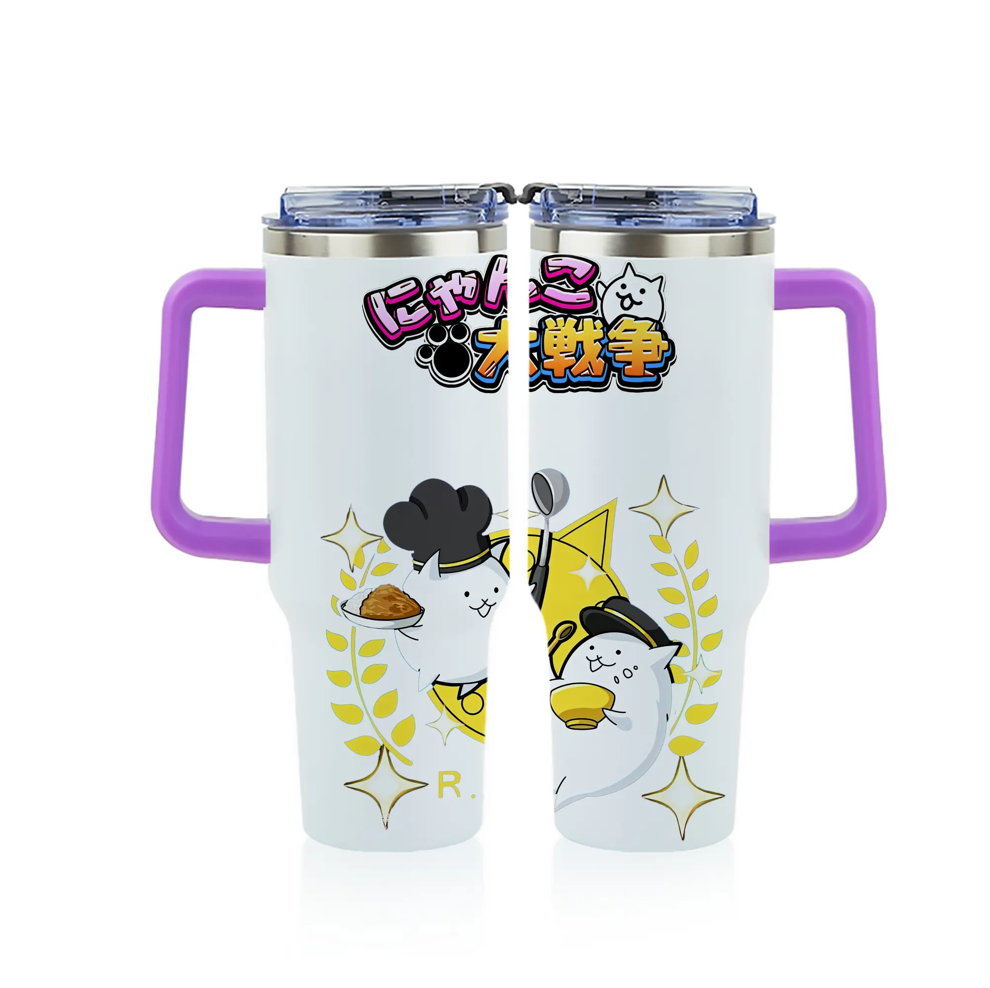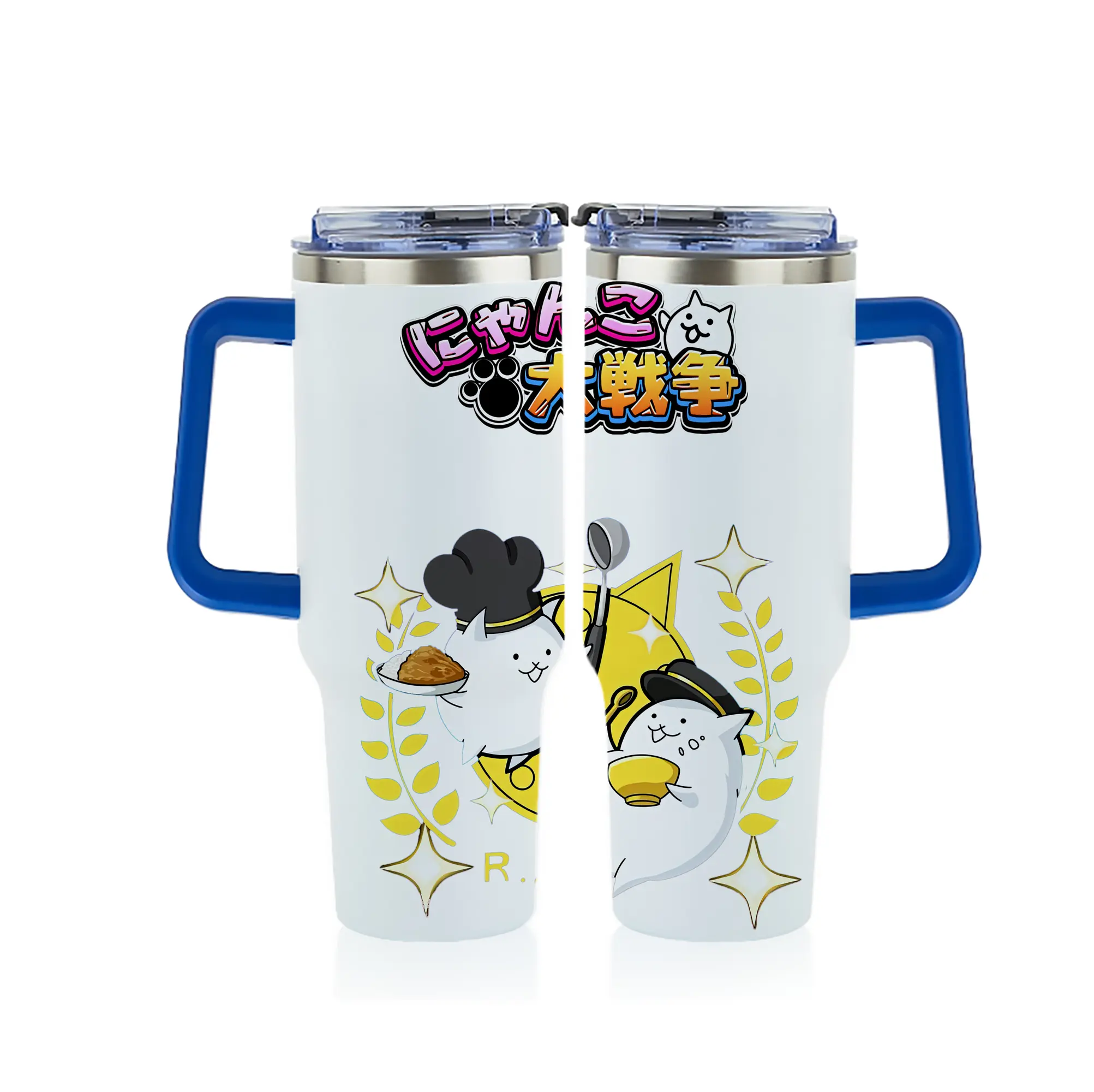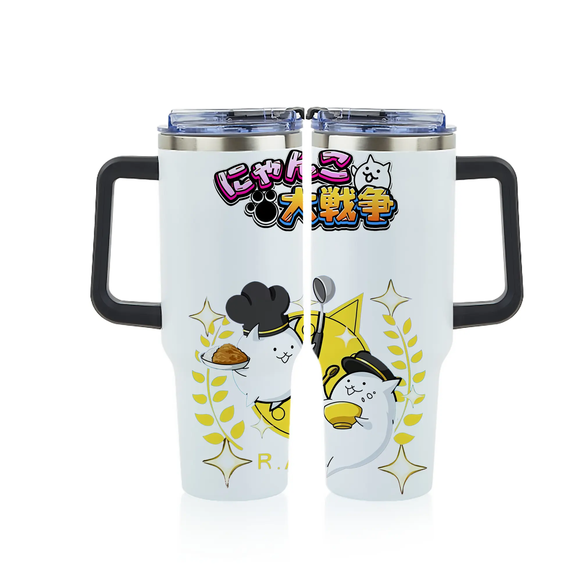 にゃんこ大戦争 グッズ - 1200mL フルプリント車用タンブラー ・ 304ステンレス 内側 ・ 201ステンレス 外側 ・ 保温 保冷 ・ 通勤 ドライブ アウトドア用