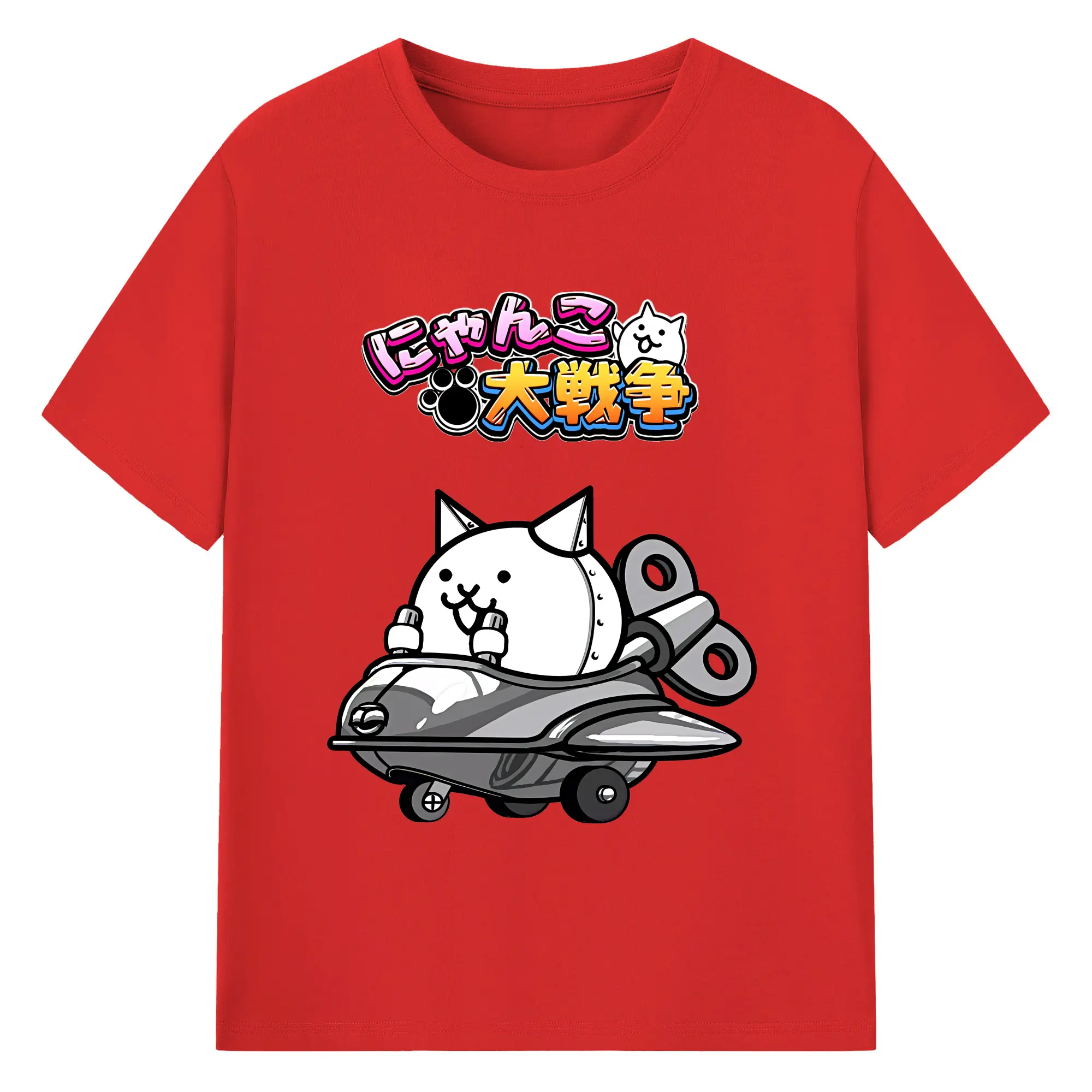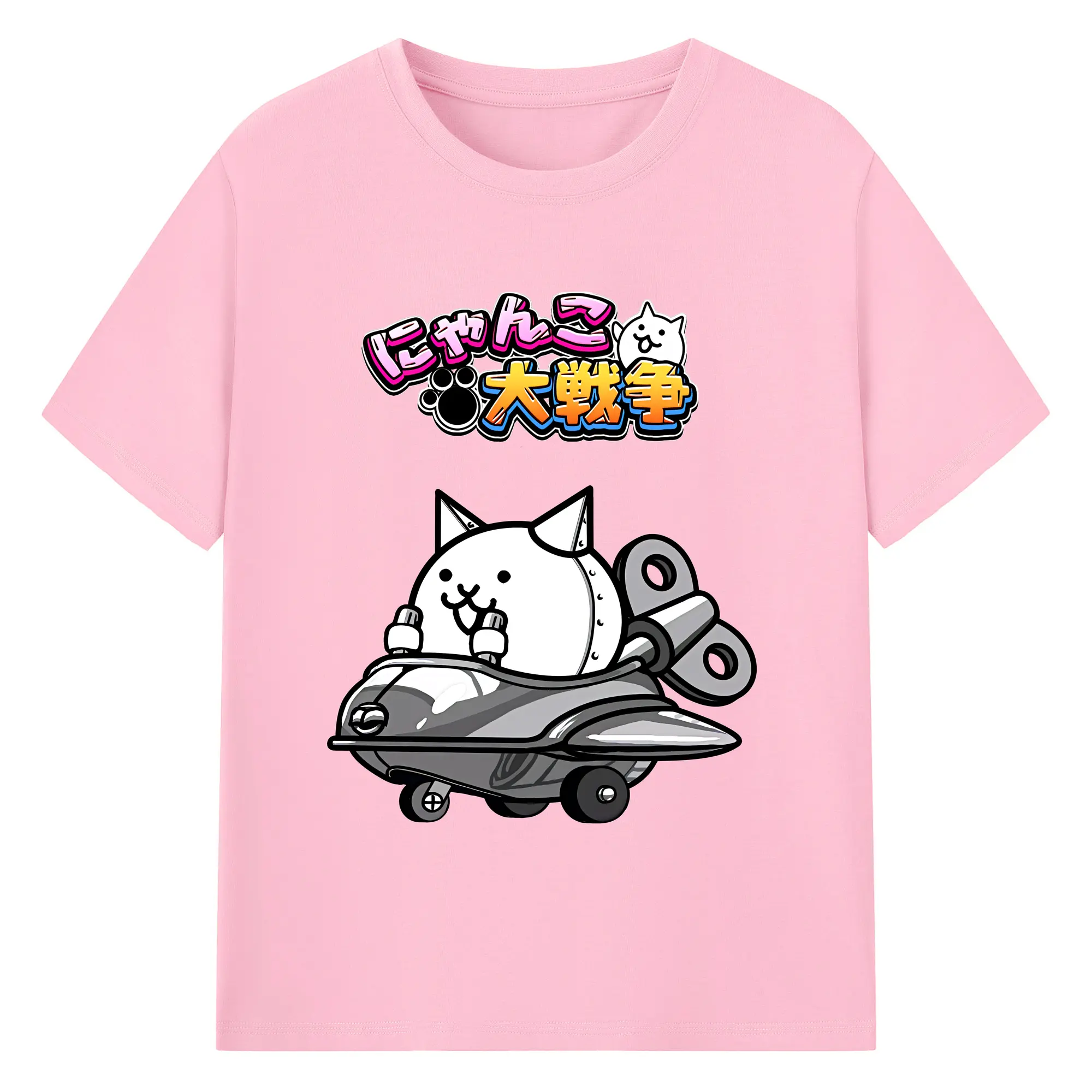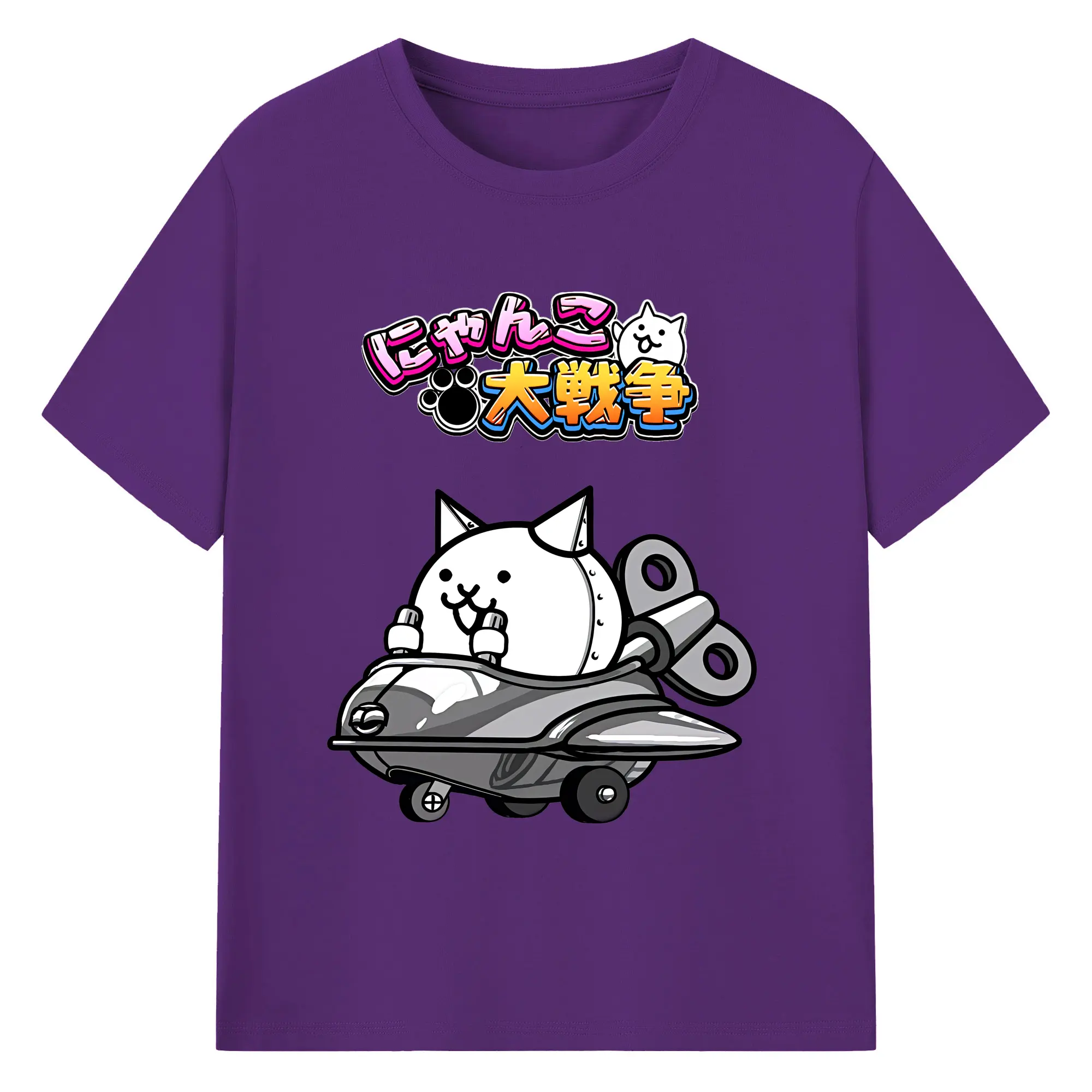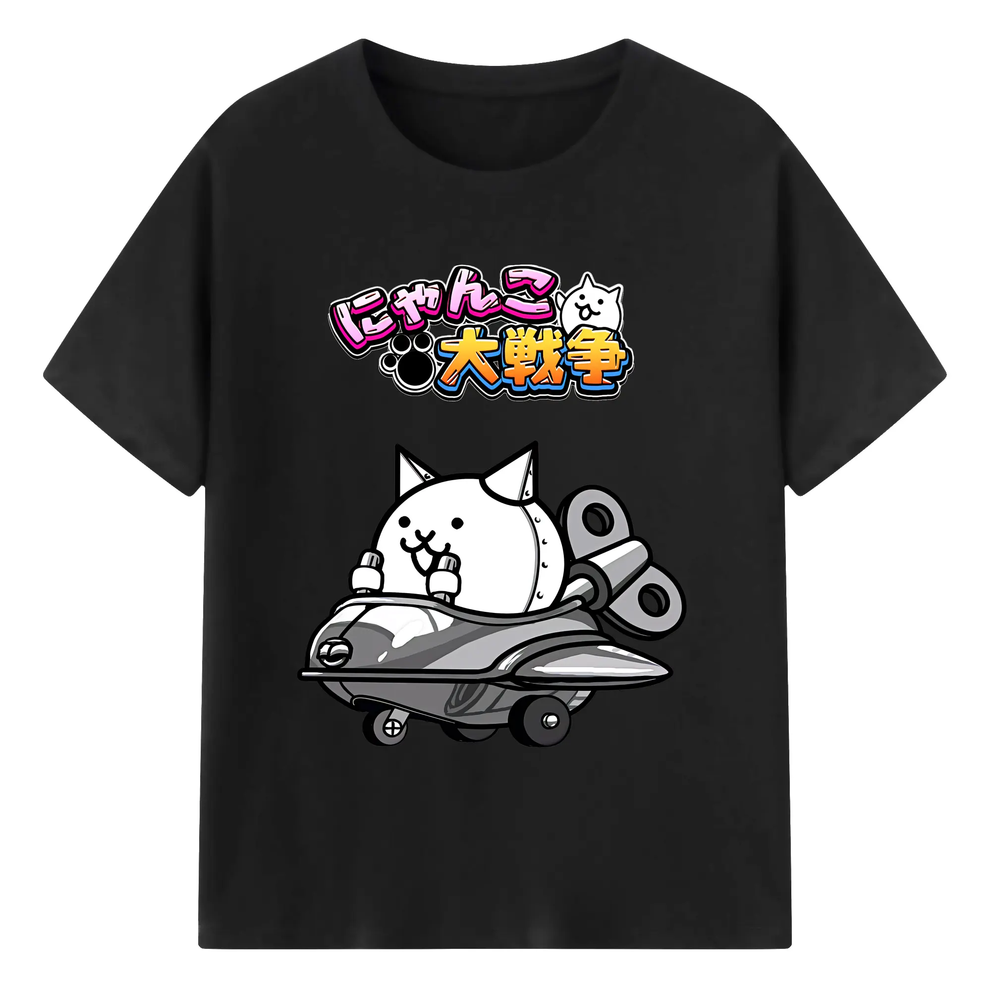 にゃんこ大戦争 グッズ - 綿100% 半袖Tシャツ ・ バックプリント ・ 快適 通気性 ・ 日常使い 散歩 スポーツ用