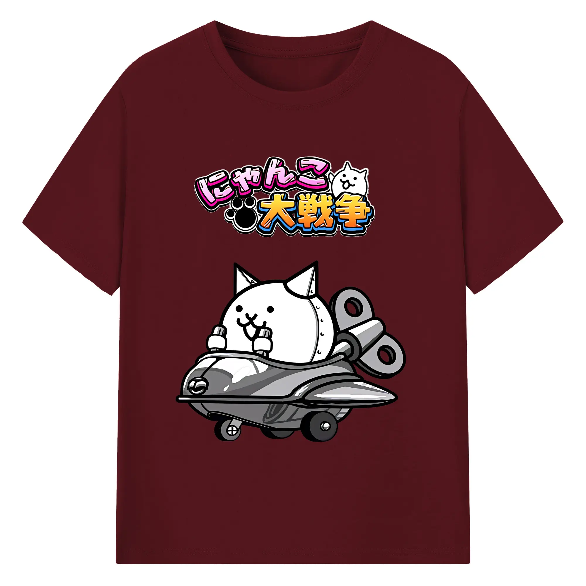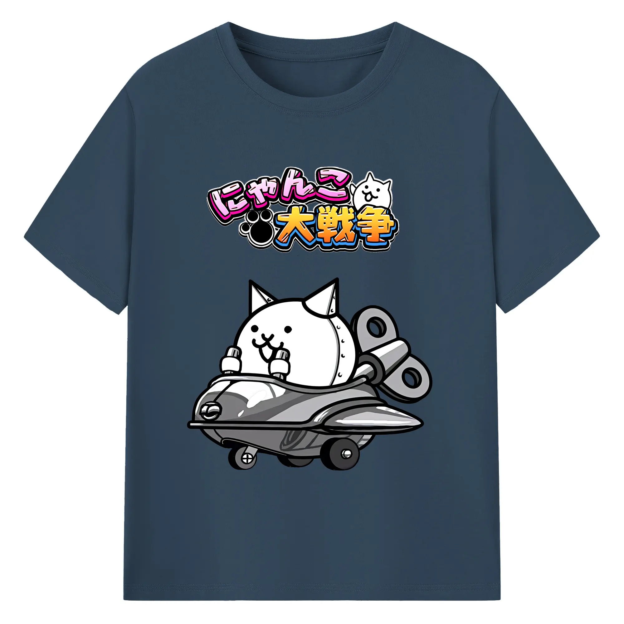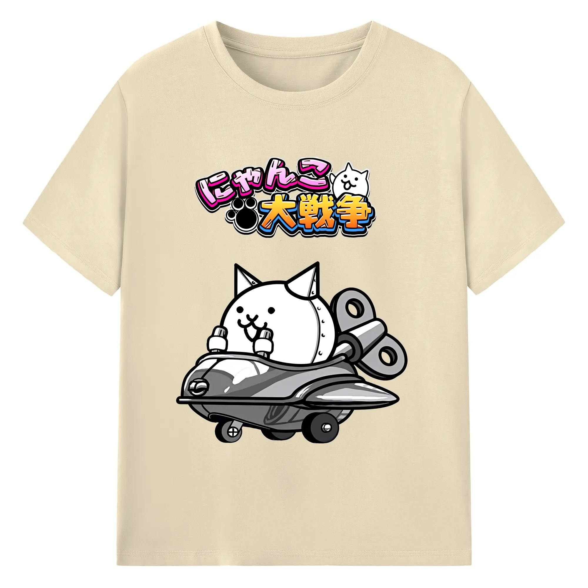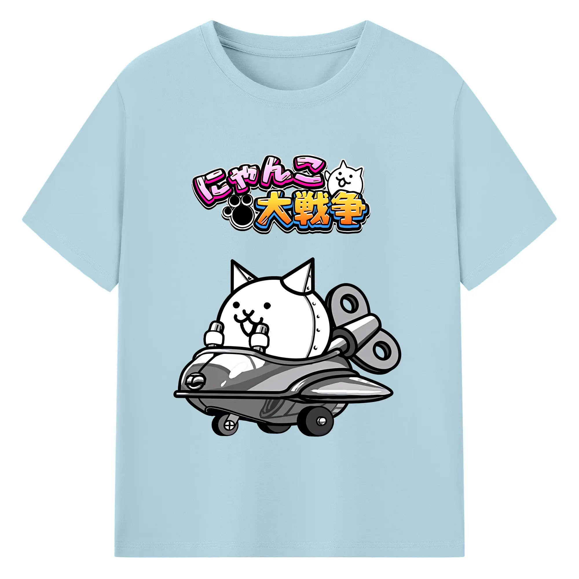 にゃんこ大戦争 グッズ - 綿100% 半袖Tシャツ ・ バックプリント ・ 快適 通気性 ・ 日常使い 散歩 スポーツ用