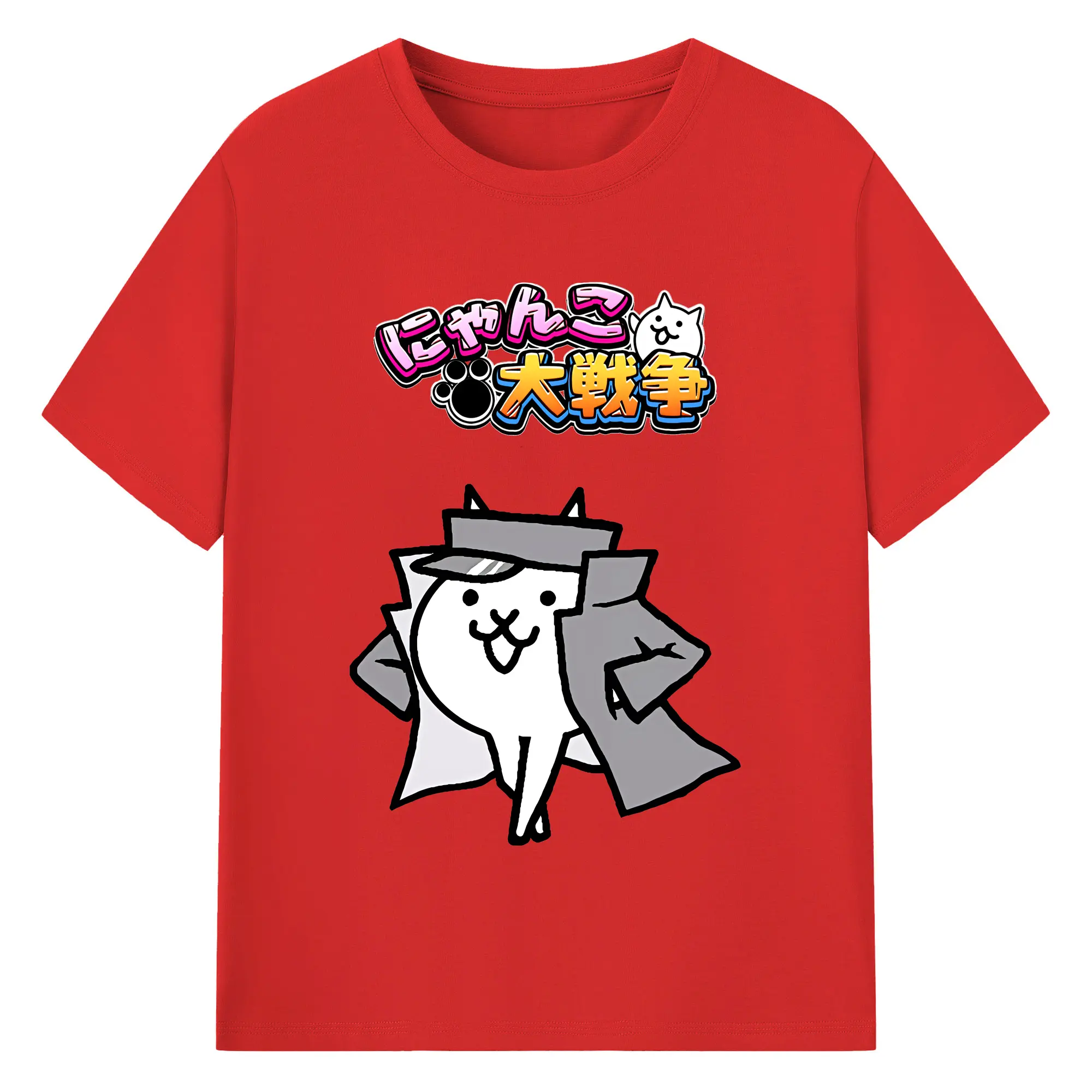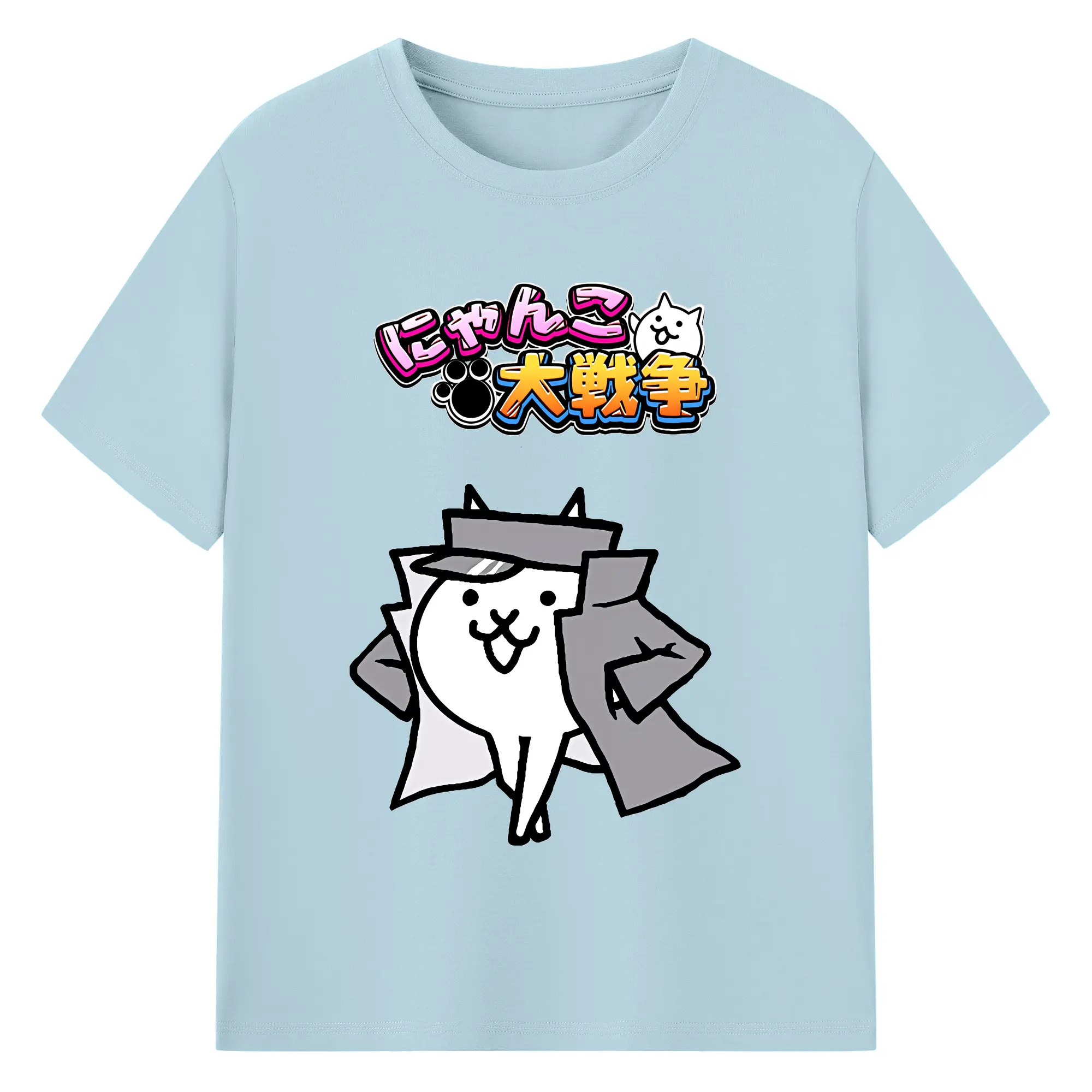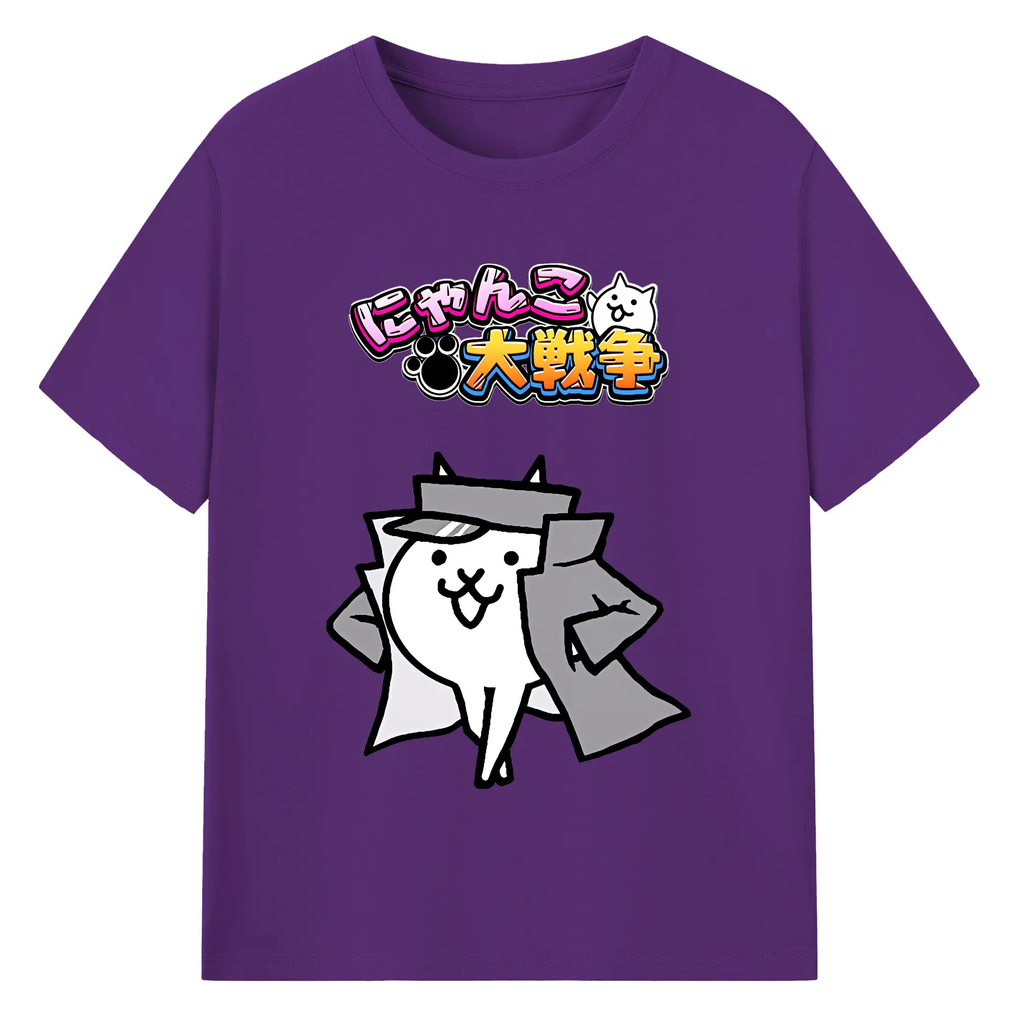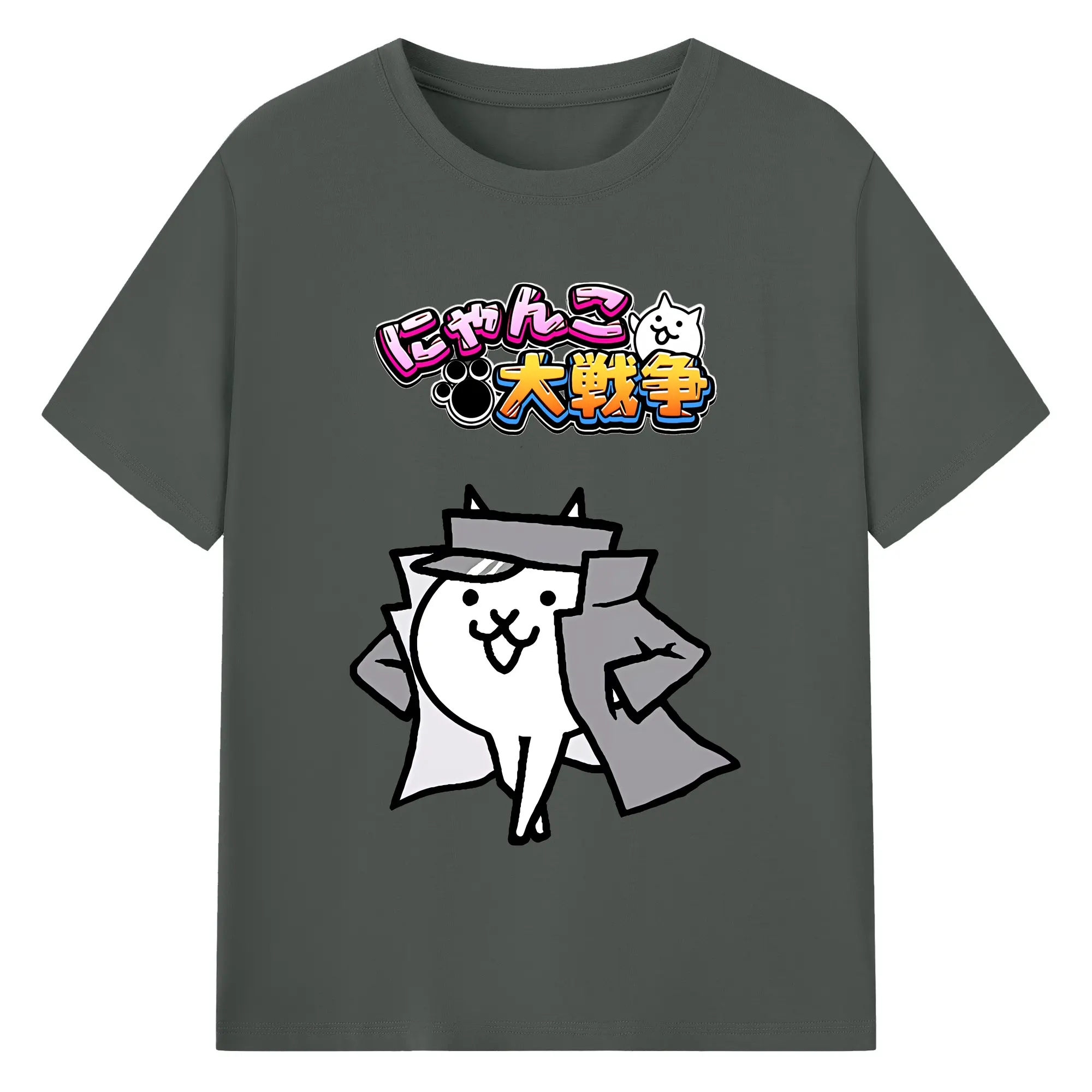 にゃんこ大戦争 グッズ - 綿100% 半袖Tシャツ ・ バックプリント ・ 快適 通気性 ・ 日常使い 散歩 スポーツ用