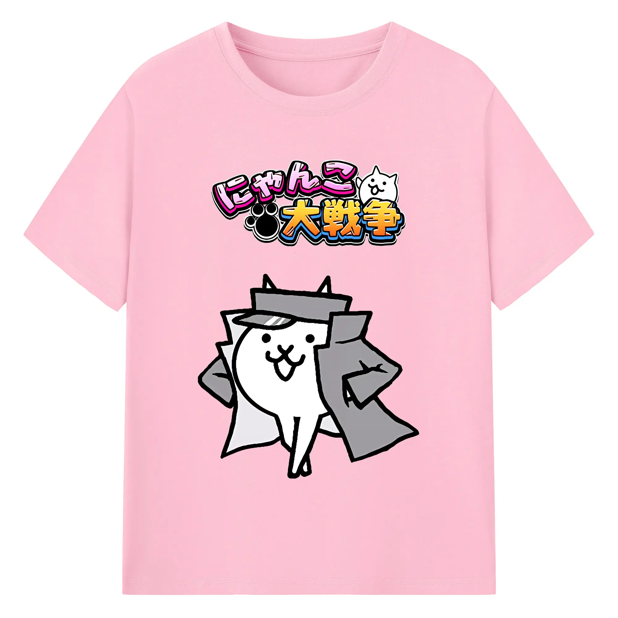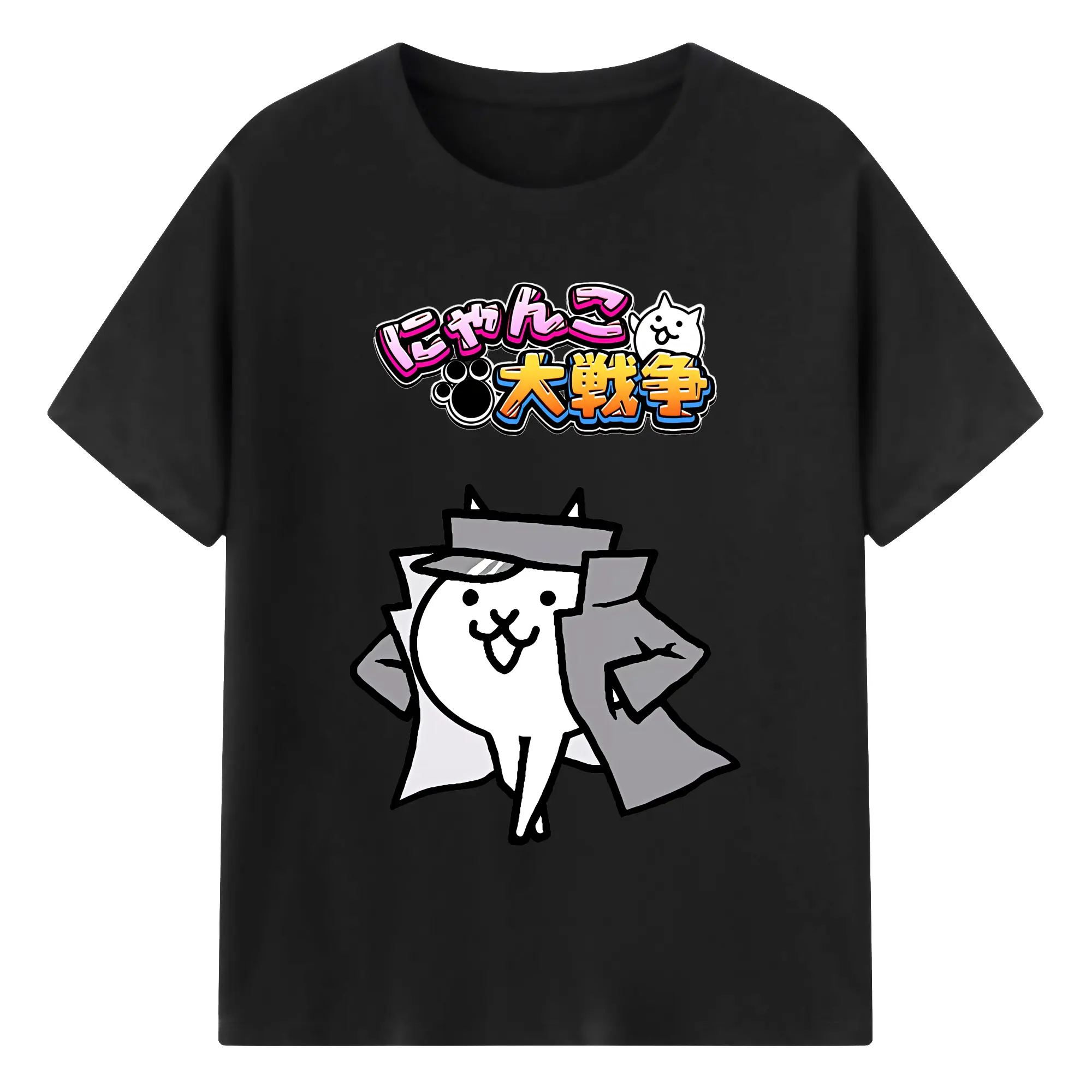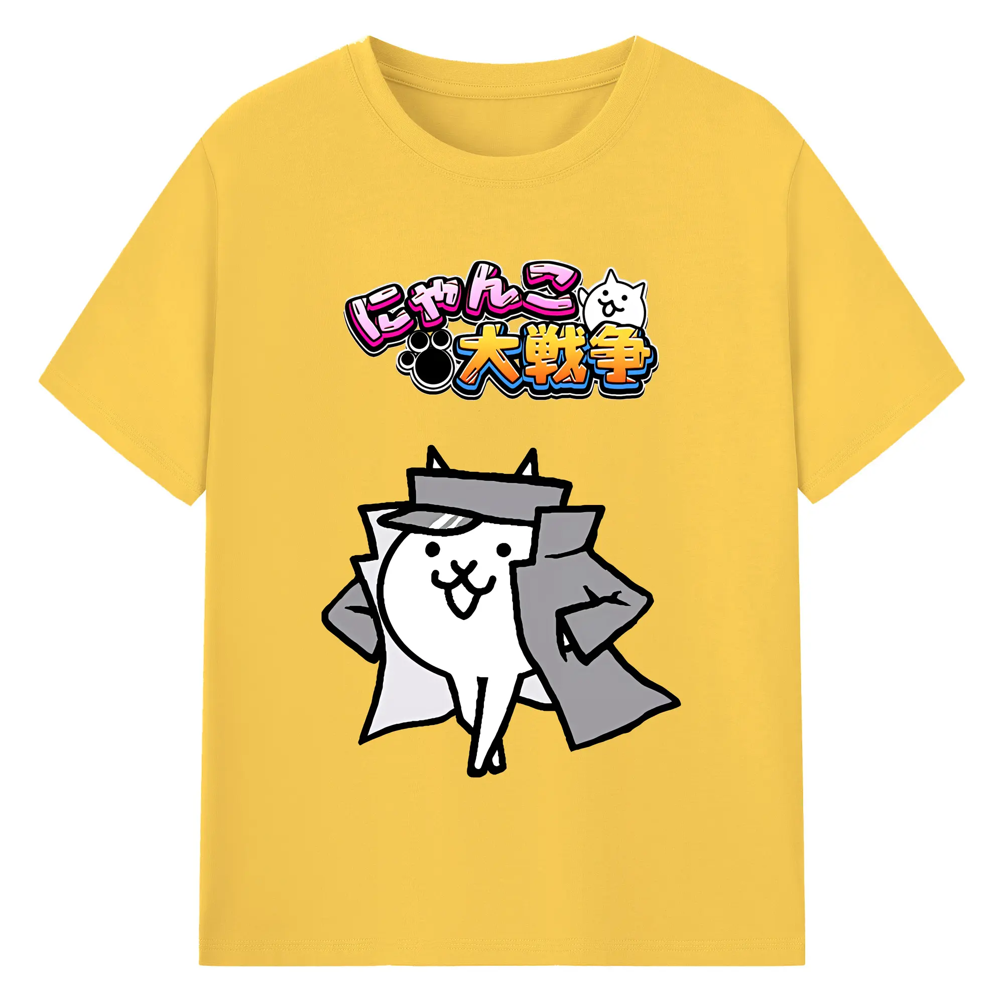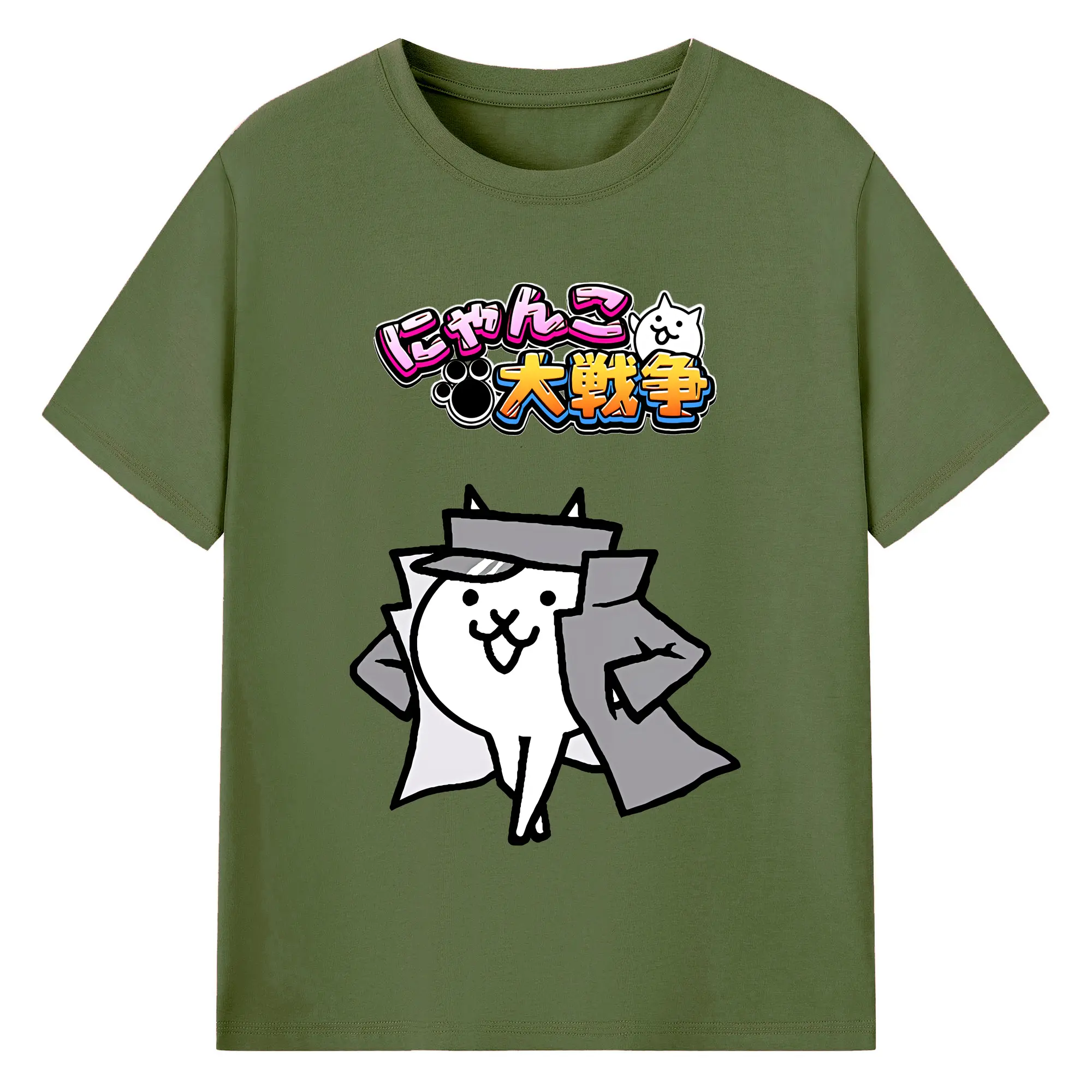 にゃんこ大戦争 グッズ - 綿100% 半袖Tシャツ ・ バックプリント ・ 快適 通気性 ・ 日常使い 散歩 スポーツ用