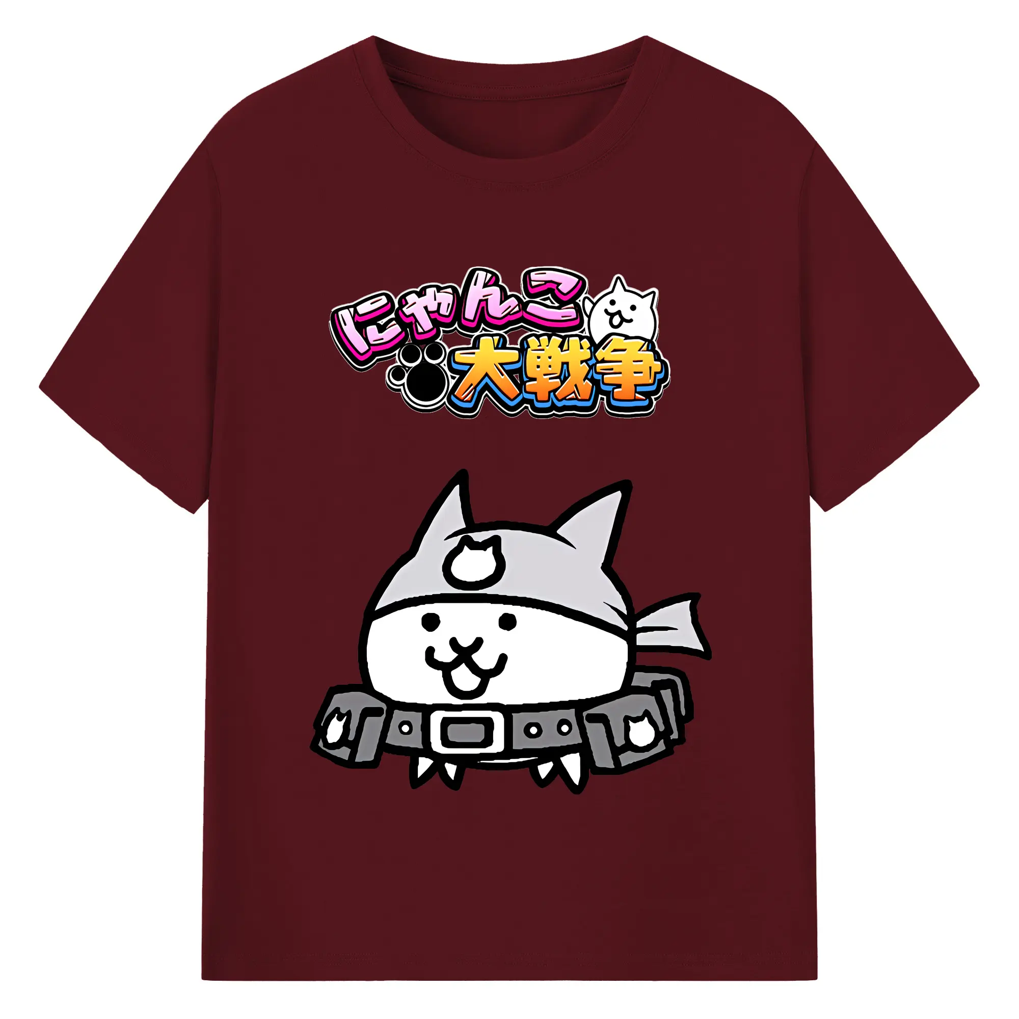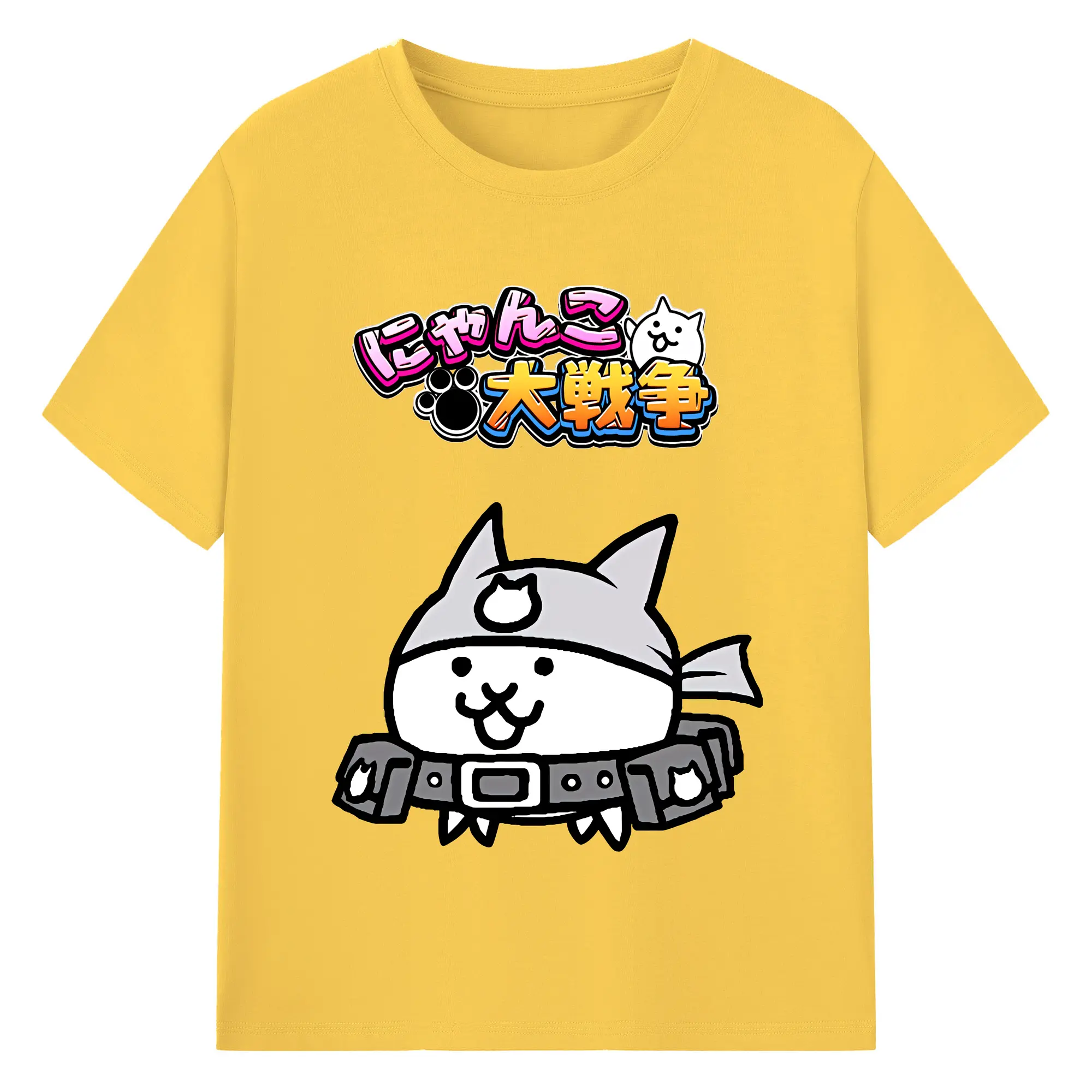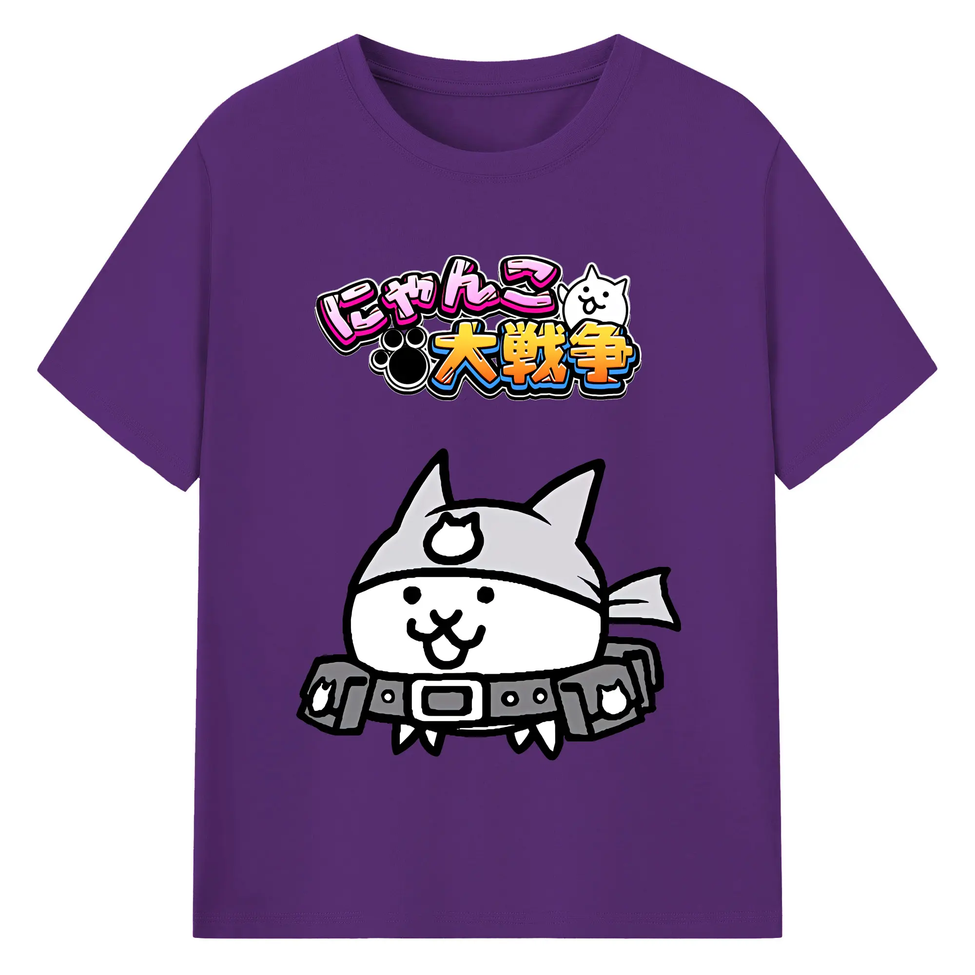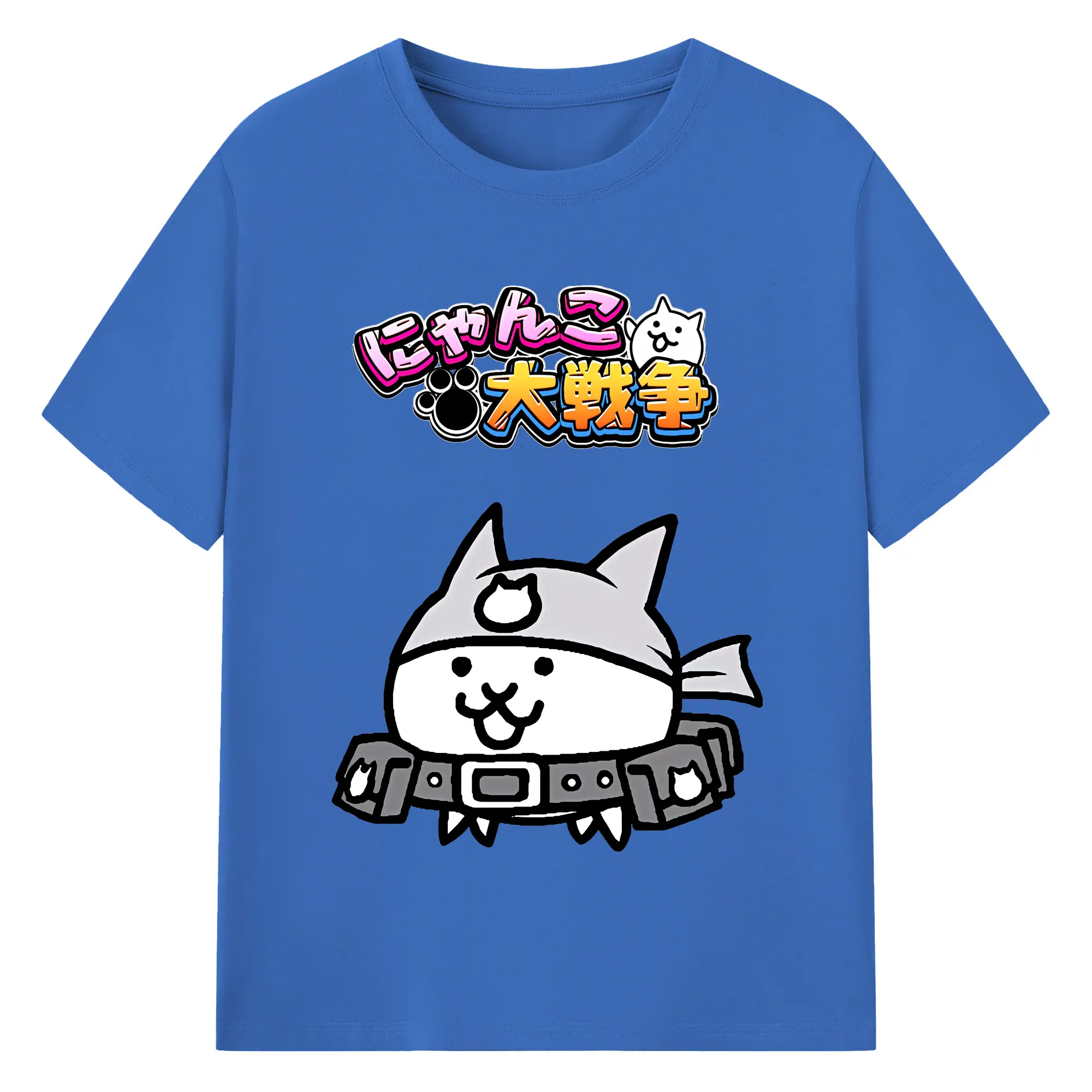 にゃんこ大戦争 グッズ - 綿100% 半袖Tシャツ ・ バックプリント ・ 快適 通気性 ・ 日常使い 散歩 スポーツ用
