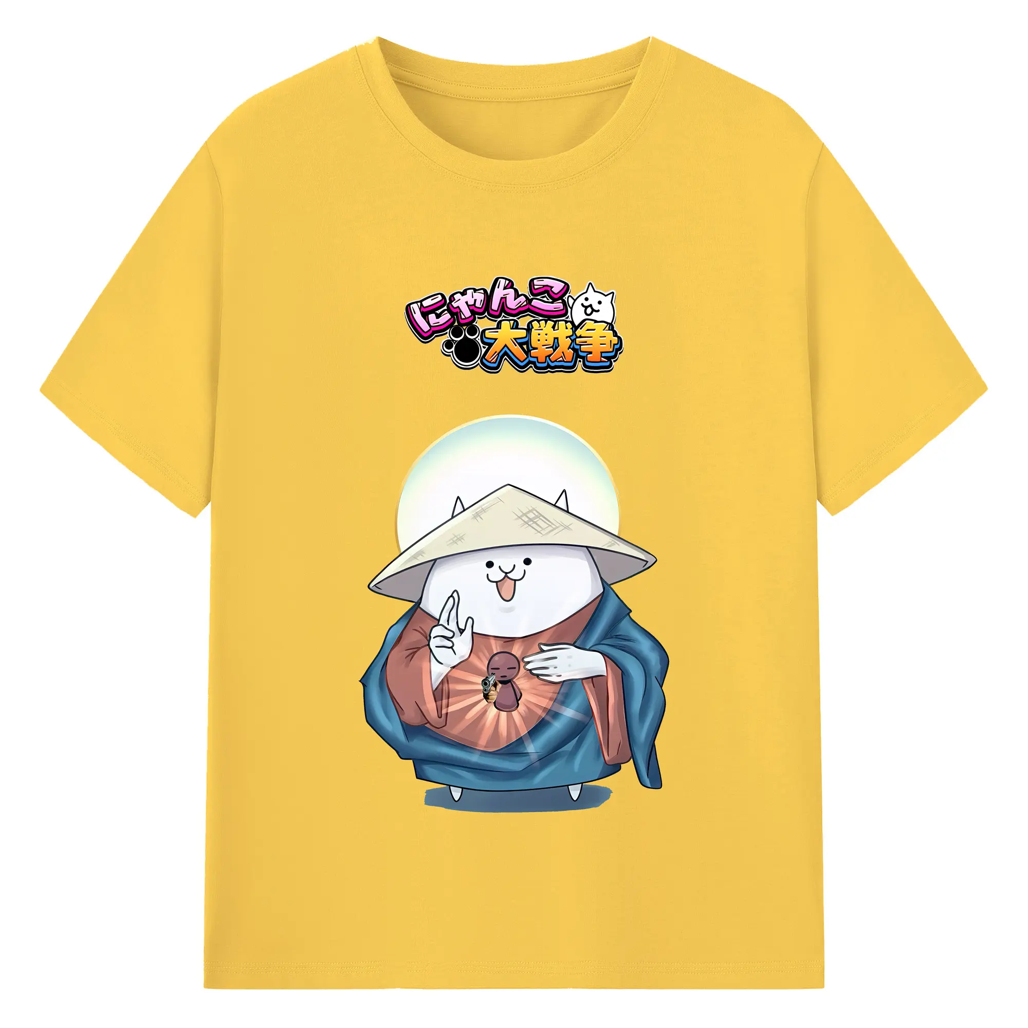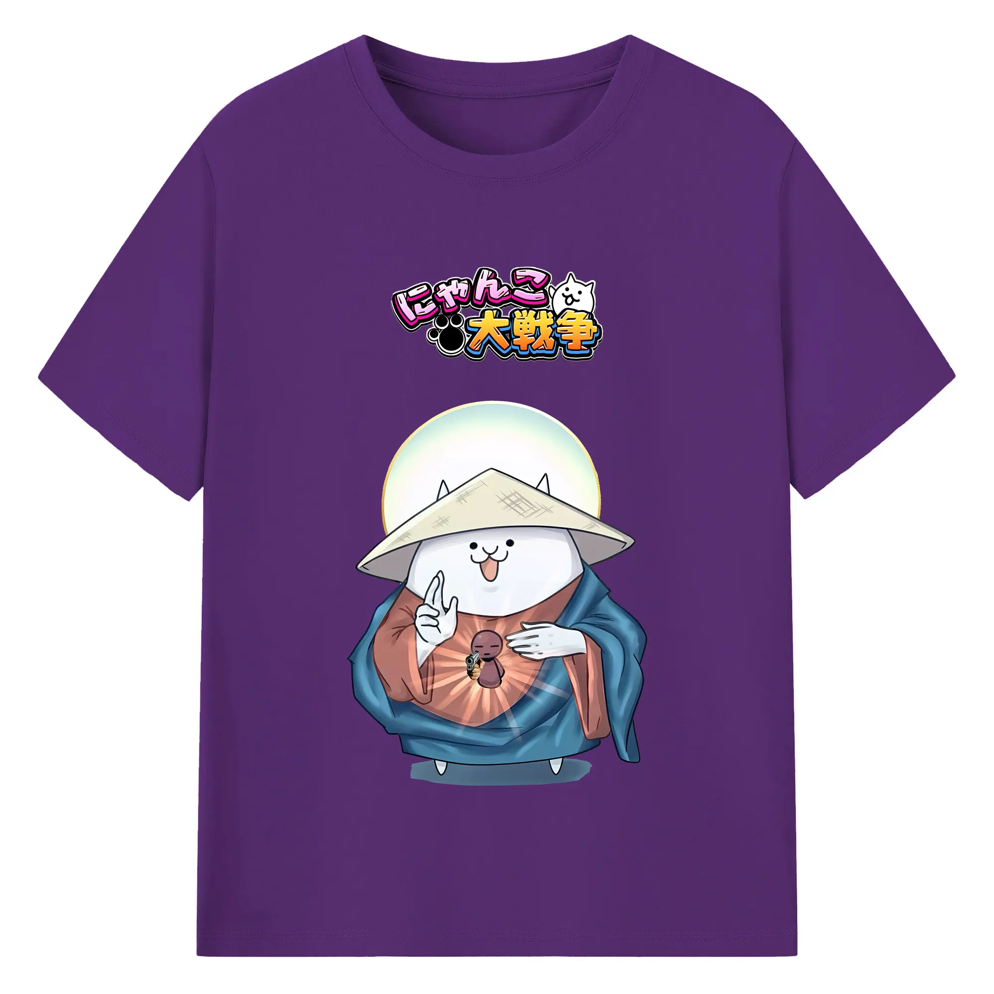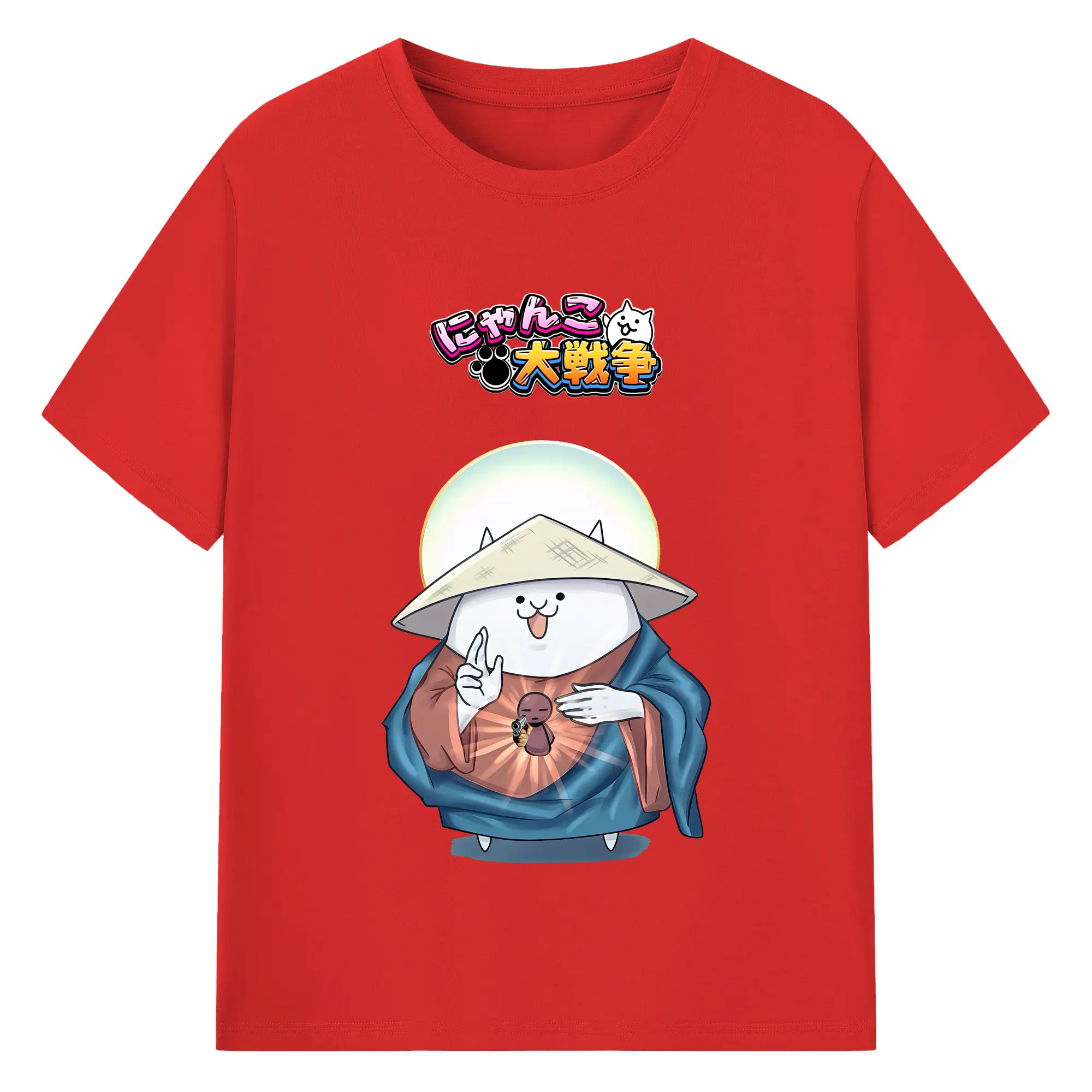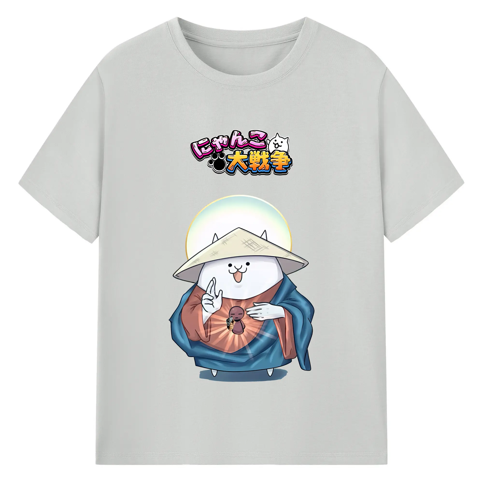 にゃんこ大戦争 グッズ - 綿100% 半袖Tシャツ ・ バックプリント ・ 快適 通気性 ・ 日常使い 散歩 スポーツ用