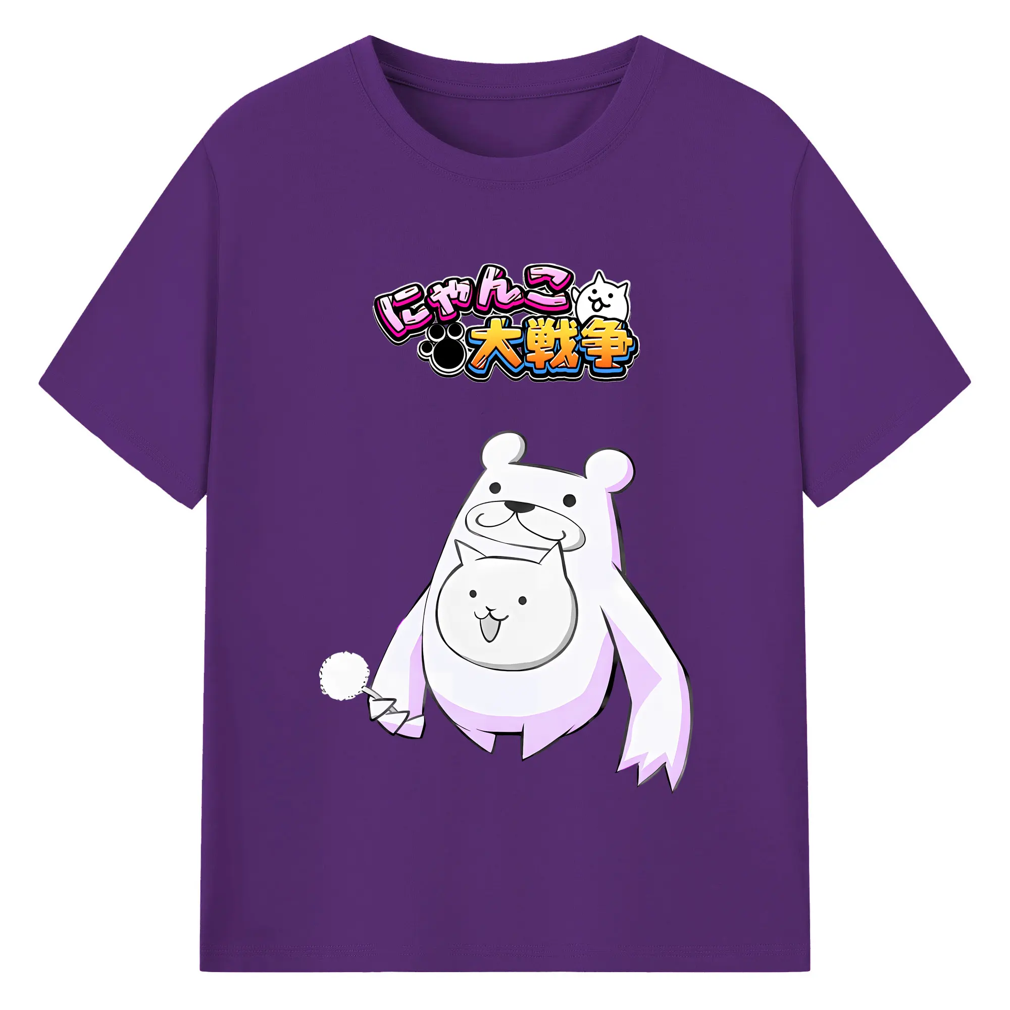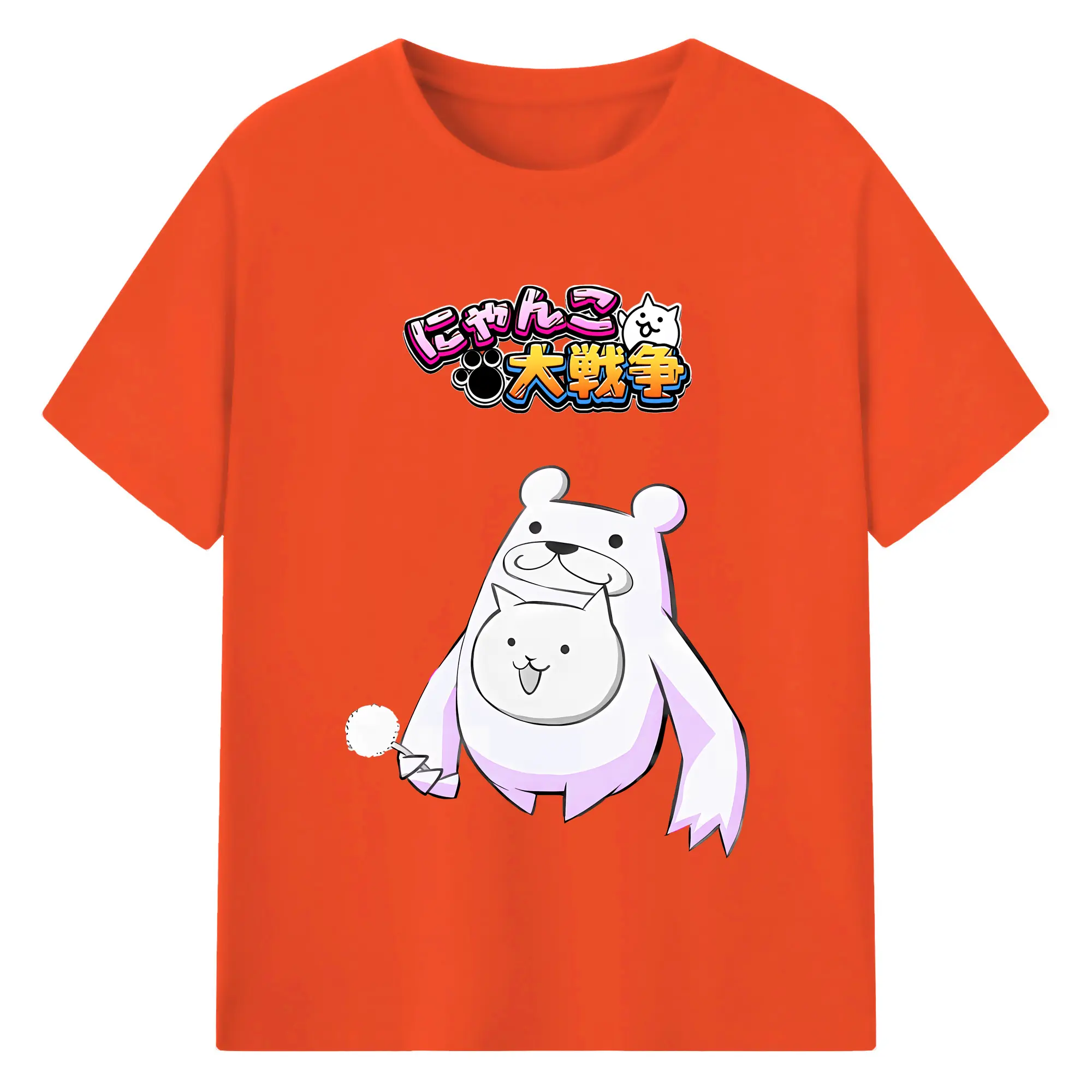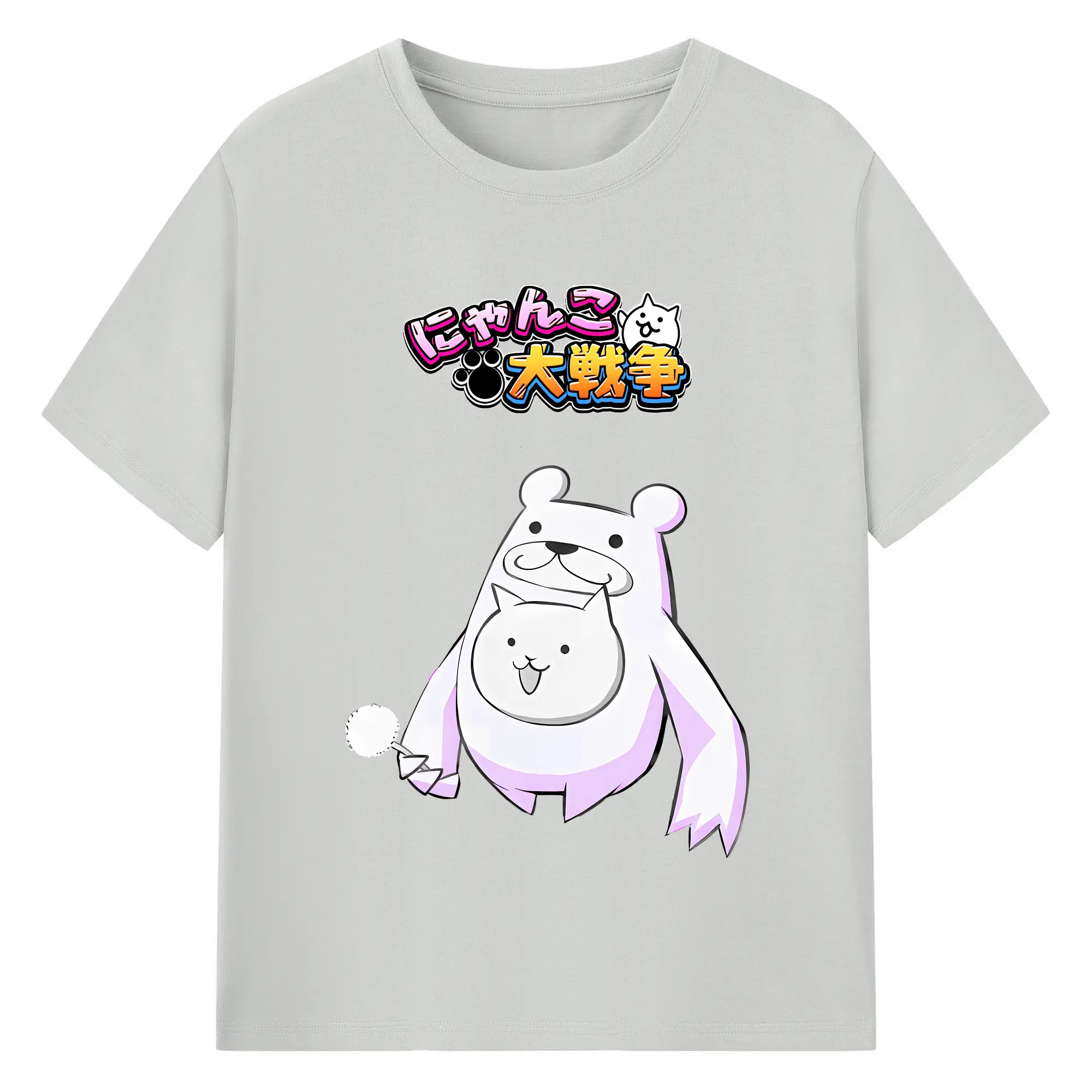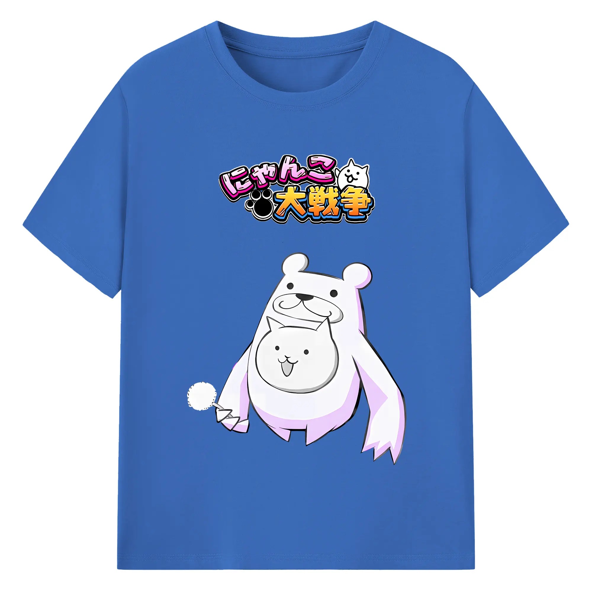 にゃんこ大戦争 グッズ - 綿100% 半袖Tシャツ ・ バックプリント ・ 快適 通気性 ・ 日常使い 散歩 スポーツ用