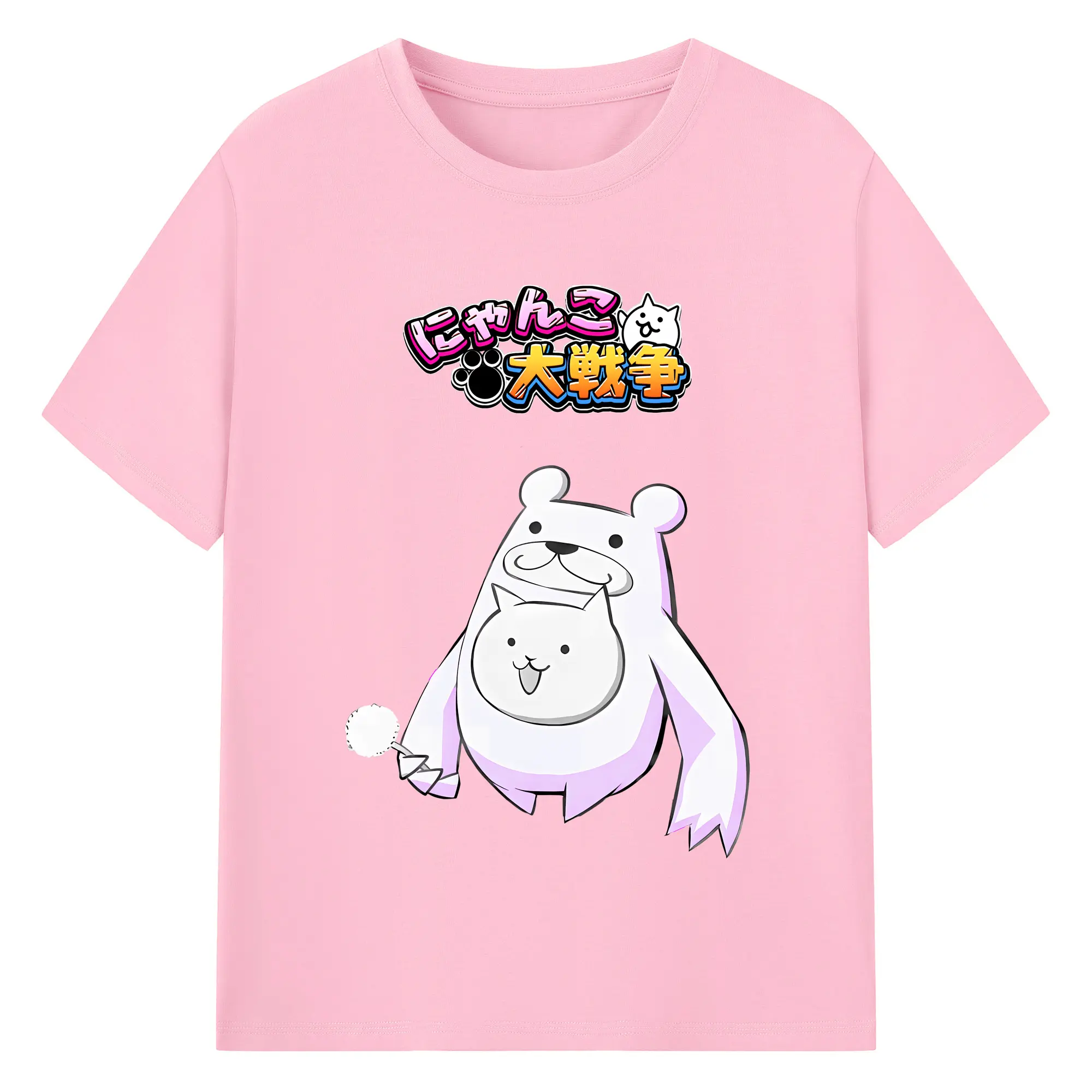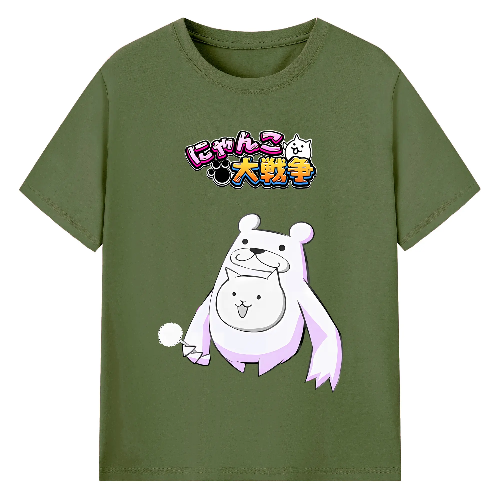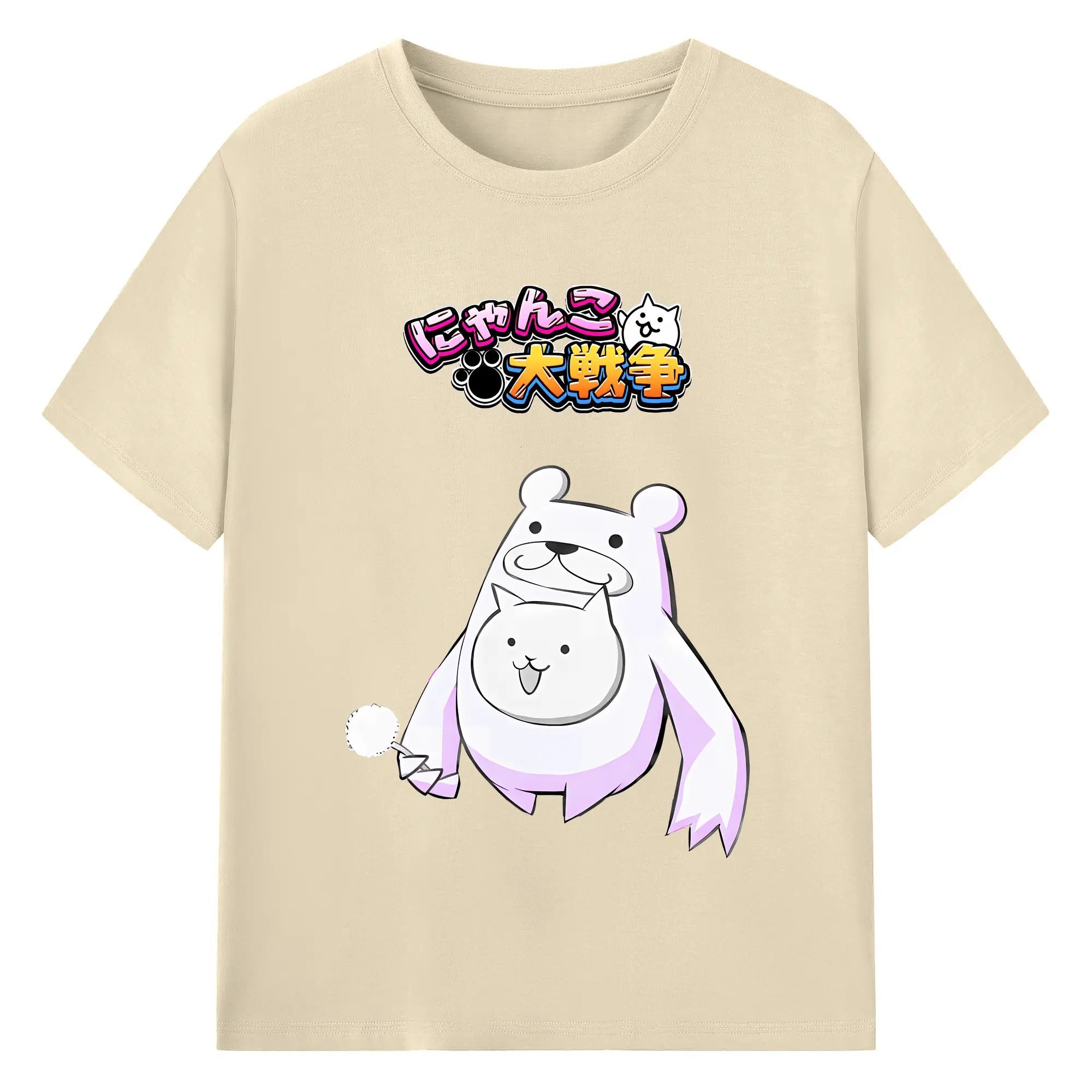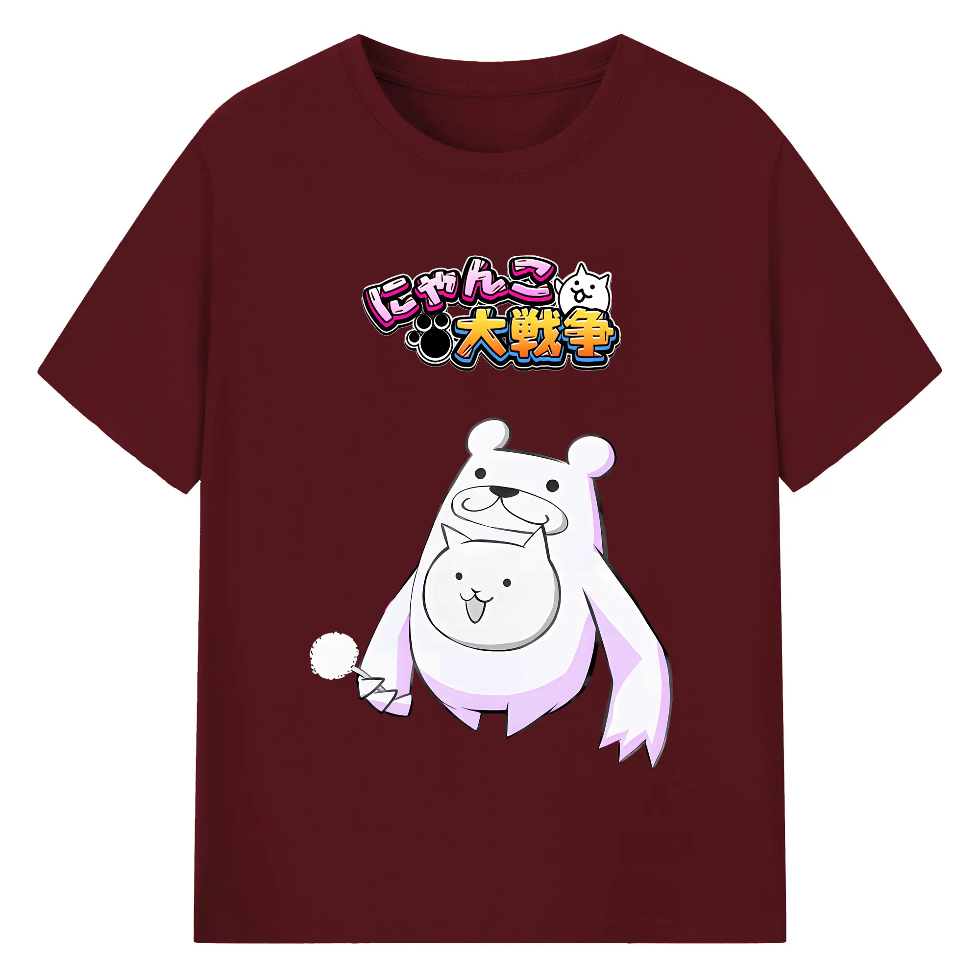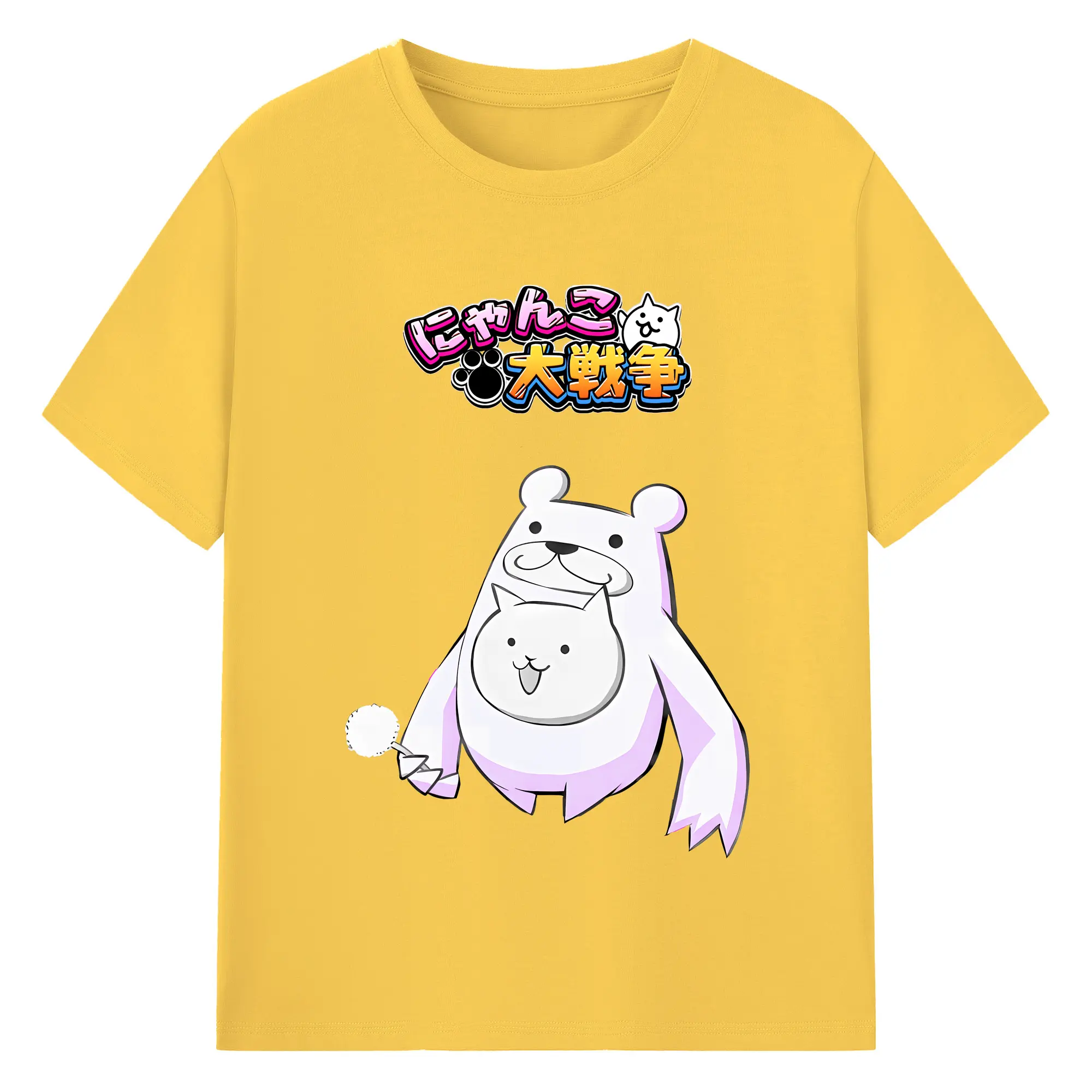 にゃんこ大戦争 グッズ - 綿100% 半袖Tシャツ ・ バックプリント ・ 快適 通気性 ・ 日常使い 散歩 スポーツ用