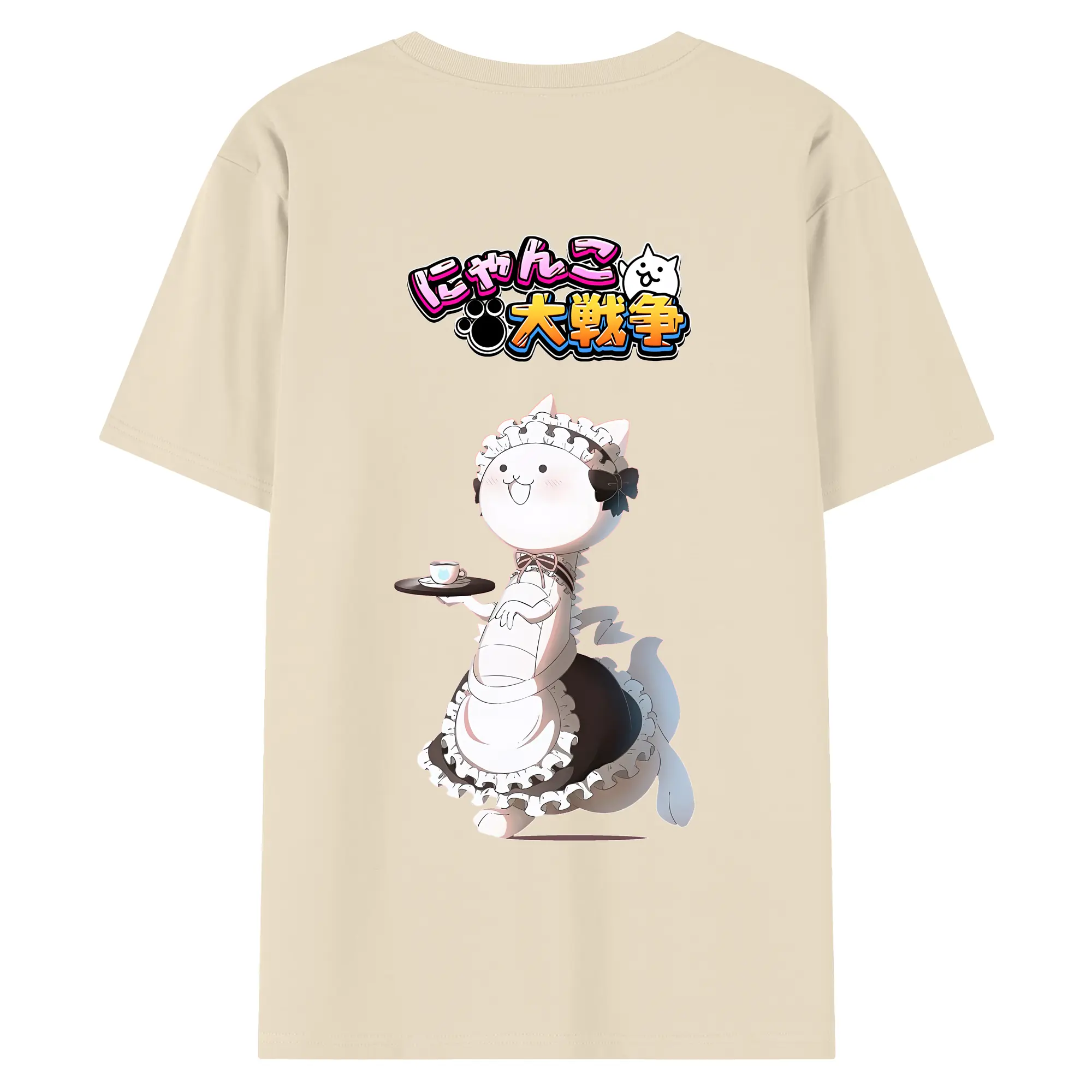 にゃんこ大戦争 グッズ - 綿100% ヴィンテージ風 半袖Tシャツ ・ 背面プリント ・ 柔らか肌触り ・ 通気性 快適 ・ スポーツ カジュアル 外出用
