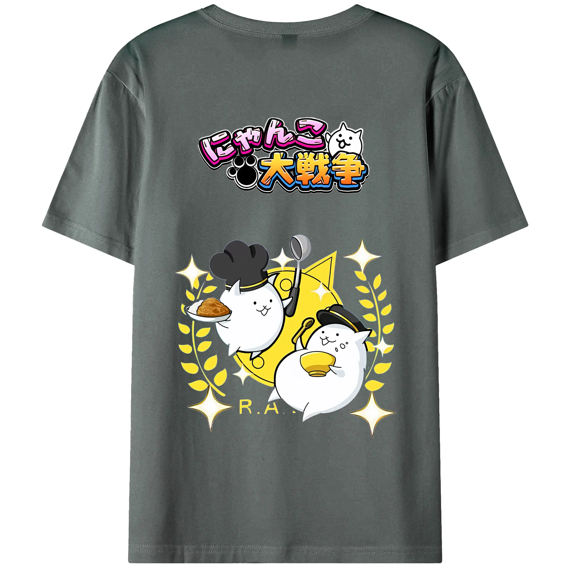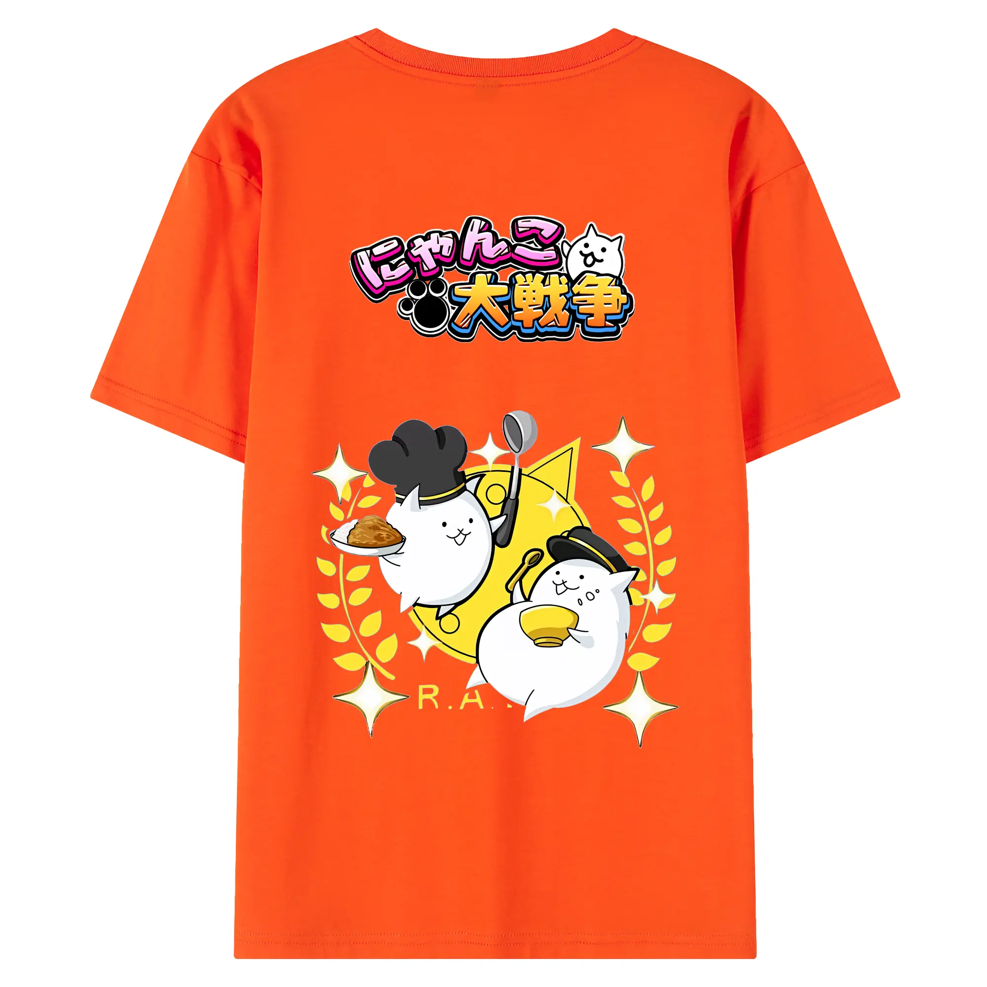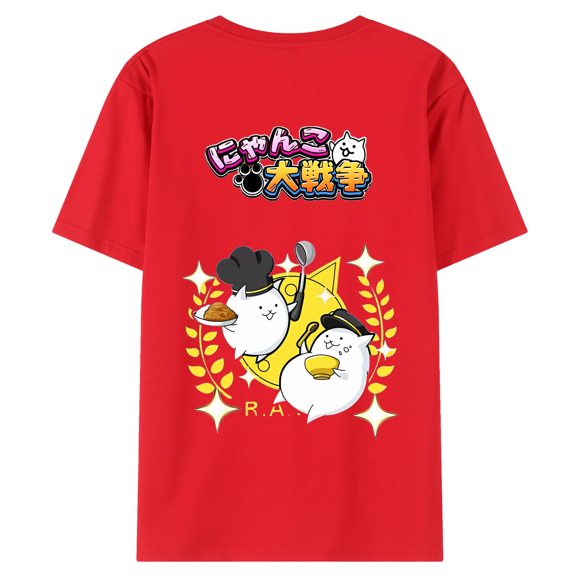 にゃんこ大戦争 グッズ - 綿100% 半袖Tシャツ ・ フロントプリント ・ 快適 通気性 ・ 日常使い 散歩 スポーツ用