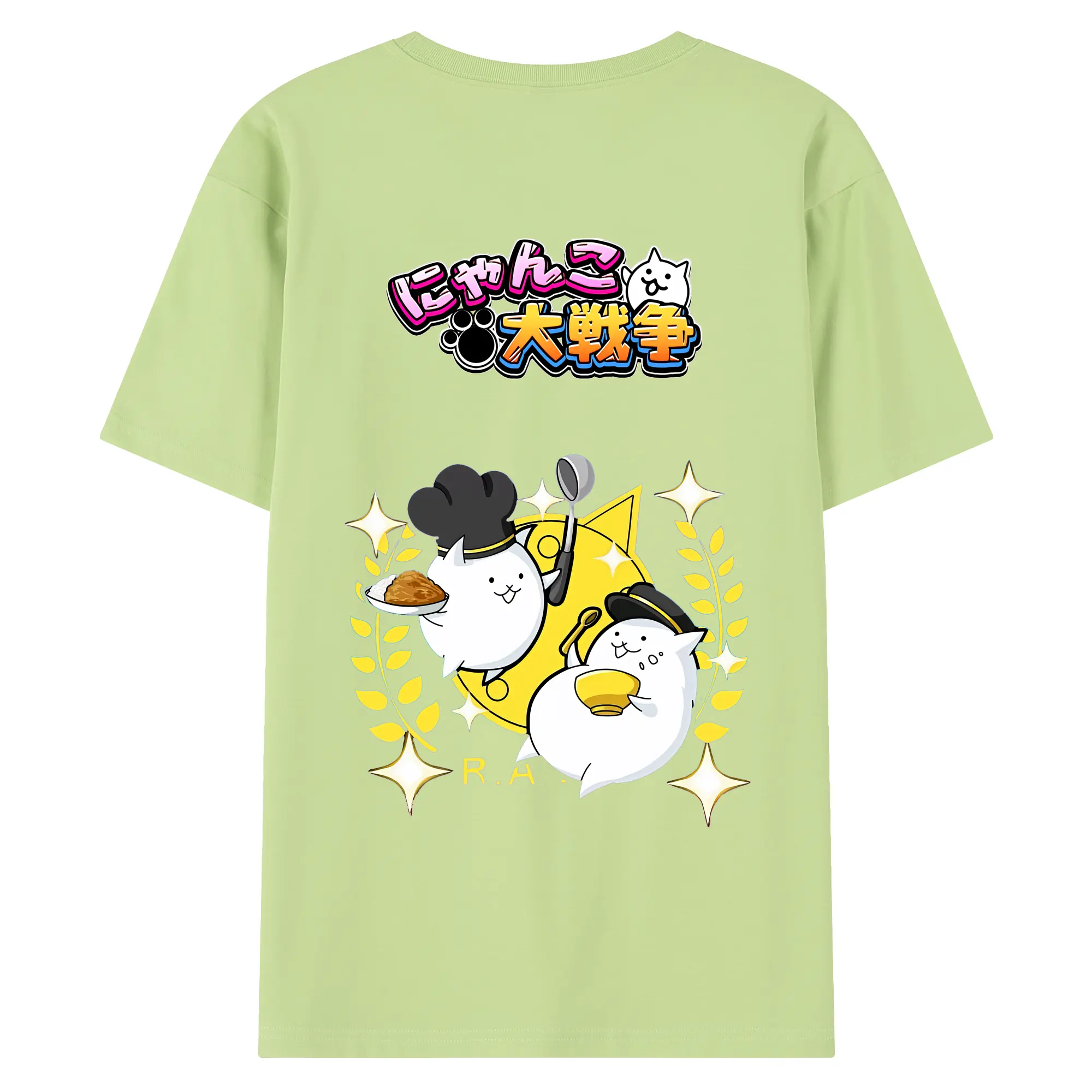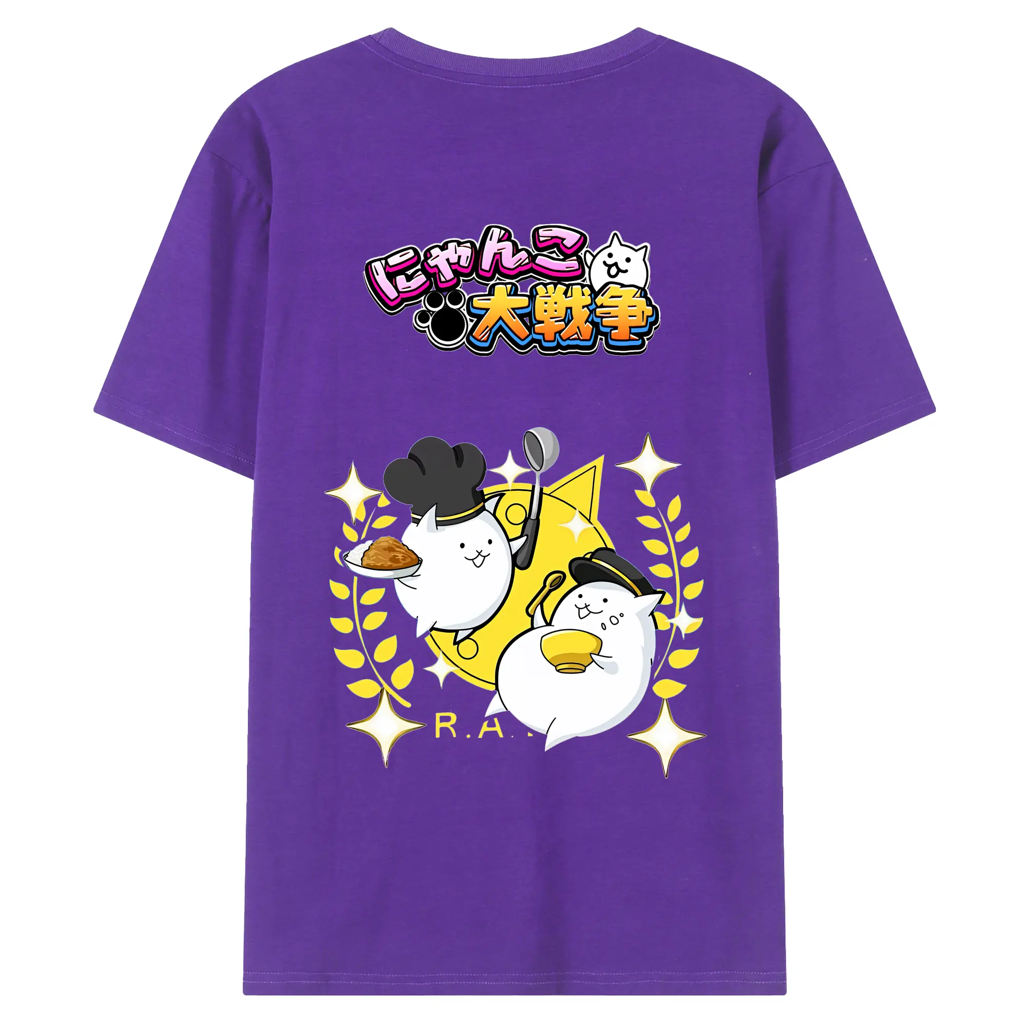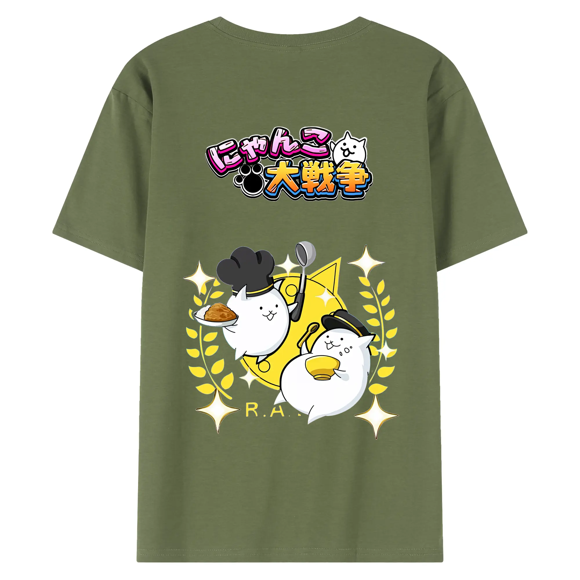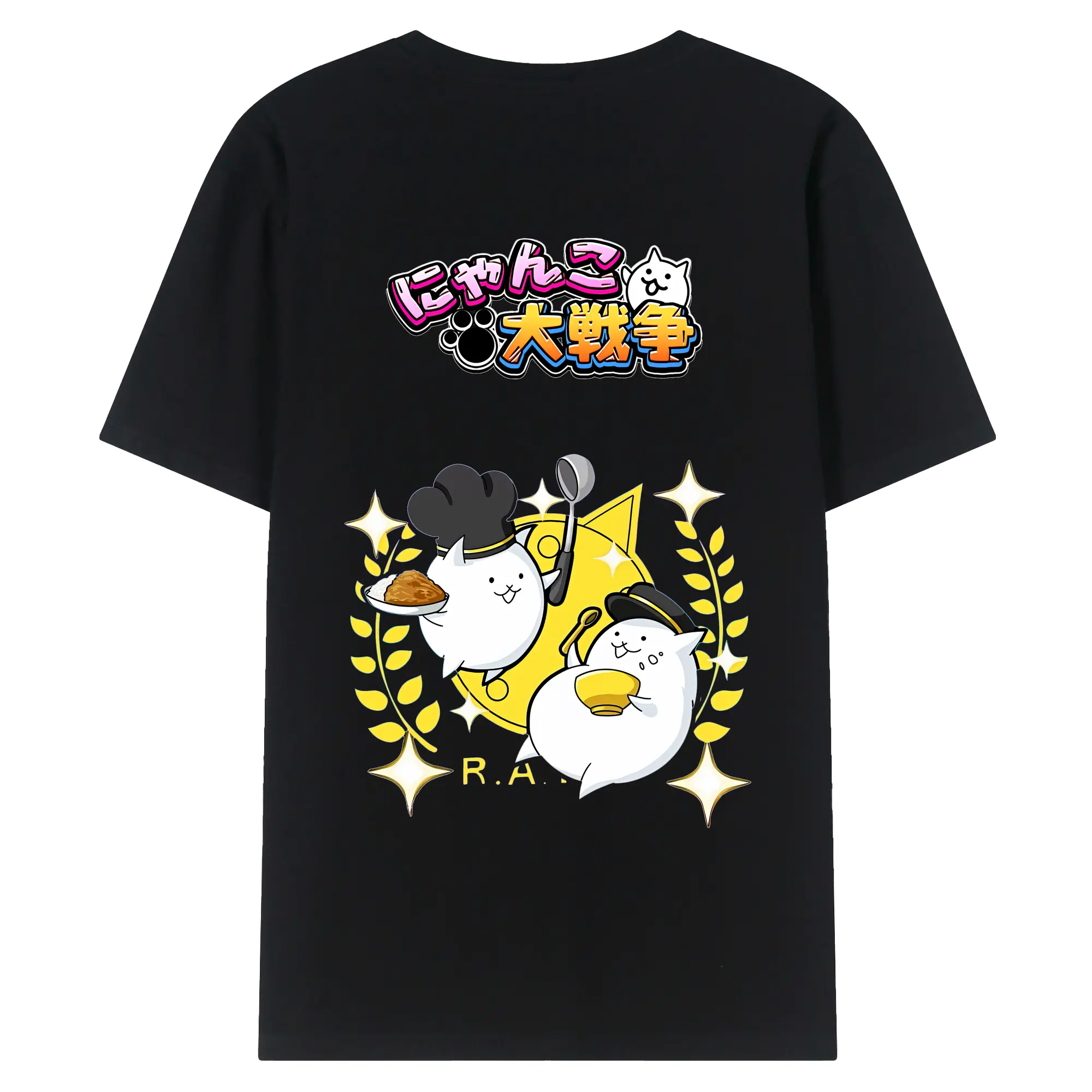 にゃんこ大戦争 グッズ - 綿100% 半袖Tシャツ ・ フロントプリント ・ 快適 通気性 ・ 日常使い 散歩 スポーツ用