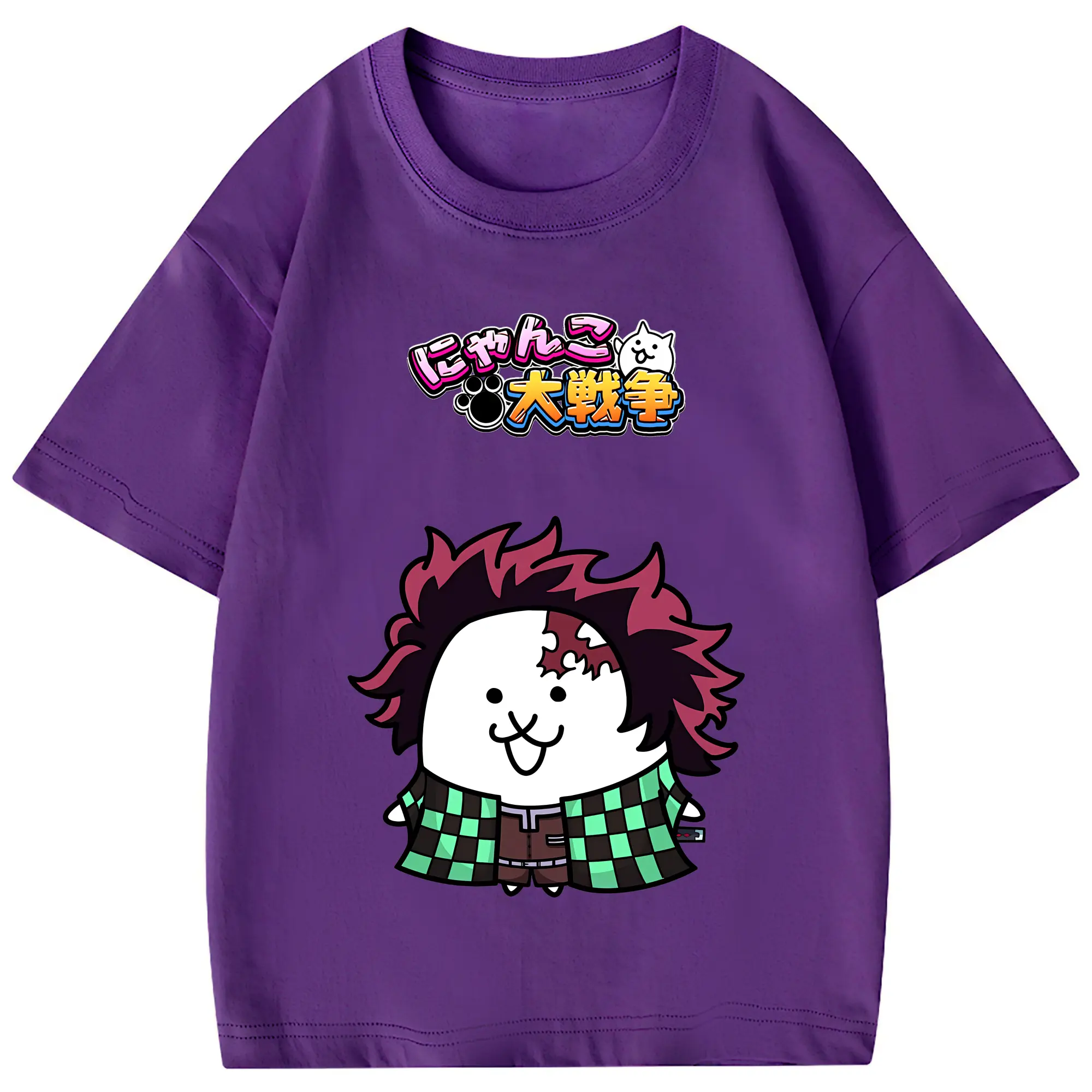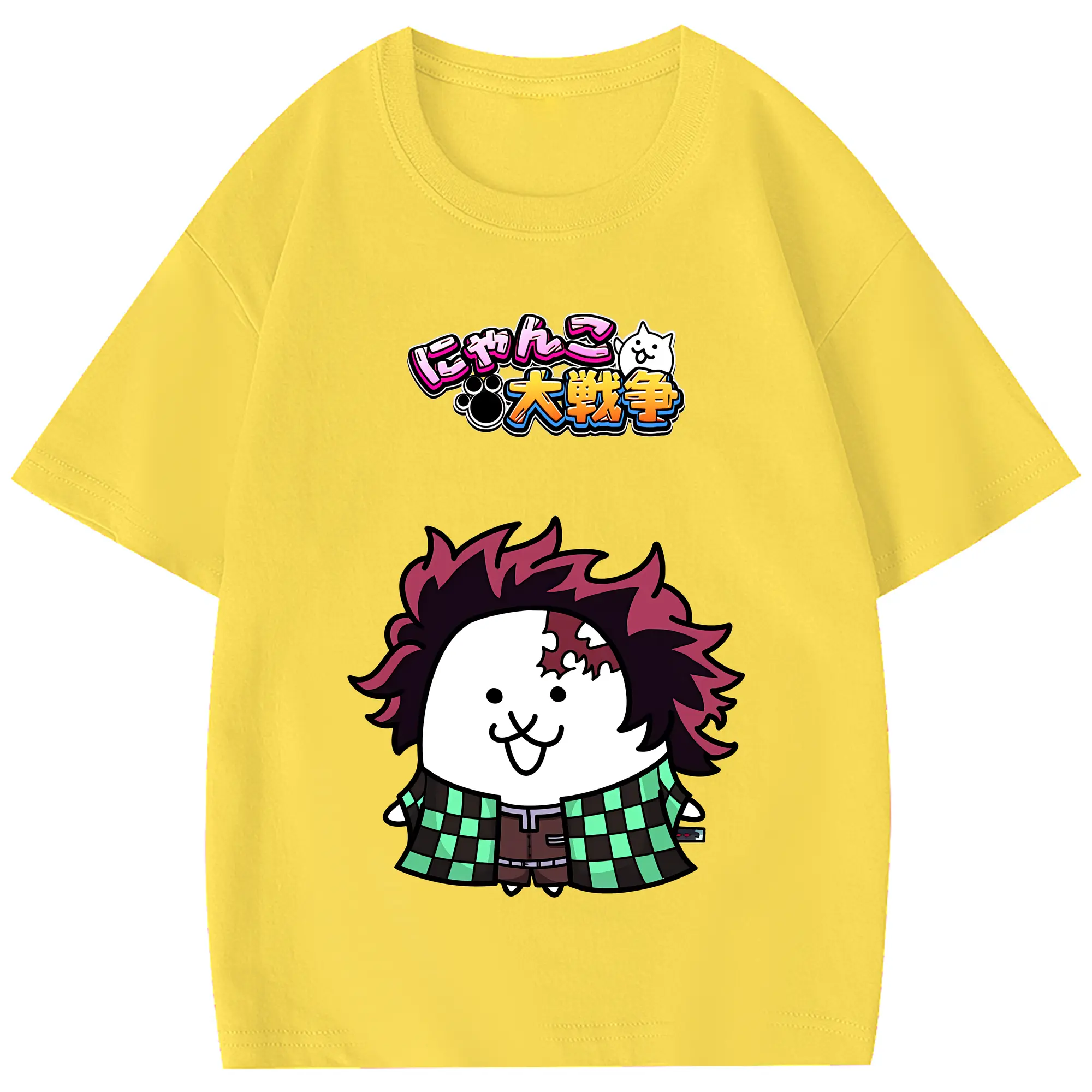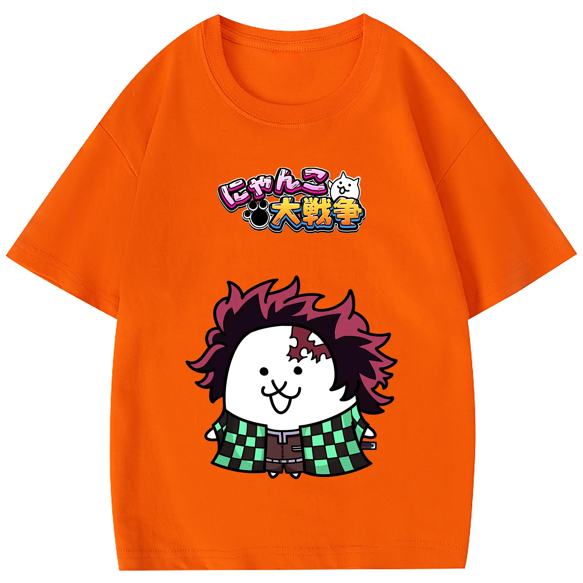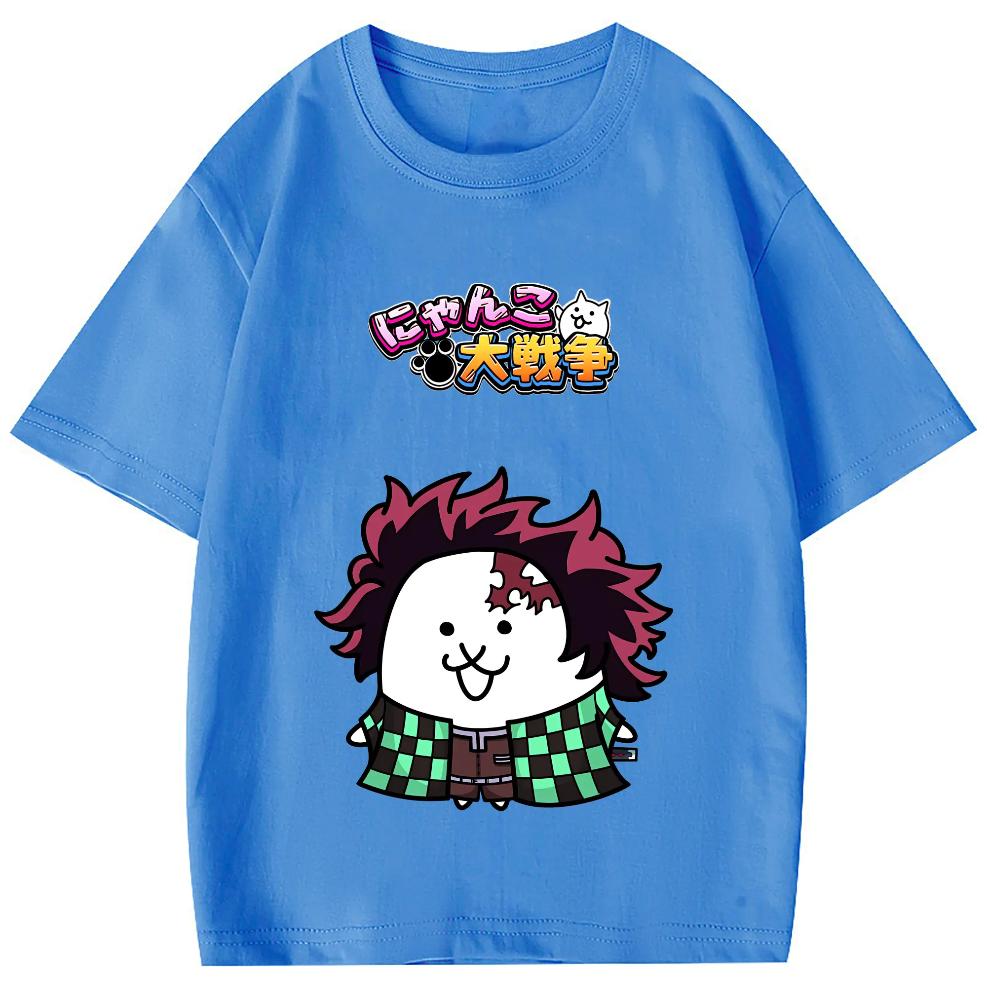 にゃんこ大戦争 グッズ - 綿100% 半袖Tシャツ ・ フロントプリント ・ 快適 通気性 ・ 日常使い 散歩 スポーツ用