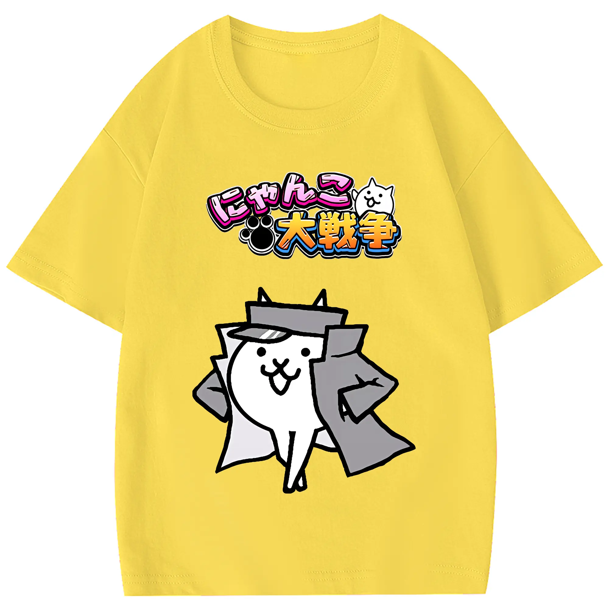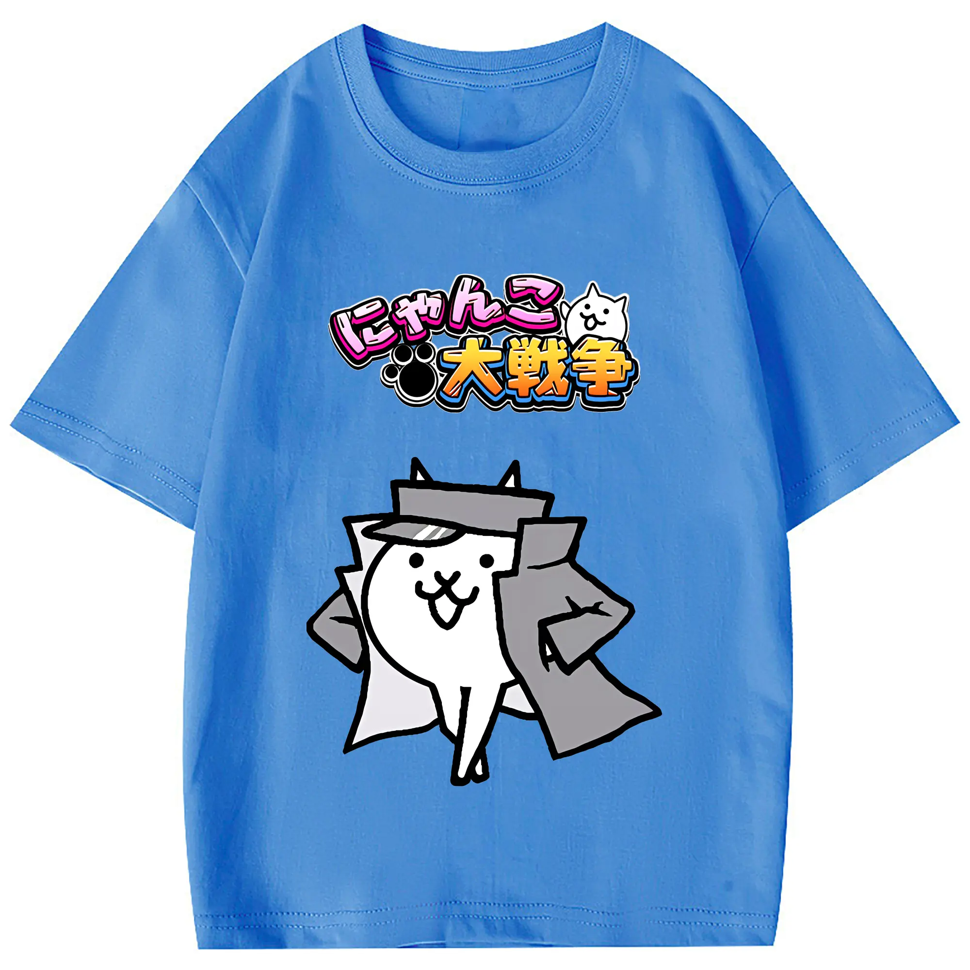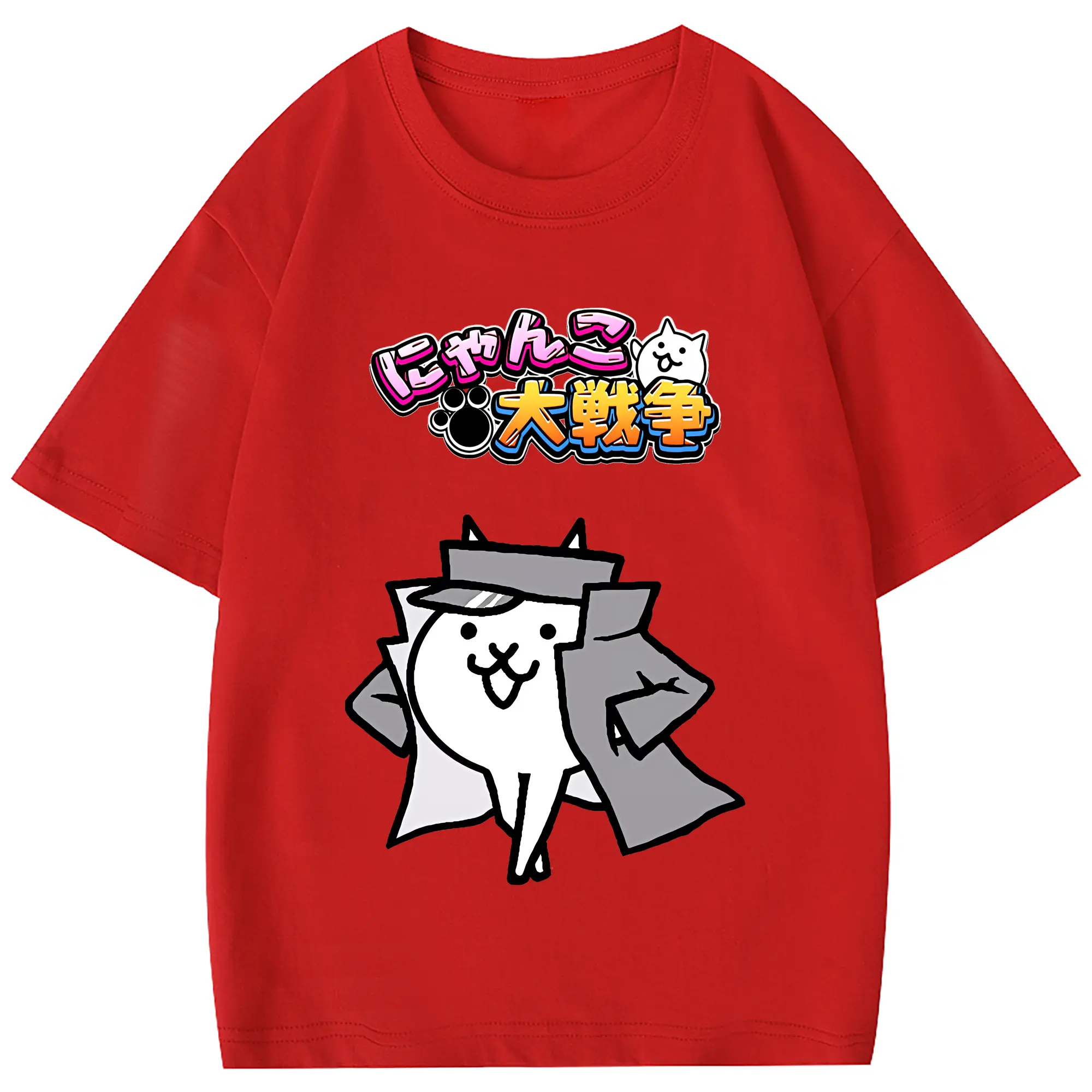 にゃんこ大戦争 グッズ - 綿100% 半袖Tシャツ ・ フロントプリント ・ 快適 通気性 ・ 日常使い 散歩 スポーツ用