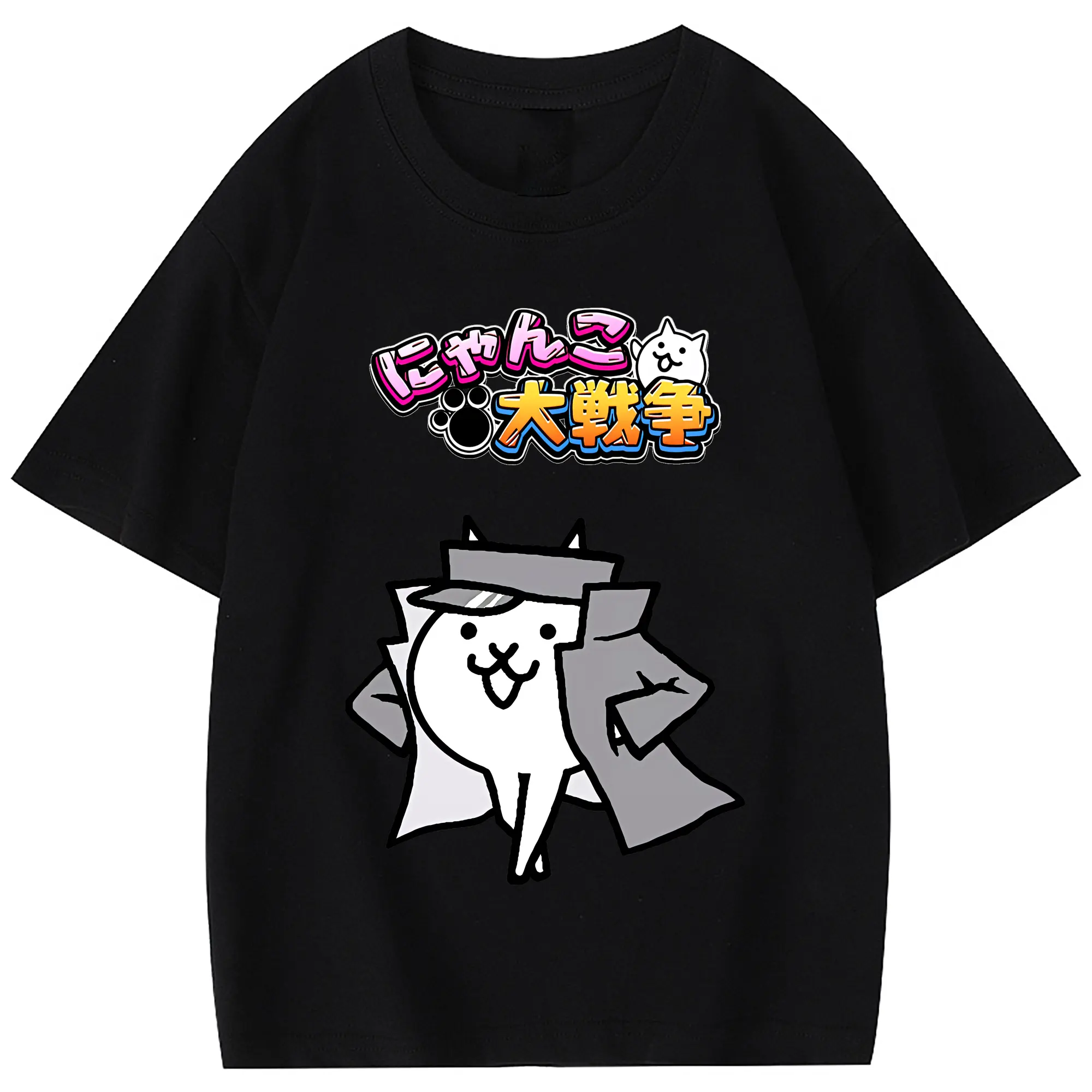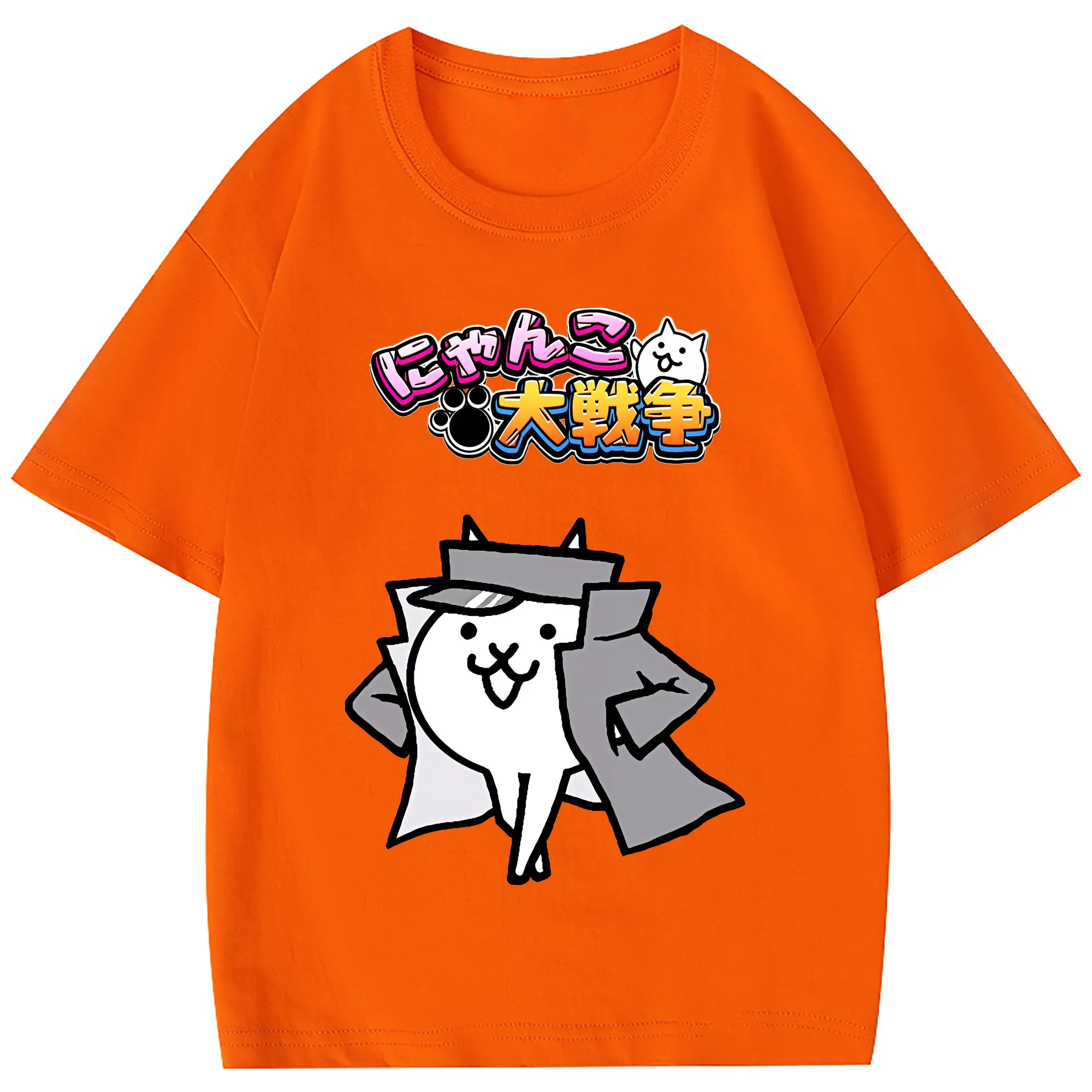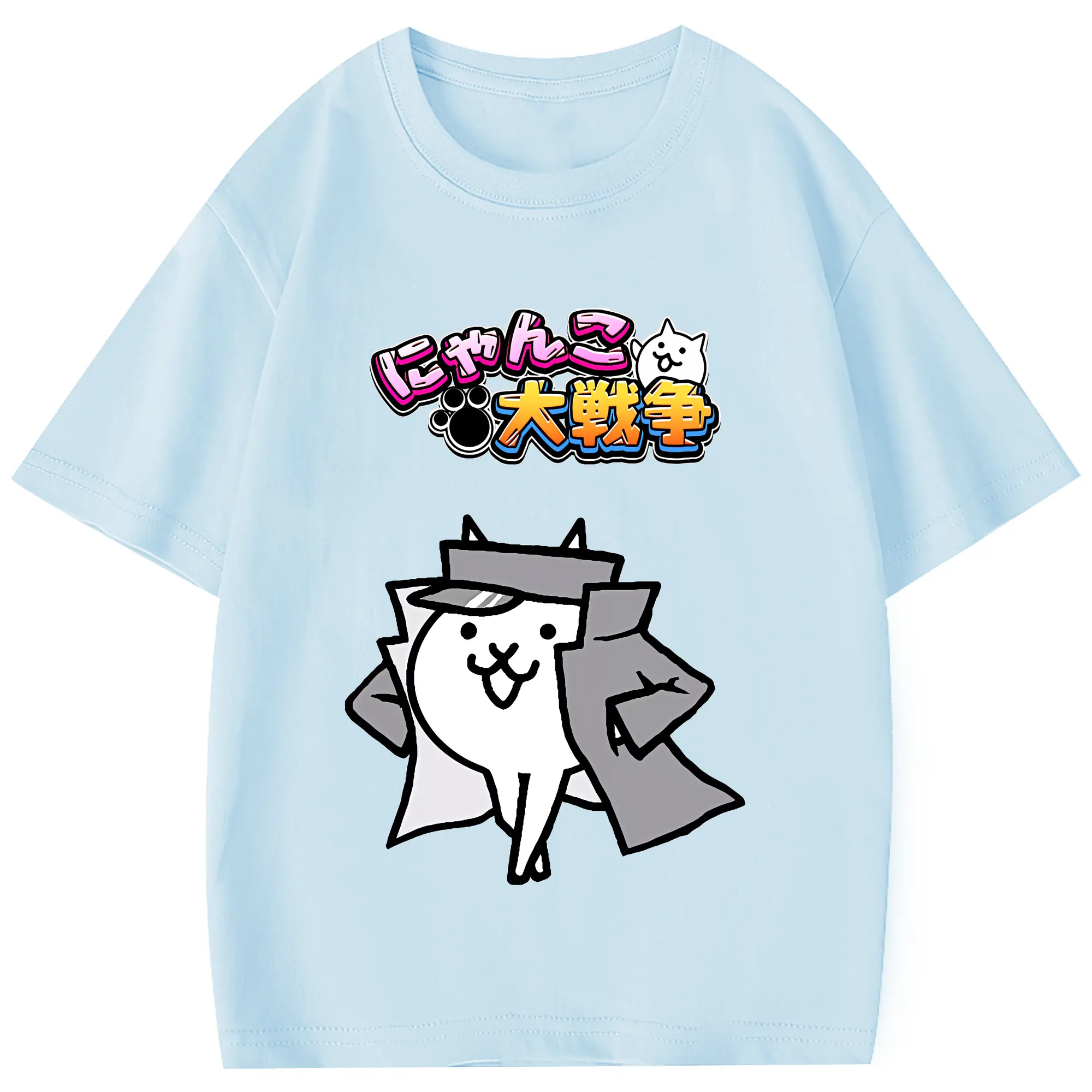 にゃんこ大戦争 グッズ - 綿100% 半袖Tシャツ ・ フロントプリント ・ 快適 通気性 ・ 日常使い 散歩 スポーツ用