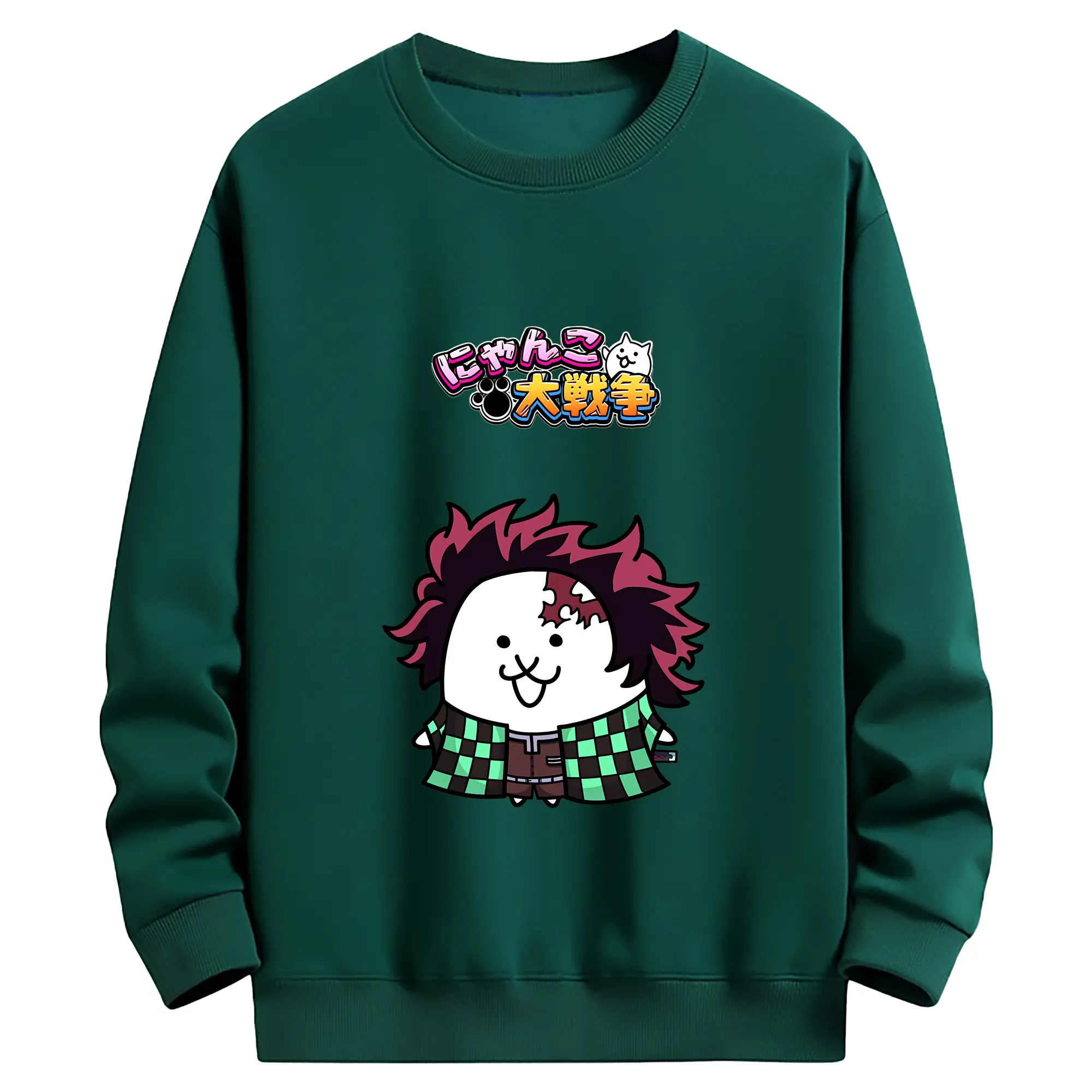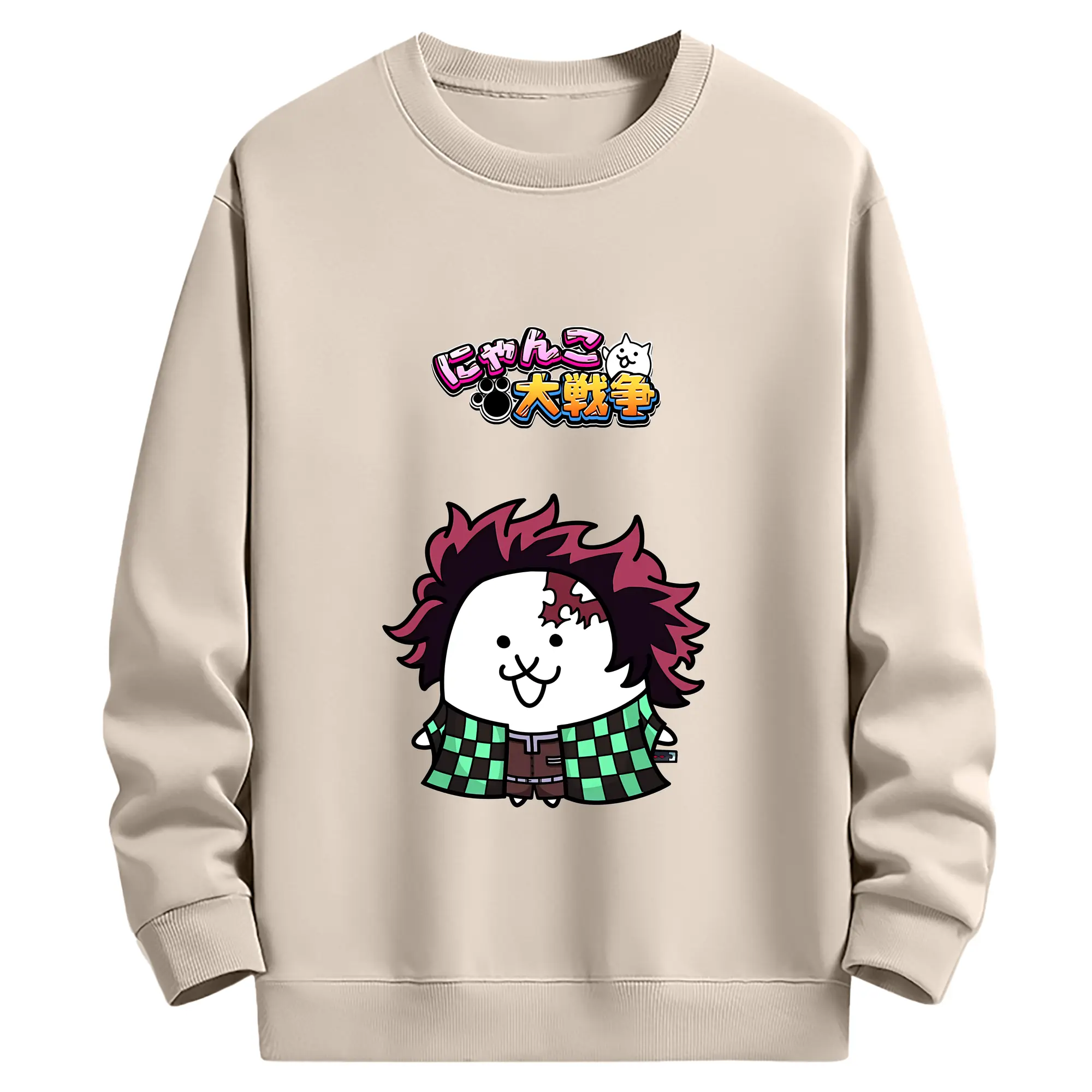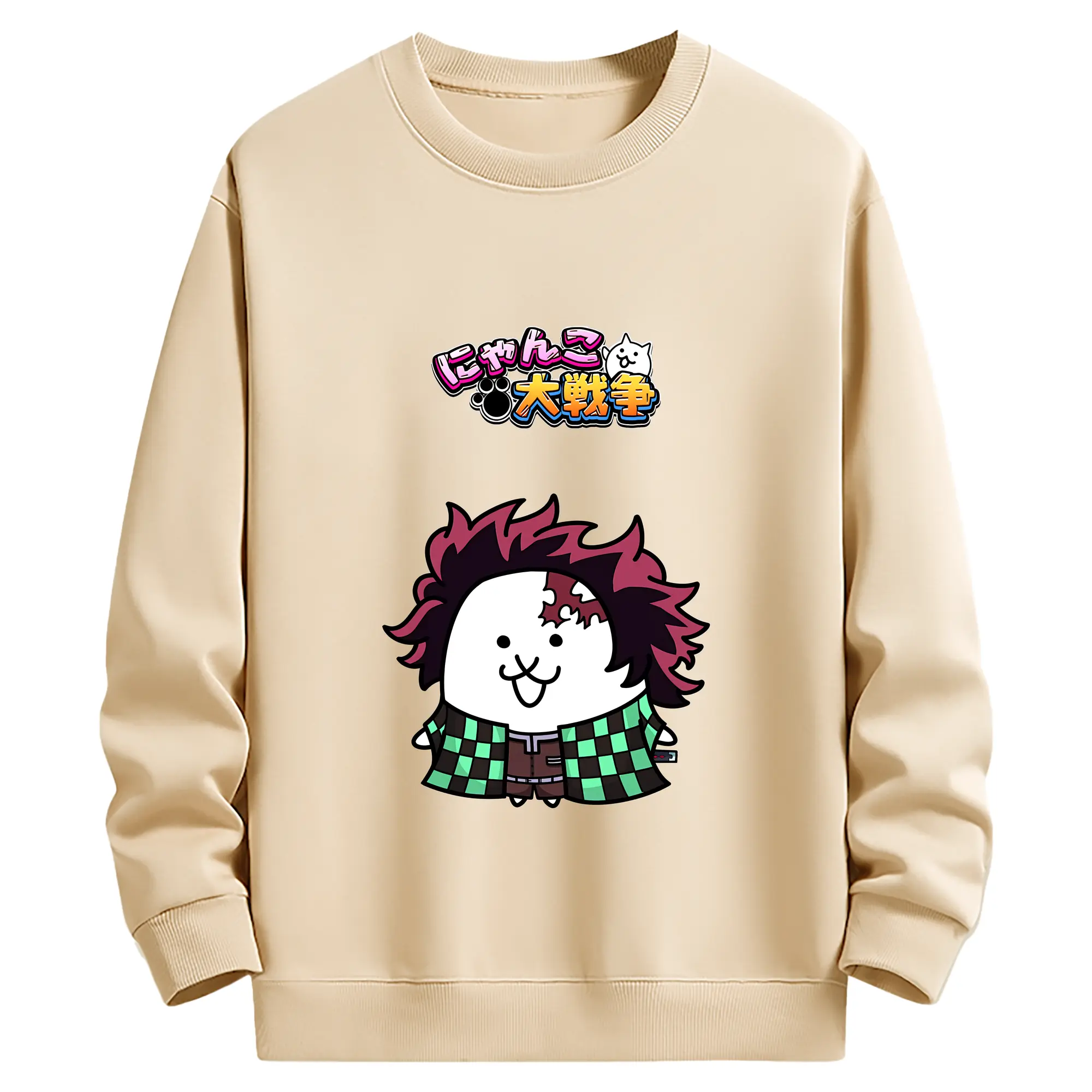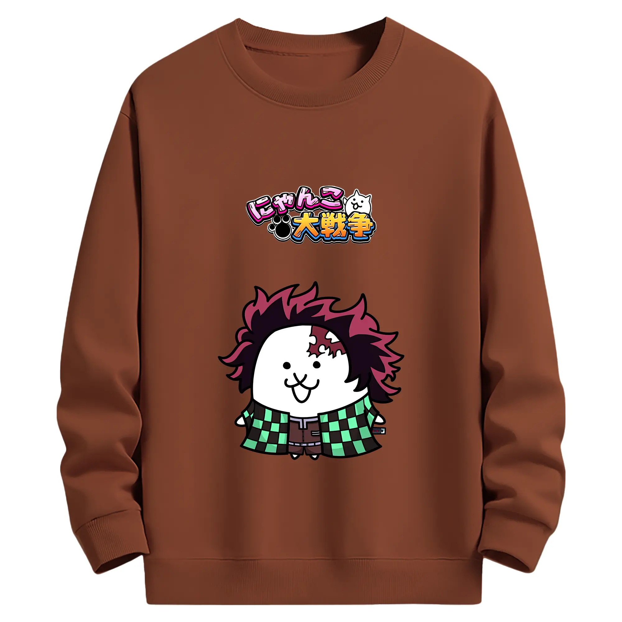 にゃんこ大戦争 グッズ - 薄手 クルーネック スウェット 裏毛260g · ポリエステル 春秋向け カジュアル 男女兼用 · トレーナー デイリー スポーツ 散歩に最適