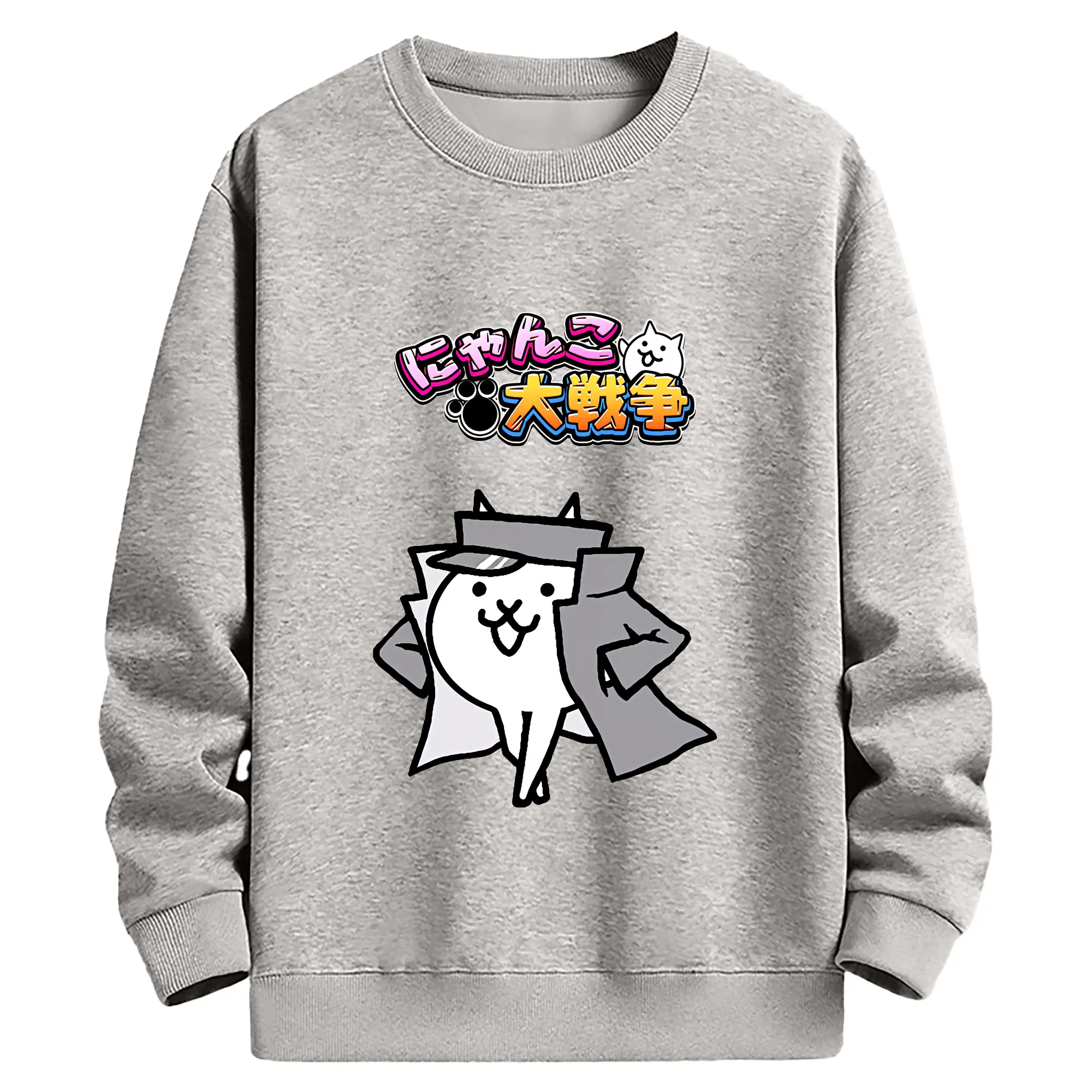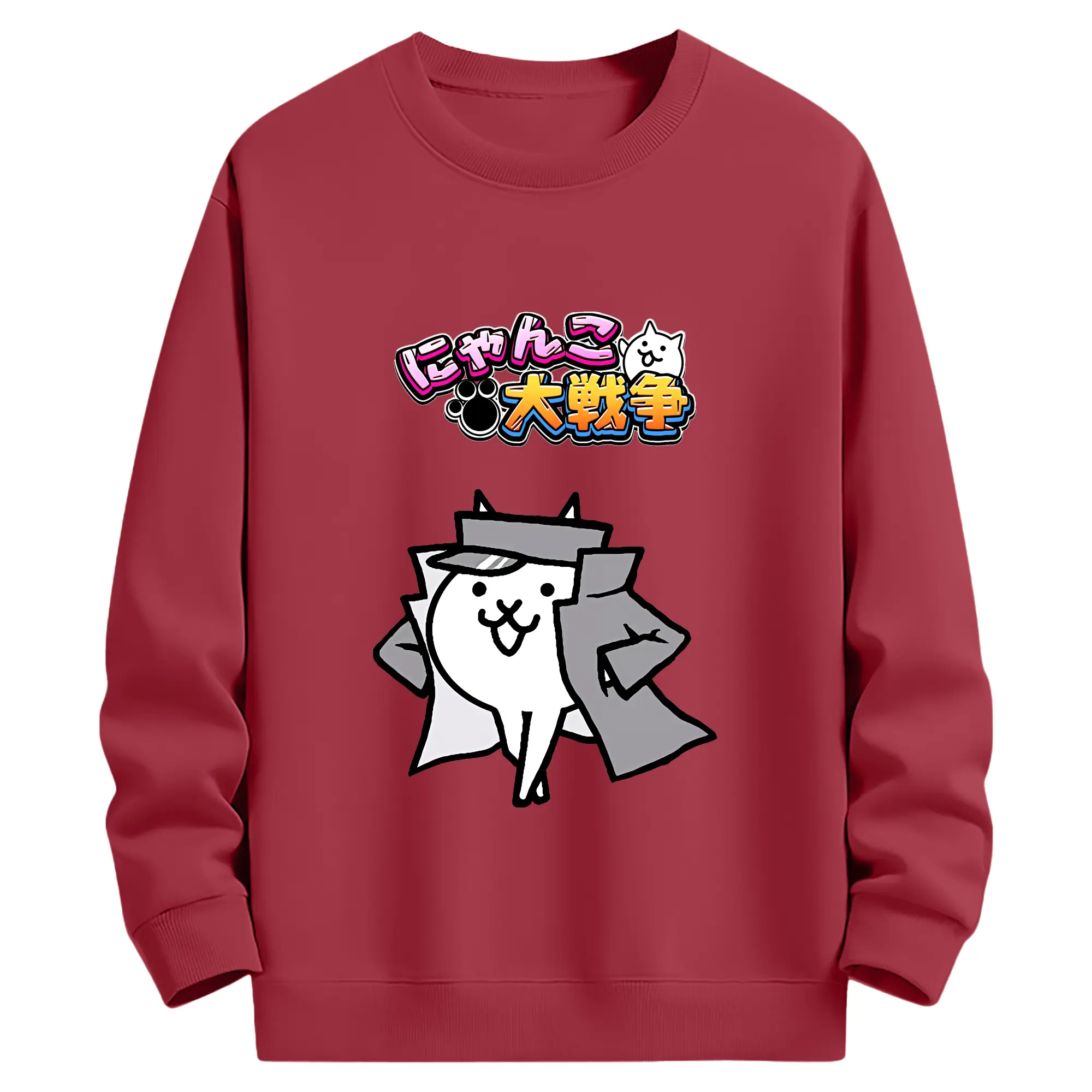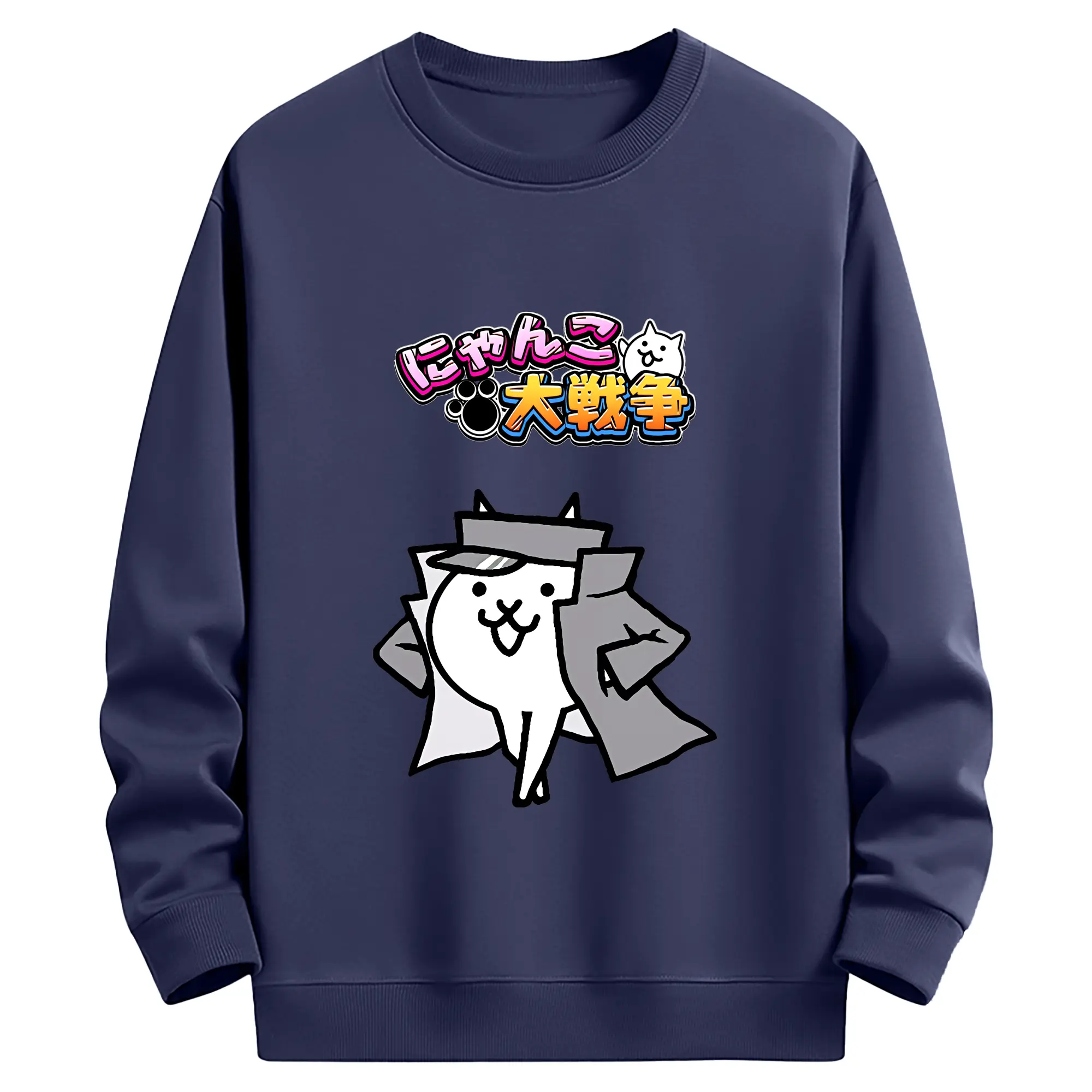 にゃんこ大戦争 グッズ - 薄手 クルーネック スウェット 裏毛260g · ポリエステル 春秋向け カジュアル 男女兼用 · トレーナー デイリー スポーツ 散歩に最適