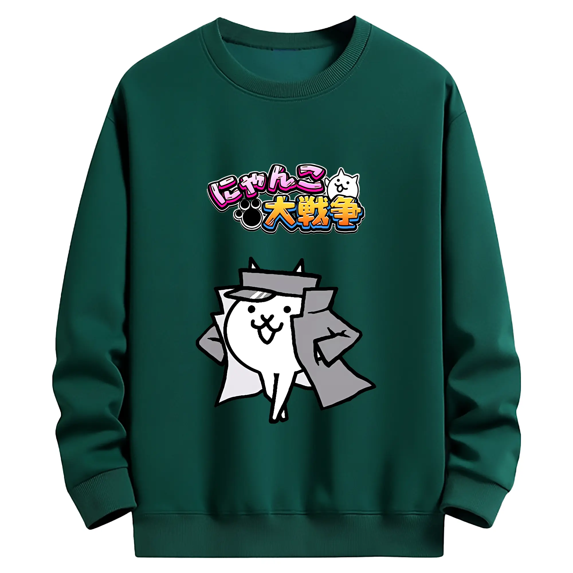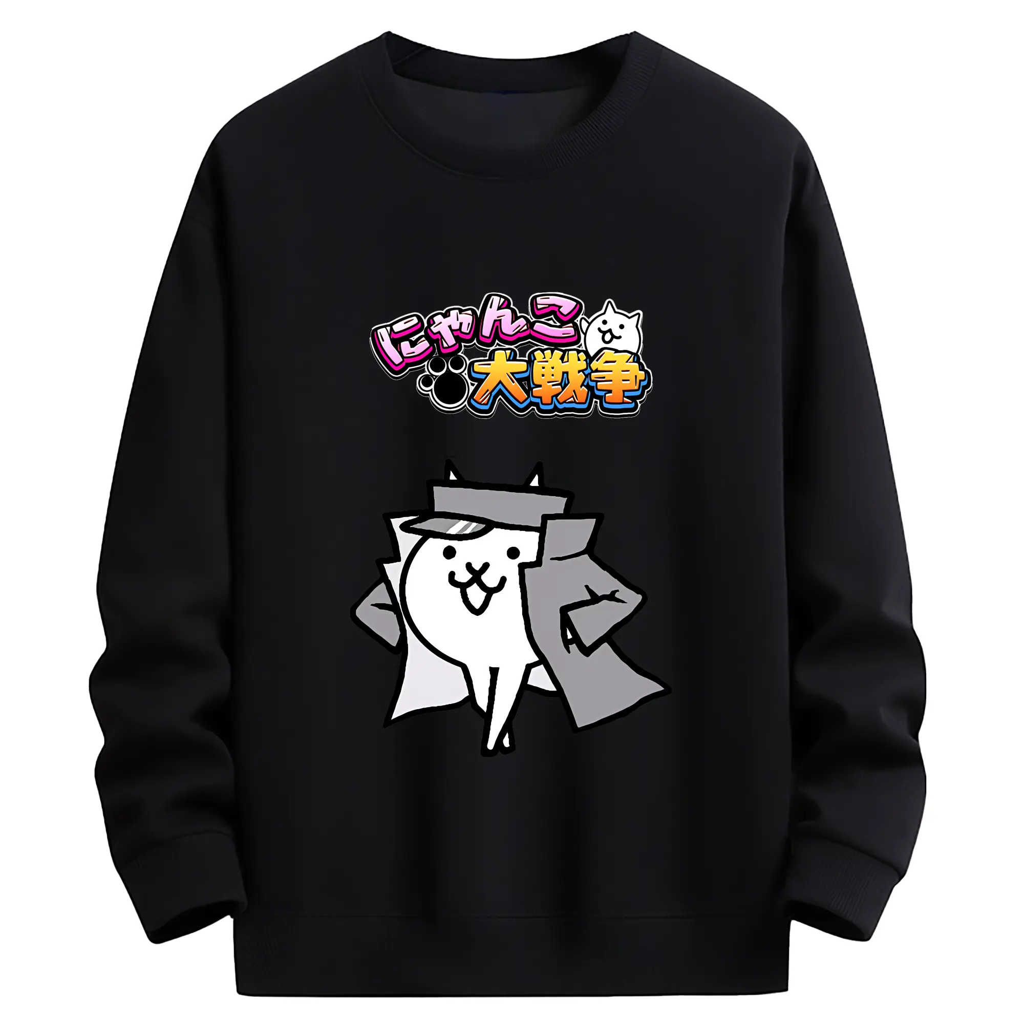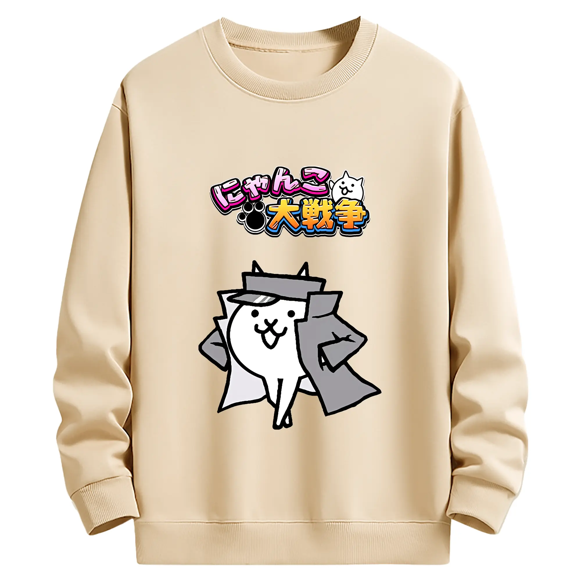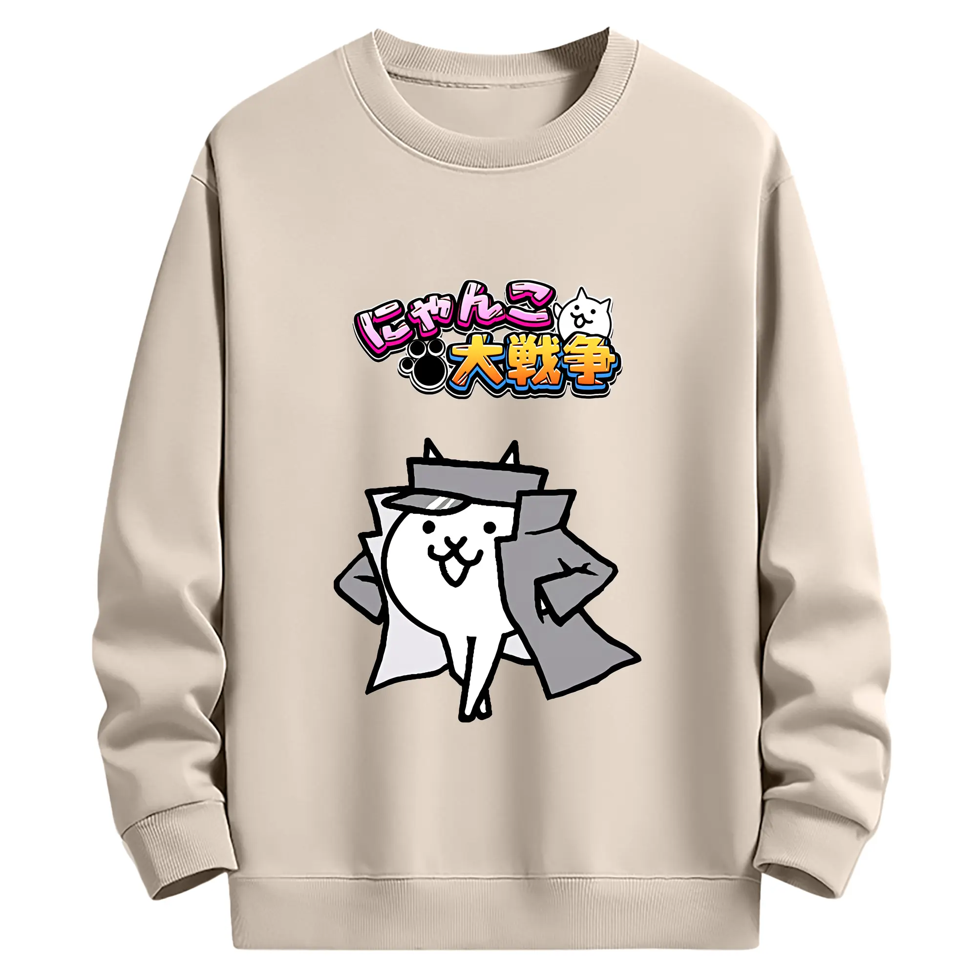にゃんこ大戦争 グッズ - 薄手 クルーネック スウェット 裏毛260g · ポリエステル 春秋向け カジュアル 男女兼用 · トレーナー デイリー スポーツ 散歩に最適