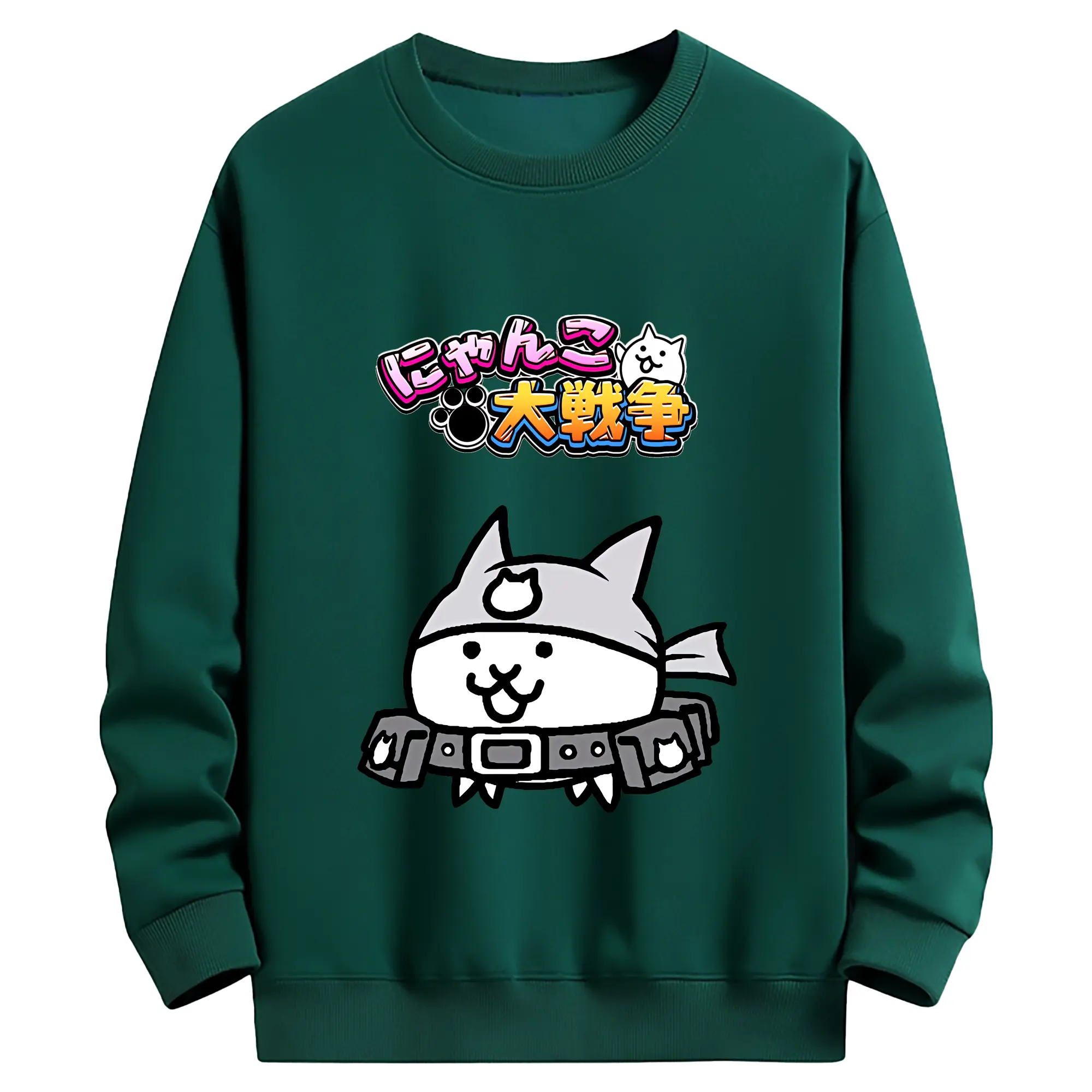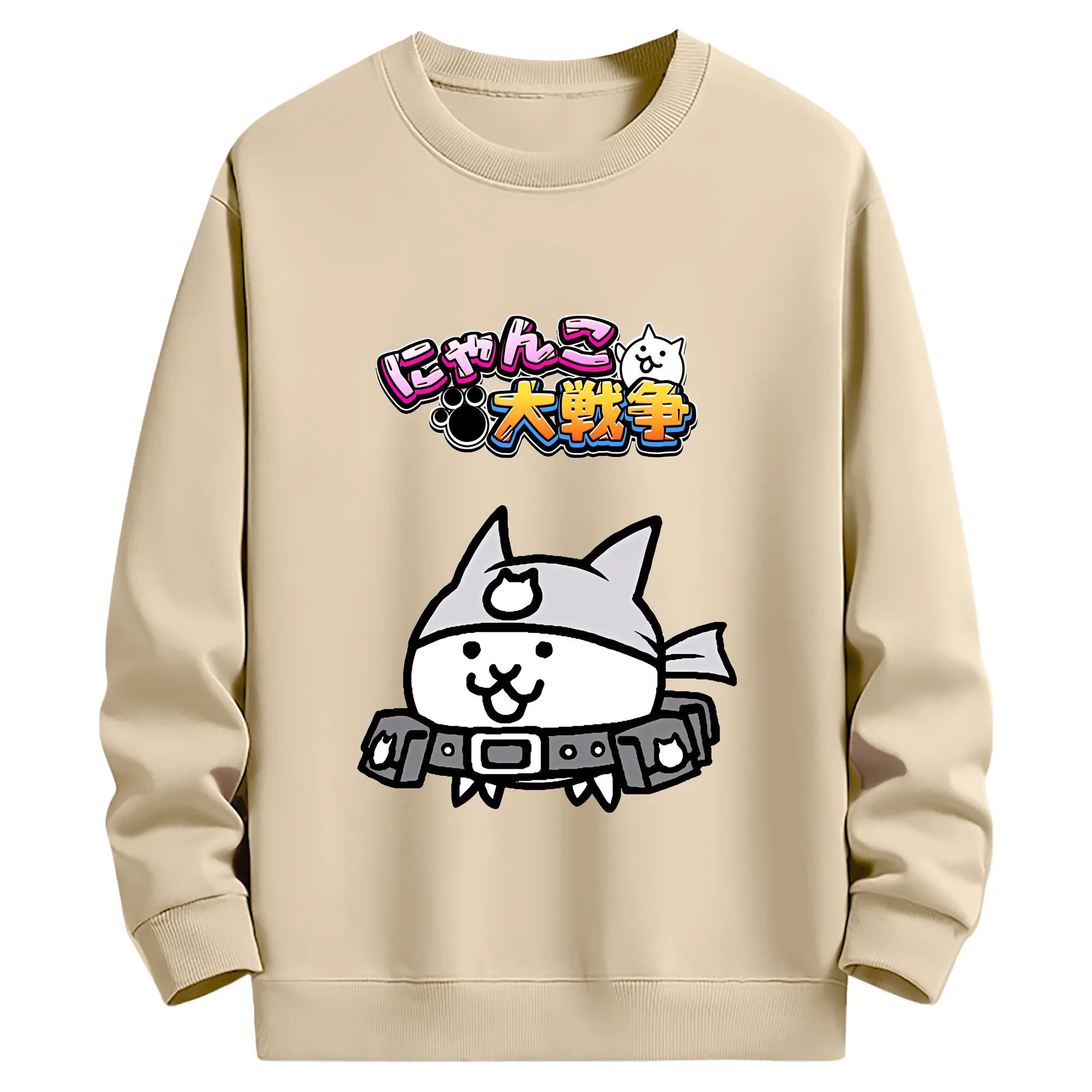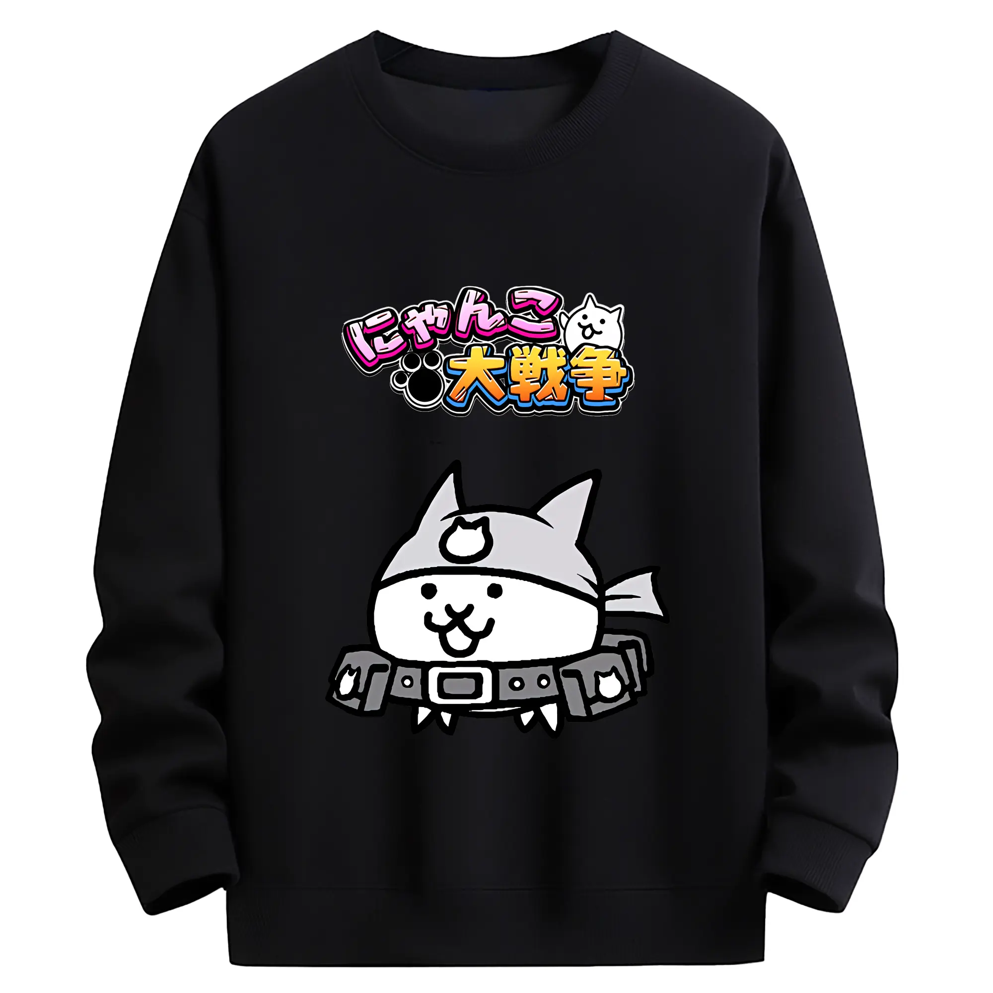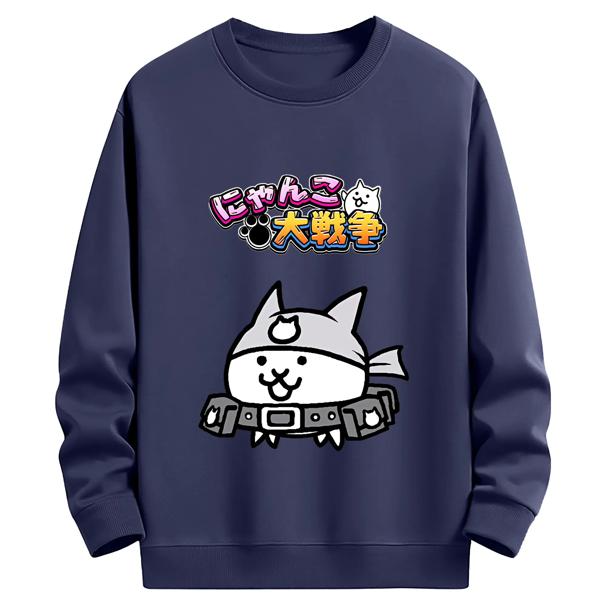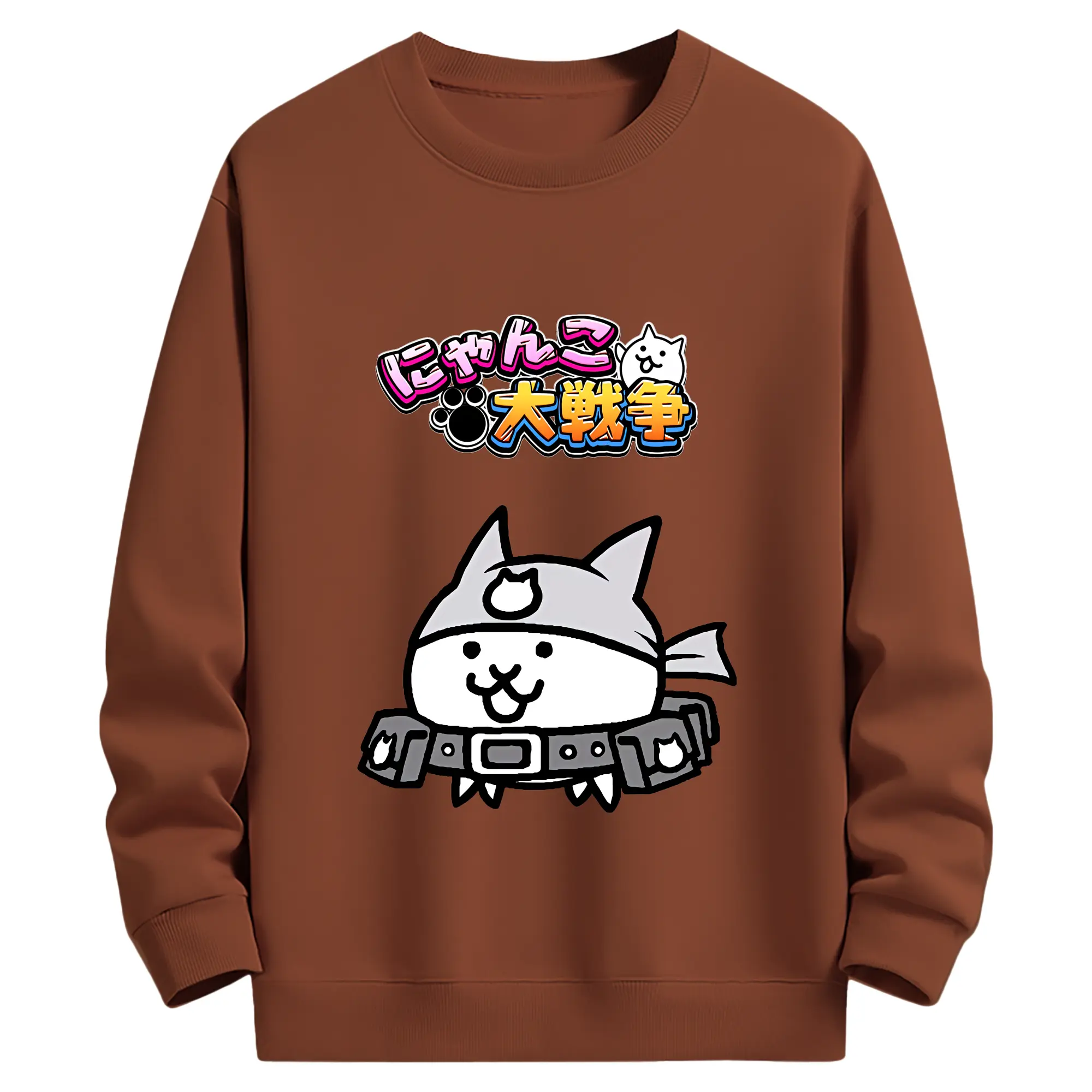 にゃんこ大戦争 グッズ - 薄手 クルーネック スウェット 裏毛260g · ポリエステル 春秋向け カジュアル 男女兼用 · トレーナー デイリー スポーツ 散歩に最適